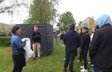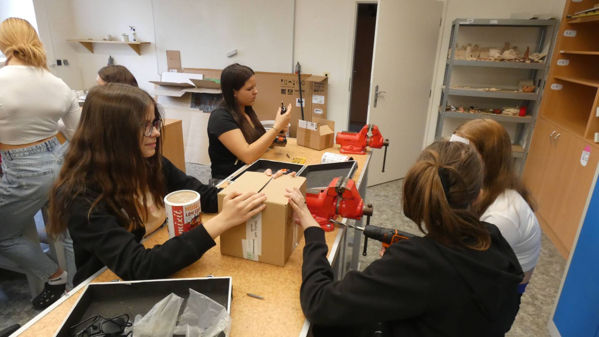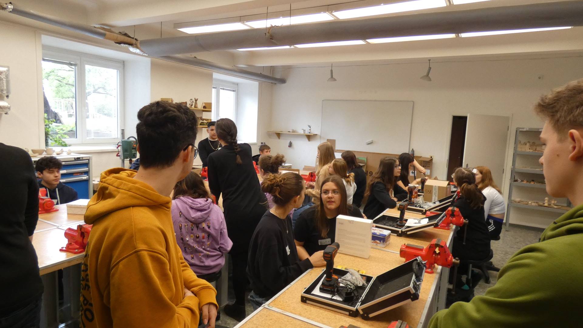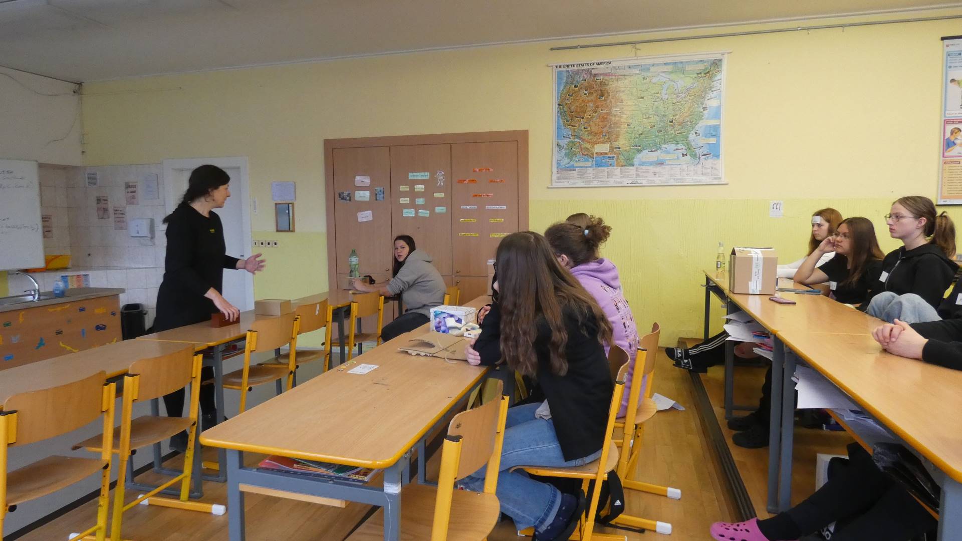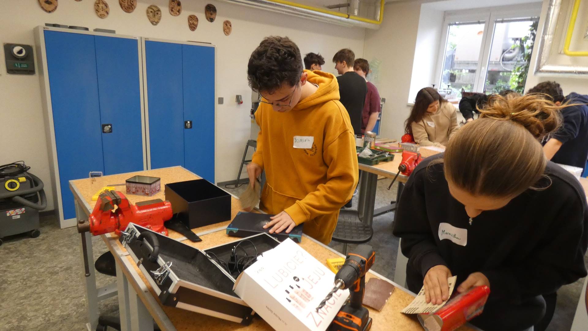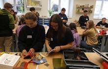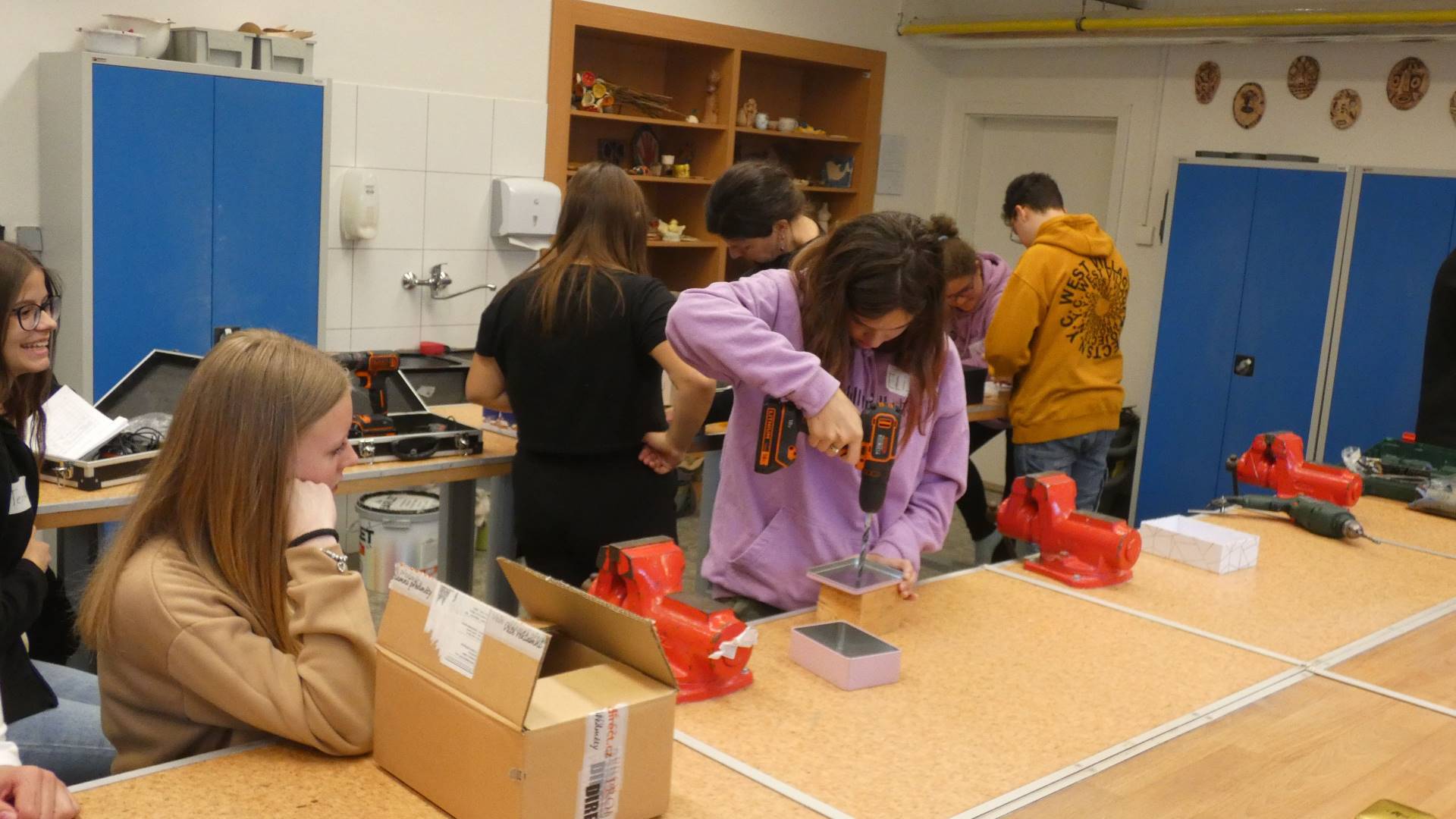 Ve středu 24. dubna si mohli naši žáci deváté třídy pod vedením profesionální fotografky paní Gabriely Sauer Kolčavové vyzkoušet, jak funguje fotoaparát a jak si vyrobit fotografii pomocí krabičky. Spojili si znalosti z fyziky a chemie s dovednostmi z dílen. Nejen že se podívali do obřího fotoaparátu, ale také si z přinesených krabiček vlastnoručně vyrobili funkční fotoaparát. Fotografie si i vlastnoručně vyvolali v provizorní temné komoře. Všichni si odnesli nejen svoje fotografie, ale především spoustu skvělých zážitků a nových informací.