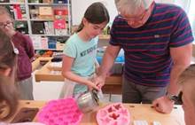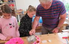 Do školy jsme si dovezli vyrobený hmyzí hotel a výrobky ze včelího vosku. Příjemné dopoledne jsme zakončili zmrzlinou.