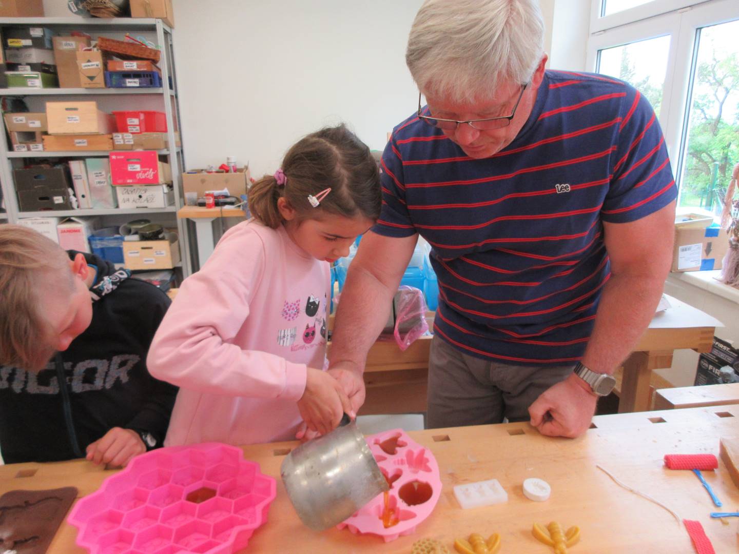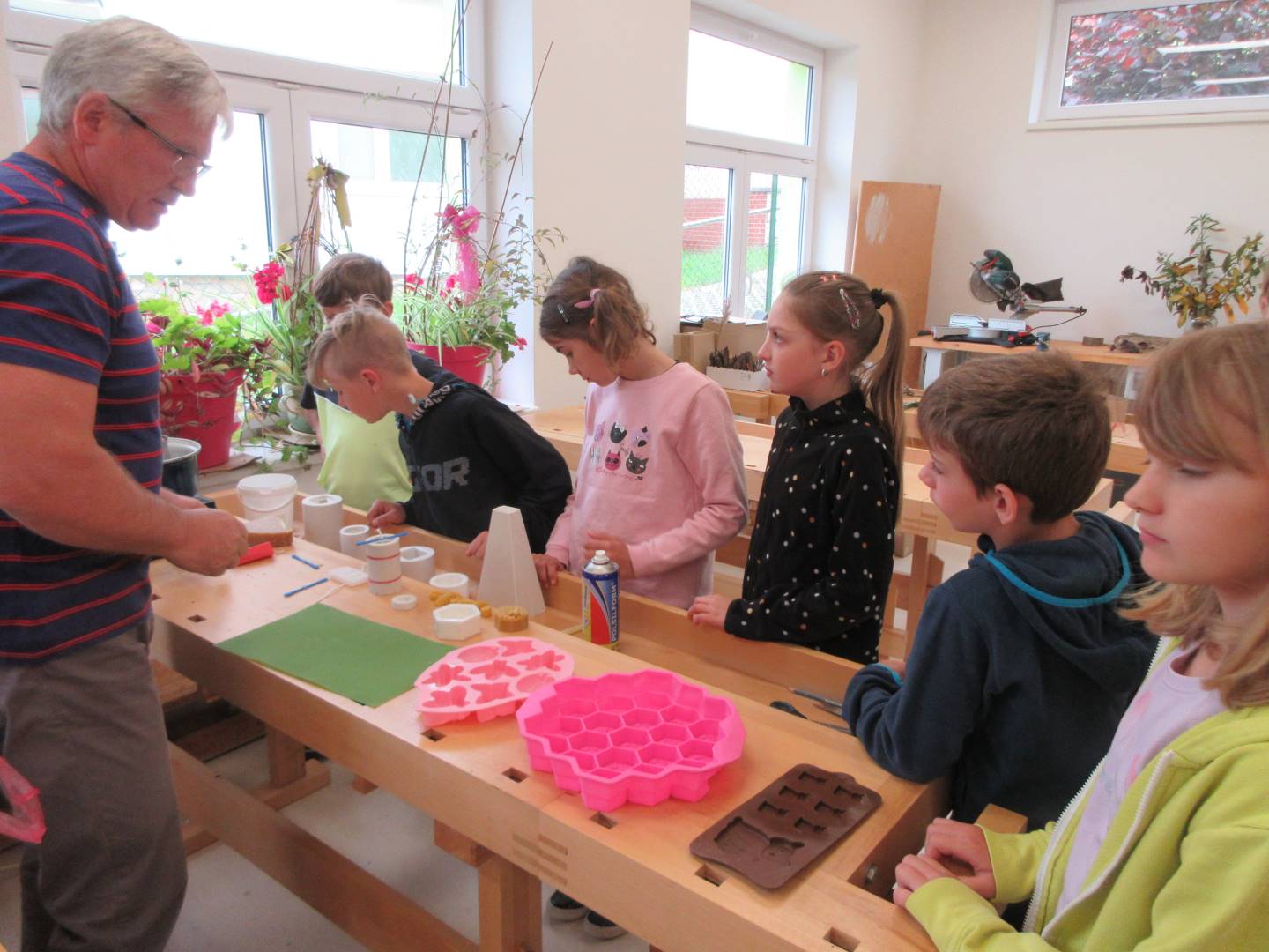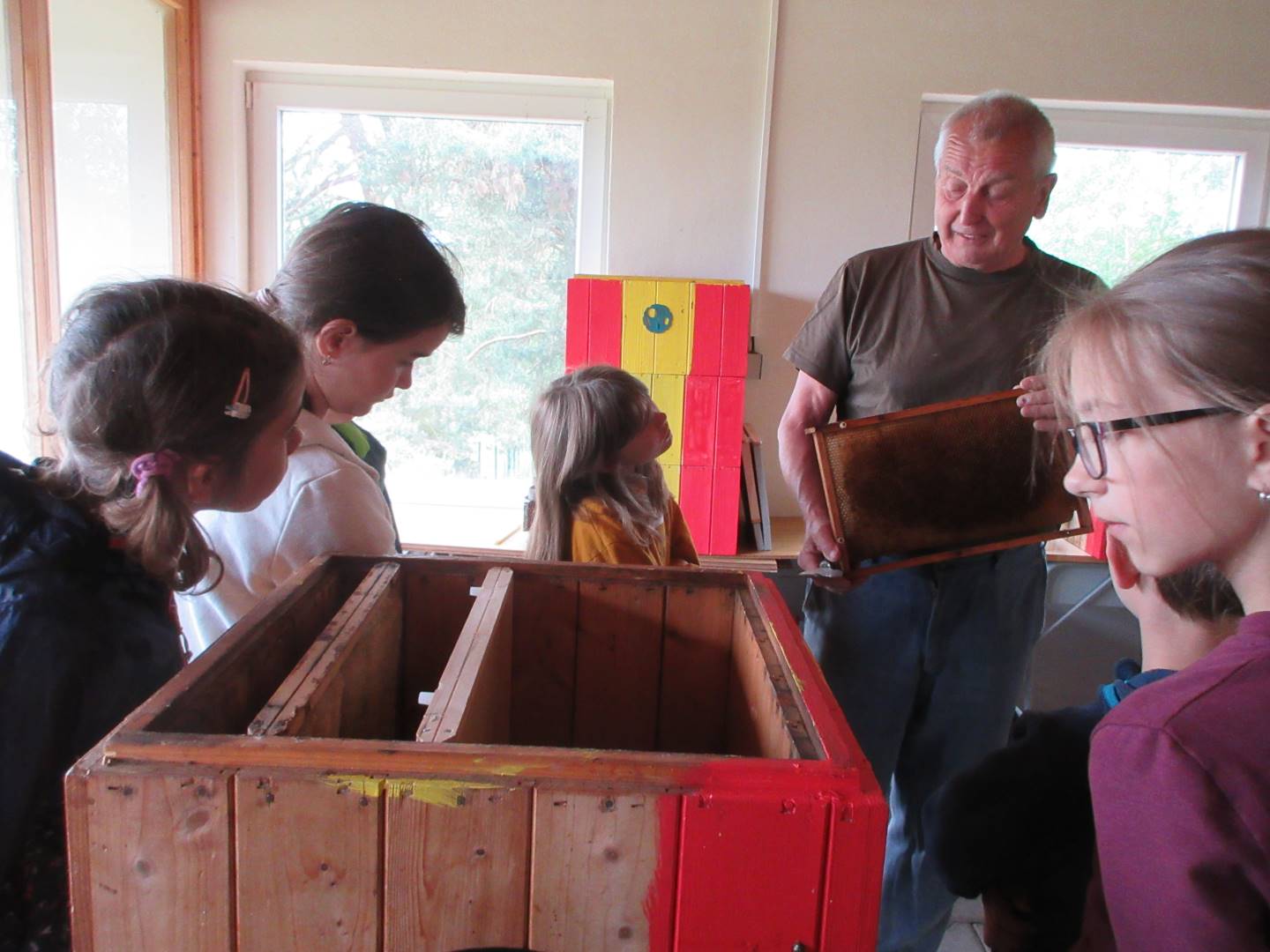 V pondělí se skupinka dětí vypravila na Vísky, kde byl pro ně nachystaný zajímavý program. Děti si vyzkoušely různé praktické aktivity v odborné učebně, na školní zahradě, v dílně, navštívili jsme včelín a pobesedovali jsme s panem včelařem.