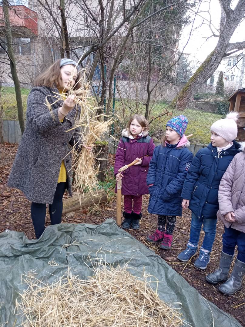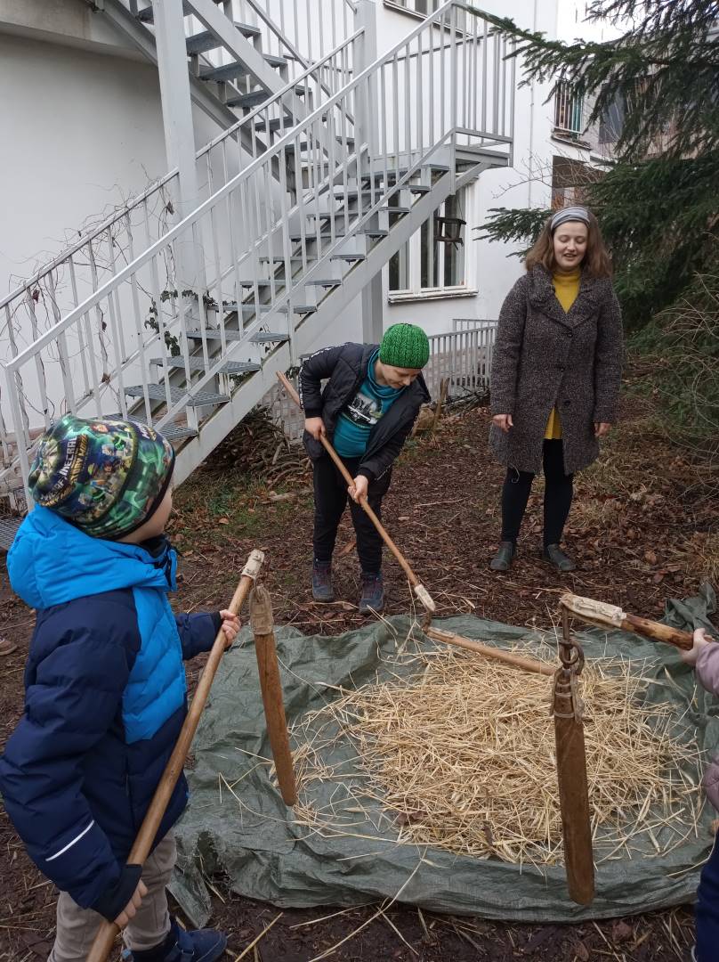 V pátek 24. února se naši druháci vydali na ekologický výukový program do Brna „Jak roste chléb“. Poznali cestu chleba z pole až na náš stůl. V pohádce se zamysleli nad významem půdy pro obživu člověka. Vyzkoušeli si mlácení obilí cepem v zahradě, mletí mouky, přípravu těsta a upekli si chlebánky. Program se všem líbil.