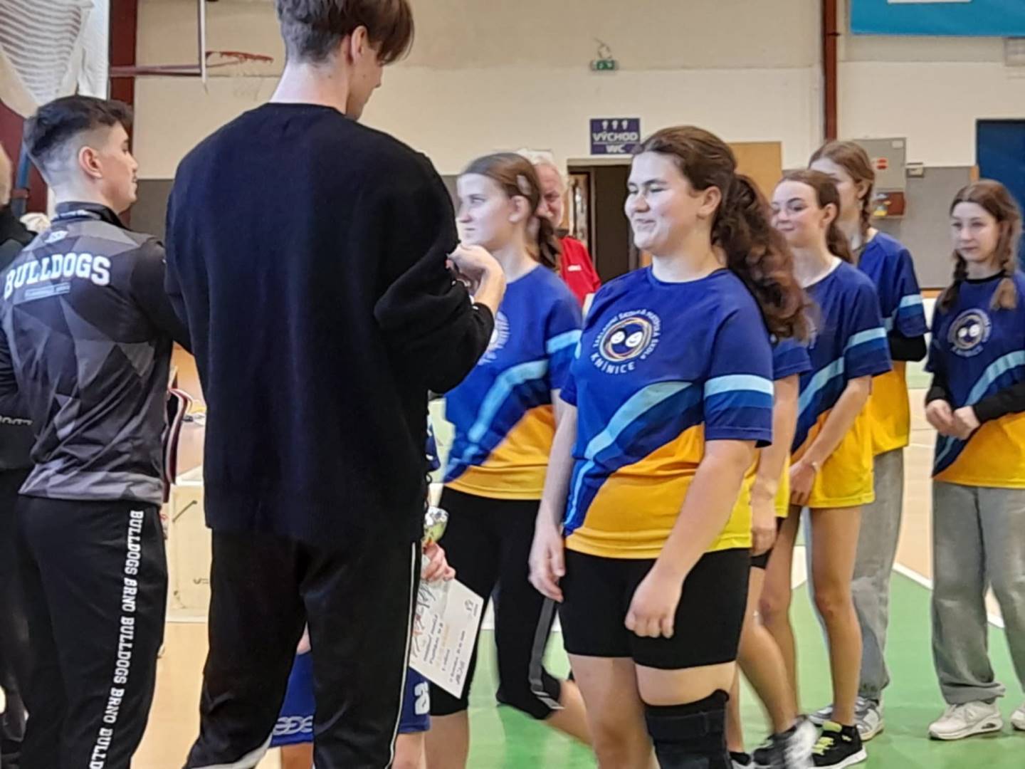 Družstva byla rozdělena do dvou skupin. Našimi soupeřkami byly dívky z Brna, Vyškova a Velkých Pavlovic. První zápas byl mírně nervózni a Brno potvrdilo roli favorita, prohrály jsme 0:4. Druhý zápas se nesl v úplně jiném duchu, nasazení bylo obrovské a odměnou nám byla výhra 2:0 nad Velkými Pavlovicemi. Poslední a rozhodující zápas jsme remizovaly s Vyškovem 1:1, což znamenalo náš nepostup do semifinálových bojů kvůli skóre.