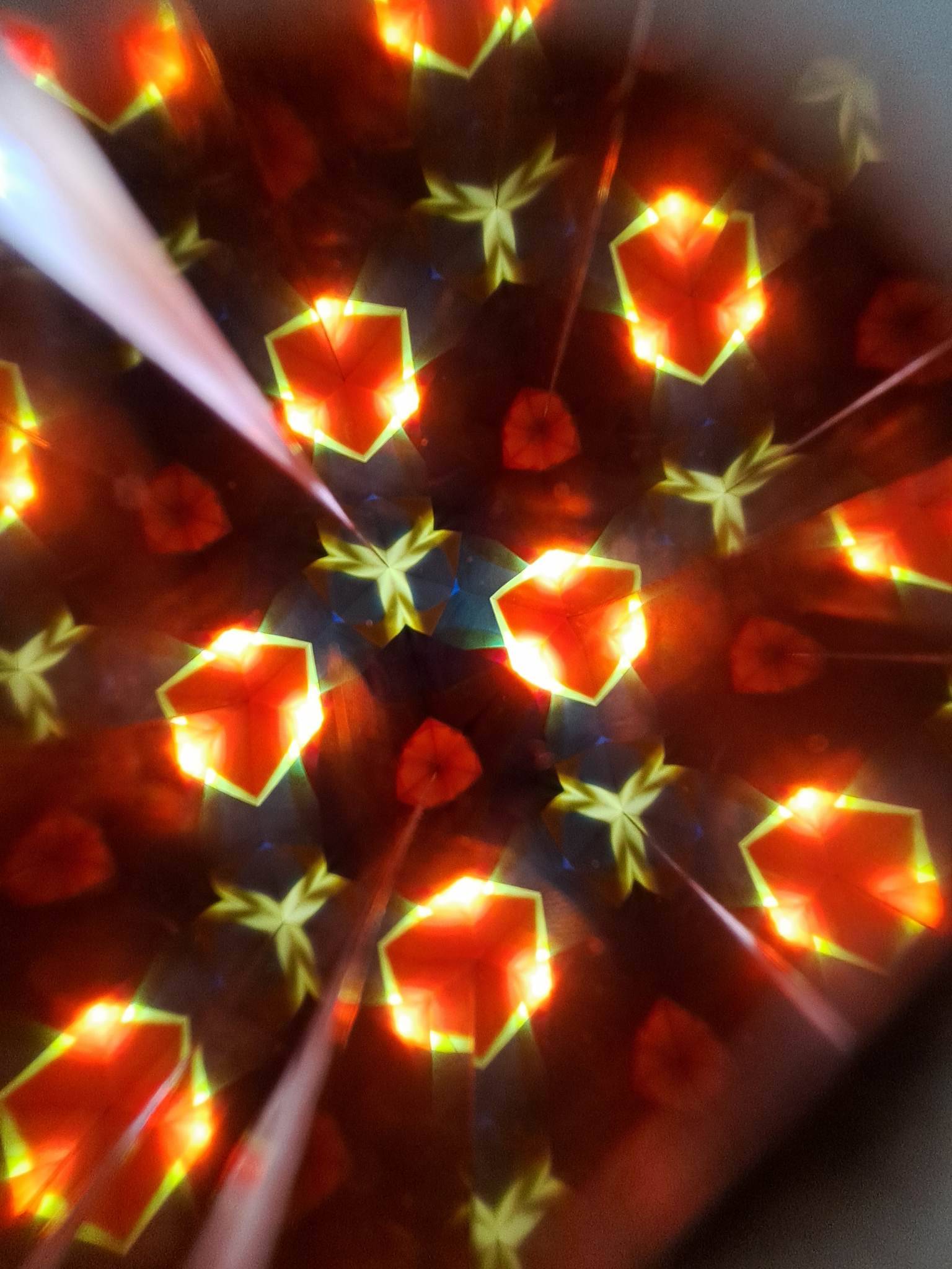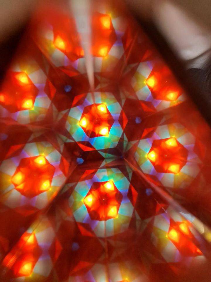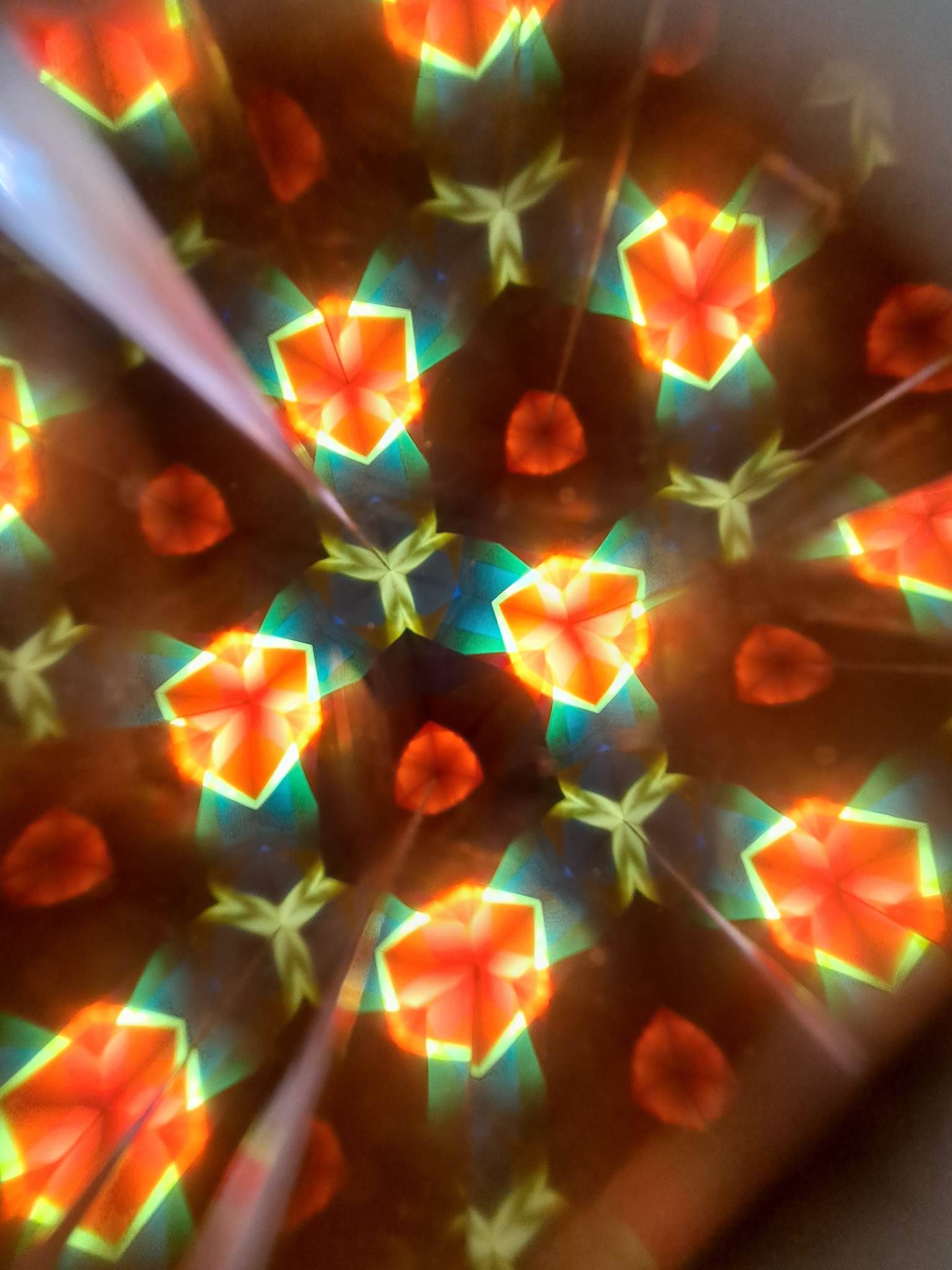 Žáci deváté třídy spojili fyziku s výtvarkou a při zkoumání odrazů v rovinném zrcadle vytvářeli kaleidoskopy, na které je radost pohledět.