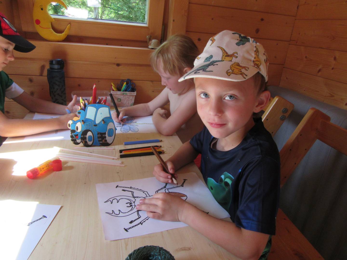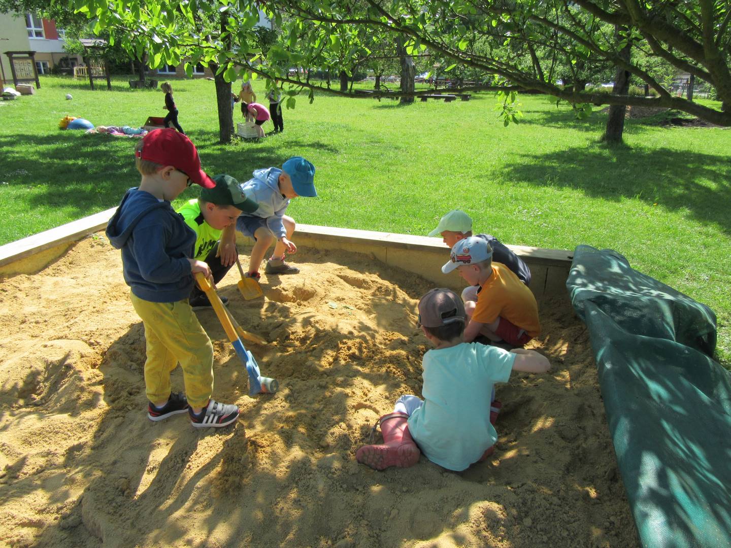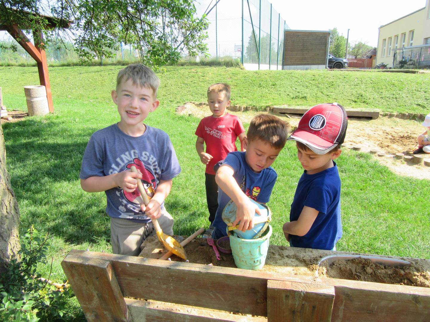 Květen 2024 - dopravní prostředky, moje rodina a Den matek, povolání, hrabání trávy a úklid u maringotky, výlet do planetária, hmyz a broučci