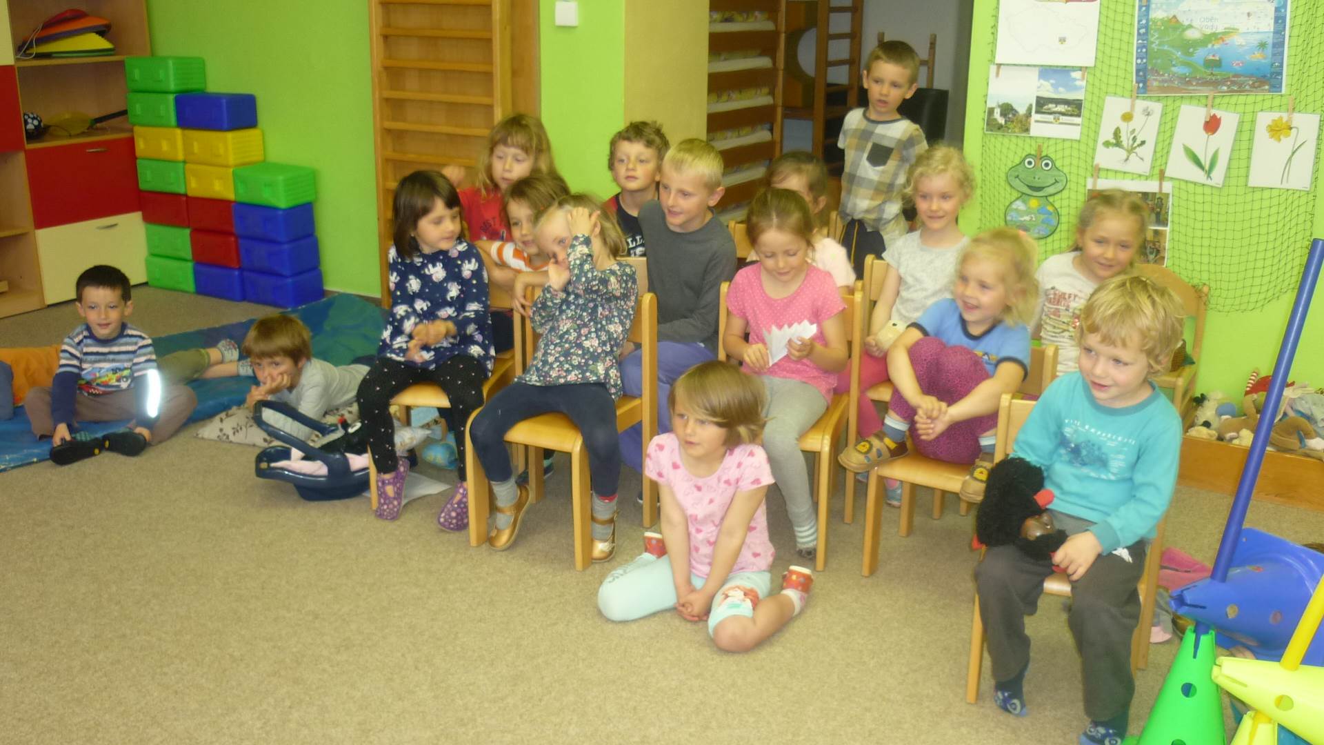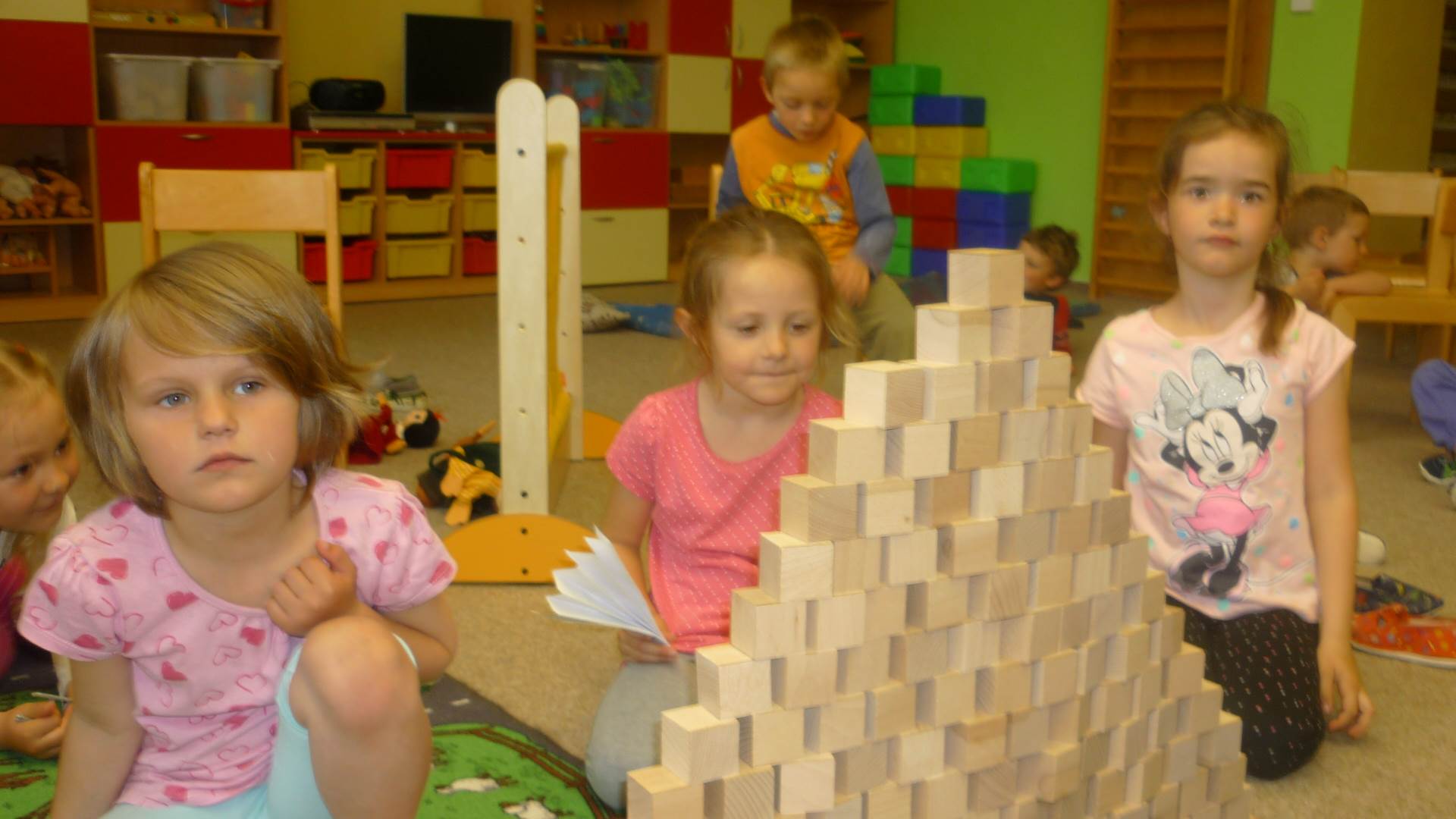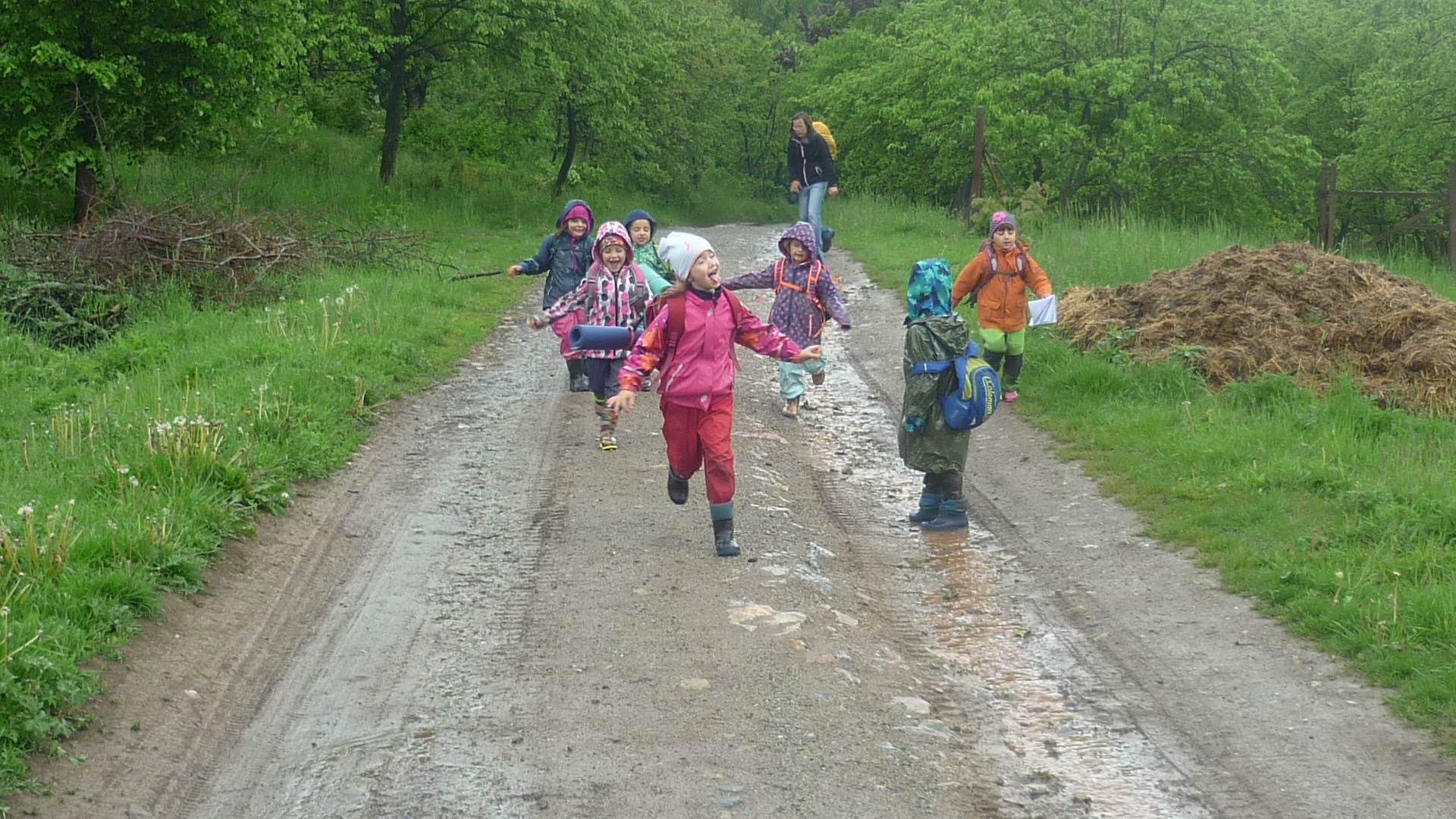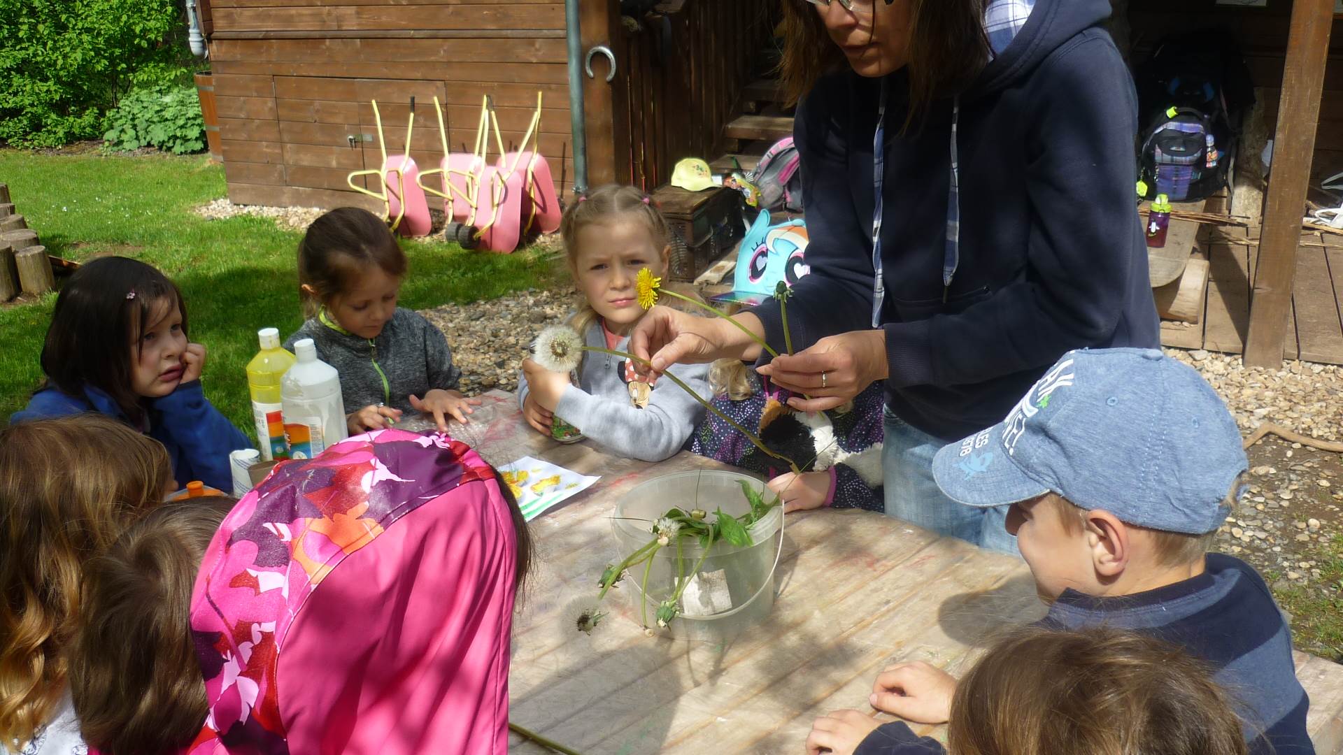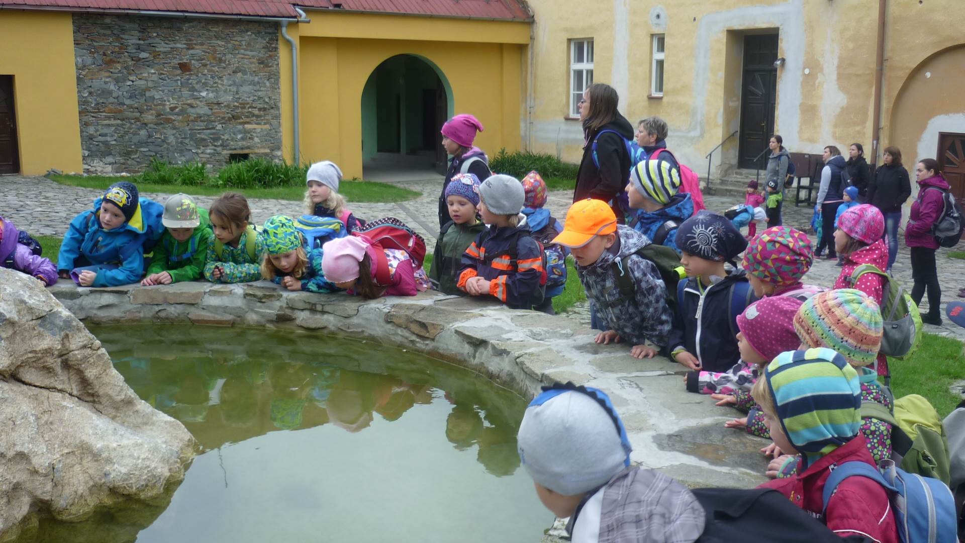 Prší, prší, jen se leje... Tak jsme zahájli tento týden v pláštěnkách! Ale vůbec nám to nevadí, můžeme alespoň sledovat, odkud a kam teče voda. Učíme se básničku Spadla kapka z okapu a vysvětlujeme si, co to ten okap vlastně je. Na cstě jsou proudy vody, na kterých si ukazujeme, jak vypadá mořská delta, co jsou vodopády, stavíme hráze a pouštíme po vodě lodičky z květů či listů. Další den se vyčasilo a všude je plno bílých pampelišek. Necháme se jimi inspirovat k výtvarné činnosti, ale zkoušíme i troubit na jejich stonky a spojovat je dohromady. Vysvětlujeme si, k čemu jsou ta bílá chmýříčka a jak se pampeiška rozmnožuje. Tvoření nás baví, tak zkoušíme ještě květy z obalu na vajíčka, včelu na plástu či rozkvetlou louku z vylisovaných květů. hrajeme maňáskové divadlo, stavíme z dřevěných kostek. Navštívili nás školáci z 5.třídy a vyrážme na výlet na hrad Bouzov, kde nás čeká rytířský turnaj. Na školní zahradě jsme objevili ještěrku a kouzlo vyšívání!
