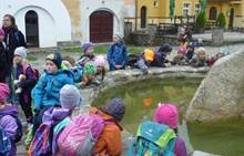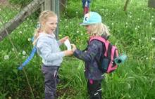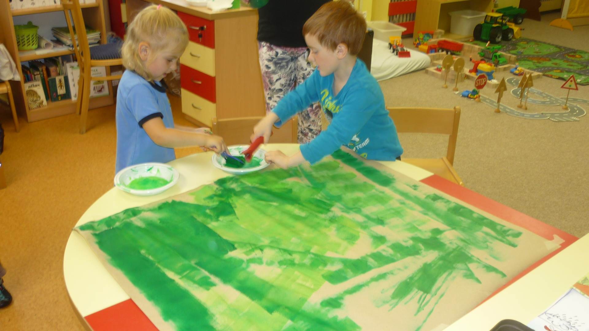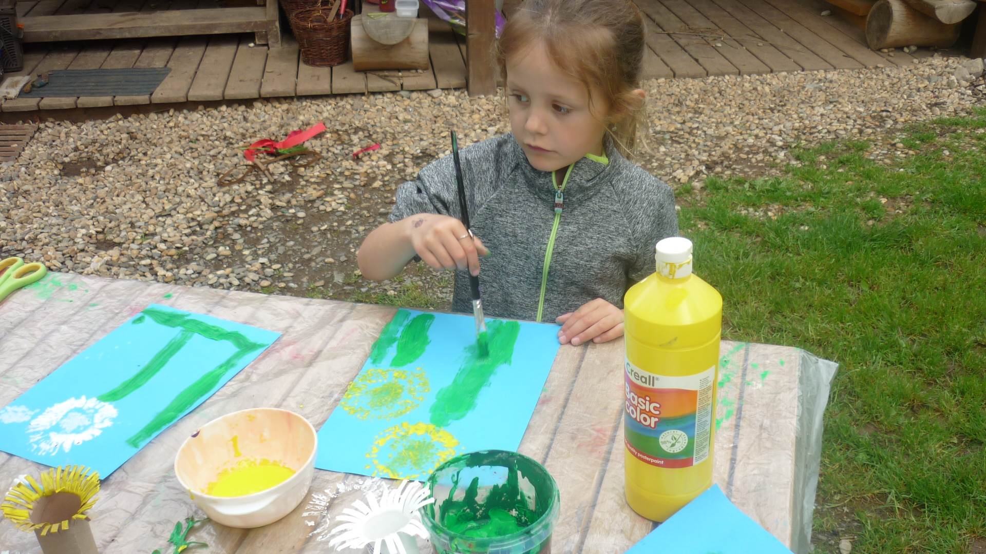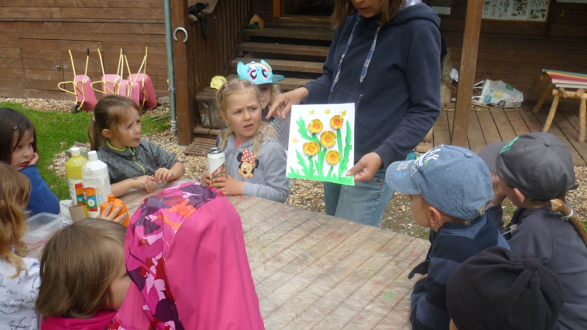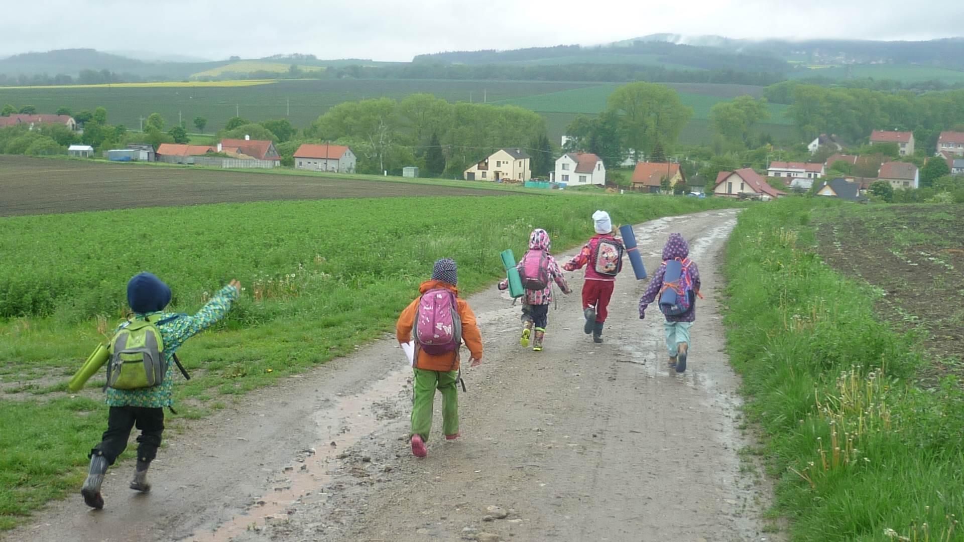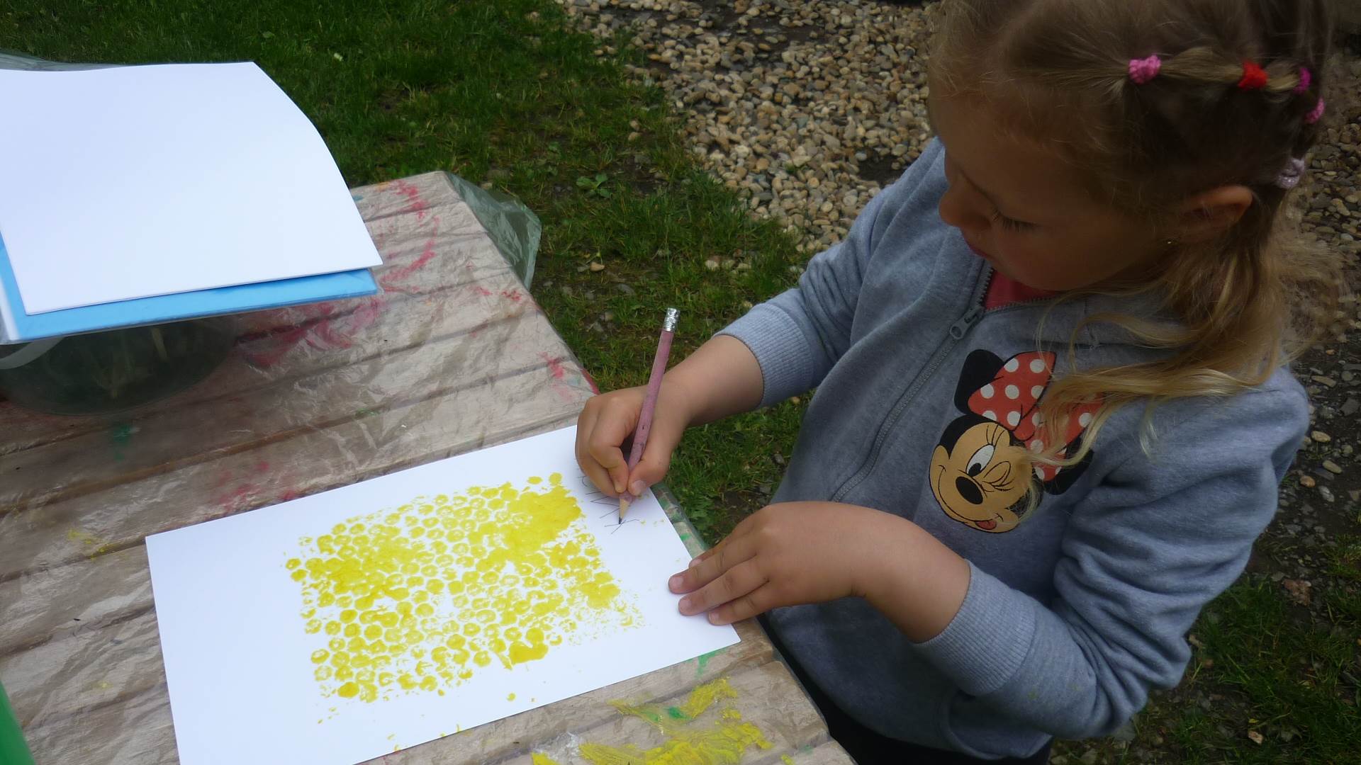 Prší, prší, jen se leje... Tak jsme zahájli tento týden v pláštěnkách! Ale vůbec nám to nevadí, můžeme alespoň sledovat, odkud a kam teče voda. Učíme se básničku Spadla kapka z okapu a vysvětlujeme si, co to ten okap vlastně je. Na cstě jsou proudy vody, na kterých si ukazujeme, jak vypadá mořská delta, co jsou vodopády, stavíme hráze a pouštíme po vodě lodičky z květů či listů. Další den se vyčasilo a všude je plno bílých pampelišek. Necháme se jimi inspirovat k výtvarné činnosti, ale zkoušíme i troubit na jejich stonky a spojovat je dohromady. Vysvětlujeme si, k čemu jsou ta bílá chmýříčka a jak se pampeiška rozmnožuje. Tvoření nás baví, tak zkoušíme ještě květy z obalu na vajíčka, včelu na plástu či rozkvetlou louku z vylisovaných květů. hrajeme maňáskové divadlo, stavíme z dřevěných kostek. Navštívili nás školáci z 5.třídy a vyrážme na výlet na hrad Bouzov, kde nás čeká rytířský turnaj. Na školní zahradě jsme objevili ještěrku a kouzlo vyšívání!