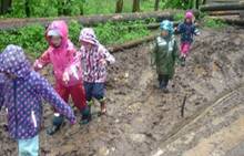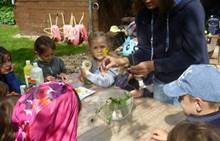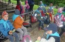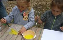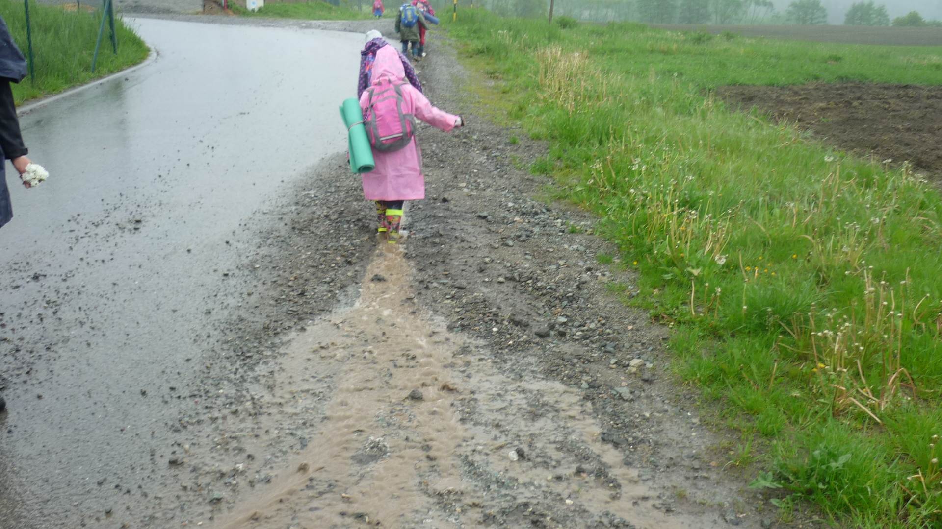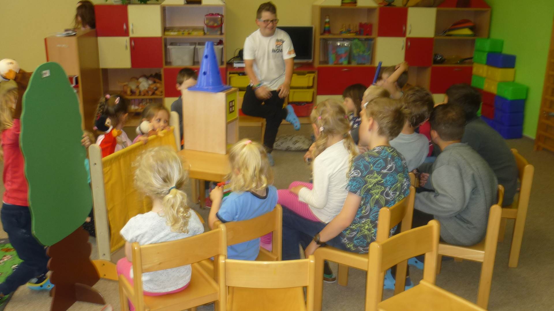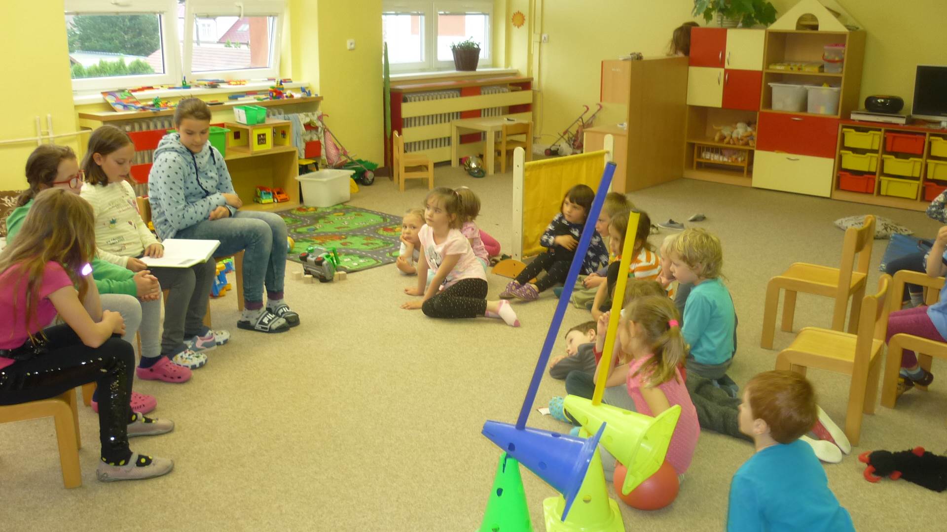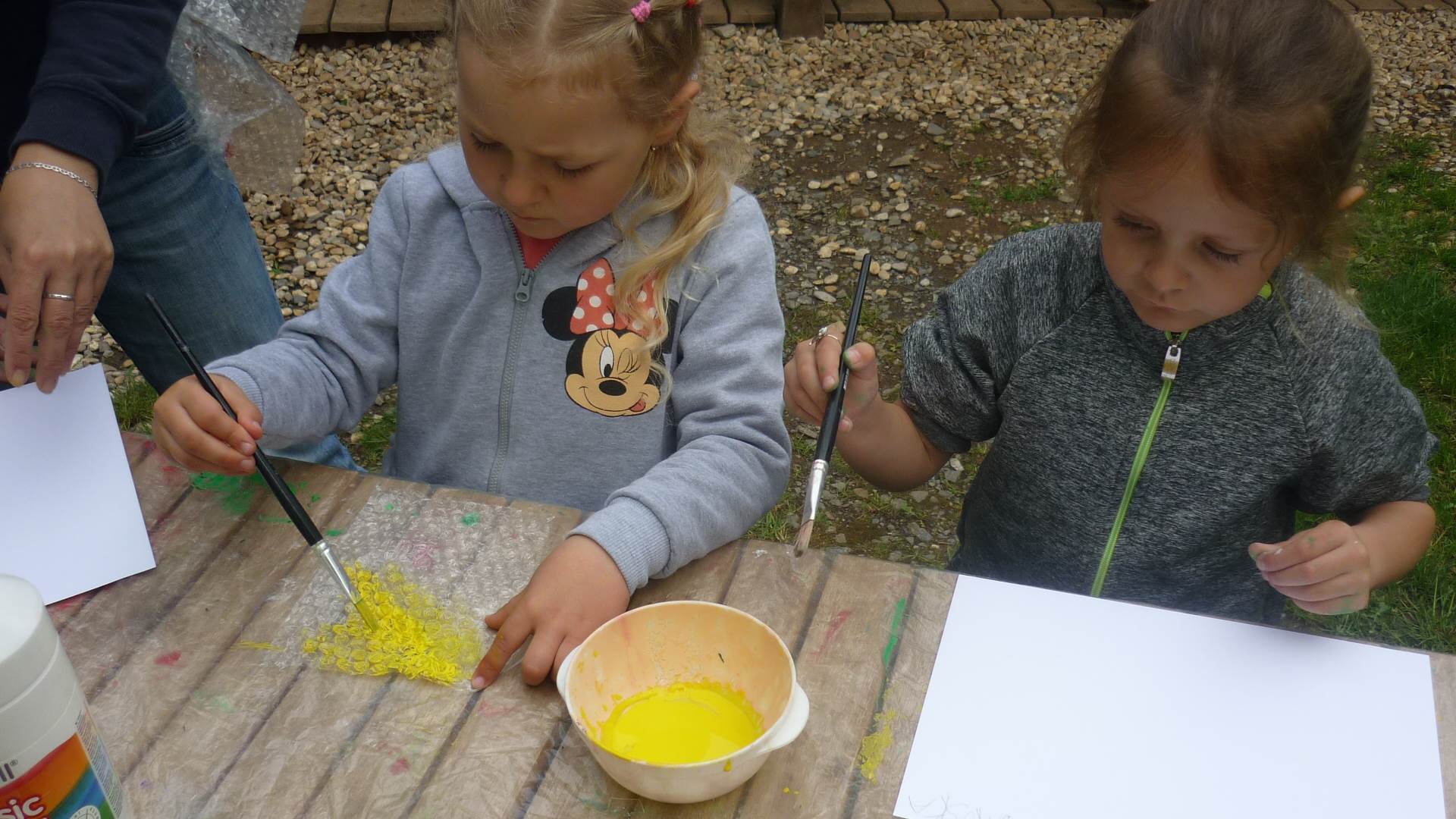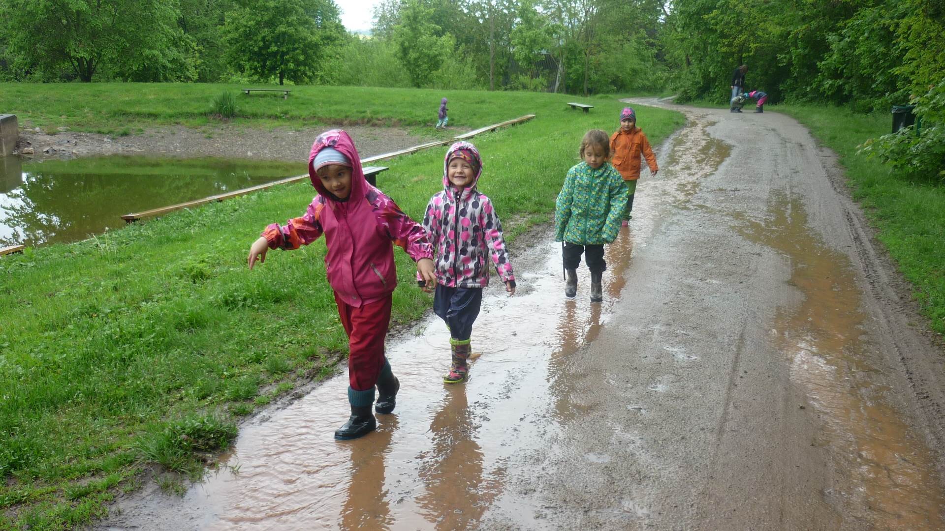 Prší, prší, jen se leje... Tak jsme zahájli tento týden v pláštěnkách! Ale vůbec nám to nevadí, můžeme alespoň sledovat, odkud a kam teče voda. Učíme se básničku Spadla kapka z okapu a vysvětlujeme si, co to ten okap vlastně je. Na cstě jsou proudy vody, na kterých si ukazujeme, jak vypadá mořská delta, co jsou vodopády, stavíme hráze a pouštíme po vodě lodičky z květů či listů. Další den se vyčasilo a všude je plno bílých pampelišek. Necháme se jimi inspirovat k výtvarné činnosti, ale zkoušíme i troubit na jejich stonky a spojovat je dohromady. Vysvětlujeme si, k čemu jsou ta bílá chmýříčka a jak se pampeiška rozmnožuje. Tvoření nás baví, tak zkoušíme ještě květy z obalu na vajíčka, včelu na plástu či rozkvetlou louku z vylisovaných květů. hrajeme maňáskové divadlo, stavíme z dřevěných kostek. Navštívili nás školáci z 5.třídy a vyrážme na výlet na hrad Bouzov, kde nás čeká rytířský turnaj. Na školní zahradě jsme objevili ještěrku a kouzlo vyšívání!