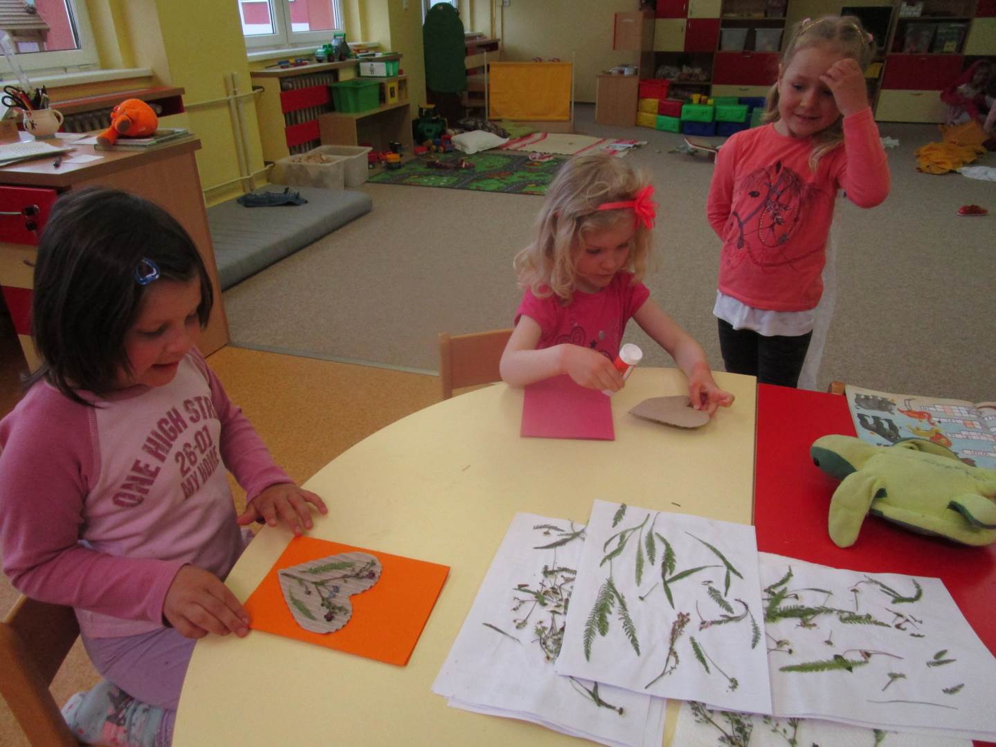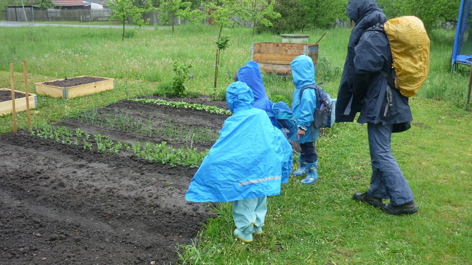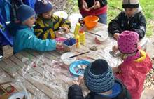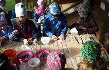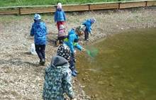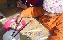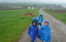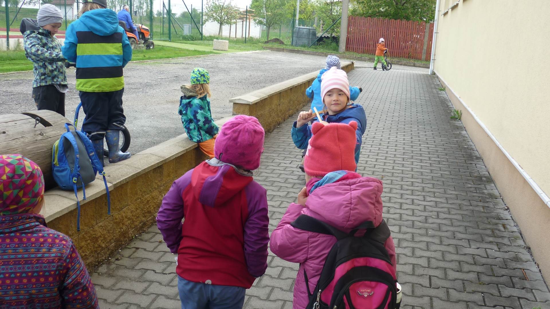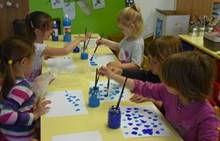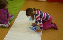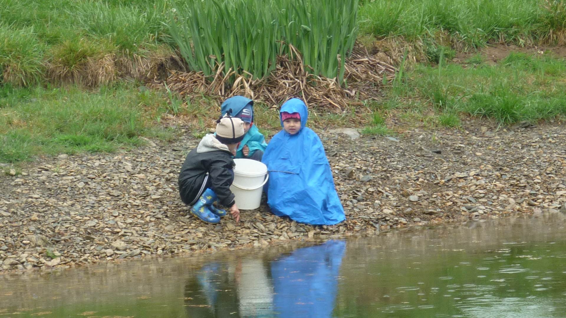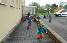 Připravujeme se na Den matek a Den rodiny. Ráno jezdíme na koloběžkách, abychom procvičili hrubou motoriku, a pak teprve vyrážíme k lesu. U rybníčka nás zajímají hlavně pulci. Povídáme si o maminkách, jak se jmenují, co všechno doma musí zvládnout a jak jim s tím můžeme pomoci. Učíme se básničku a vyrábíme srdíčka z klacíků a přáníčka z vylisovaných květů. Po dešti sledujeme, co kde roste, povídáme si, kde se déšť bere a vodu si i malujeme.