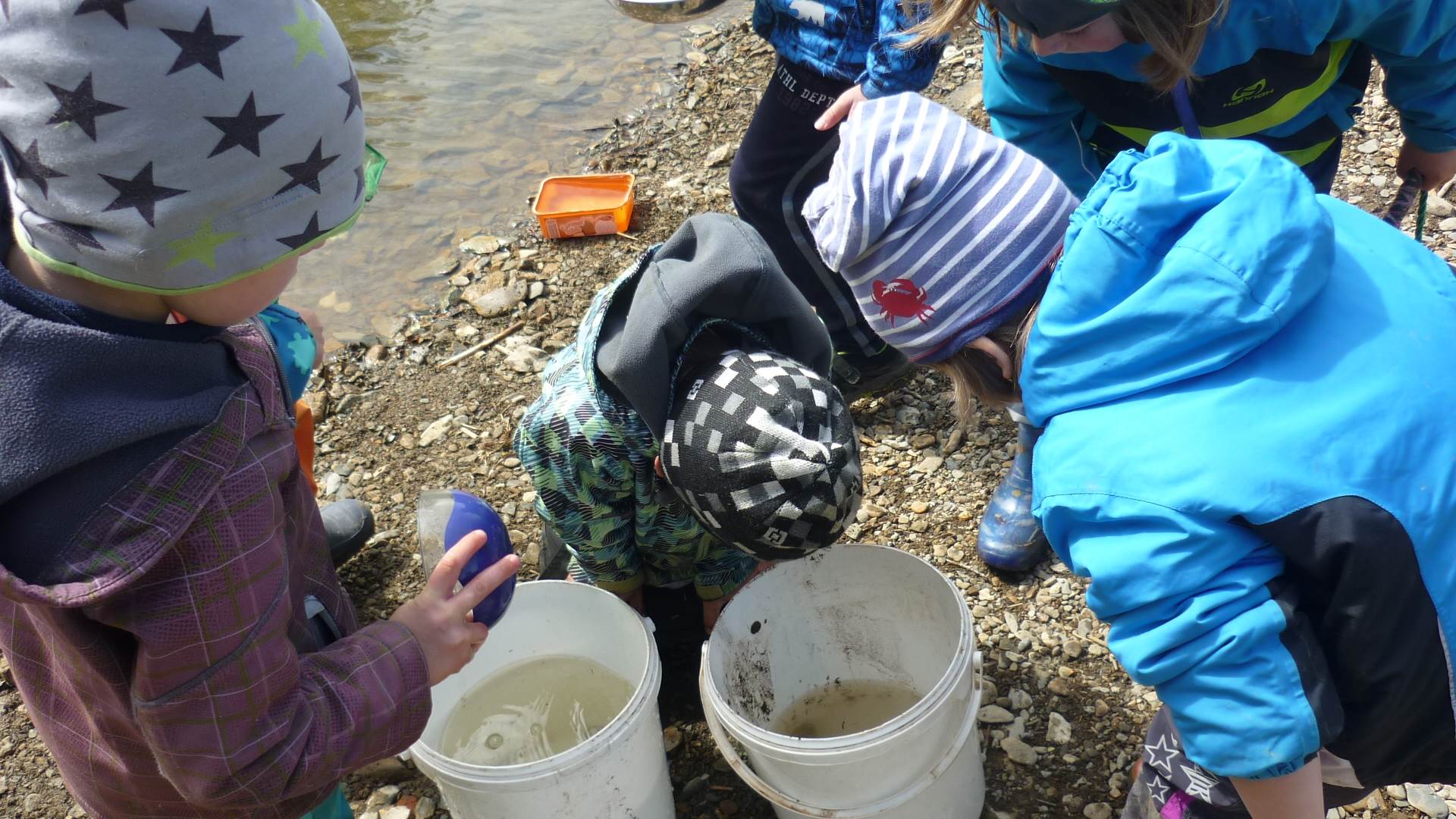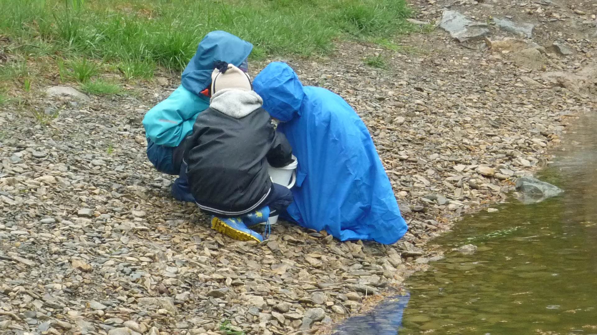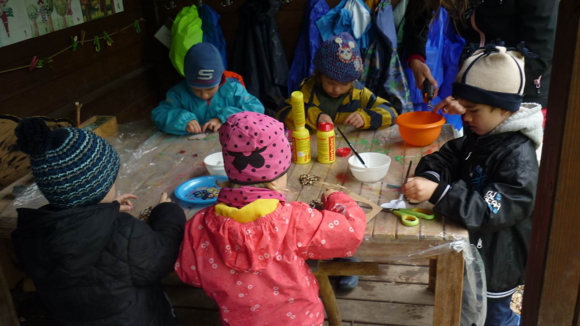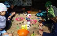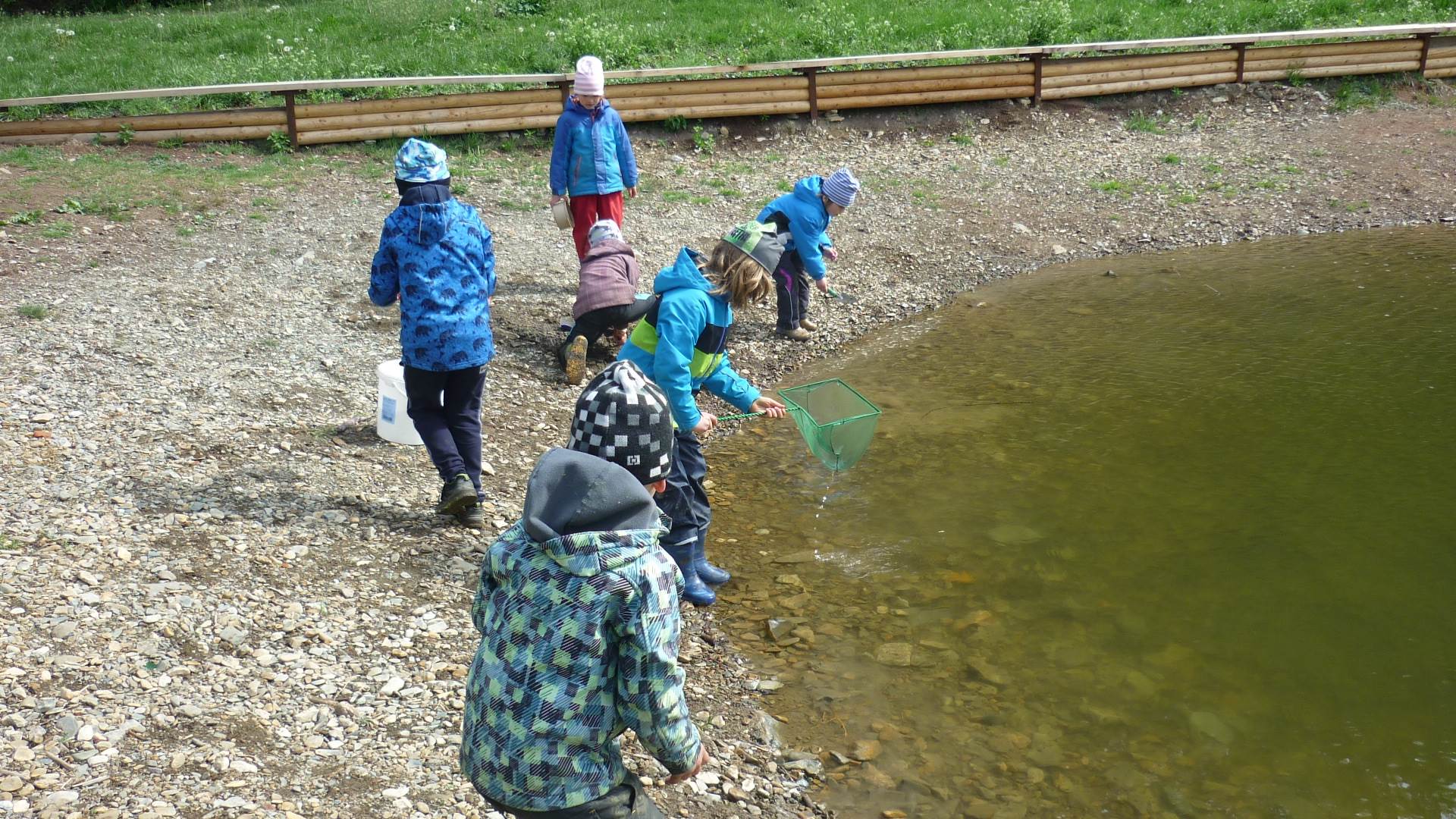 Připravujeme se na Den matek a Den rodiny. Ráno jezdíme na koloběžkách, abychom procvičili hrubou motoriku, a pak teprve vyrážíme k lesu. U rybníčka nás zajímají hlavně pulci. Povídáme si o maminkách, jak se jmenují, co všechno doma musí zvládnout a jak jim s tím můžeme pomoci. Učíme se básničku a vyrábíme srdíčka z klacíků a přáníčka z vylisovaných květů. Po dešti sledujeme, co kde roste, povídáme si, kde se déšť bere a vodu si i malujeme.