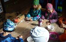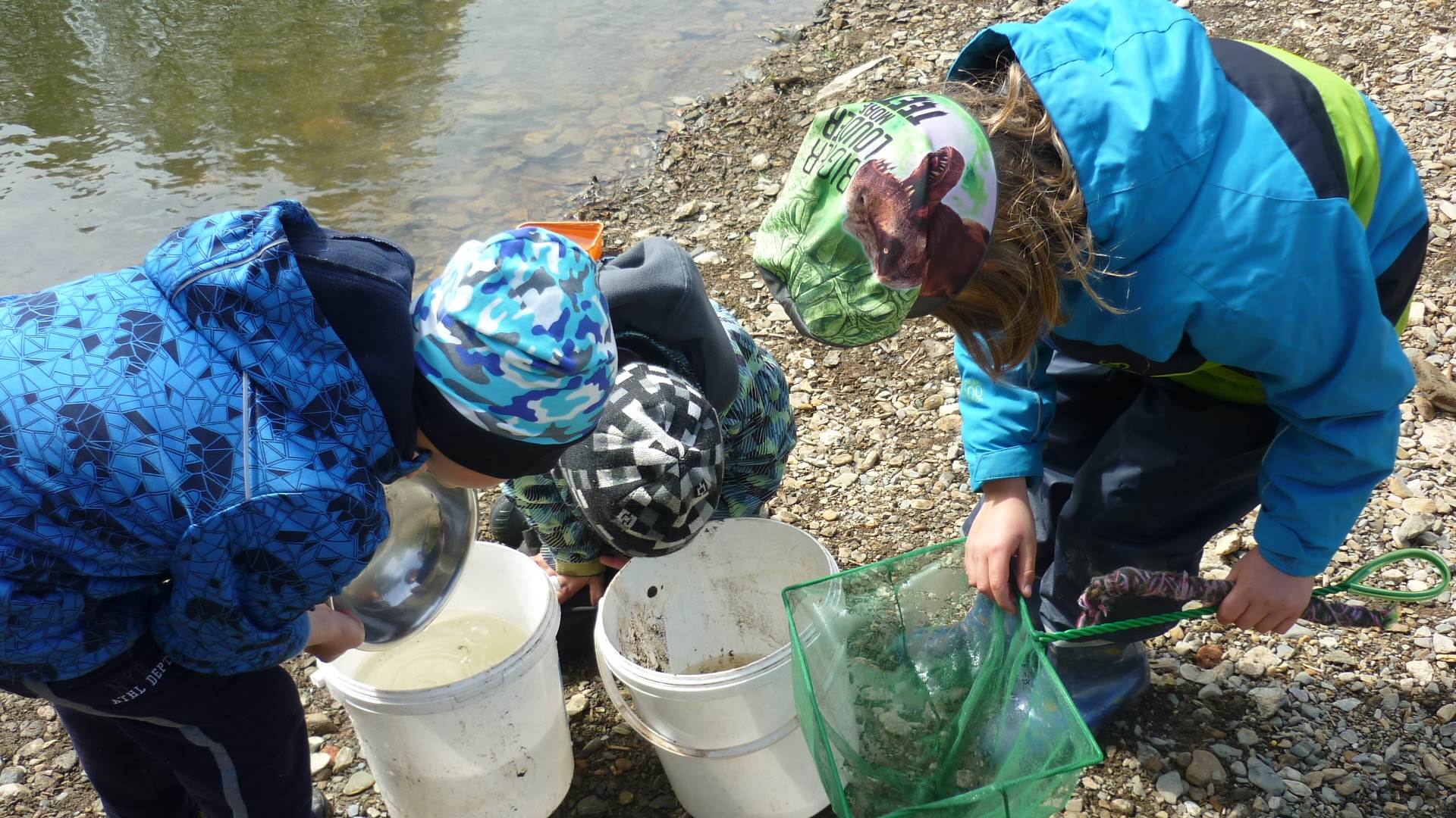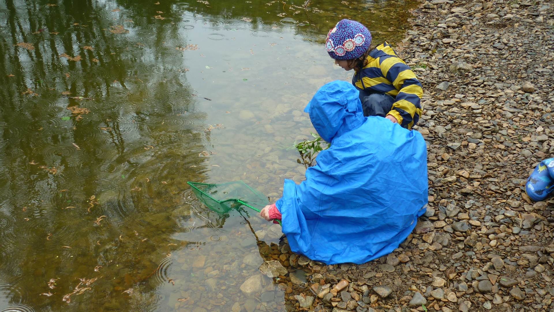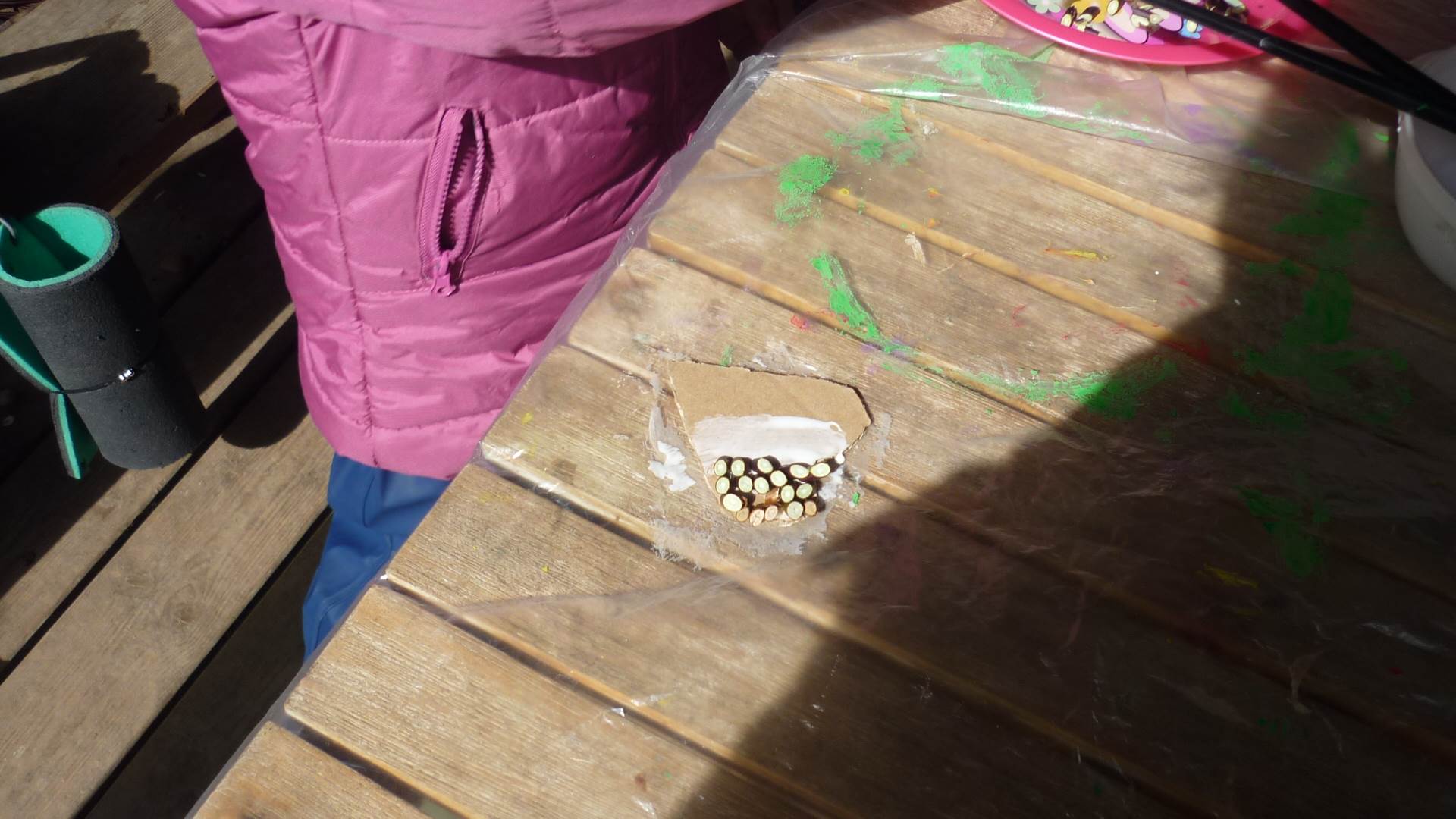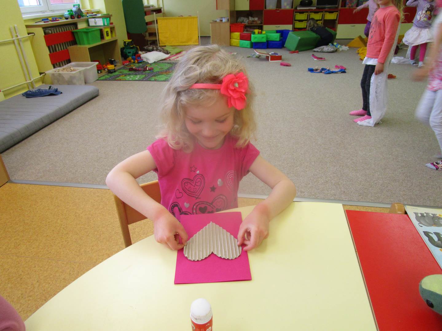 Připravujeme se na Den matek a Den rodiny. Ráno jezdíme na koloběžkách, abychom procvičili hrubou motoriku, a pak teprve vyrážíme k lesu. U rybníčka nás zajímají hlavně pulci. Povídáme si o maminkách, jak se jmenují, co všechno doma musí zvládnout a jak jim s tím můžeme pomoci. Učíme se básničku a vyrábíme srdíčka z klacíků a přáníčka z vylisovaných květů. Po dešti sledujeme, co kde roste, povídáme si, kde se déšť bere a vodu si i malujeme.