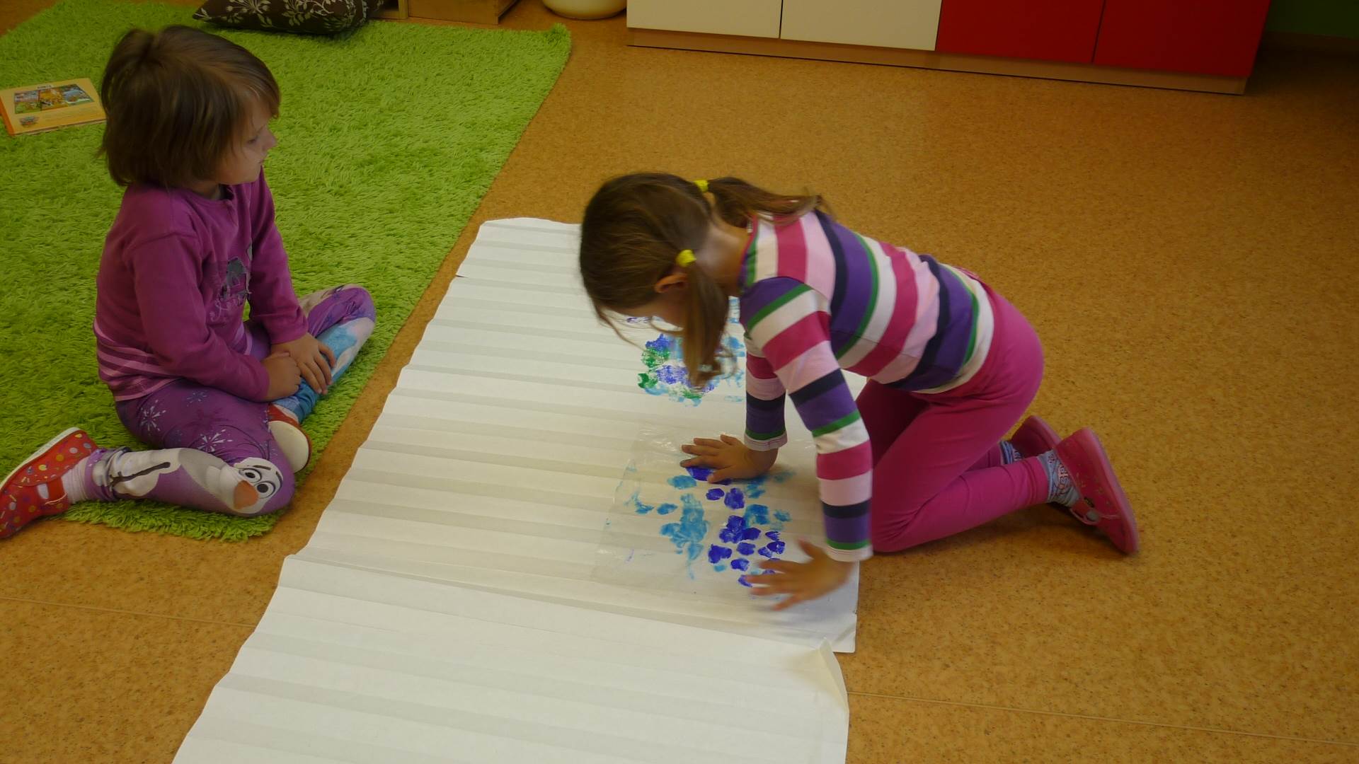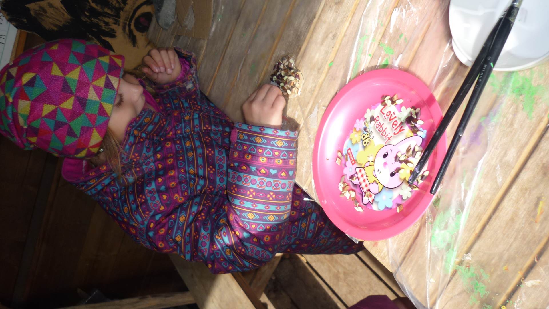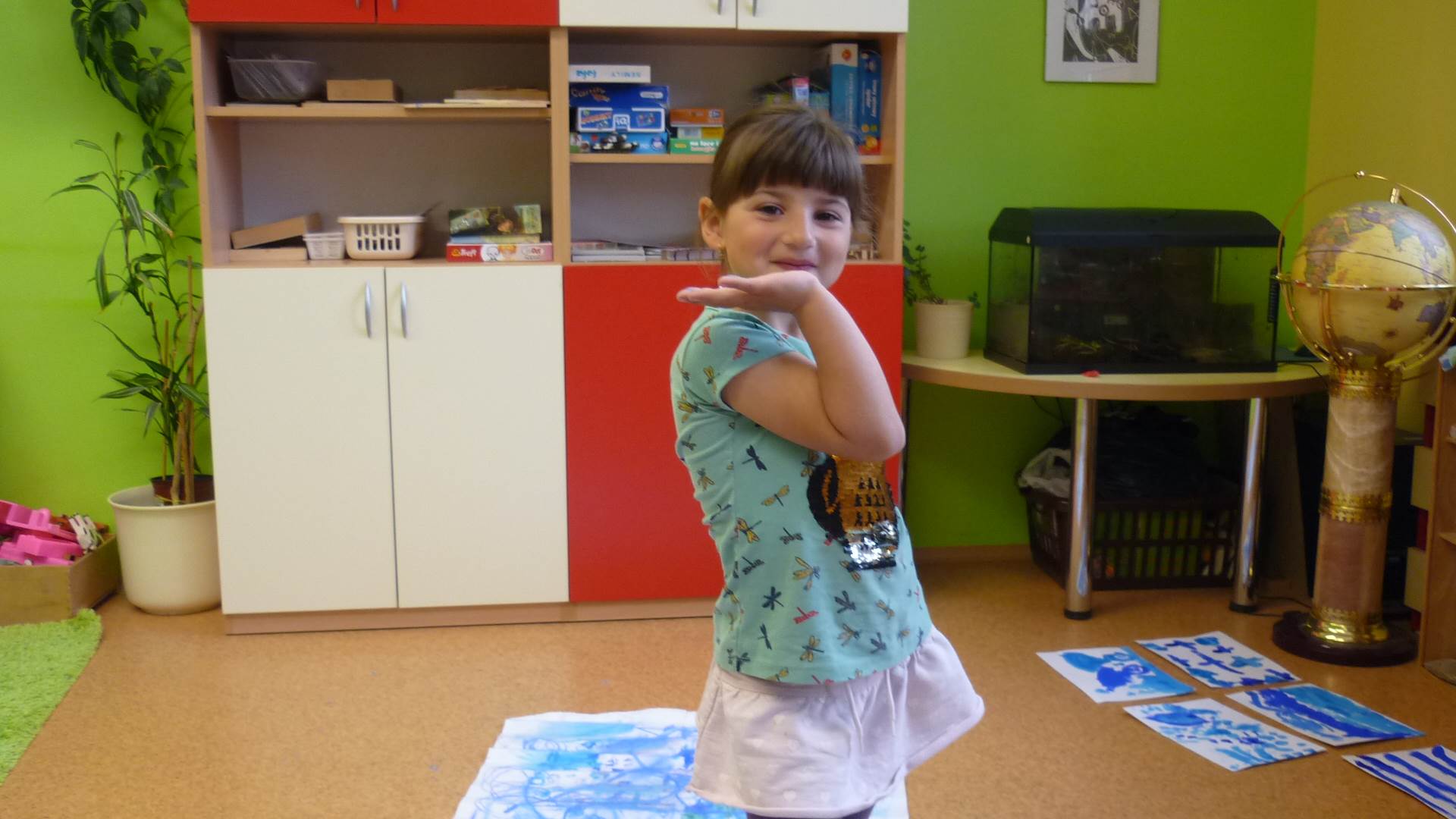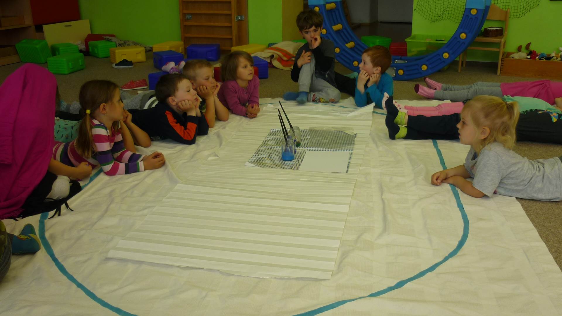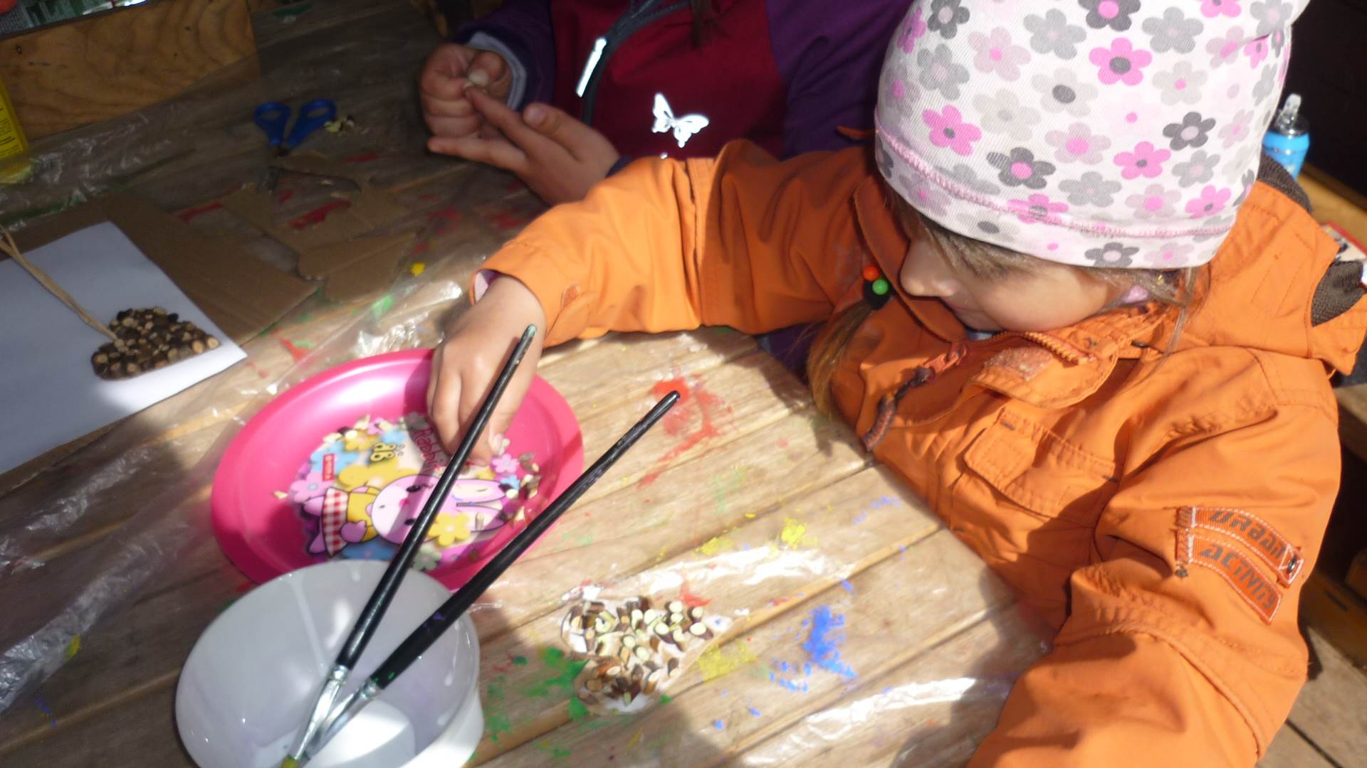 Připravujeme se na Den matek a Den rodiny. Ráno jezdíme na koloběžkách, abychom procvičili hrubou motoriku, a pak teprve vyrážíme k lesu. U rybníčka nás zajímají hlavně pulci. Povídáme si o maminkách, jak se jmenují, co všechno doma musí zvládnout a jak jim s tím můžeme pomoci. Učíme se básničku a vyrábíme srdíčka z klacíků a přáníčka z vylisovaných květů. Po dešti sledujeme, co kde roste, povídáme si, kde se déšť bere a vodu si i malujeme.