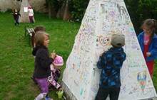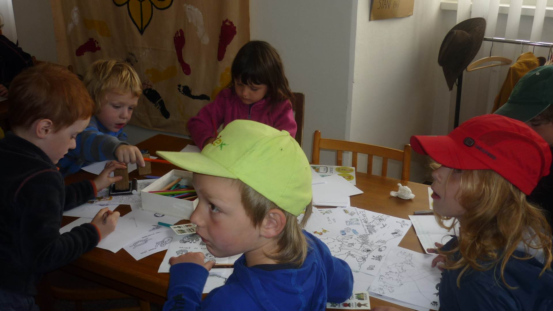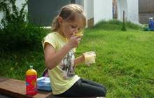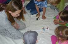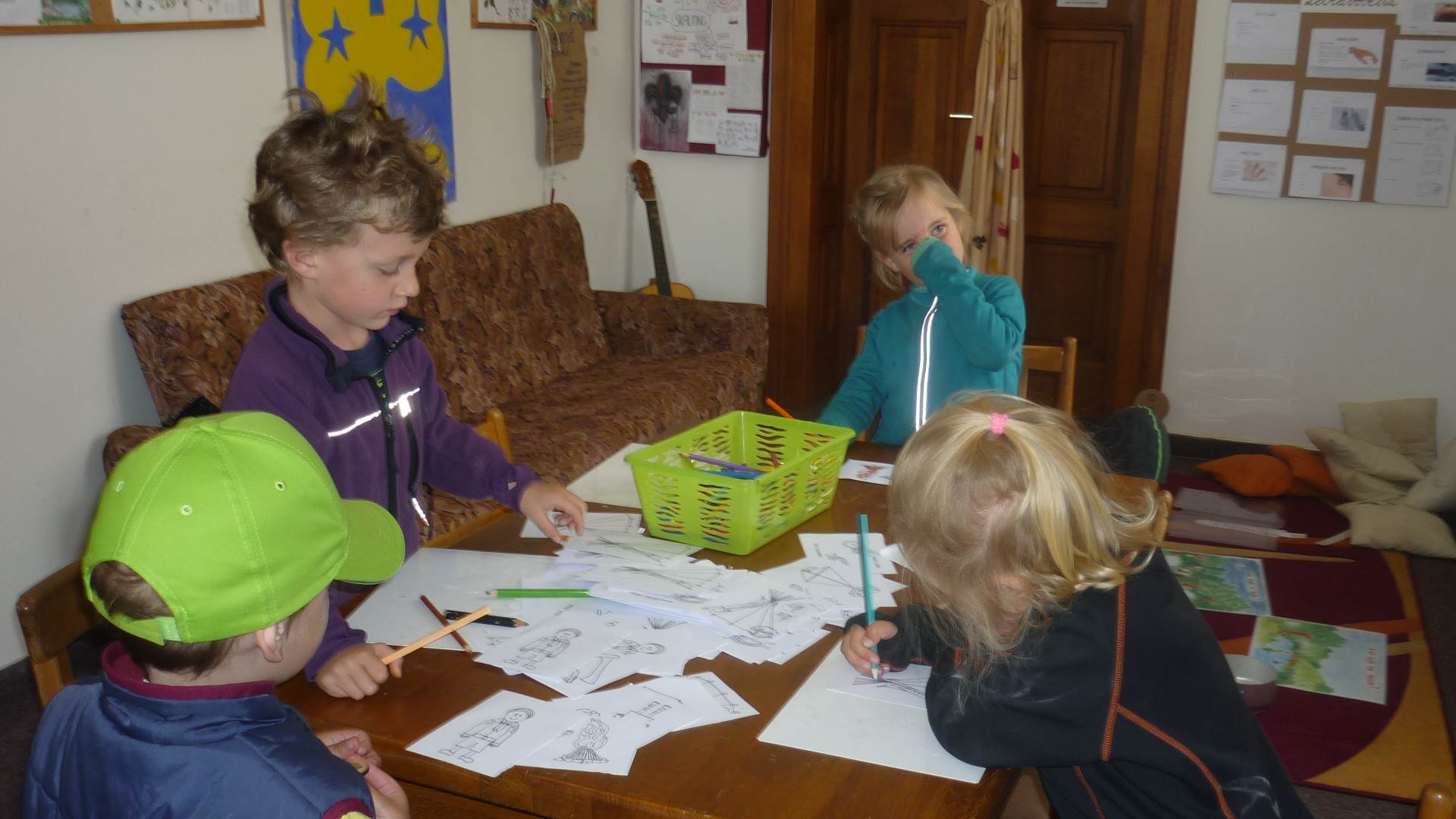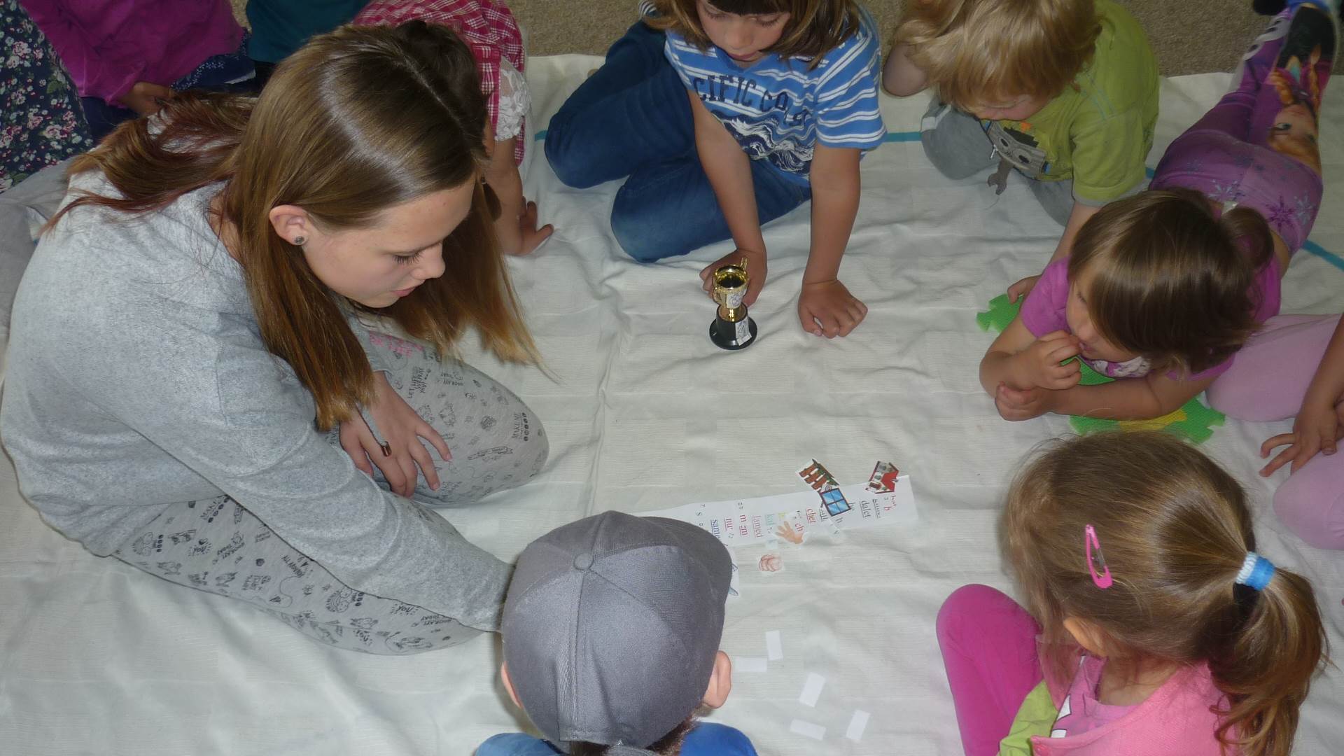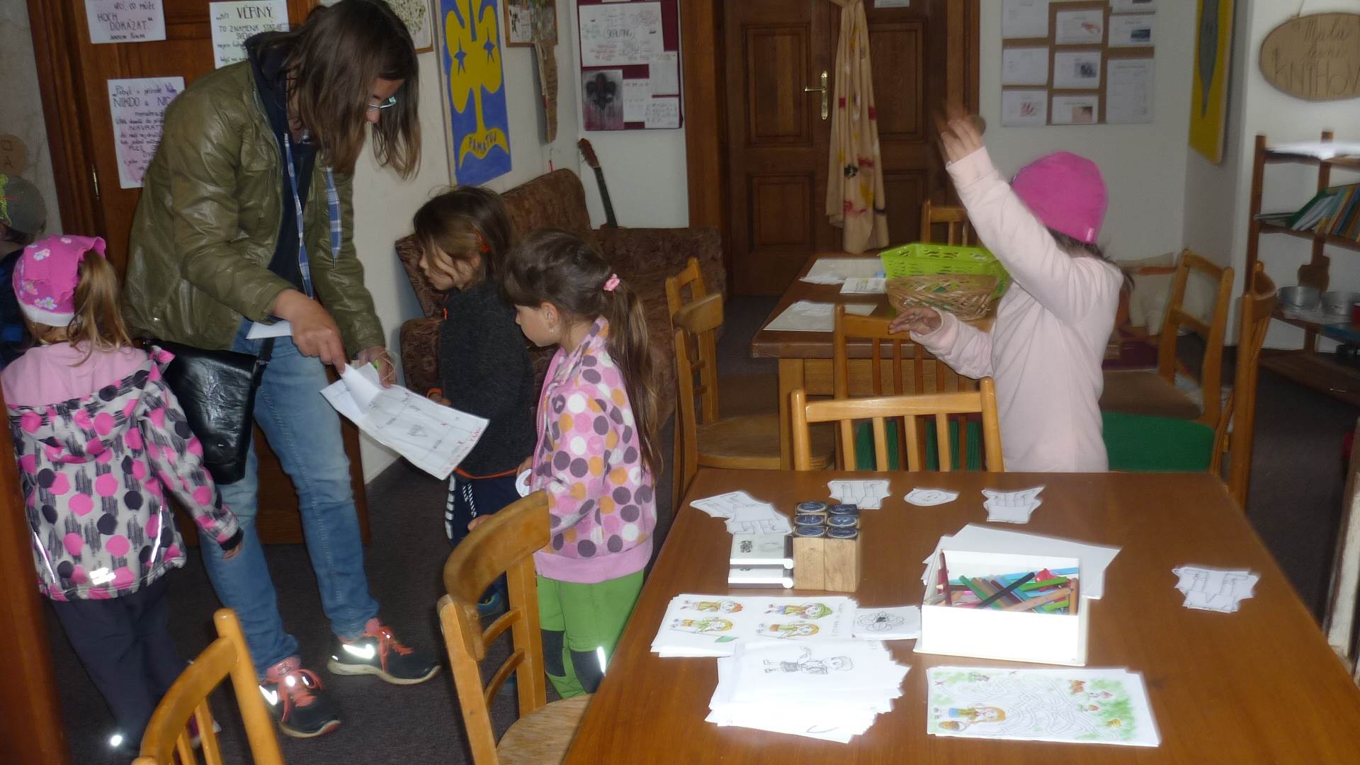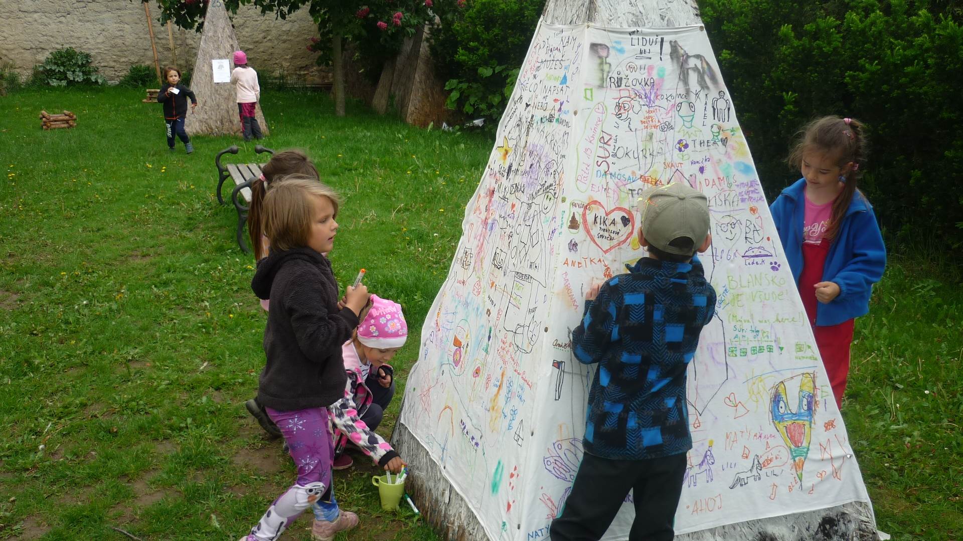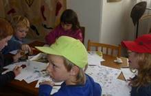 Hned v pondělí nás před obědem čekalo MUZIKODRAMA, tak jsme se moc daleko nevydávali. U pošty jsme skákali do terče (zákazu zastavení) tak usilovně a nahlas, až vyšla paní pošťačka a zacpala nám pusy bonbony. Je vidět, že tu pracují dobří lidé. Usadily se tu i vlaštovky, pozorovali jsme, jak krmí svá mláďata. Naproti u Dolníčků jsme si pohráli se štěňátkem a chvíli jsme pobyli i na farním dvoře. Další den jsme si udělali výlet do Boskovic na Výstavu skautingu. Plnili jsme různé úkoly a hledali poklad, ze kterého jsme si jednu věc mohli na památku odnést. To samé jsme umožnli i druhé skupince. Na Semíči jsme pozorovali a počítali káčátka a navštívila nás děvčata z deváté třídy s se svým projektem o hebrejské abecedě. Dozvěděli jsme se, jak se liší od té naší, české, kde se s ní můžeme setkat a co znamenají jednotlivá písmmena.
