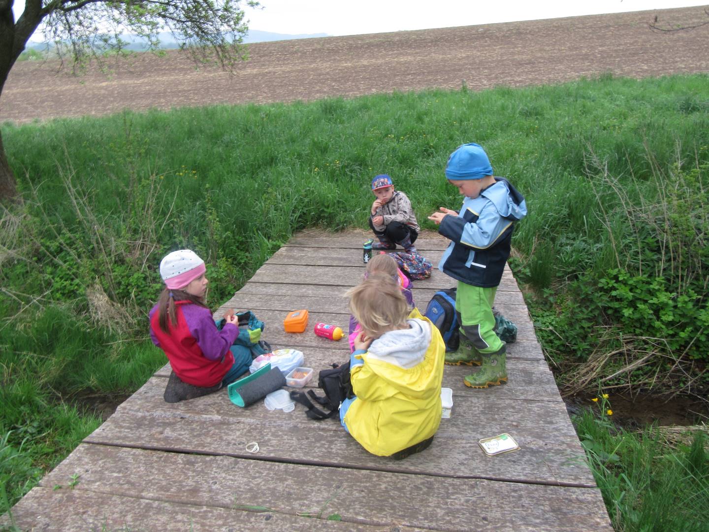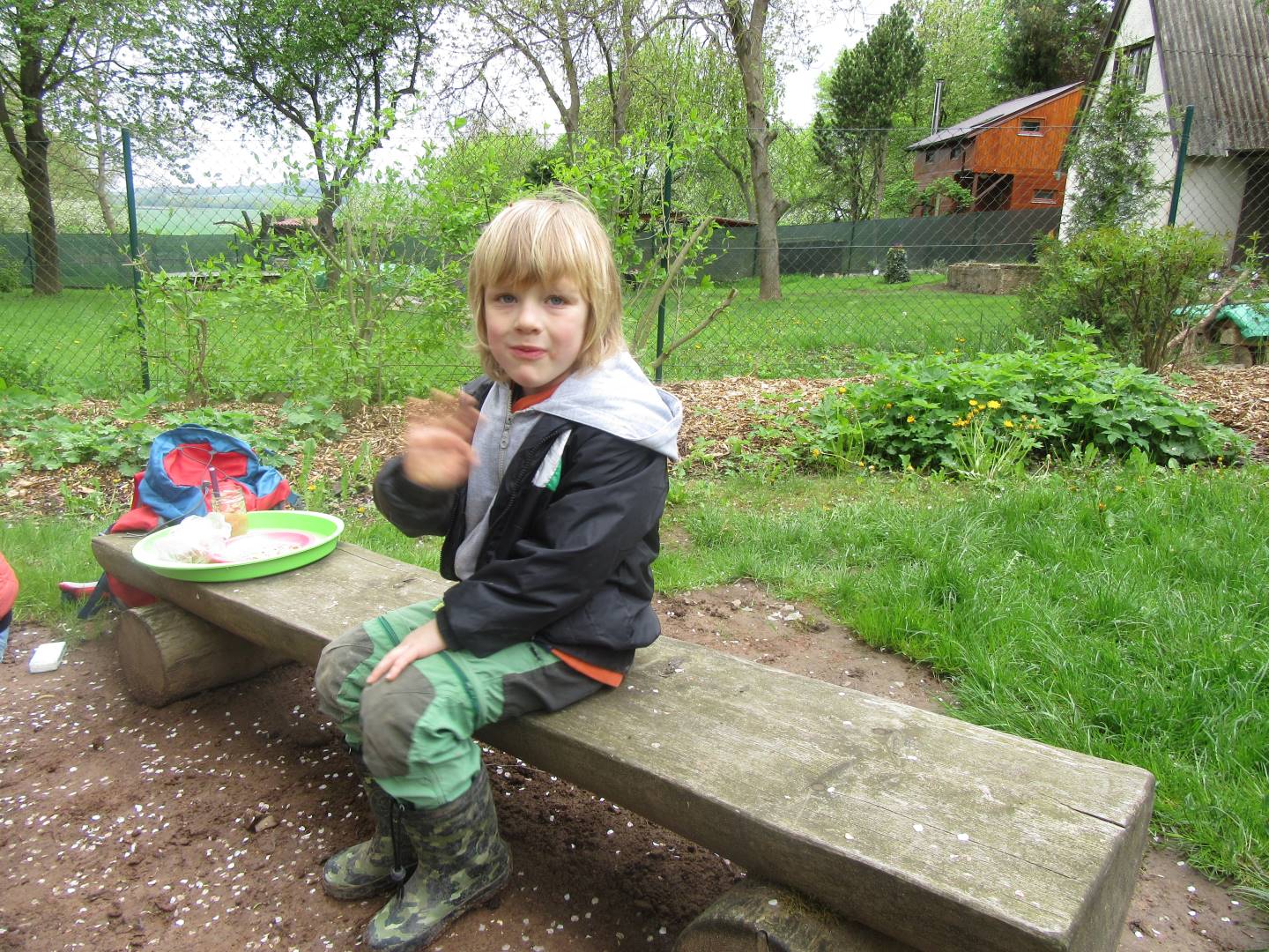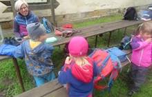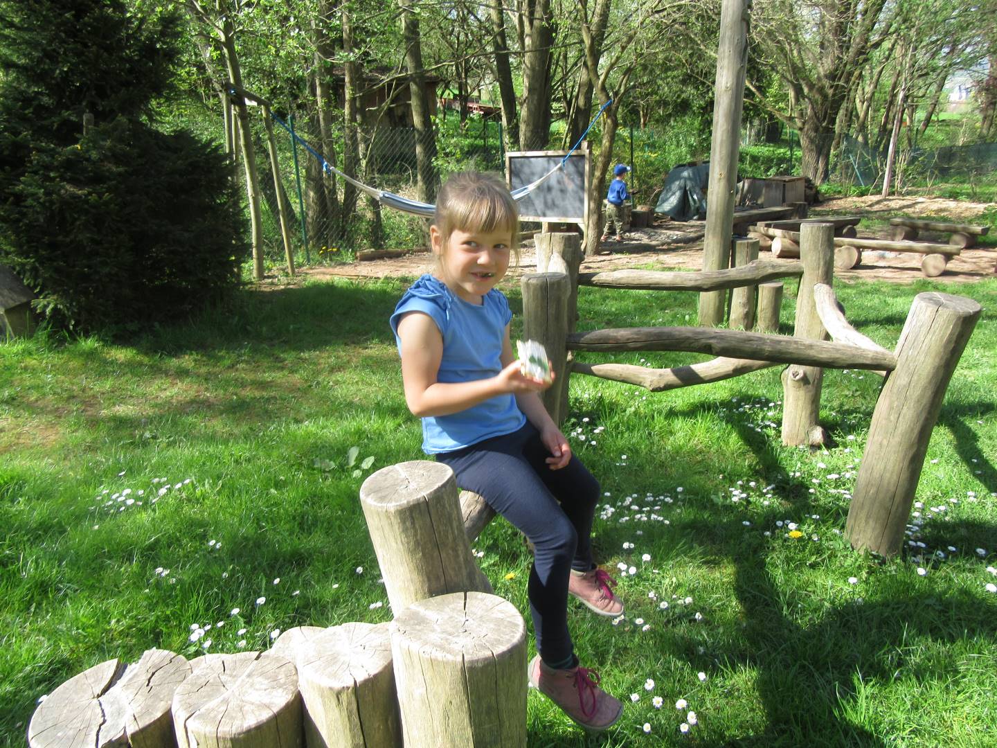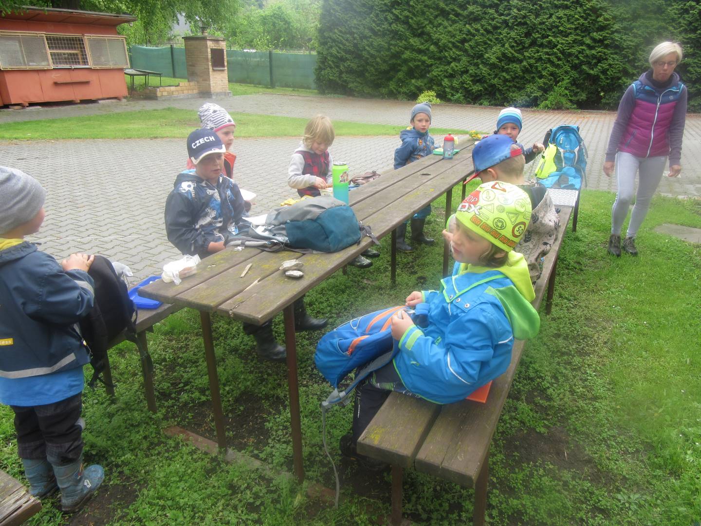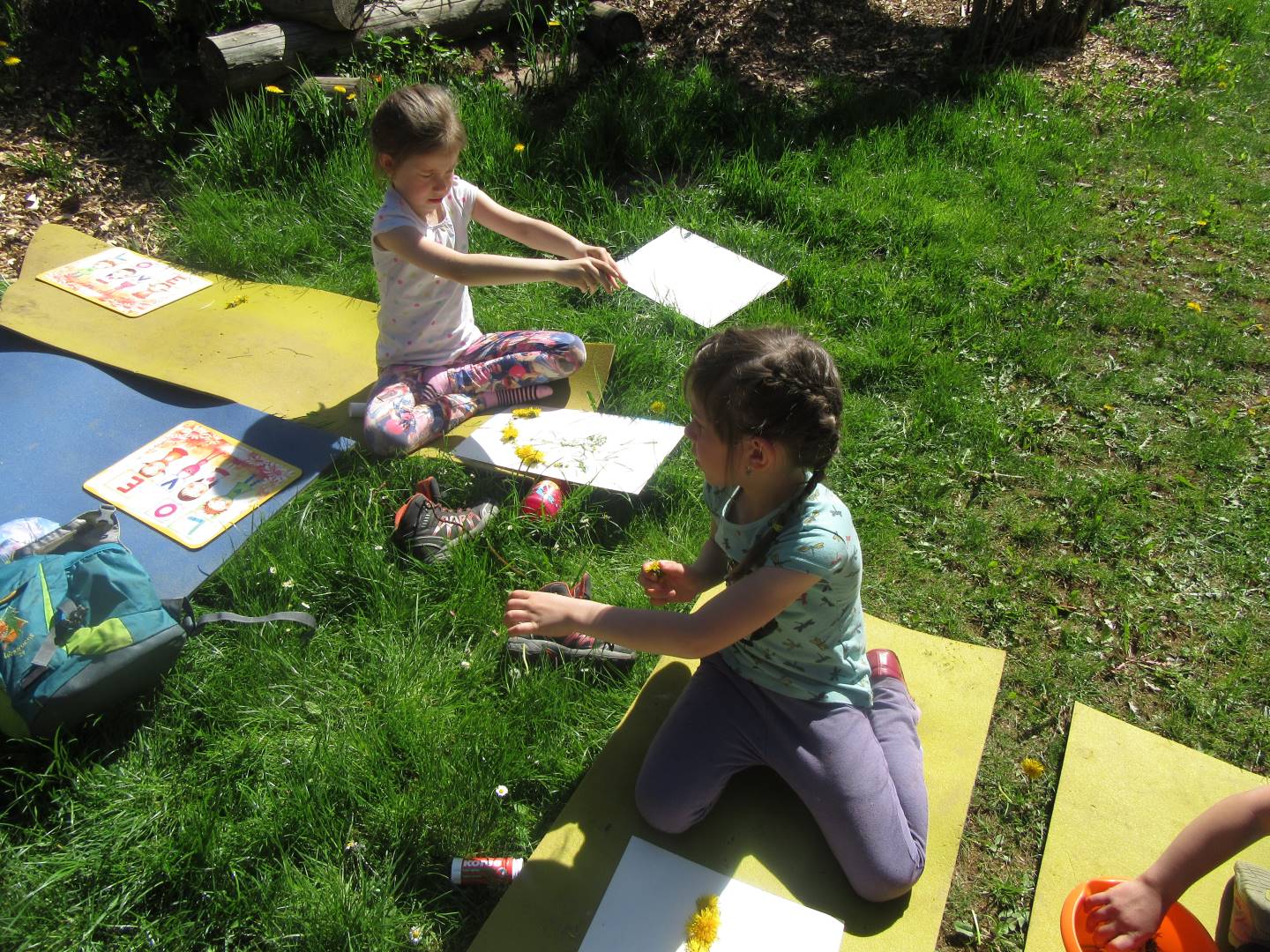 Záhonky v lesním zázemí začaly jarně plodit a holčičky i kluci se pustili do vyrábění pomazánek, obložených sucharů a dalších pochoutek z pažitky, medvědího česneku a sedmikrásek.
