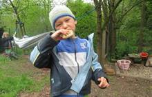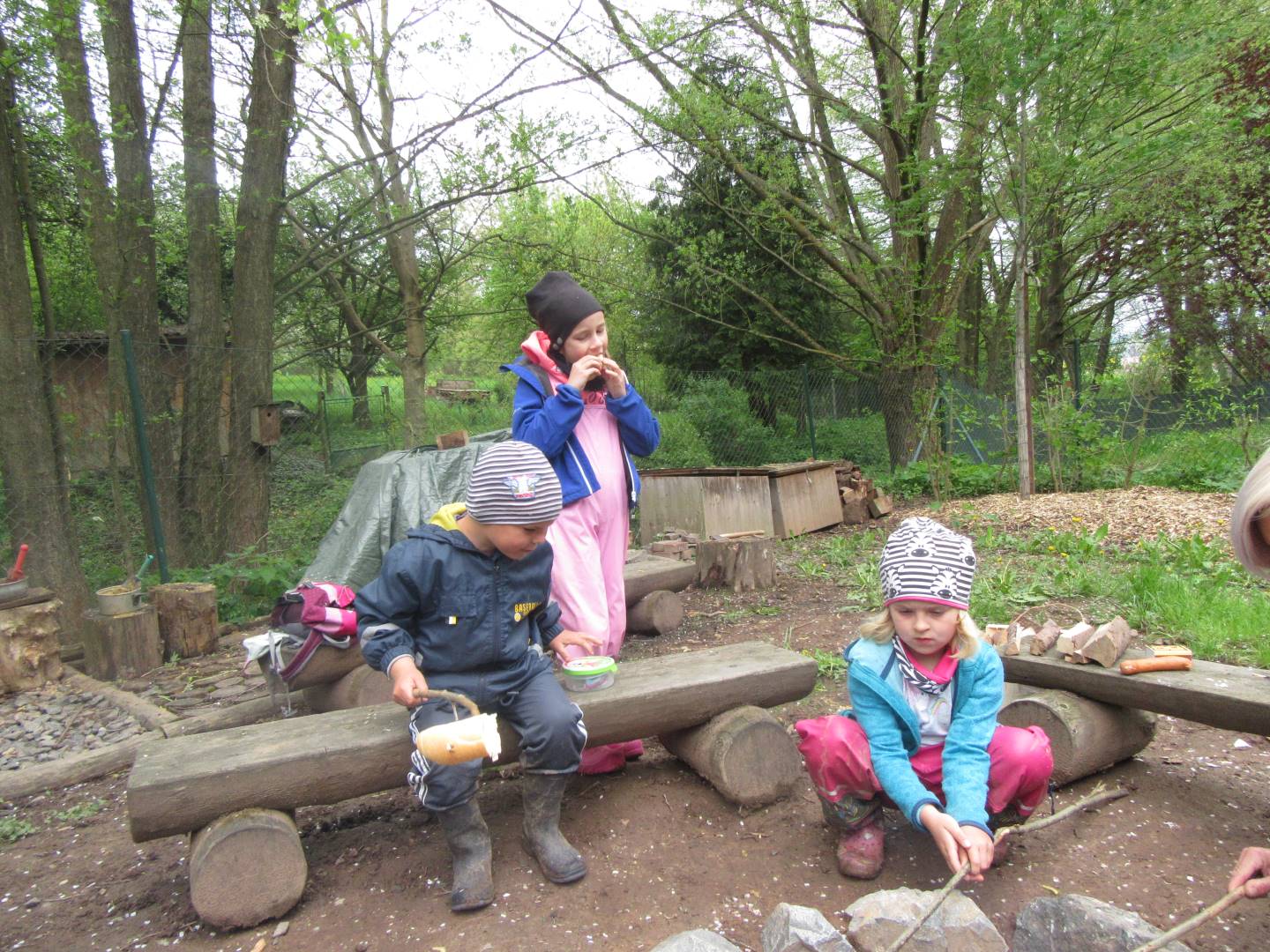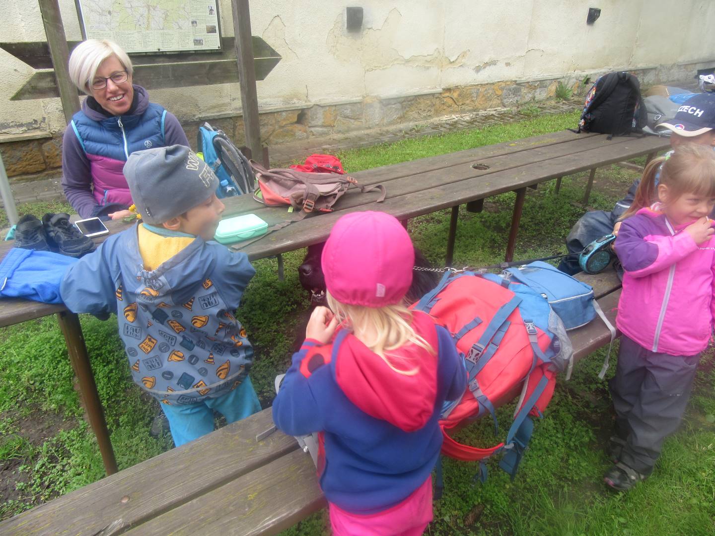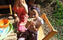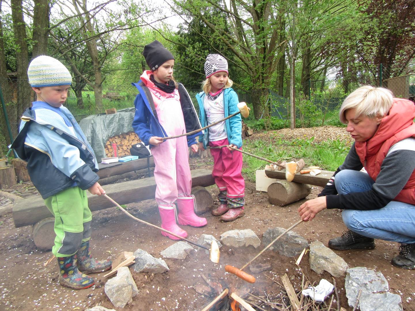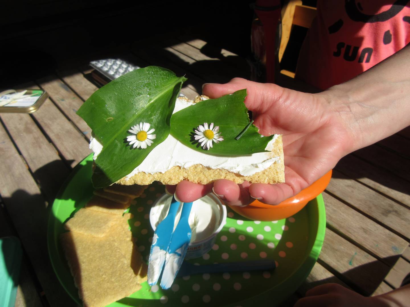 Záhonky v lesním zázemí začaly jarně plodit a holčičky i kluci se pustili do vyrábění pomazánek, obložených sucharů a dalších pochoutek z pažitky, medvědího česneku a sedmikrásek.