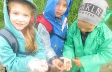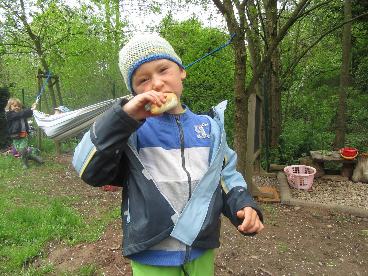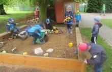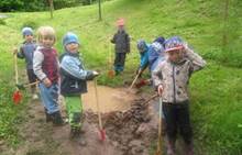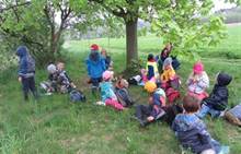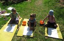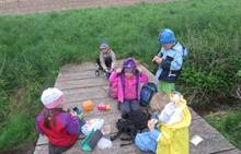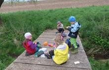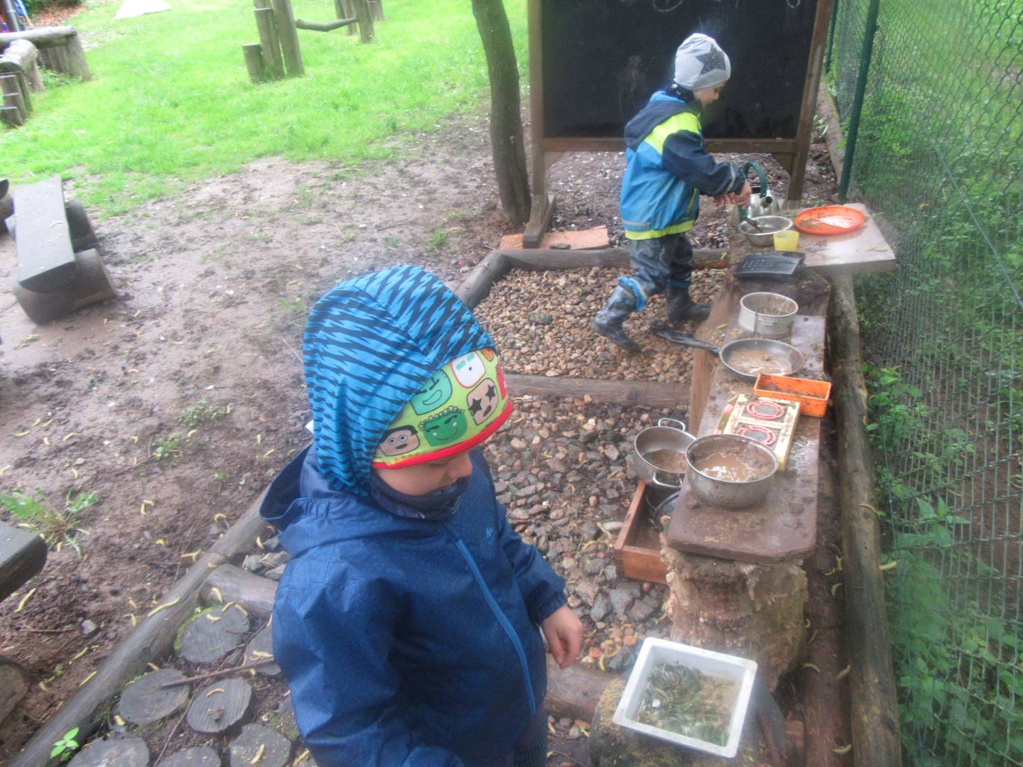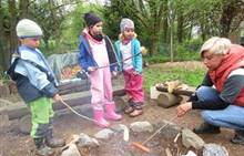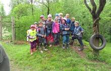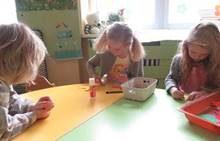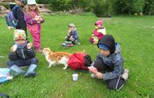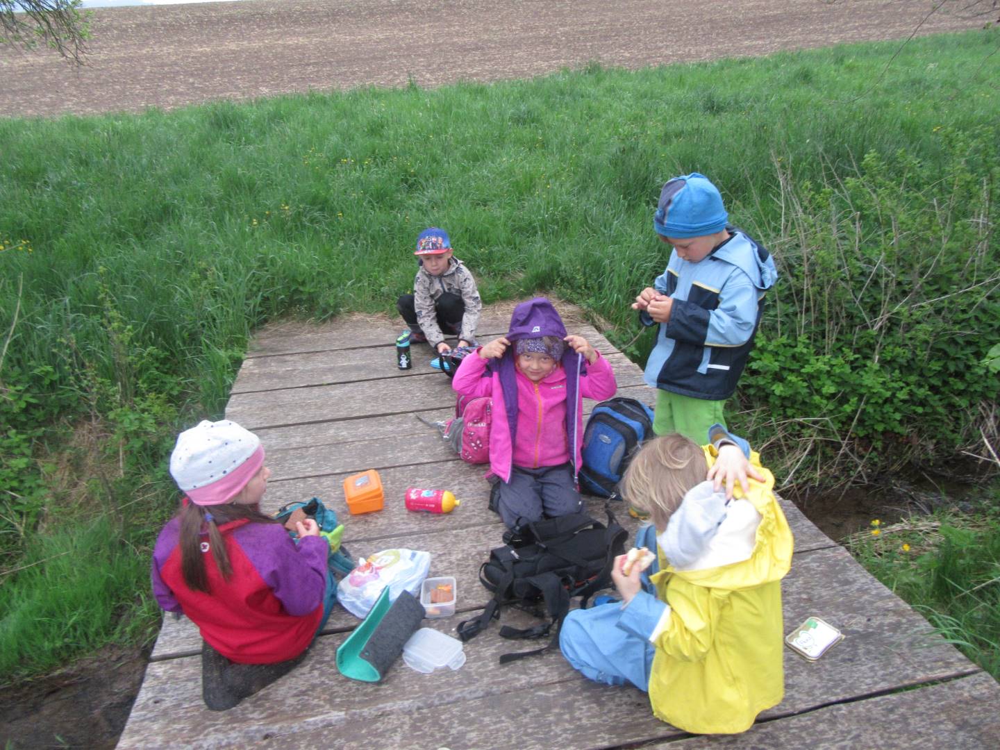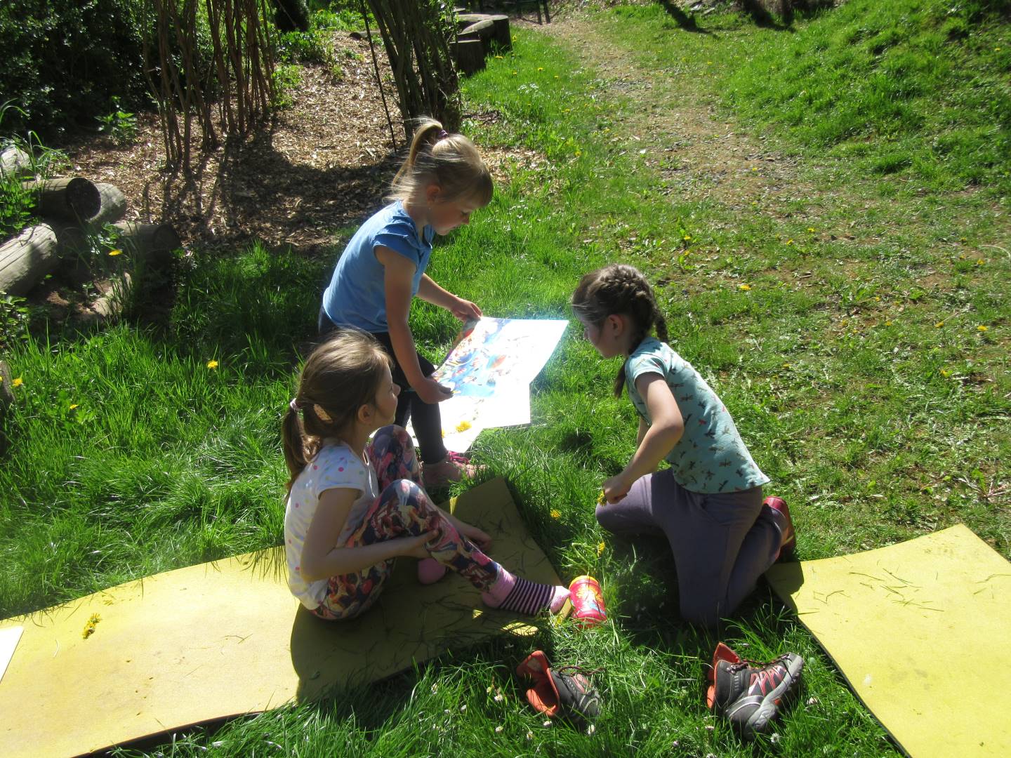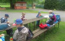 Záhonky v lesním zázemí začaly jarně plodit a holčičky i kluci se pustili do vyrábění pomazánek, obložených sucharů a dalších pochoutek z pažitky, medvědího česneku a sedmikrásek.