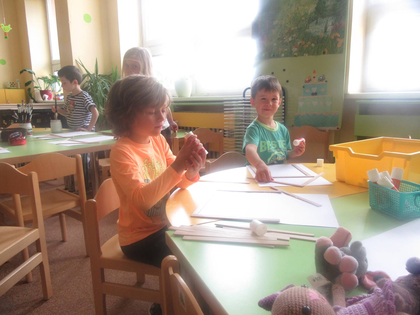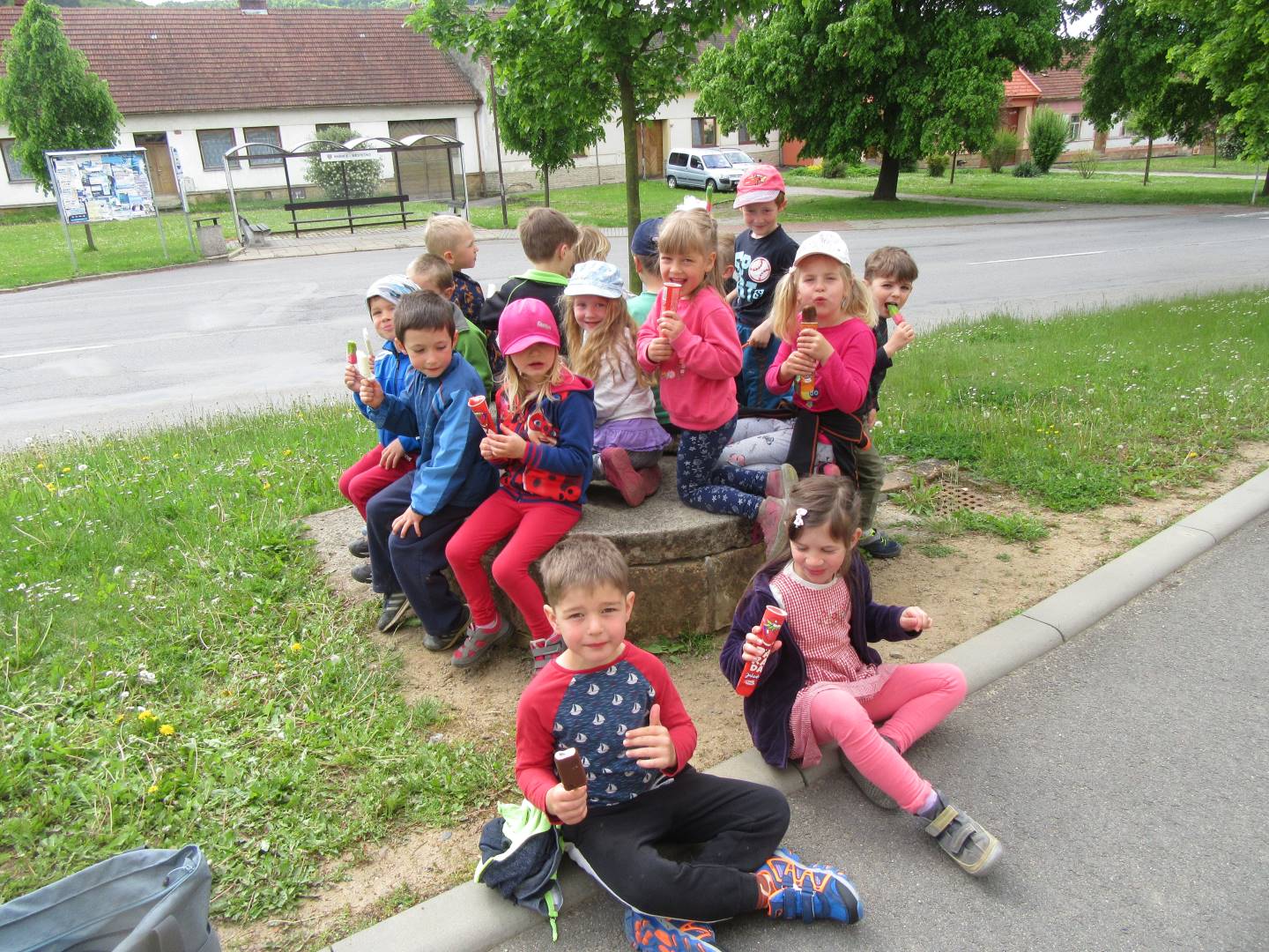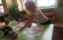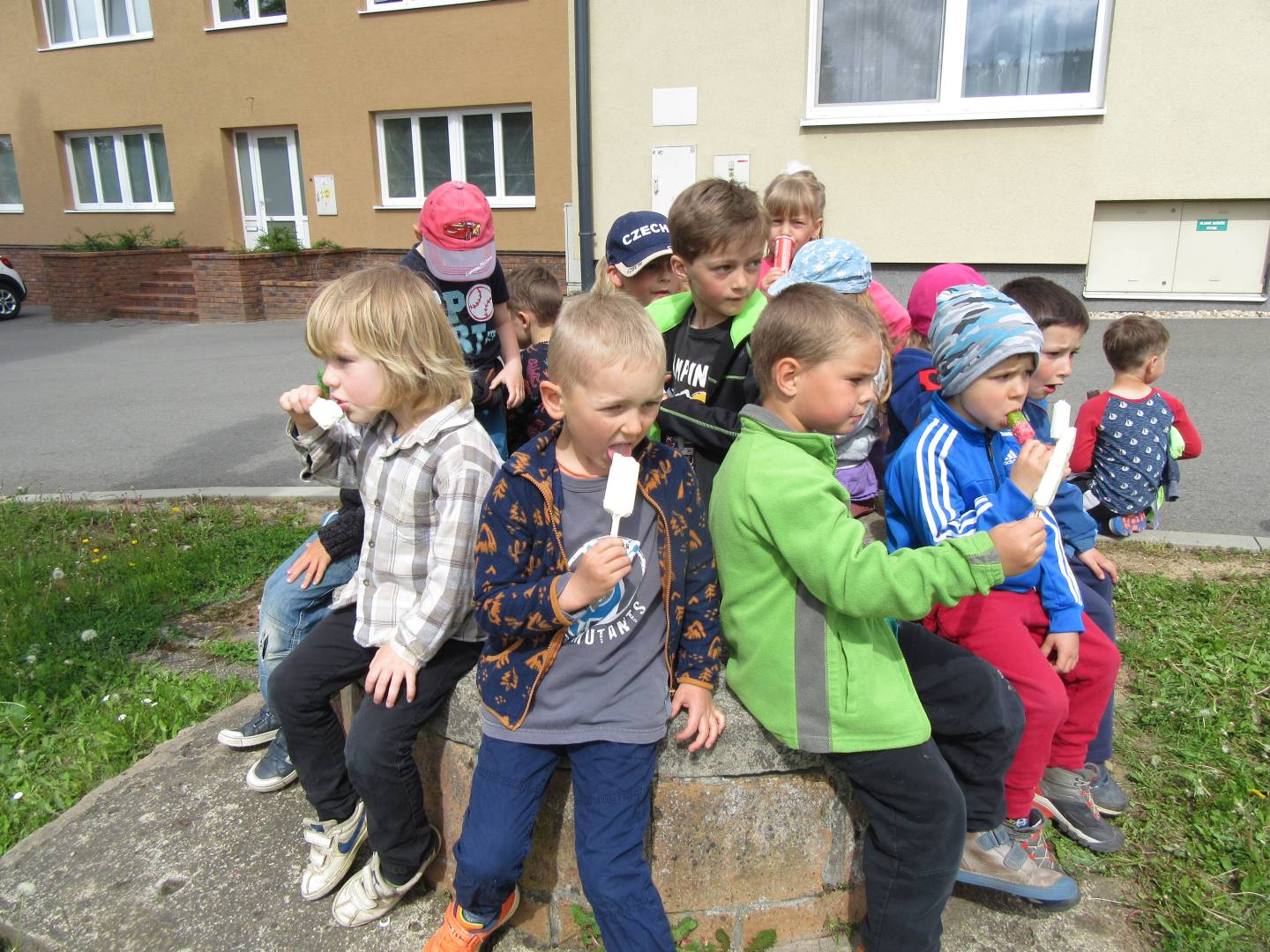 Dny strávené v okolí školky jsme s dětmi věnovali hlavně pobytu na školní zahradě, sportovním aktivitám na ovále, jízdě na odrážedlech, na kolech. Předškoláci ještě opakovali a zdokonalovali dovednosti potřebné k zářijovému nástupu do školy.