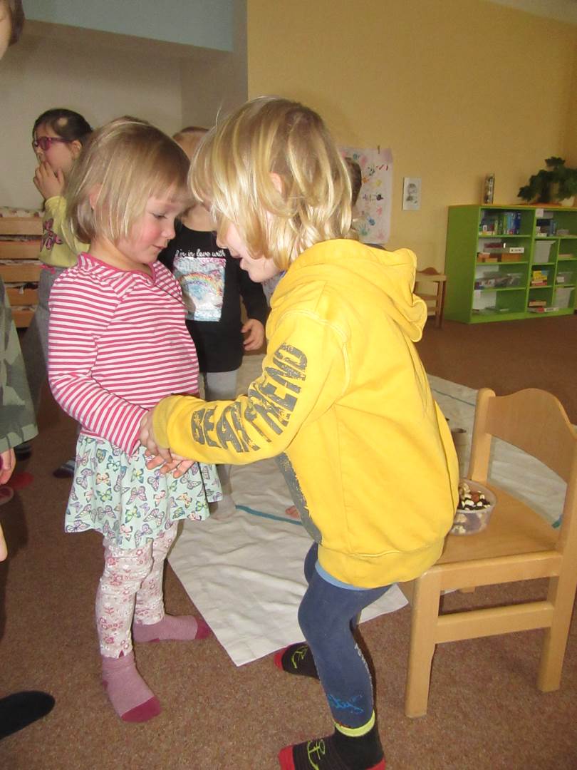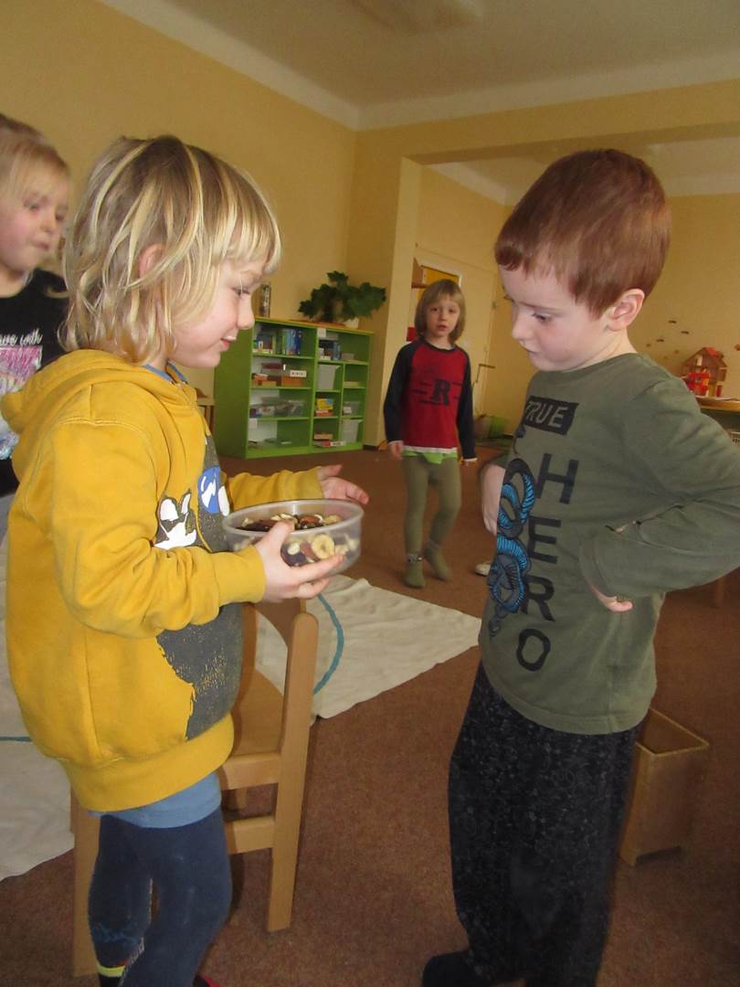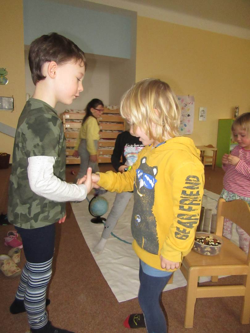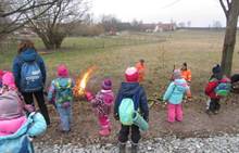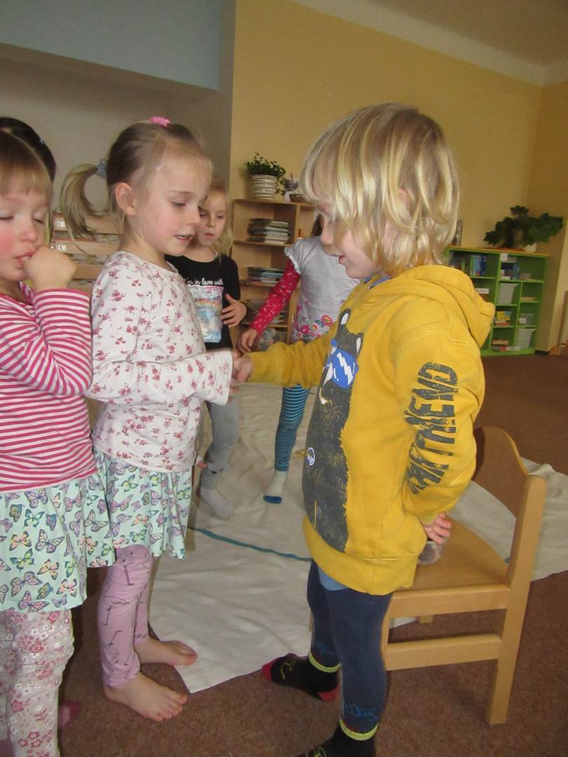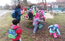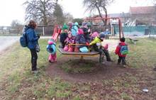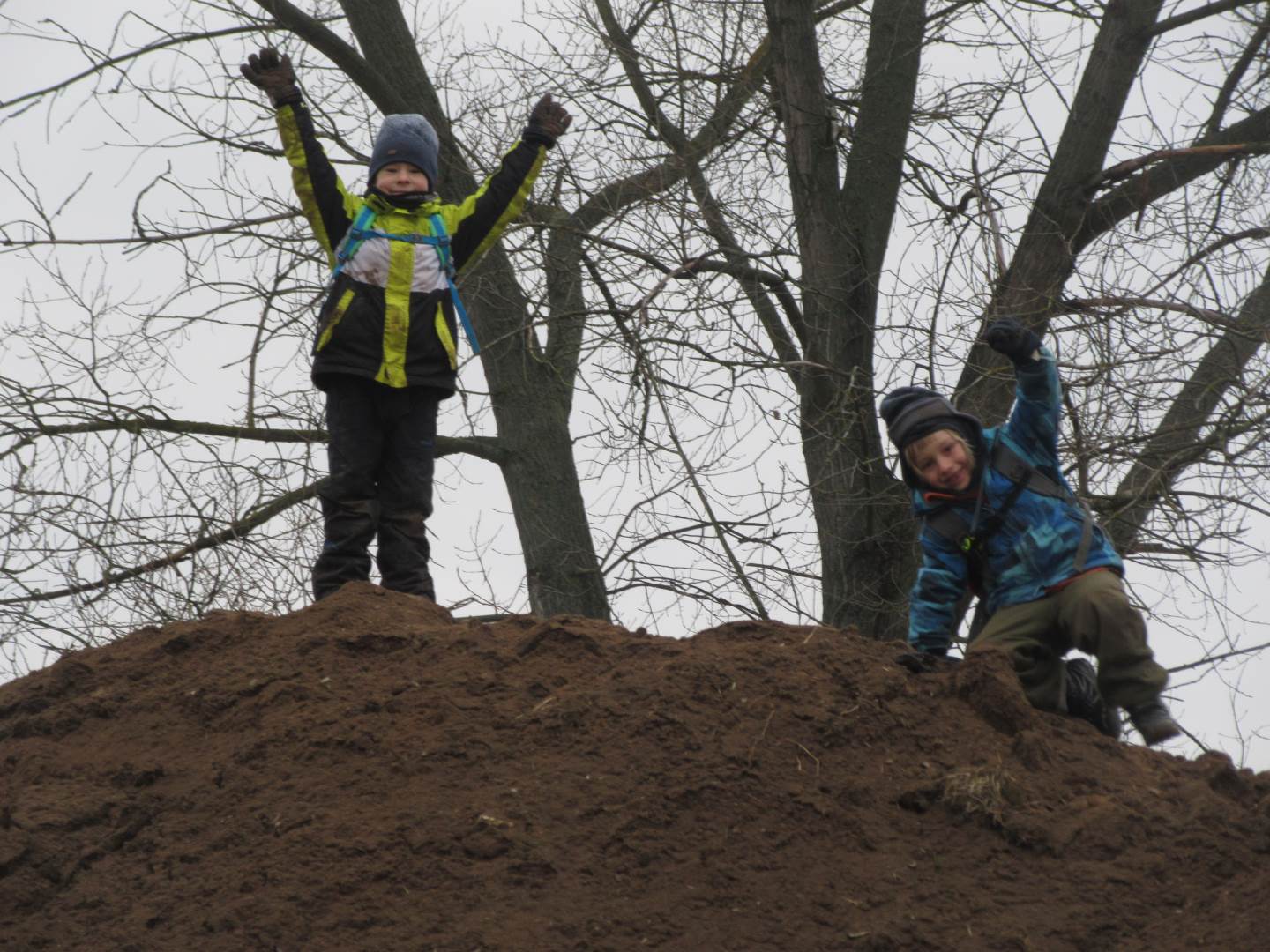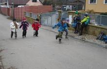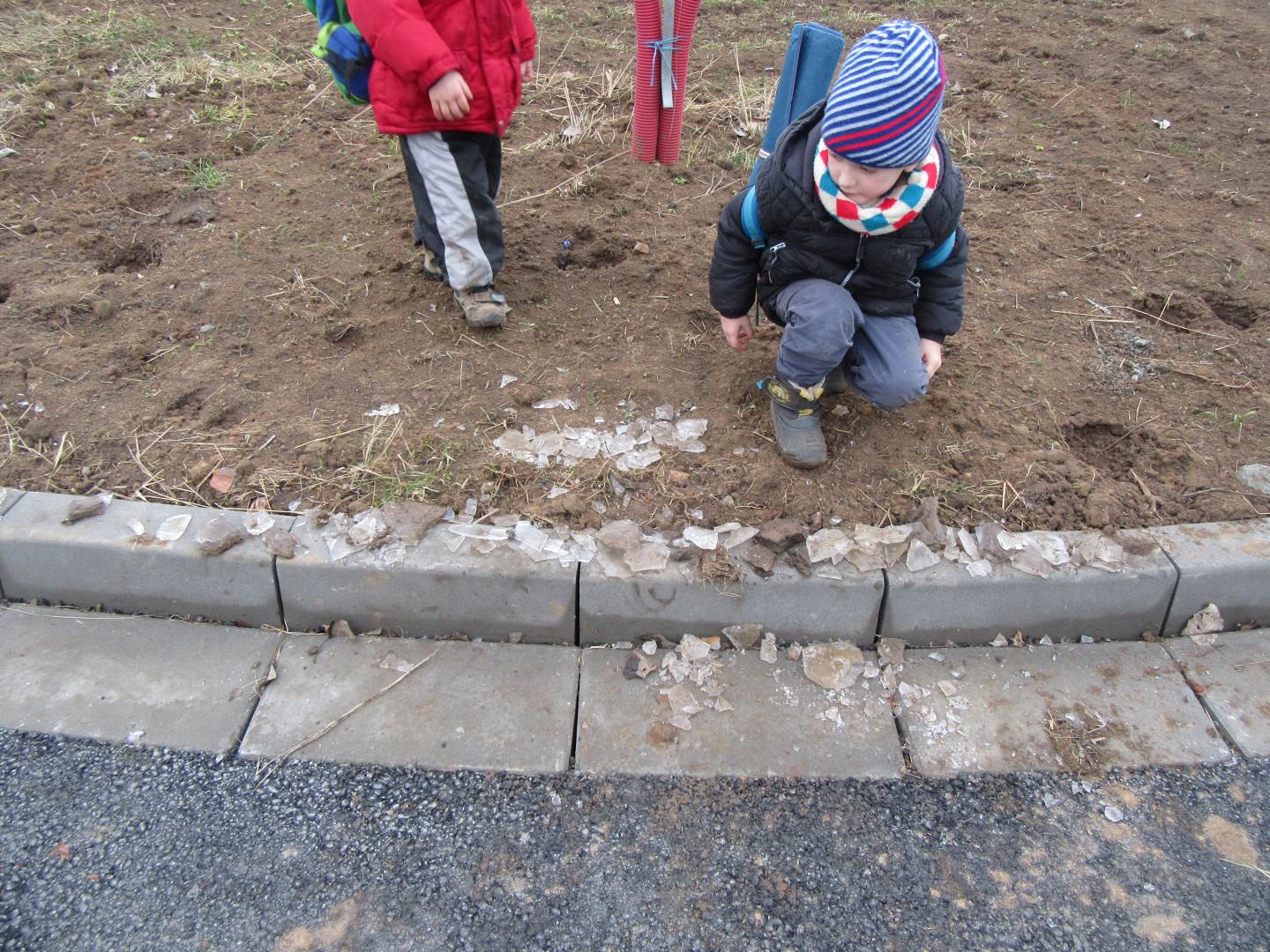 Ve čtvrtek jsme si udělali menší procházku po Knínicích. Děti si vylezly na hromadu hlíny, klouzaly se na kalužinách, hledaly poklad v písku, povídali jsme si pohádku „Sůl nad zlato“ a zpívali jsme si.