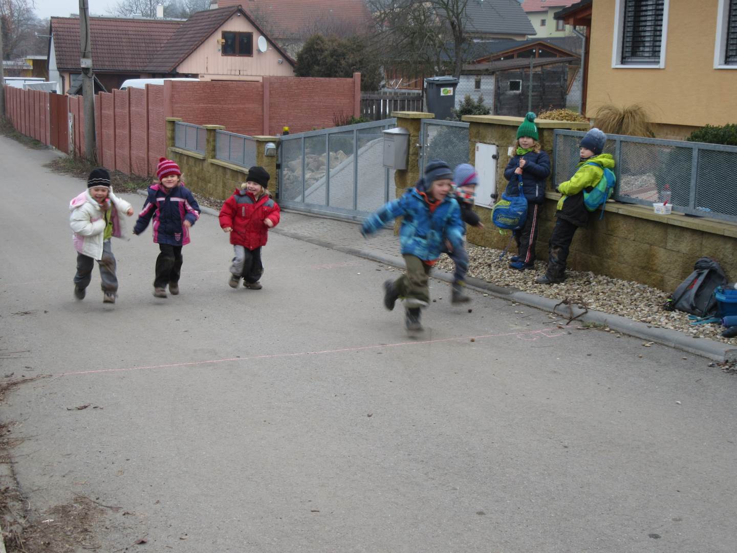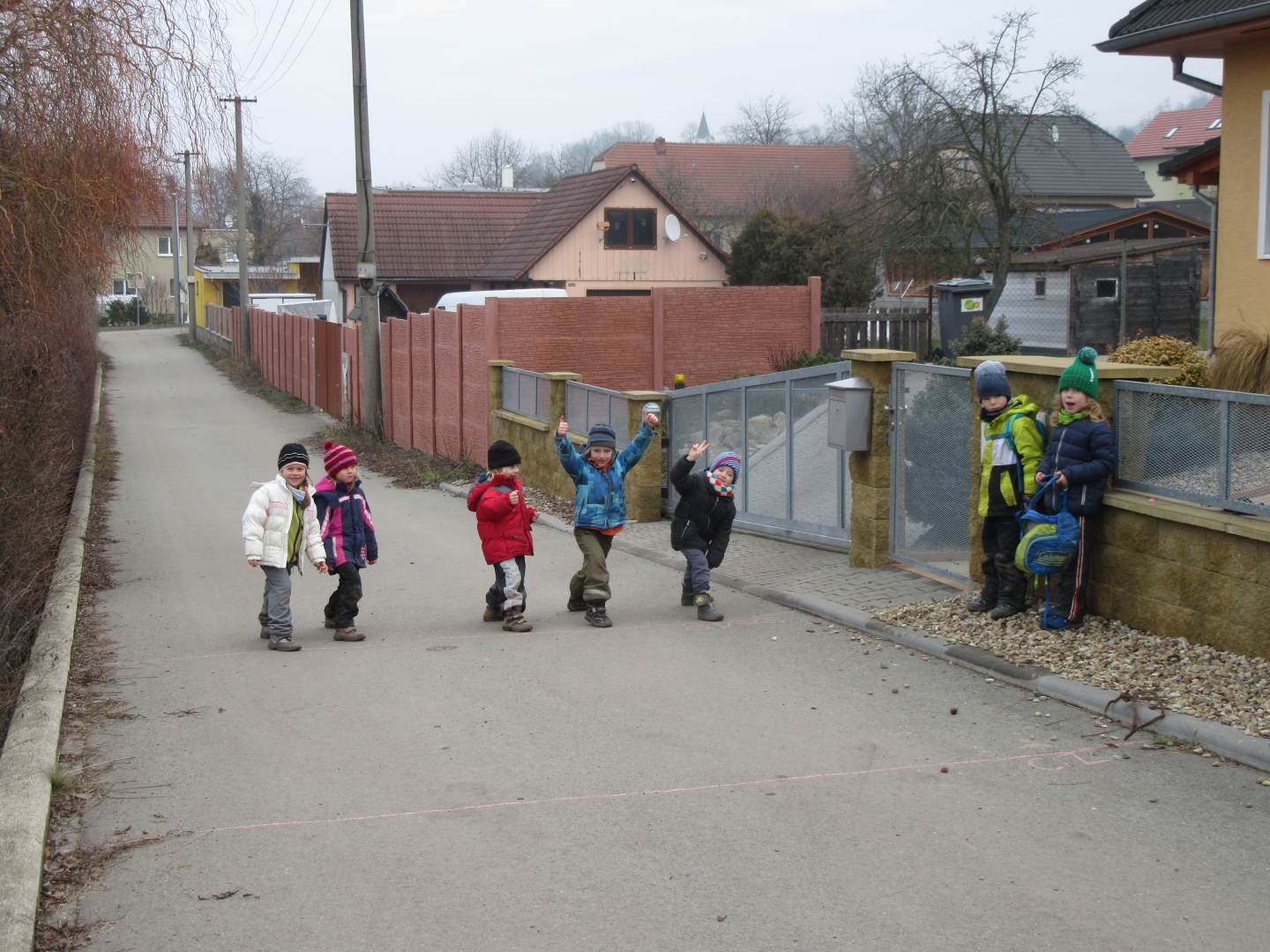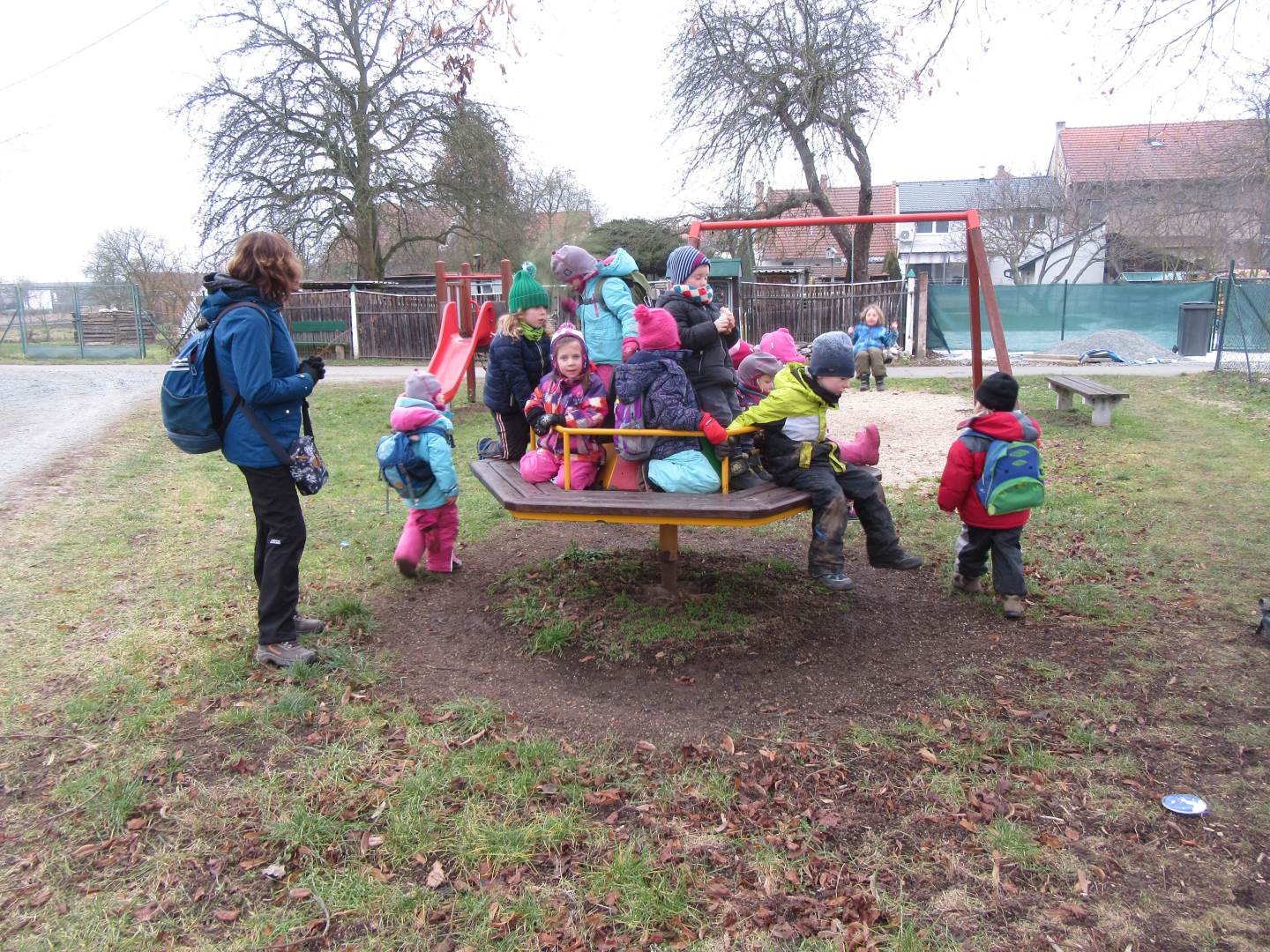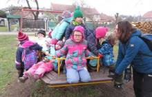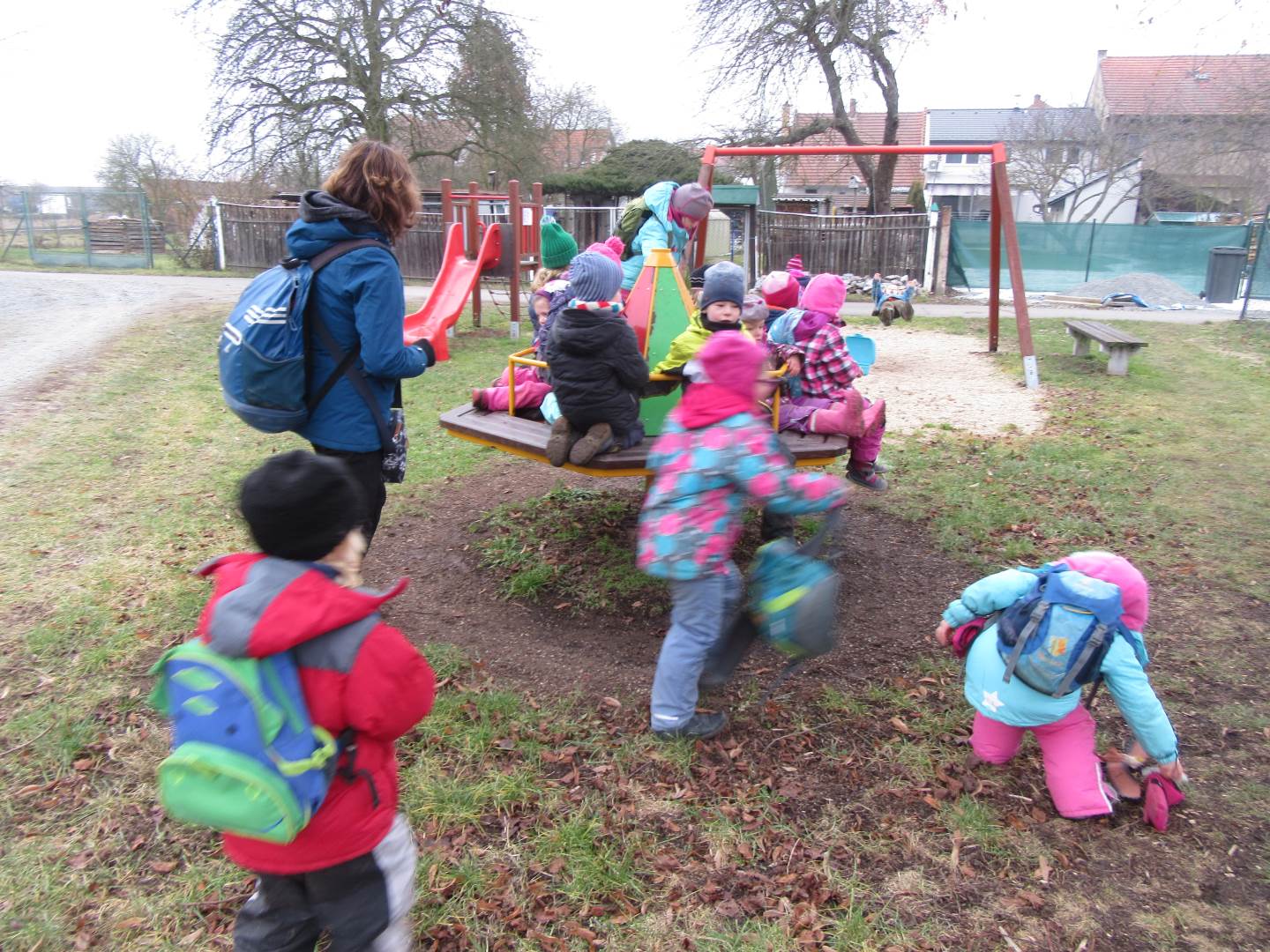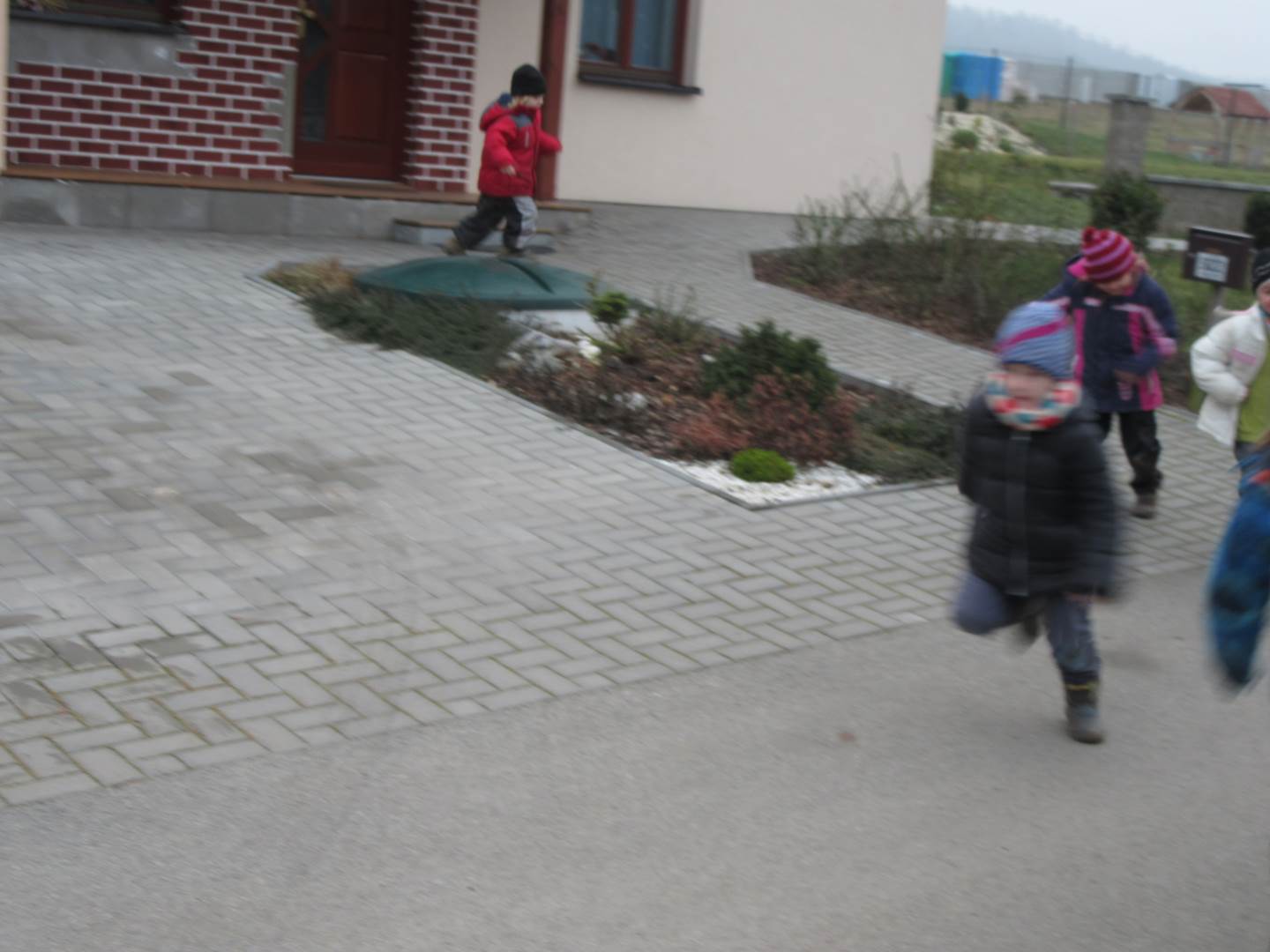 Ve středu jsme navštívili Lucinku Prchalovou ve Vážanech. Také jsme zašli na hřiště a zahráli si pohybové hry. Protože byla velká zima, rozdělili jsme se na dvě skupiny. Jedna šla do školky dříve a druhá ještě zůstala na hřišti.