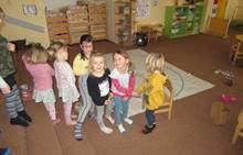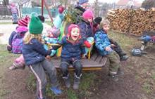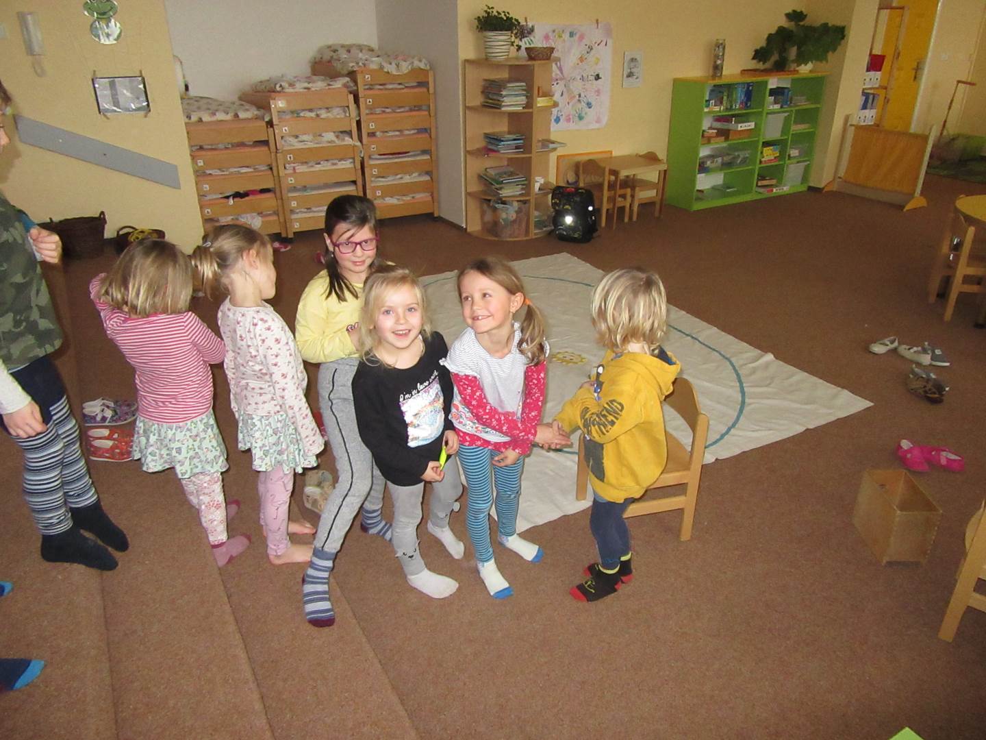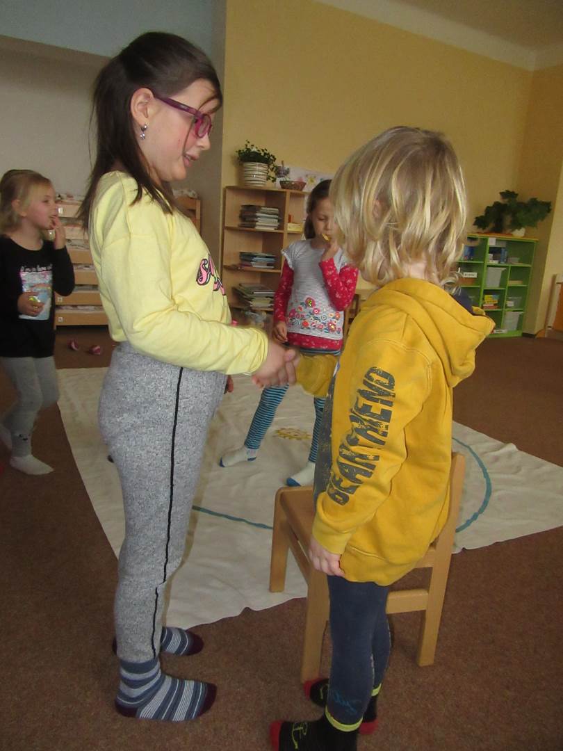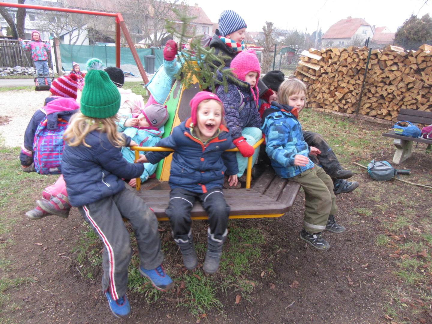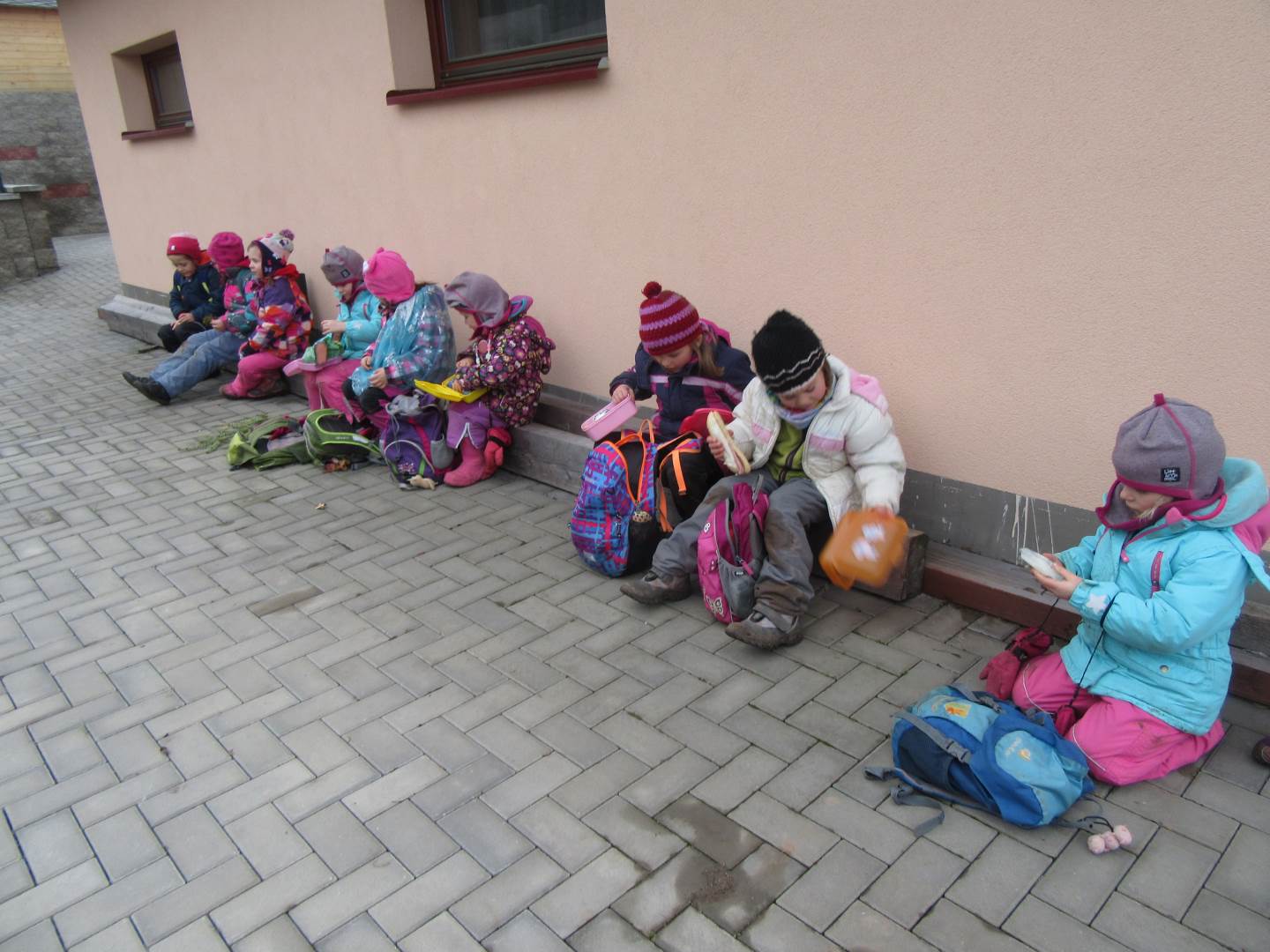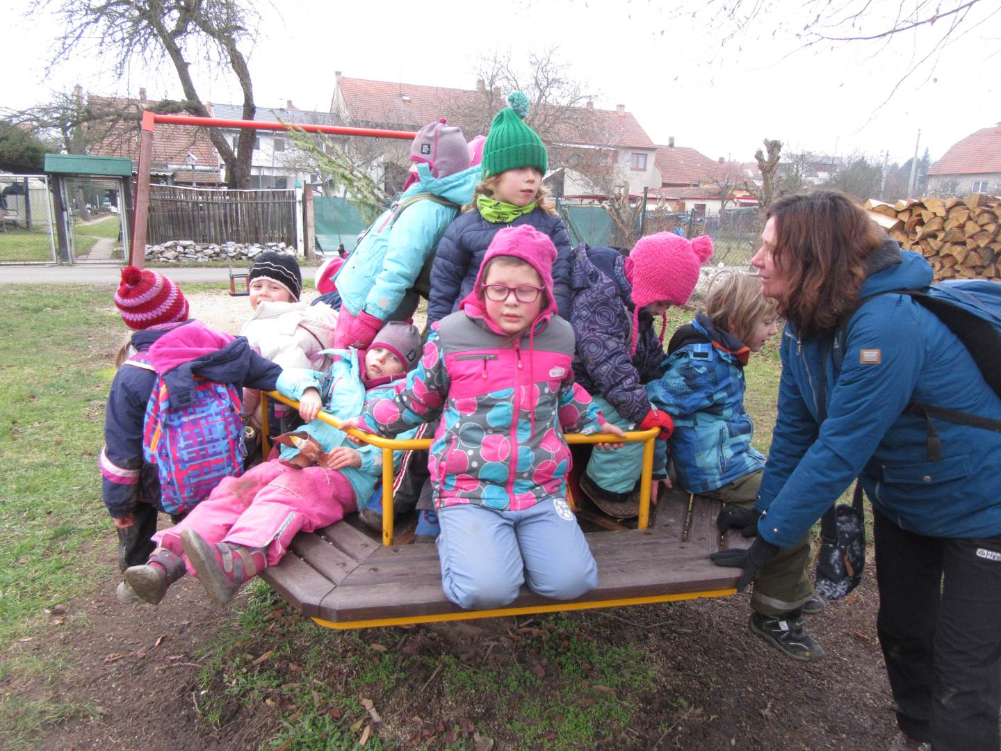 Ve středu jsme navštívili Lucinku Prchalovou ve Vážanech. Také jsme zašli na hřiště a zahráli si pohybové hry. Protože byla velká zima, rozdělili jsme se na dvě skupiny. Jedna šla do školky dříve a druhá ještě zůstala na hřišti.