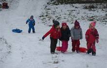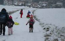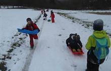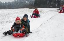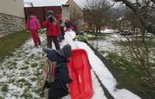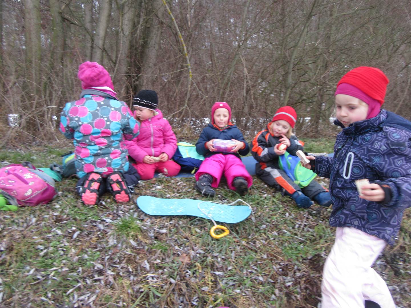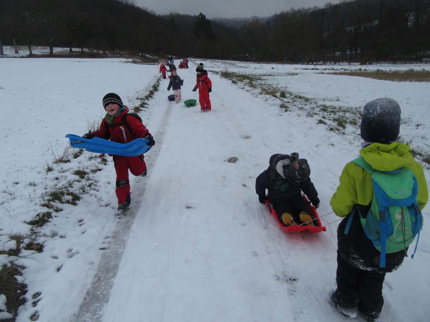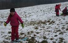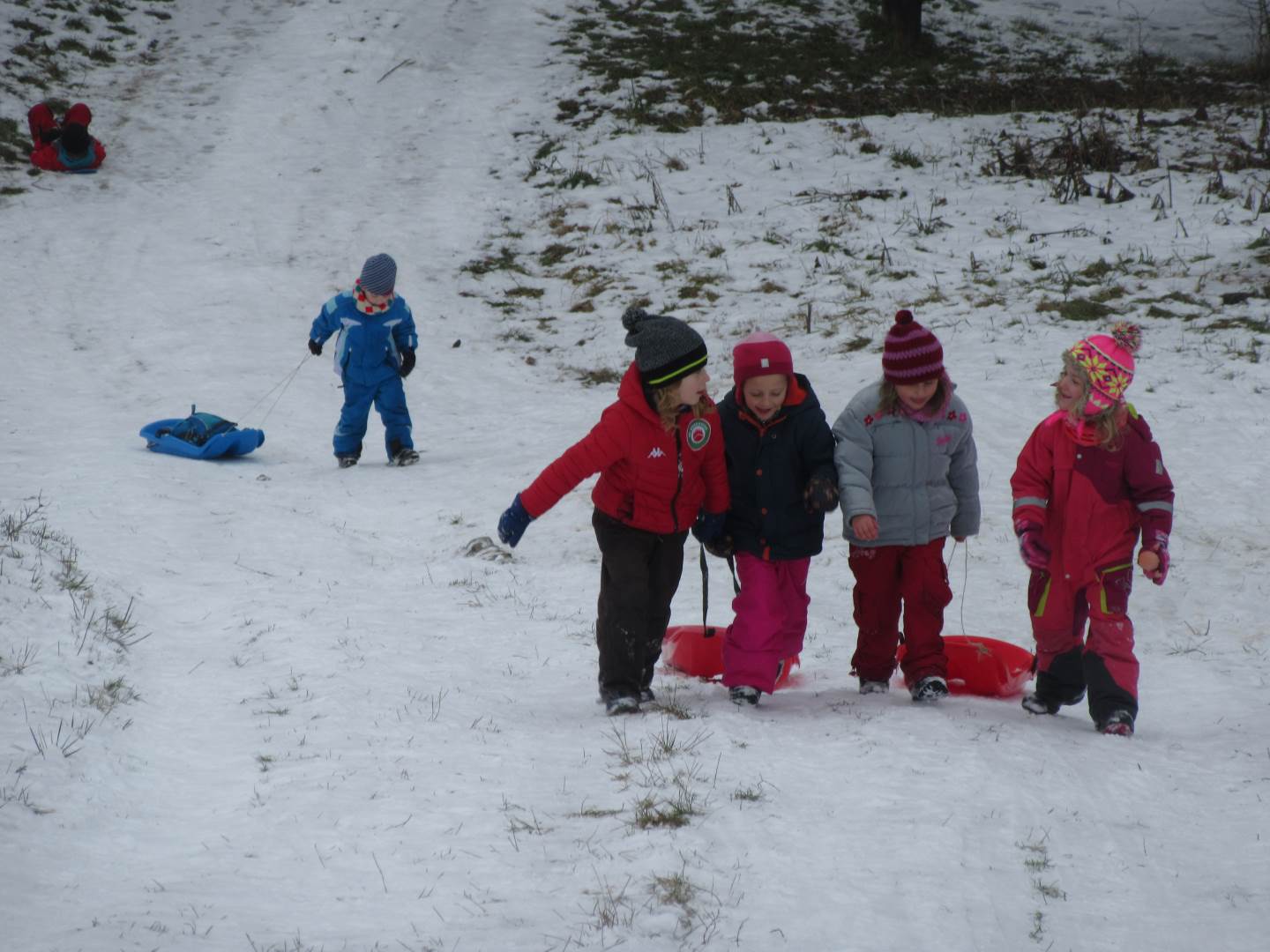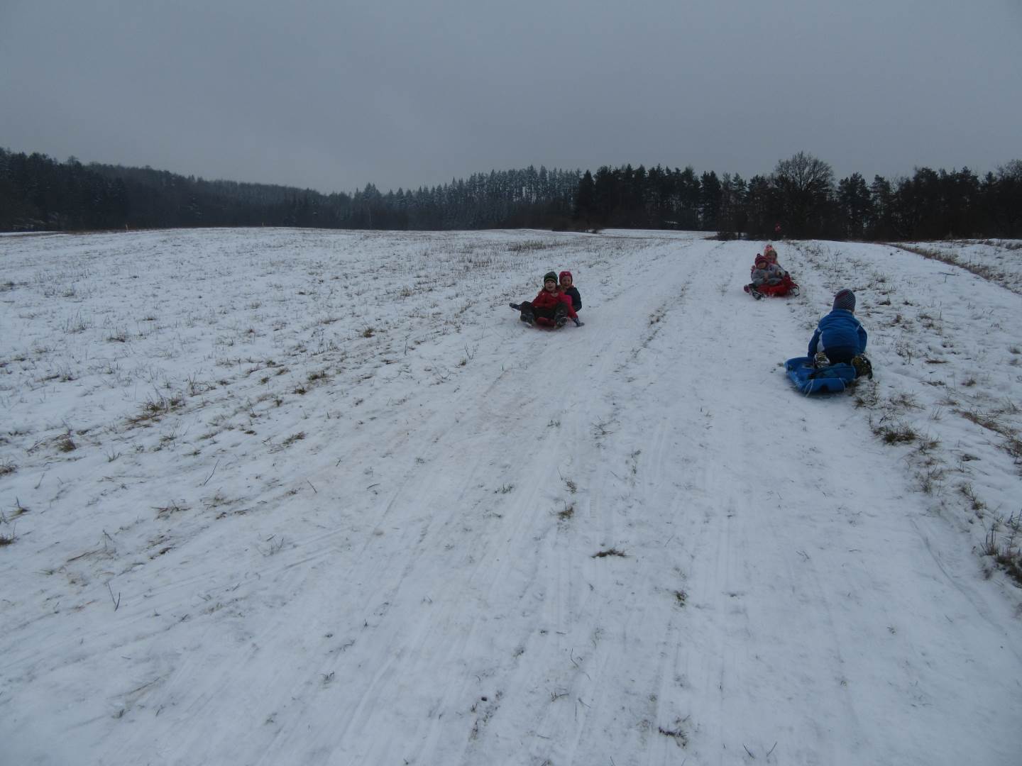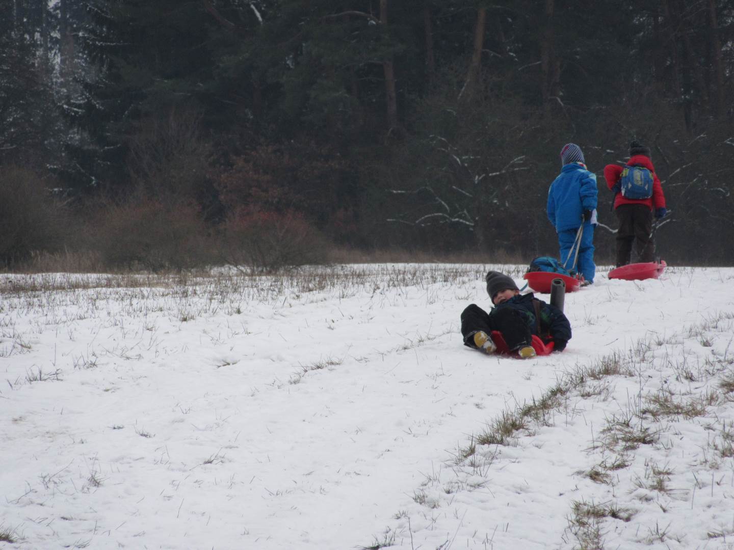 Tento týden jsme měli štestí na sníh, proto jsme vzali boby a lopaty a vydali se na kopec nad lesní školku. Cestou jsme si jako vždycky povídali pohádky, dávali si hádanky a zpívali si. Na kopci se děti nasvačily a poté začaly bobovat, shrabovat sníh a lopatovat. Náramně si to užily.