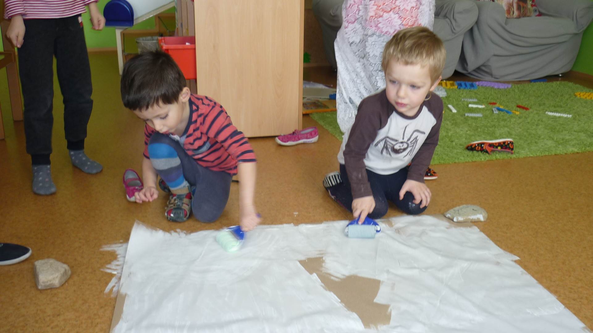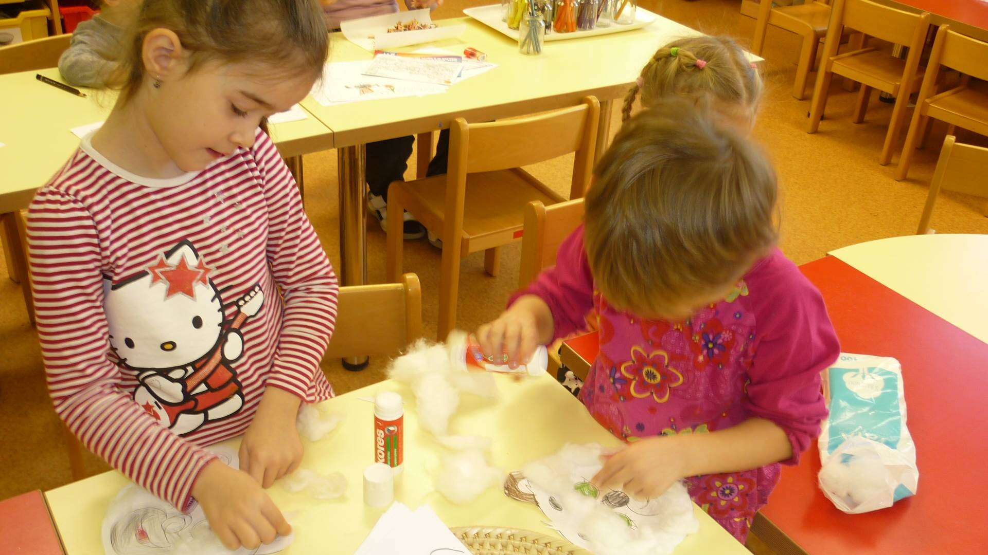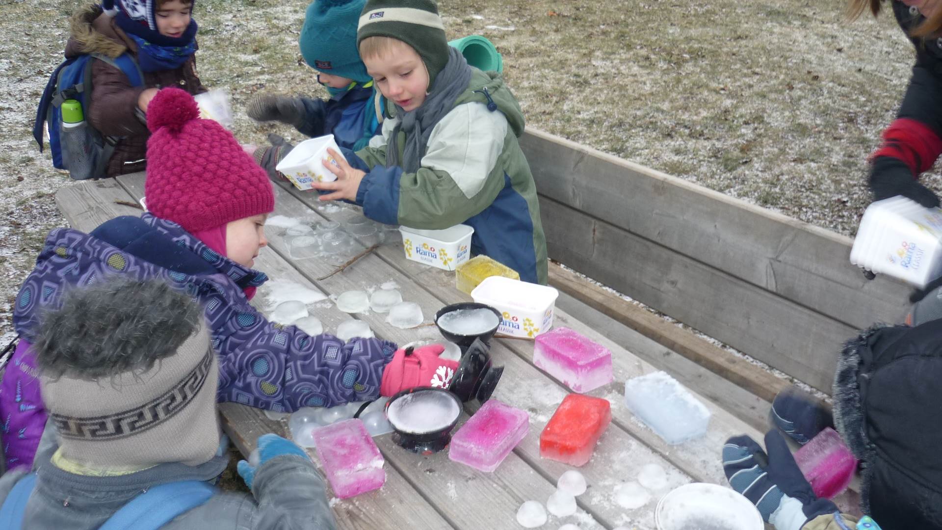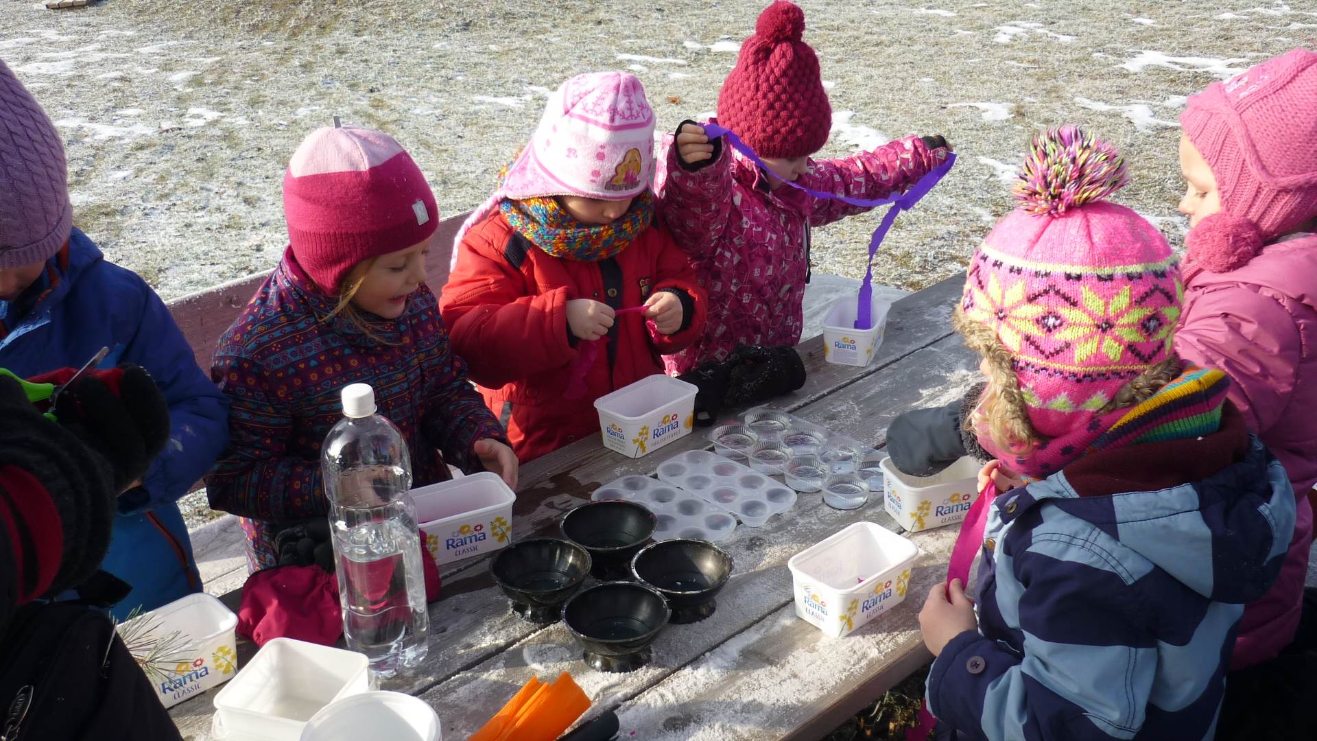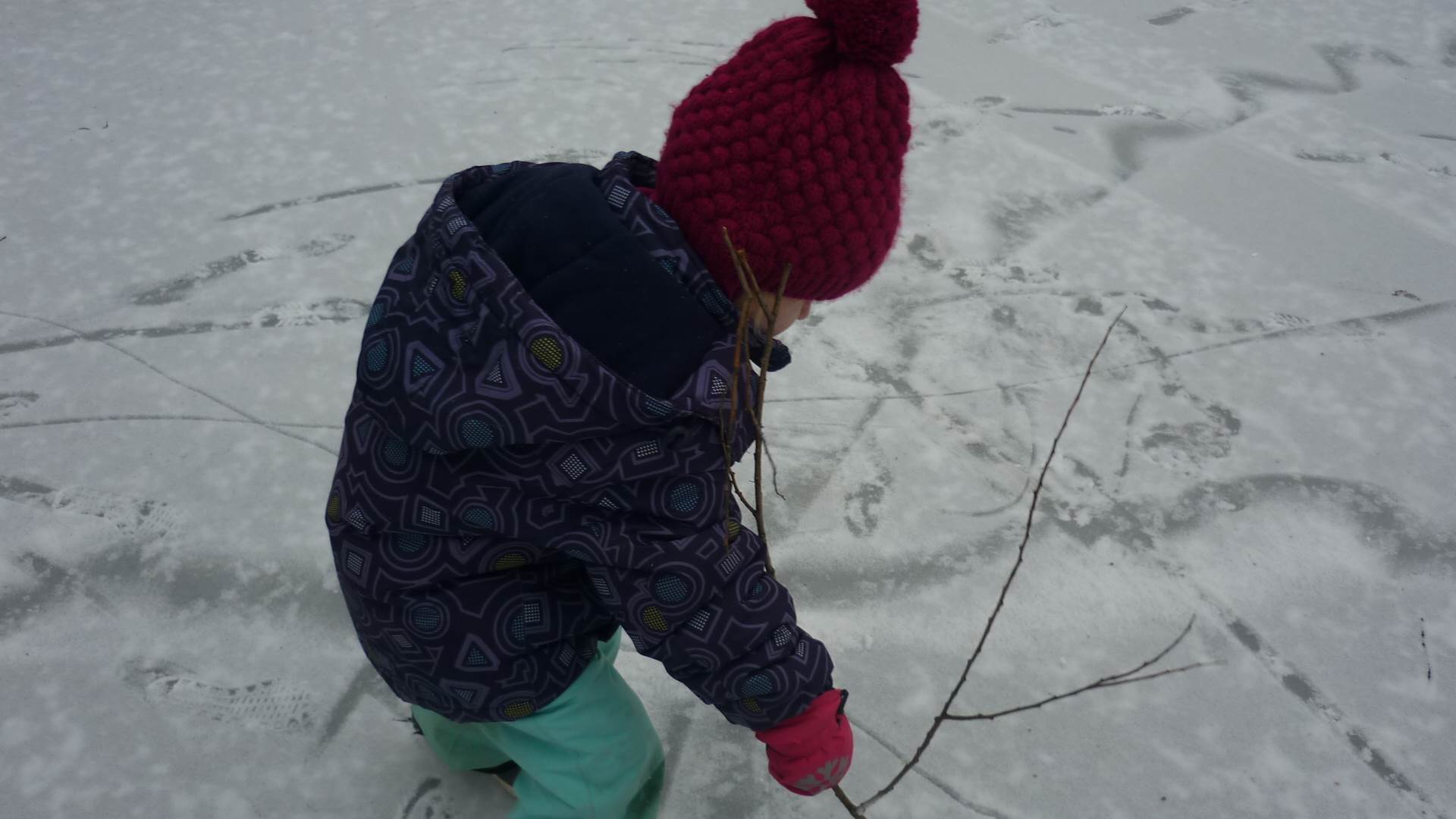 Tento týden je ve znamení ledu a sněhu a hlavně mrazu. Povídáme si o Antarktidě a Arktidě a venku to vypadá stejně. Akorát tu nemáme tučňáky, tuleně, lední medvědy a eskymáky. Tak si ty medvědy a tučňáky alespoň vyrobíme. Venku je začátkem týdne taková zima, že chodíme ven později a stejně je to pro některé děti velice náročné. Snažíme se zahřát pohybem, vydatnou svačinkou a u kamen v maringotce. Vyrábíme barevné ledové kostky a hrjeme si s nimi. Obdivujeme krásu jinovatky a snažíme se ji zachytit na papíře. V úterý se zahříváme v kině při animovaném příběhu o žabáku Gordonovy a myšce Paddy, i když i on se odehrává částečně v zimě. Ve čtvrtek dovádíme na zamrzlém rybníce. Už nás unese! Kloužeme se, odhrnujeme sníh, malujeme do sněhu a obdivujeme ledové otisky listů. Led je místy tak průzračný, že vidíme, co je pod hladinou. V pátek opět slavíme,ale tentokrát u Berušek. Jsme pozvaní na dort! Venku si pak užíváme sněhové nadílky.