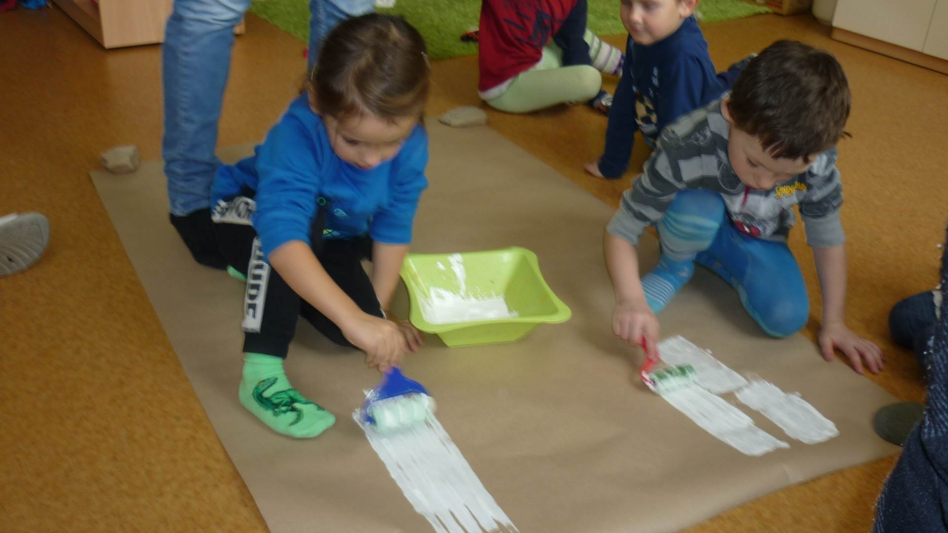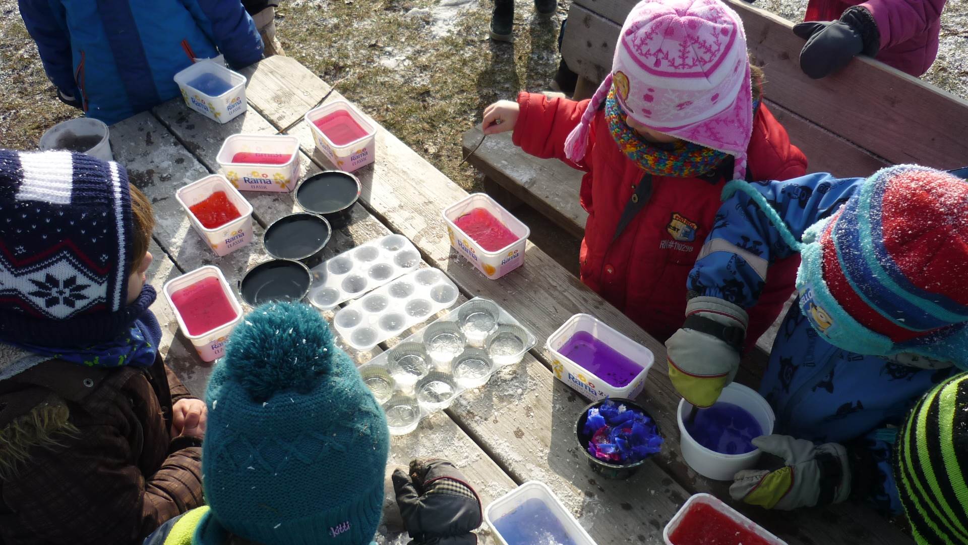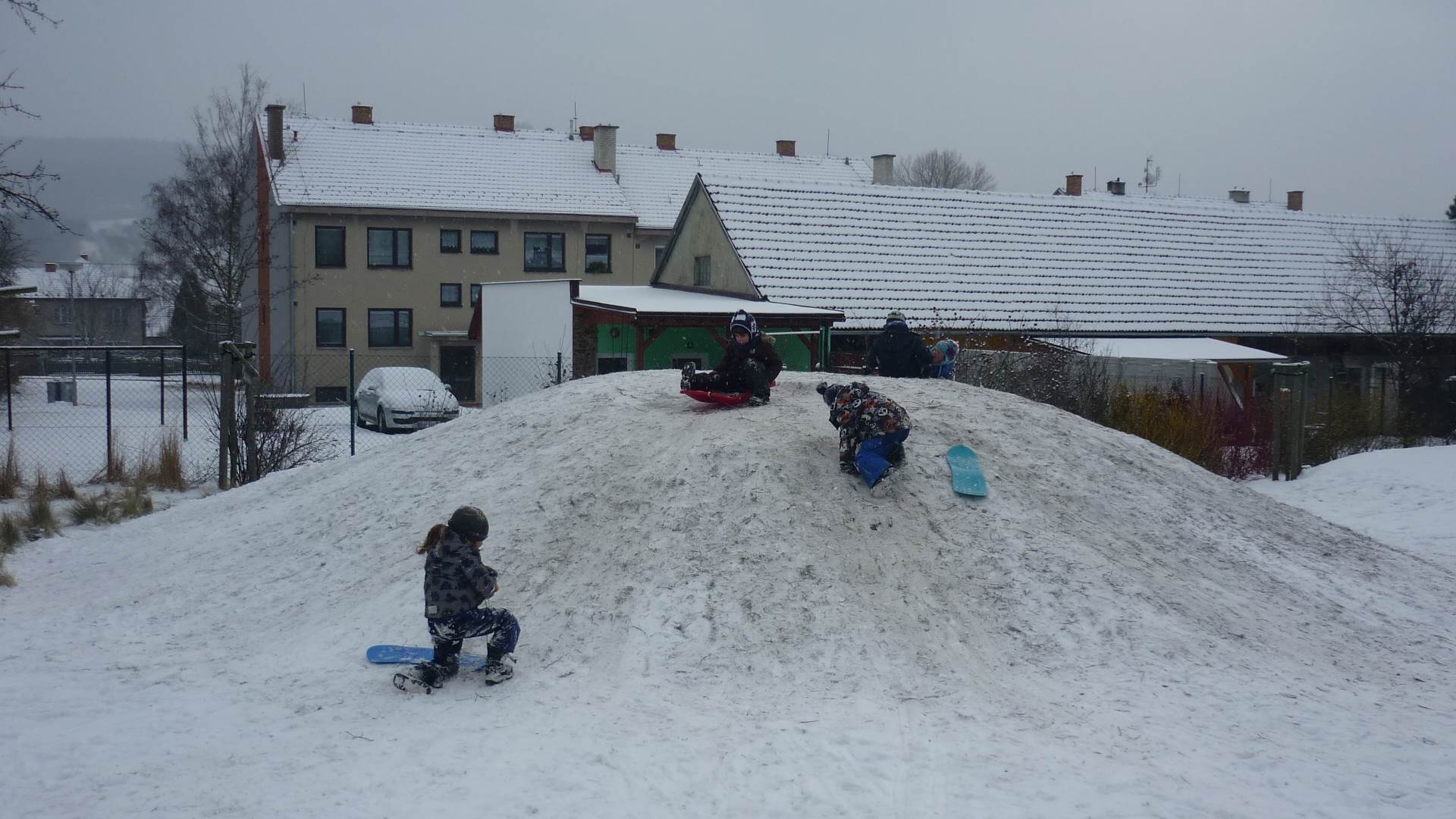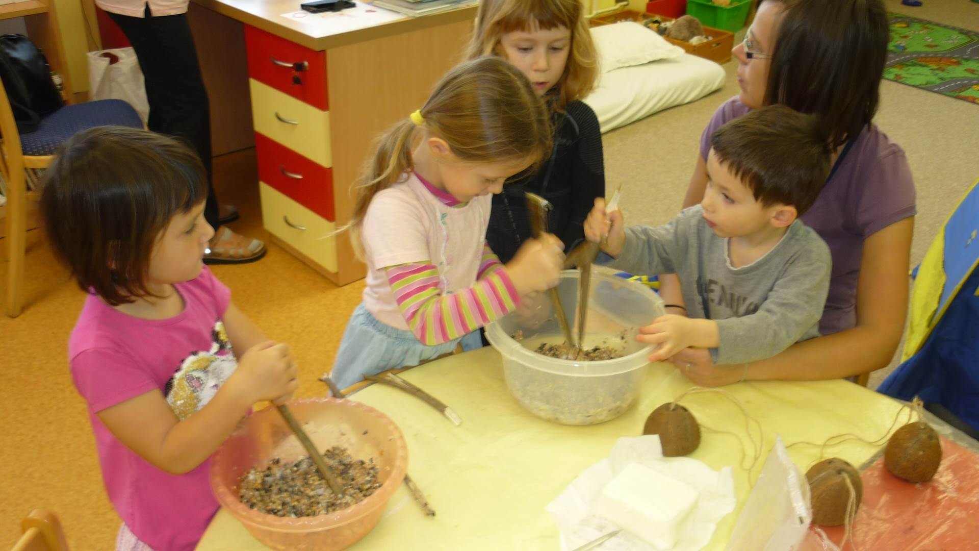 Tento týden je ve znamení ledu a sněhu a hlavně mrazu. Povídáme si o Antarktidě a Arktidě a venku to vypadá stejně. Akorát tu nemáme tučňáky, tuleně, lední medvědy a eskymáky. Tak si ty medvědy a tučňáky alespoň vyrobíme. Venku je začátkem týdne taková zima, že chodíme ven později a stejně je to pro některé děti velice náročné. Snažíme se zahřát pohybem, vydatnou svačinkou a u kamen v maringotce. Vyrábíme barevné ledové kostky a hrjeme si s nimi. Obdivujeme krásu jinovatky a snažíme se ji zachytit na papíře. V úterý se zahříváme v kině při animovaném příběhu o žabáku Gordonovy a myšce Paddy, i když i on se odehrává částečně v zimě. Ve čtvrtek dovádíme na zamrzlém rybníce. Už nás unese! Kloužeme se, odhrnujeme sníh, malujeme do sněhu a obdivujeme ledové otisky listů. Led je místy tak průzračný, že vidíme, co je pod hladinou. V pátek opět slavíme,ale tentokrát u Berušek. Jsme pozvaní na dort! Venku si pak užíváme sněhové nadílky.