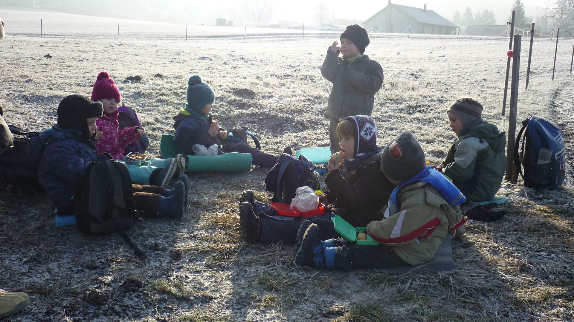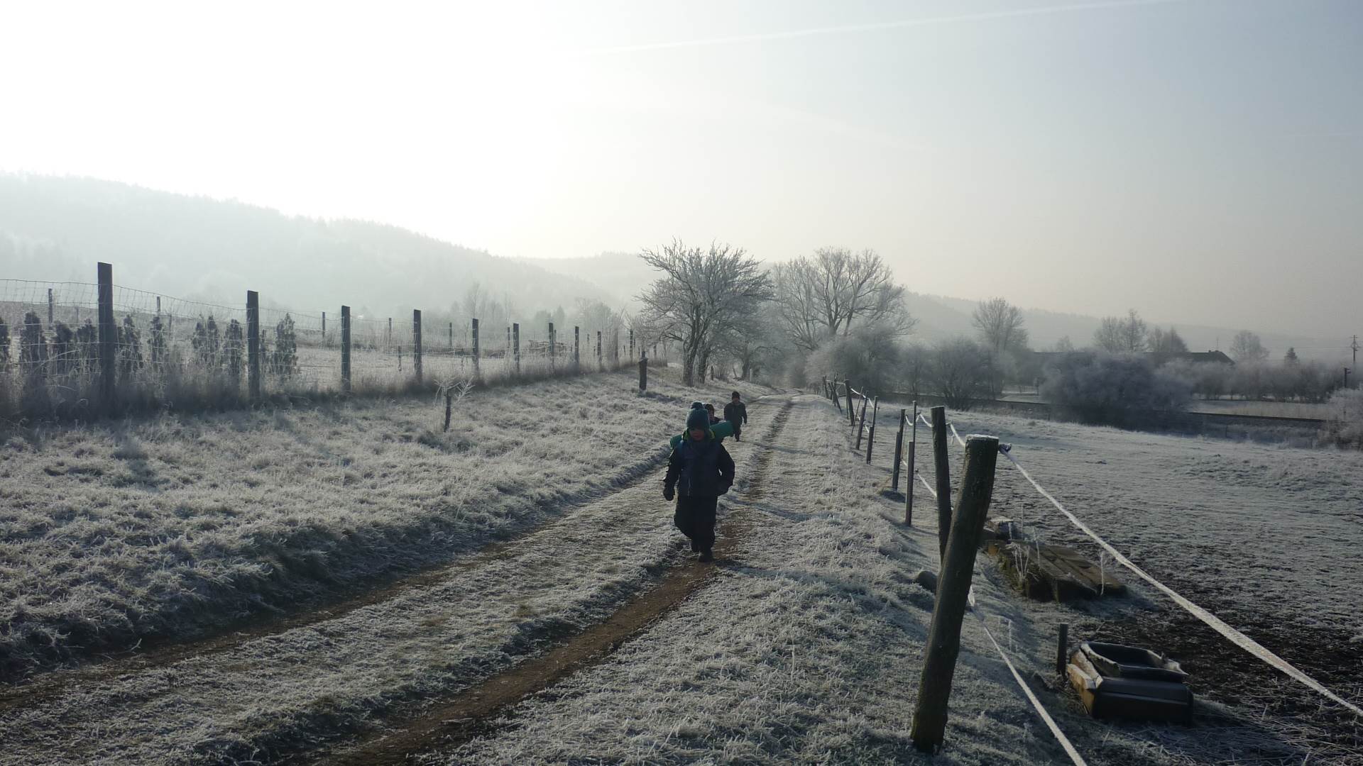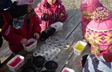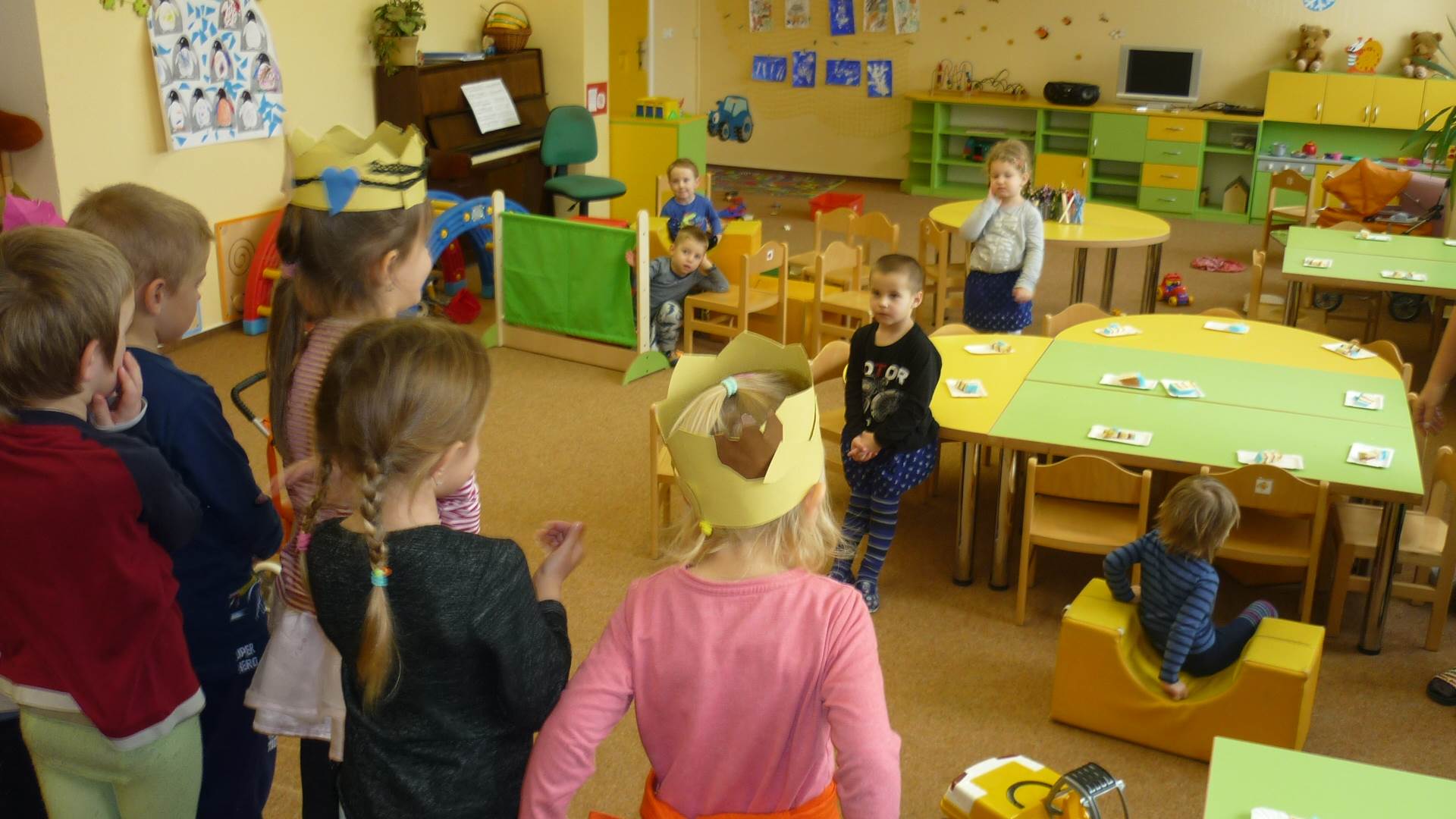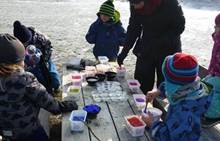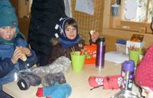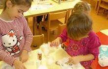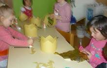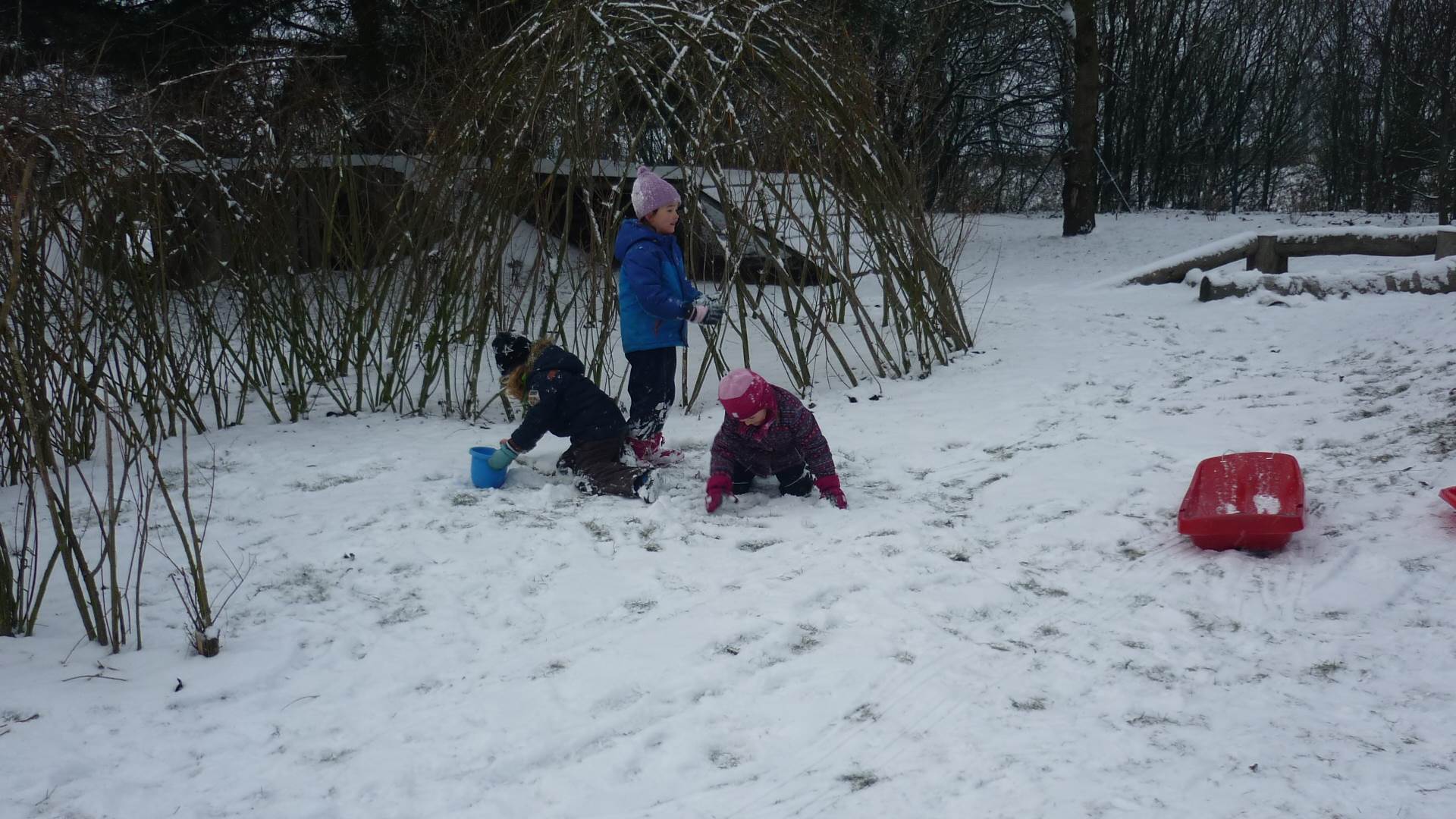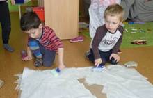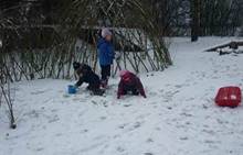 Tento týden je ve znamení ledu a sněhu a hlavně mrazu. Povídáme si o Antarktidě a Arktidě a venku to vypadá stejně. Akorát tu nemáme tučňáky, tuleně, lední medvědy a eskymáky. Tak si ty medvědy a tučňáky alespoň vyrobíme. Venku je začátkem týdne taková zima, že chodíme ven později a stejně je to pro některé děti velice náročné. Snažíme se zahřát pohybem, vydatnou svačinkou a u kamen v maringotce. Vyrábíme barevné ledové kostky a hrjeme si s nimi. Obdivujeme krásu jinovatky a snažíme se ji zachytit na papíře. V úterý se zahříváme v kině při animovaném příběhu o žabáku Gordonovy a myšce Paddy, i když i on se odehrává částečně v zimě. Ve čtvrtek dovádíme na zamrzlém rybníce. Už nás unese! Kloužeme se, odhrnujeme sníh, malujeme do sněhu a obdivujeme ledové otisky listů. Led je místy tak průzračný, že vidíme, co je pod hladinou. V pátek opět slavíme,ale tentokrát u Berušek. Jsme pozvaní na dort! Venku si pak užíváme sněhové nadílky.