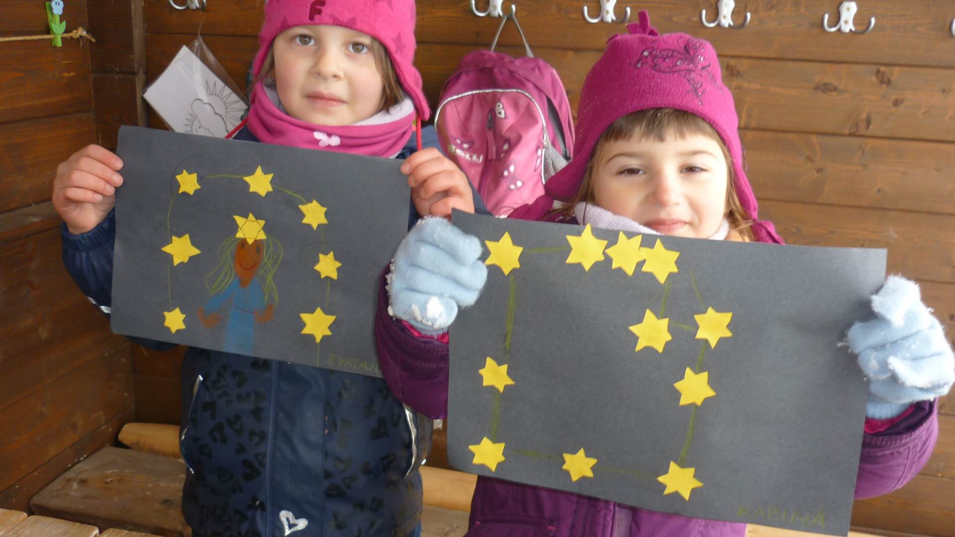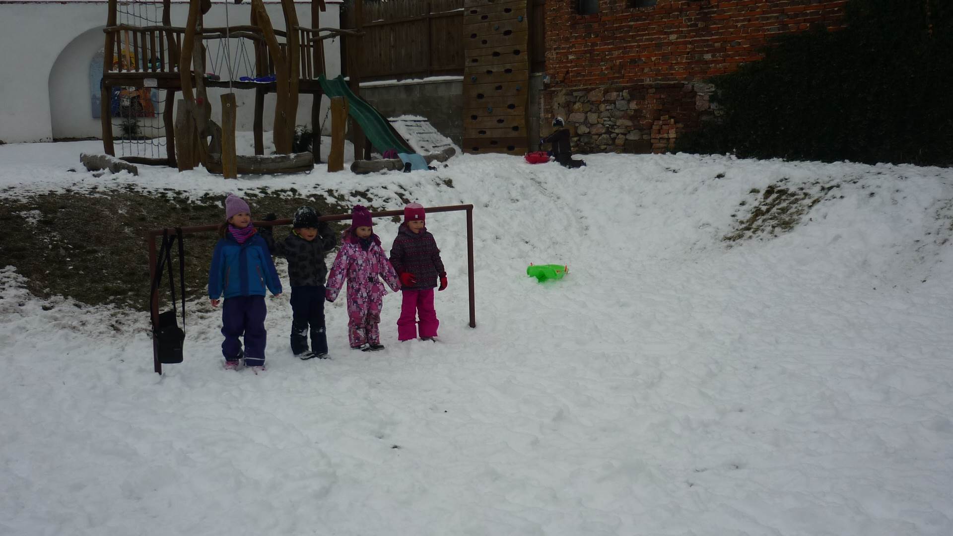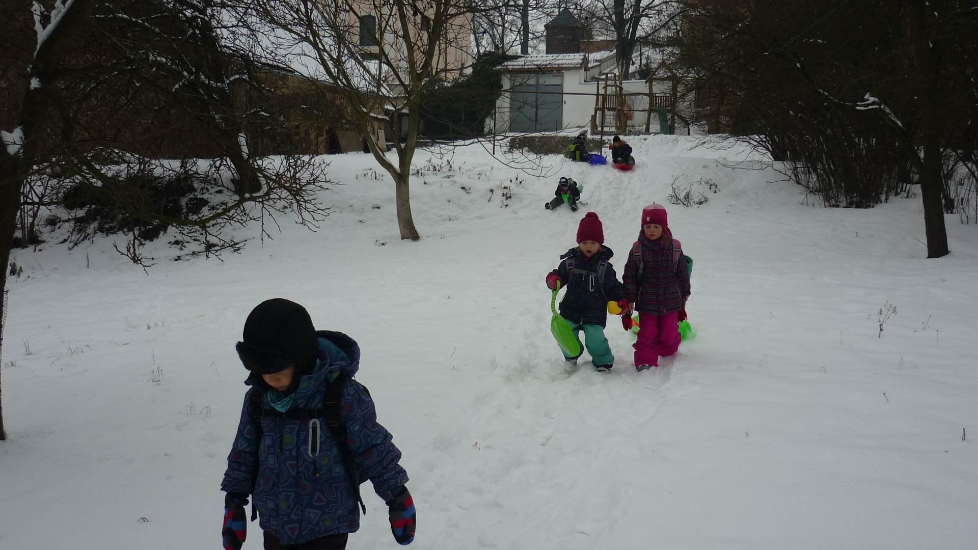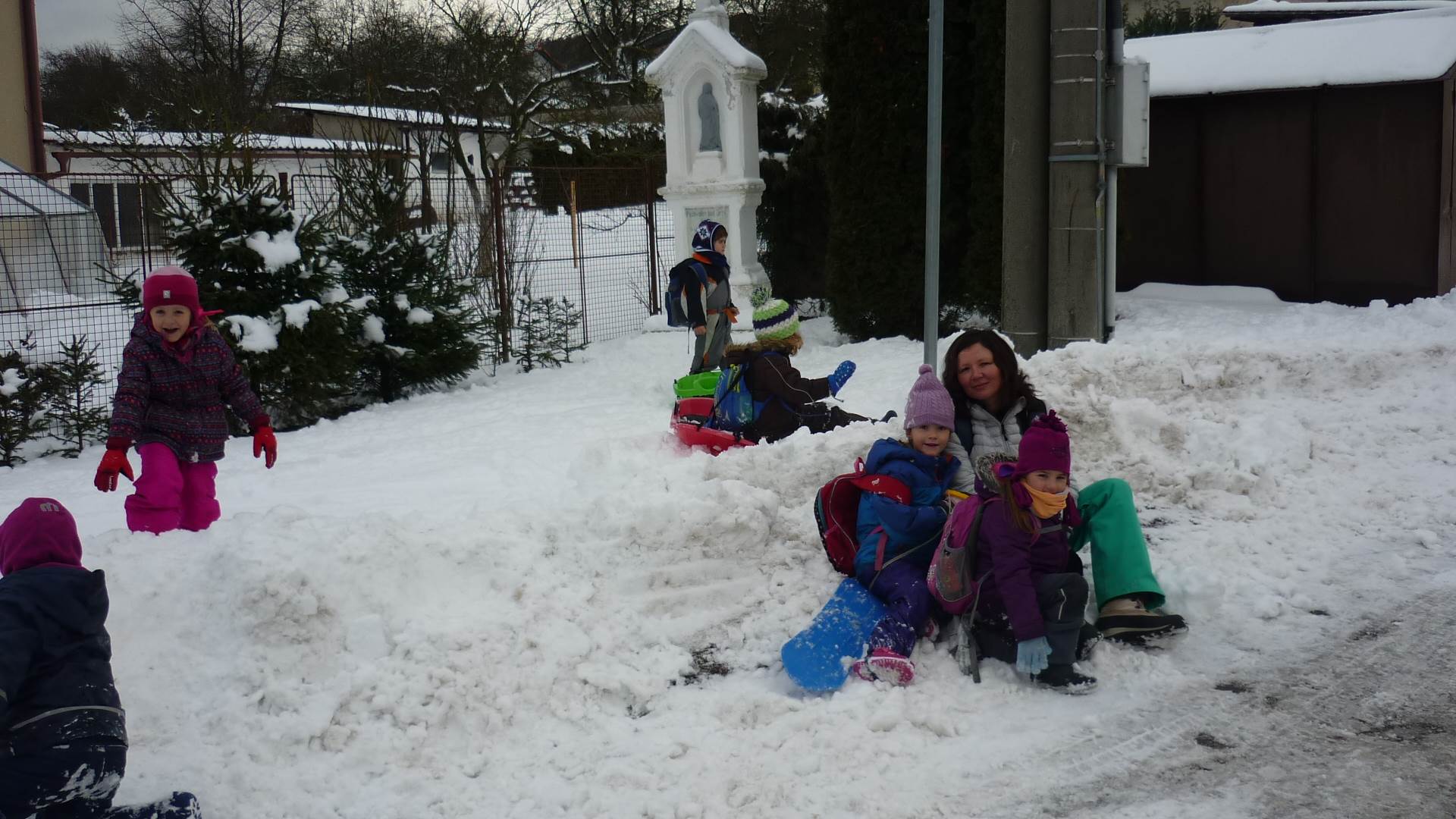 I tento týden nám počasí přálo. Sněhová nadílka byla ohromná, tak jsme si ji náležitě užívali. Kromě bobování jsme objevili i kouzlo křoví a stavěli si v něm domečky. Povídali jsme si také o hvězdách a vytvářeli jsme vlastní souhvězdí. Škoda, že nejedeme do planetária! Mnoho dětí je totiž nemocných. Další den jsme si užívali na ledě. Odhrnovali jsme sníh, klouzali se, bobovali a hráli eskymáckou honičku. Ve středu jsme byli v šebetovském kině na cyklu příběhů Pat a Mat zimní radovánky a ve čtvrtek chvíli na farní zahradě, a poté jsme ve školce slavili Šimonkovi narozeniny.
