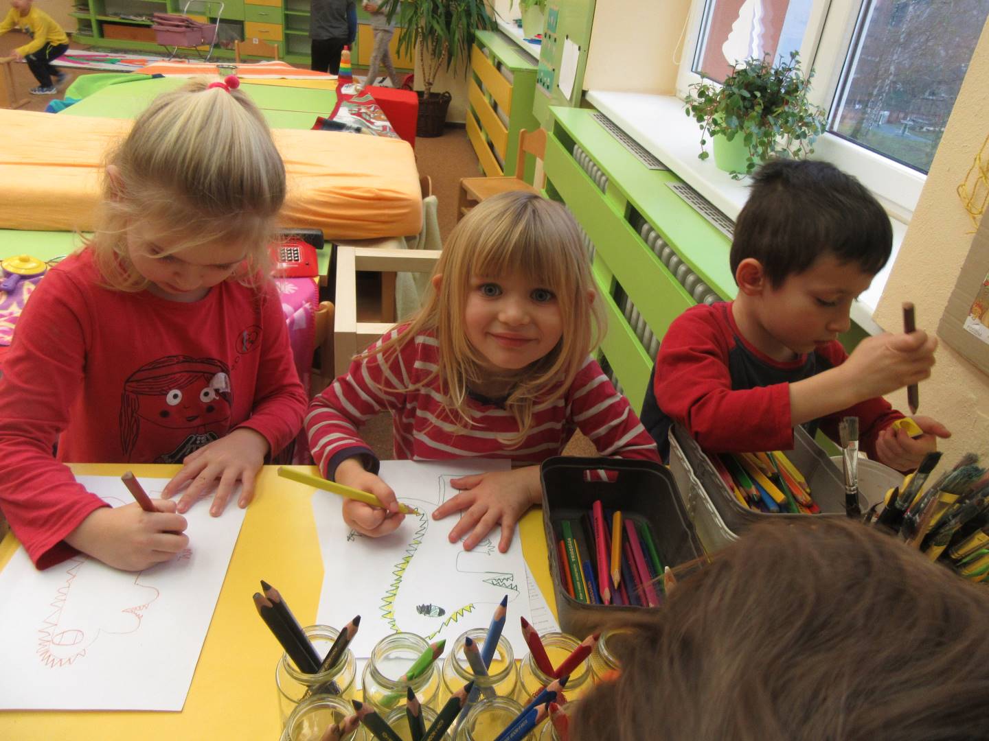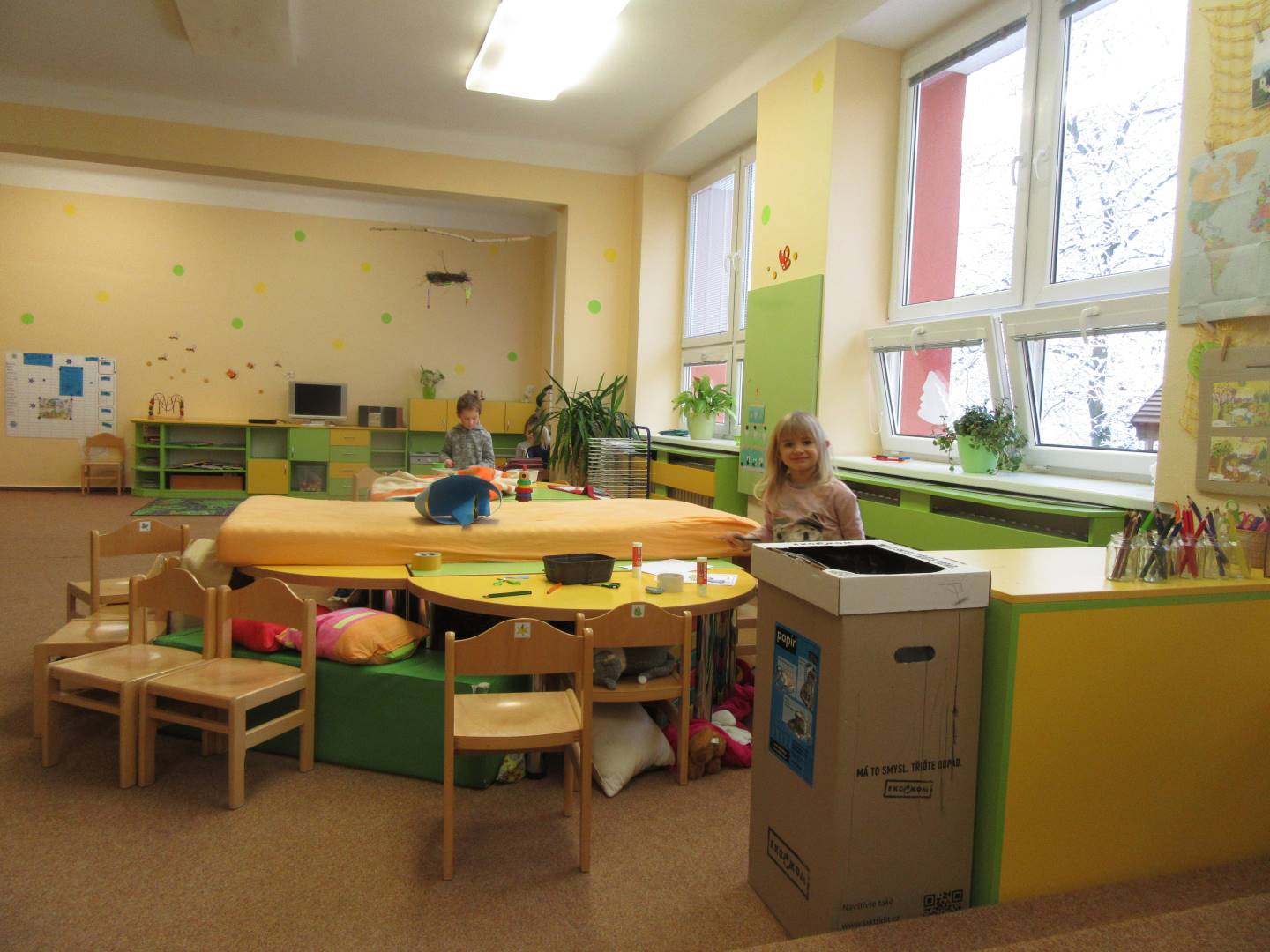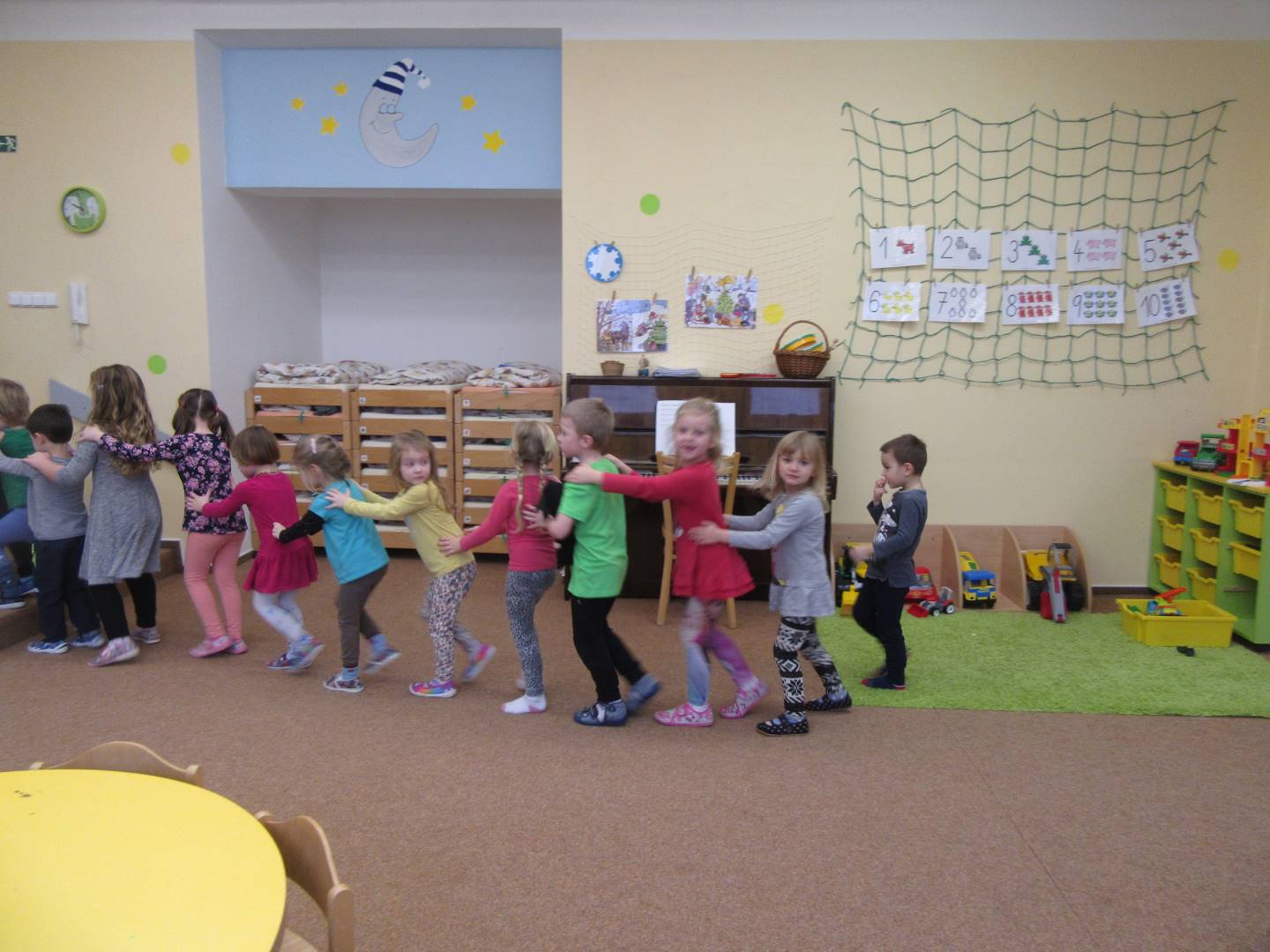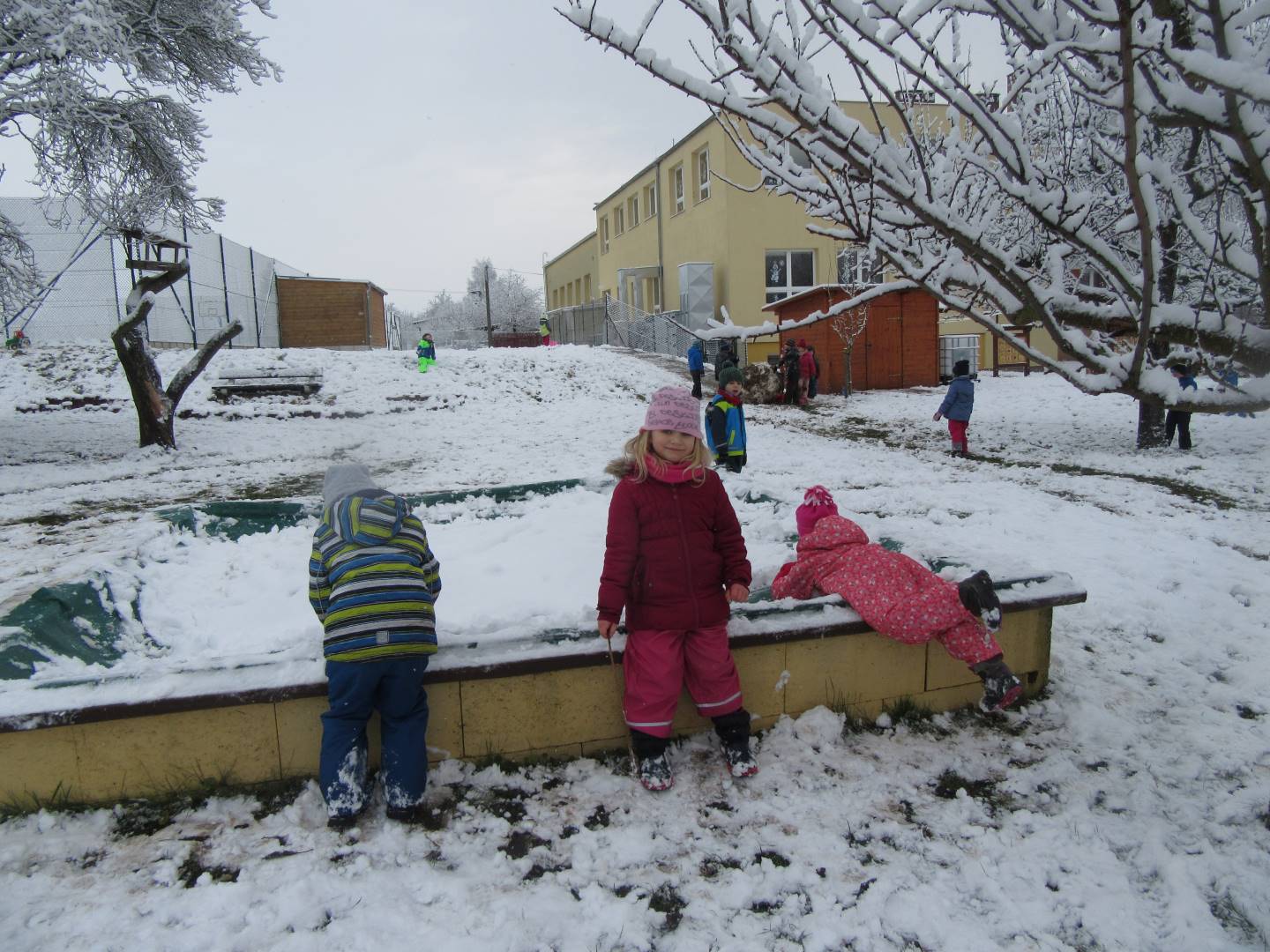 Po Vánocích děti přivítala nově vyzdobená třída. Zelená a žlutá kolečka zaplnily prázdnější zdi třídy. Snažili jsme se děti seznámit s proměnami zimní přírody a vytvářtet u nich kladný vztah k učení. Kromě básniček, písniček a pracovních listů si děti vyrobily první písmeno svého jména ze samotvrdnoucí hmoty. U dětí se nám podařila rozvinout jemná motorika a tím pádem i správné držení tužky. Procvičovali jsme barvy, tvary a pojmy vpravo a vlevo. Děti pracovaly s různými materiály - pastelkami, vodovkami, temperami, vlnou, vatou a dokonce si vyrobily barevný led. Nezapomněli jsme ani na ptáčky a děti vyrobily a rozvěsily po cestě do maringotky krmítka z ruliček do toaletního papíru za pomoci sádla a semínek.