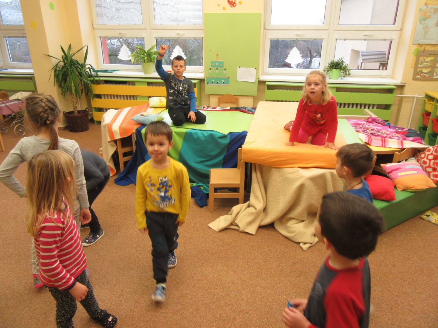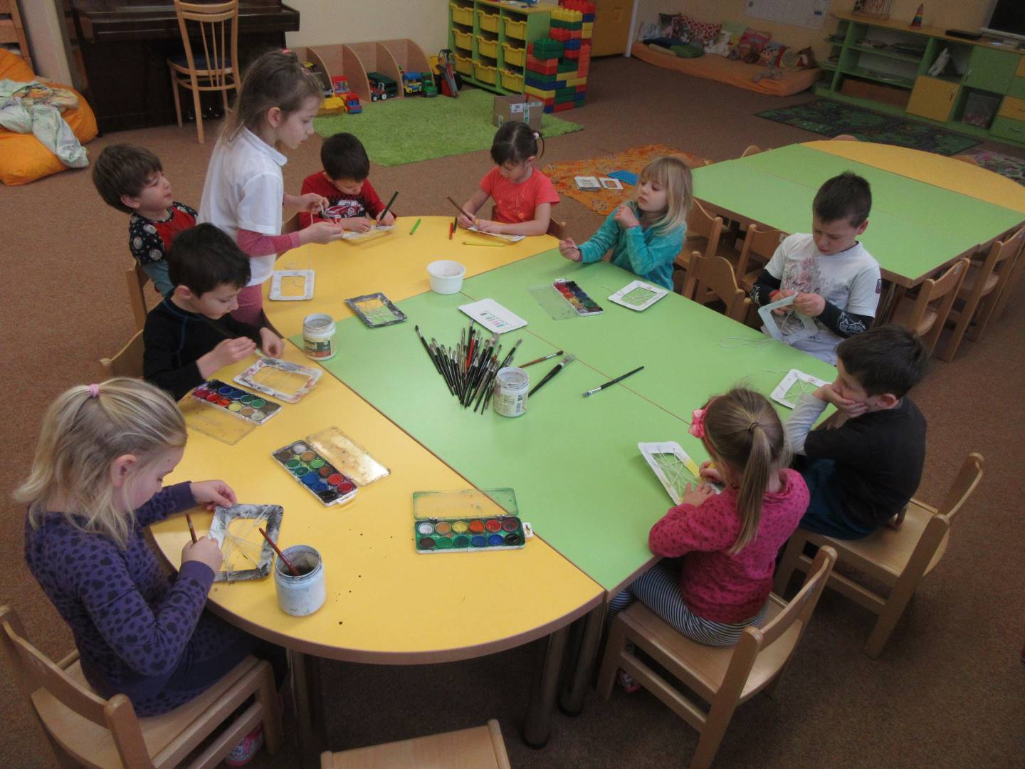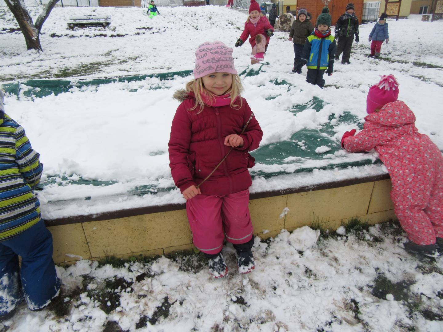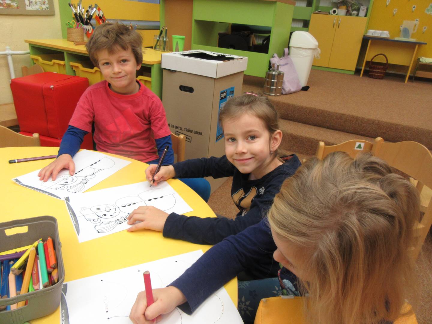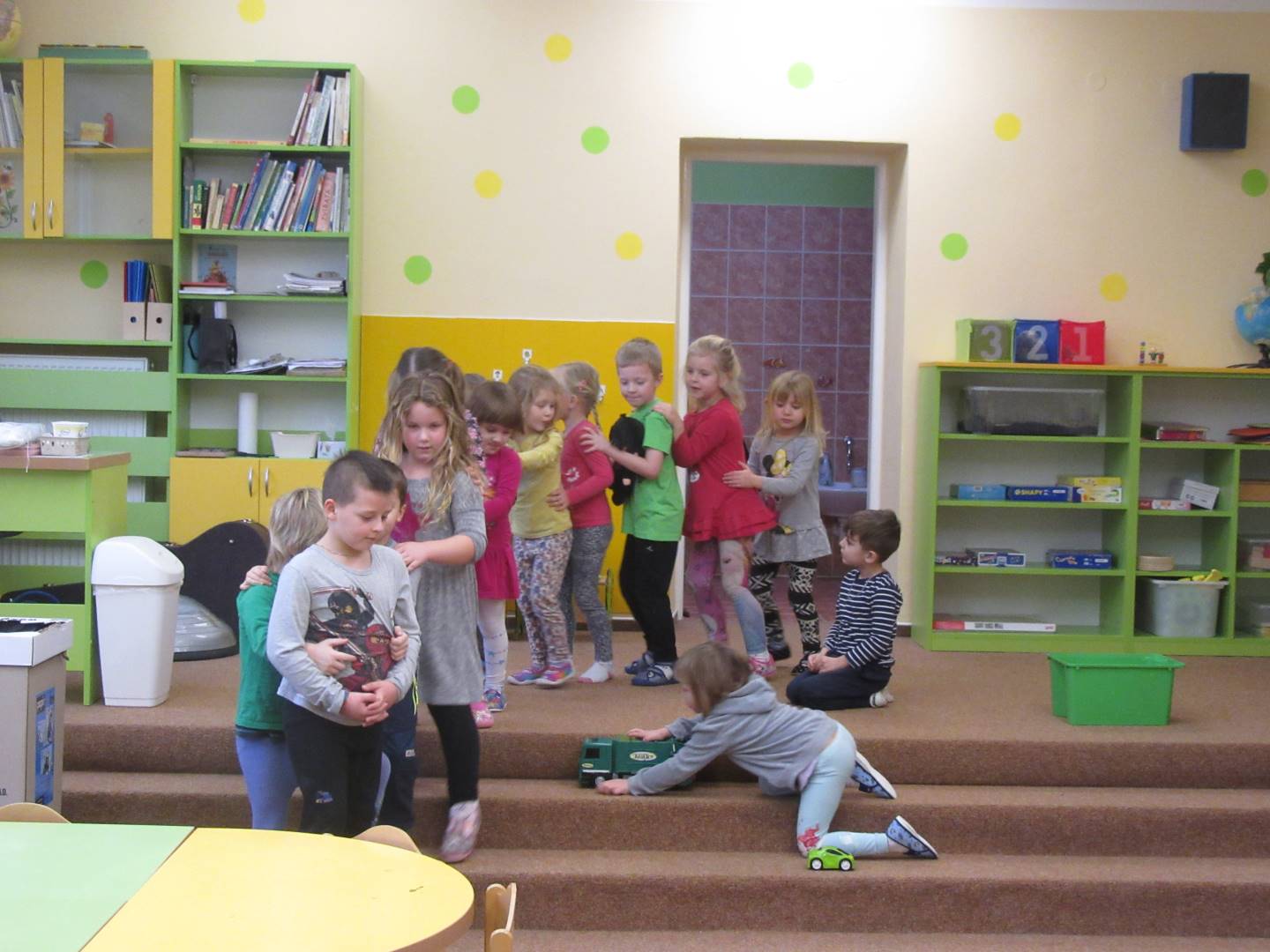 Po Vánocích děti přivítala nově vyzdobená třída. Zelená a žlutá kolečka zaplnily prázdnější zdi třídy. Snažili jsme se děti seznámit s proměnami zimní přírody a vytvářtet u nich kladný vztah k učení. Kromě básniček, písniček a pracovních listů si děti vyrobily první písmeno svého jména ze samotvrdnoucí hmoty. U dětí se nám podařila rozvinout jemná motorika a tím pádem i správné držení tužky. Procvičovali jsme barvy, tvary a pojmy vpravo a vlevo. Děti pracovaly s různými materiály - pastelkami, vodovkami, temperami, vlnou, vatou a dokonce si vyrobily barevný led. Nezapomněli jsme ani na ptáčky a děti vyrobily a rozvěsily po cestě do maringotky krmítka z ruliček do toaletního papíru za pomoci sádla a semínek.