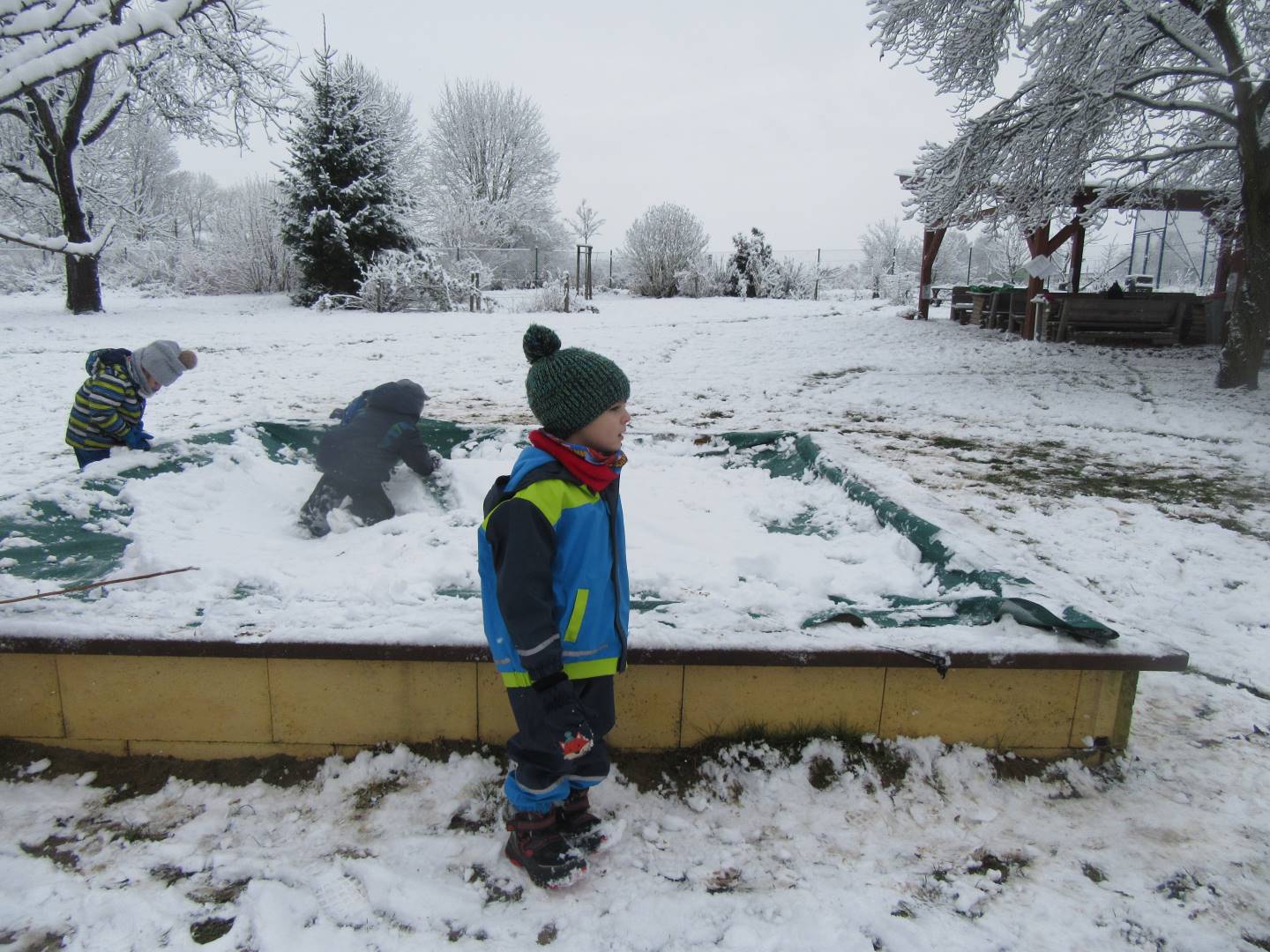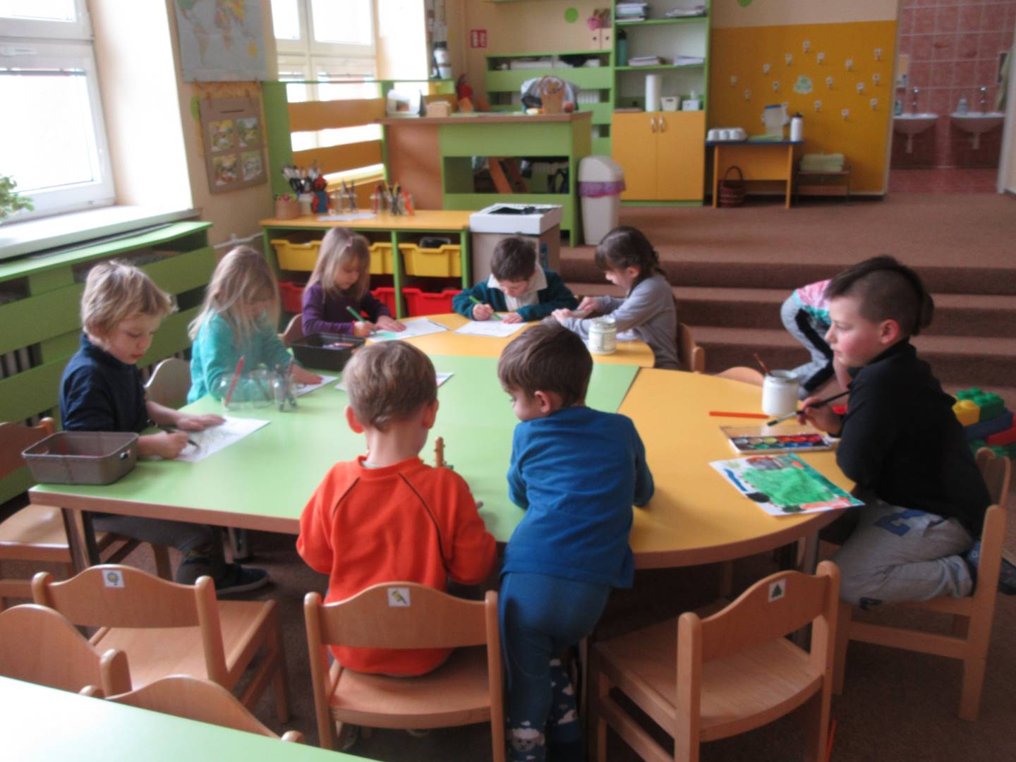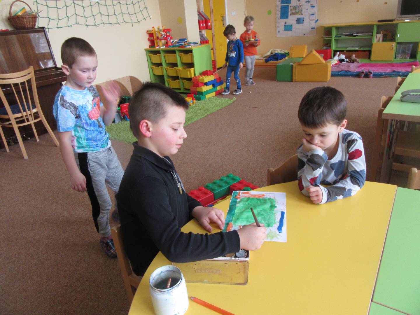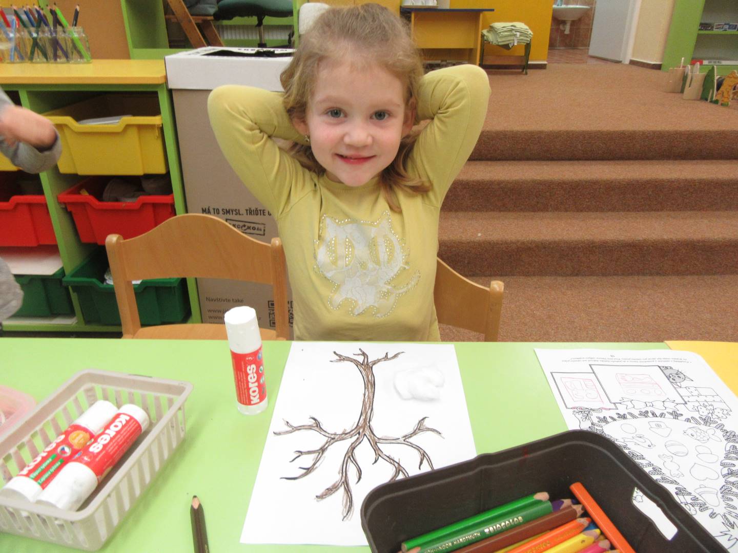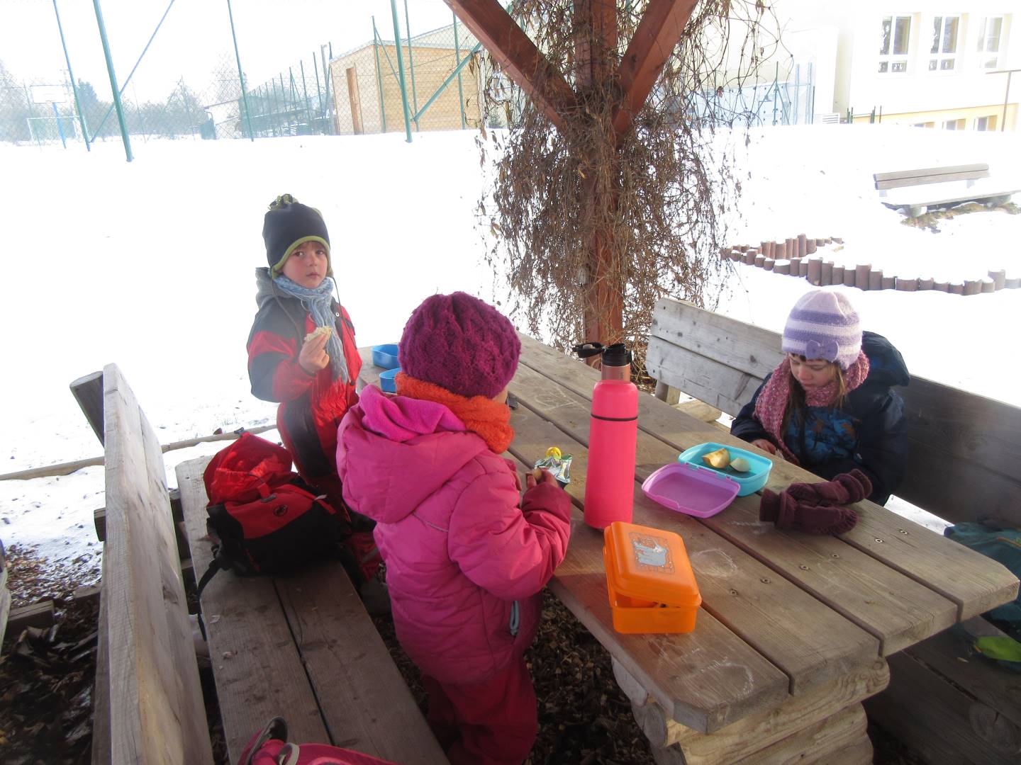 Po Vánocích děti přivítala nově vyzdobená třída. Zelená a žlutá kolečka zaplnily prázdnější zdi třídy. Snažili jsme se děti seznámit s proměnami zimní přírody a vytvářtet u nich kladný vztah k učení. Kromě básniček, písniček a pracovních listů si děti vyrobily první písmeno svého jména ze samotvrdnoucí hmoty. U dětí se nám podařila rozvinout jemná motorika a tím pádem i správné držení tužky. Procvičovali jsme barvy, tvary a pojmy vpravo a vlevo. Děti pracovaly s různými materiály - pastelkami, vodovkami, temperami, vlnou, vatou a dokonce si vyrobily barevný led. Nezapomněli jsme ani na ptáčky a děti vyrobily a rozvěsily po cestě do maringotky krmítka z ruliček do toaletního papíru za pomoci sádla a semínek.