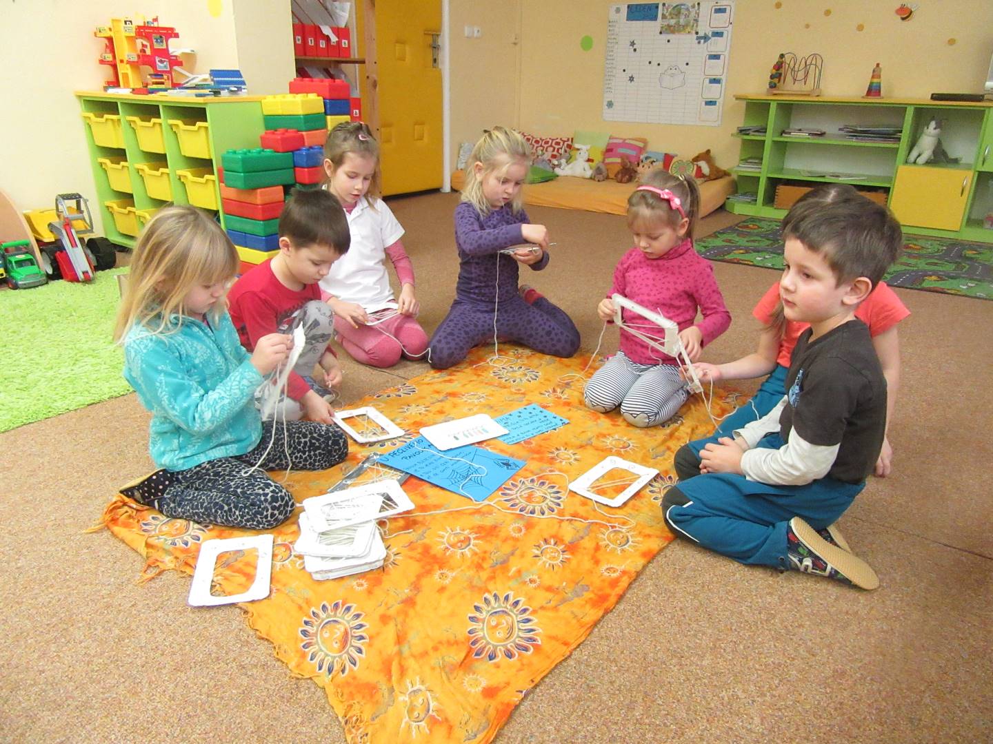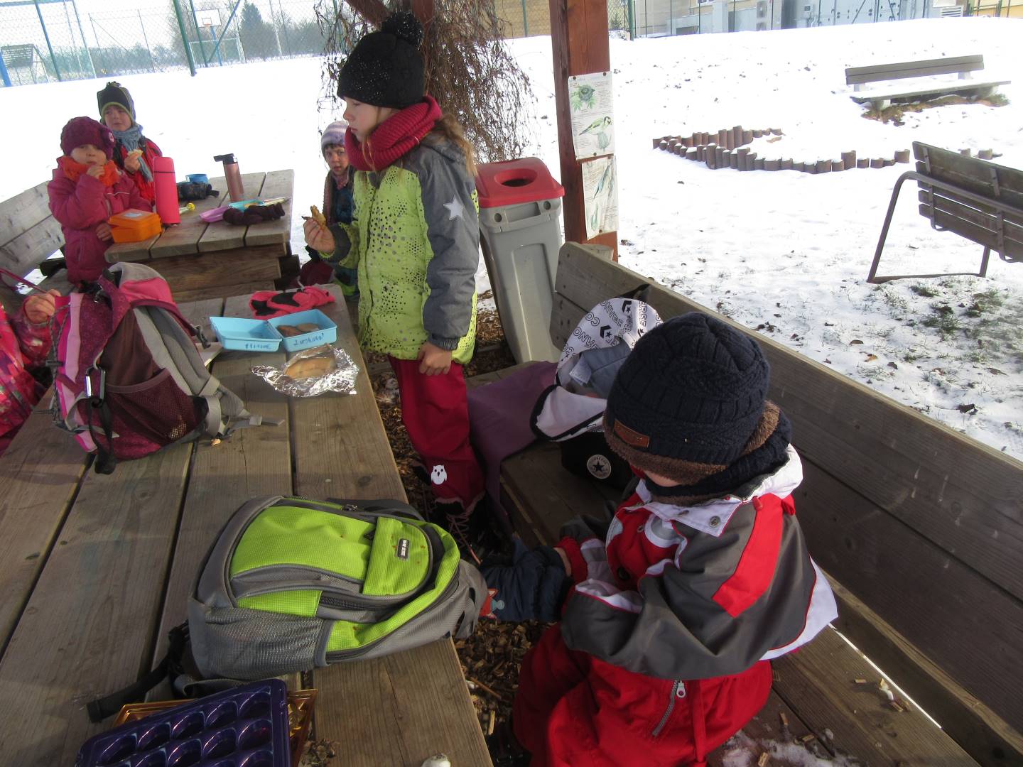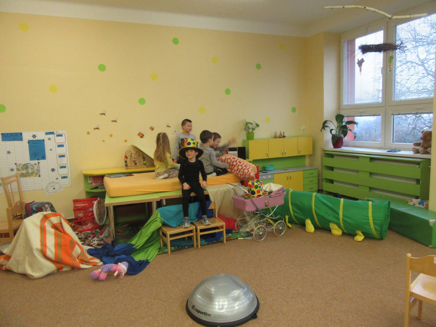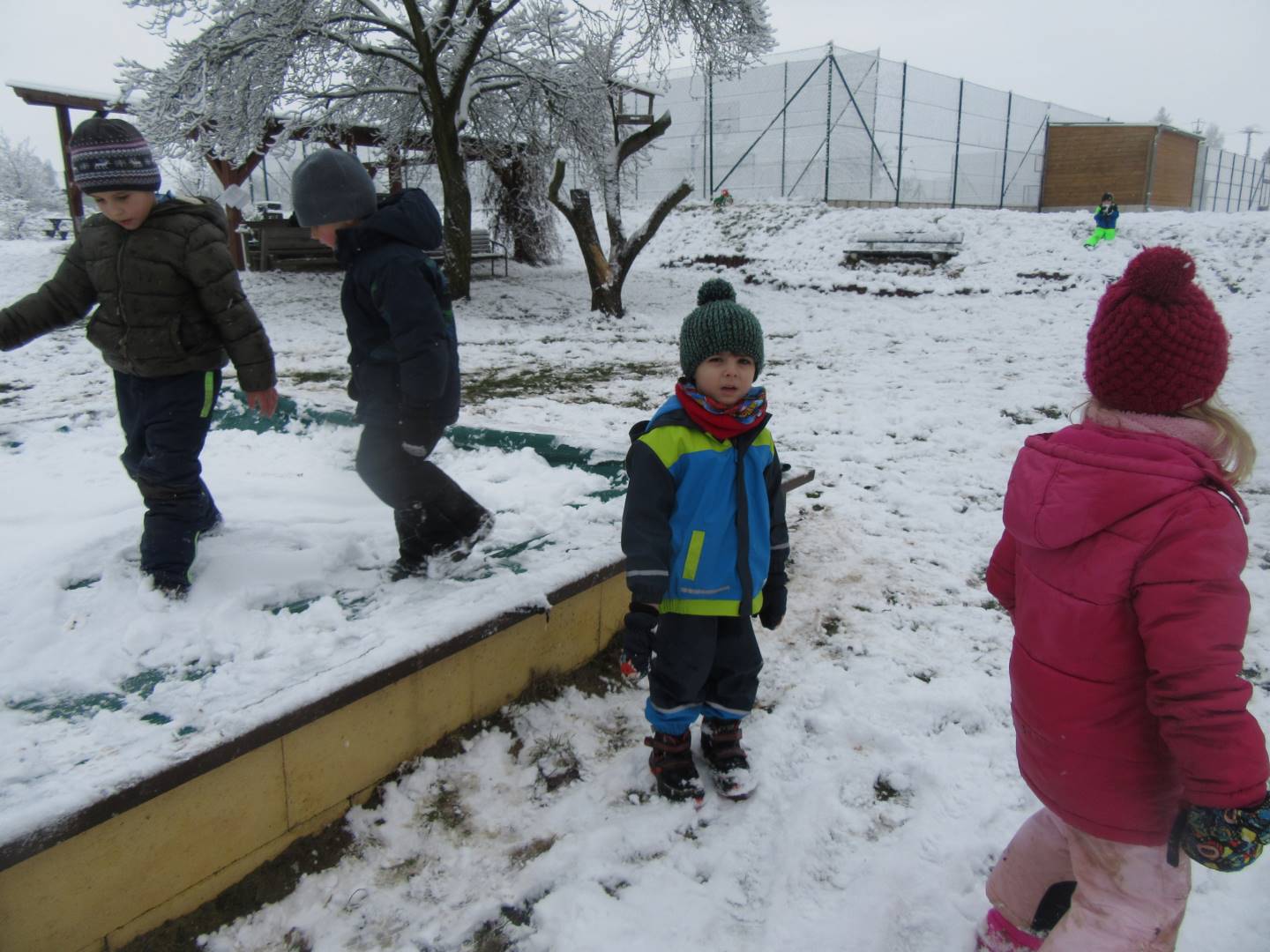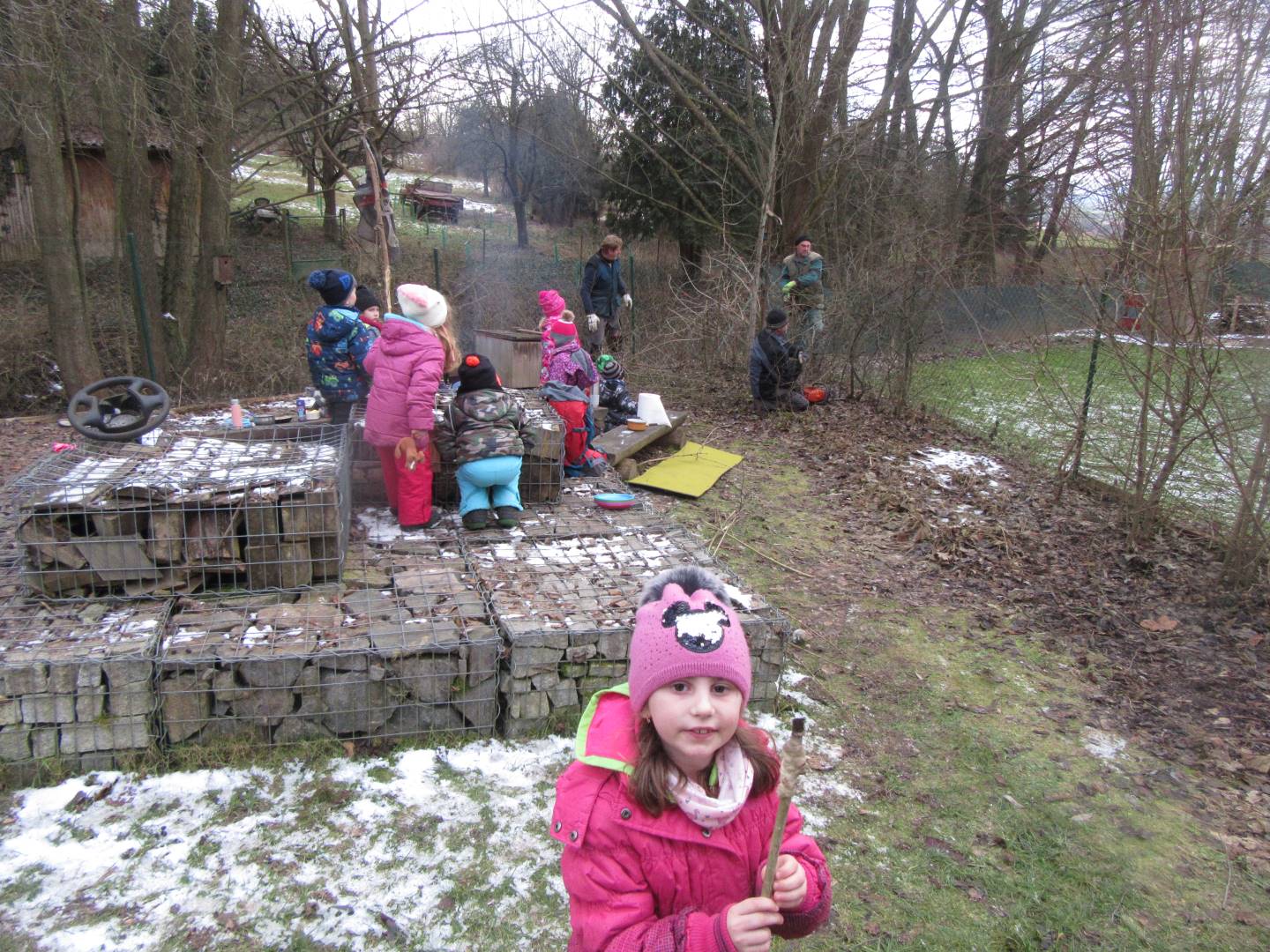 Po Vánocích děti přivítala nově vyzdobená třída. Zelená a žlutá kolečka zaplnily prázdnější zdi třídy. Snažili jsme se děti seznámit s proměnami zimní přírody a vytvářtet u nich kladný vztah k učení. Kromě básniček, písniček a pracovních listů si děti vyrobily první písmeno svého jména ze samotvrdnoucí hmoty. U dětí se nám podařila rozvinout jemná motorika a tím pádem i správné držení tužky. Procvičovali jsme barvy, tvary a pojmy vpravo a vlevo. Děti pracovaly s různými materiály - pastelkami, vodovkami, temperami, vlnou, vatou a dokonce si vyrobily barevný led. Nezapomněli jsme ani na ptáčky a děti vyrobily a rozvěsily po cestě do maringotky krmítka z ruliček do toaletního papíru za pomoci sádla a semínek.