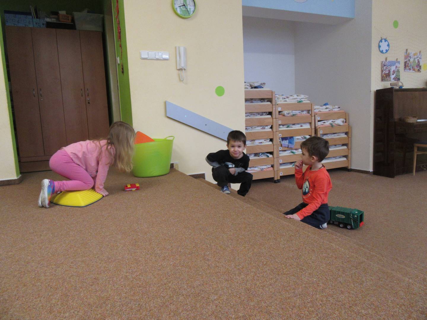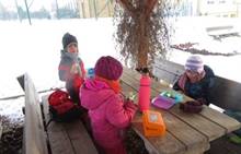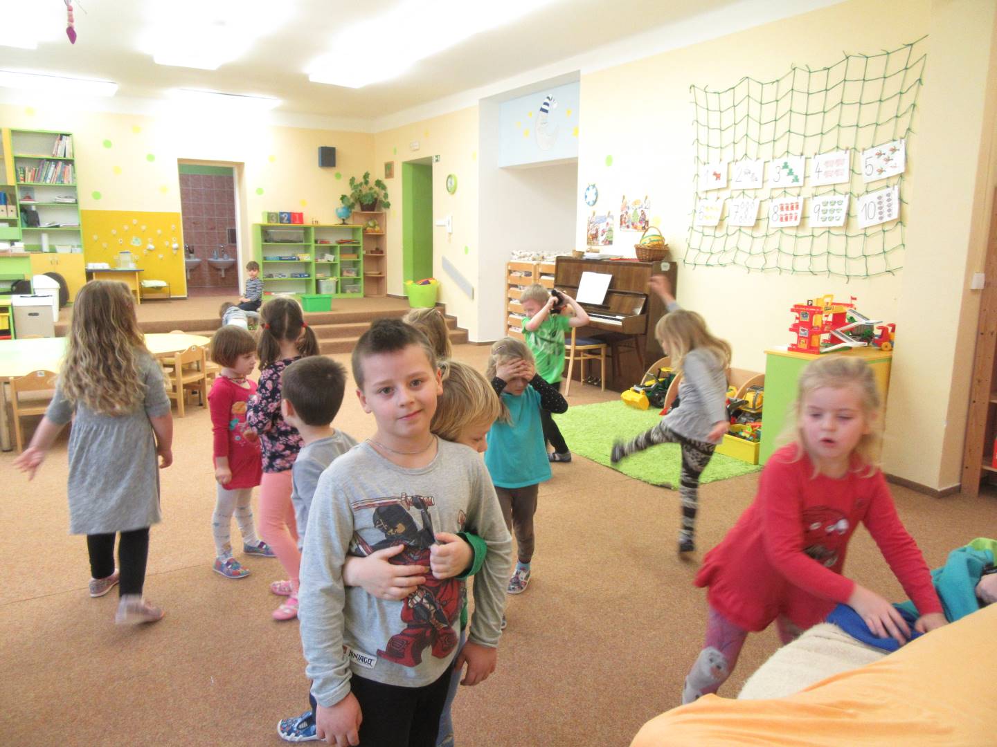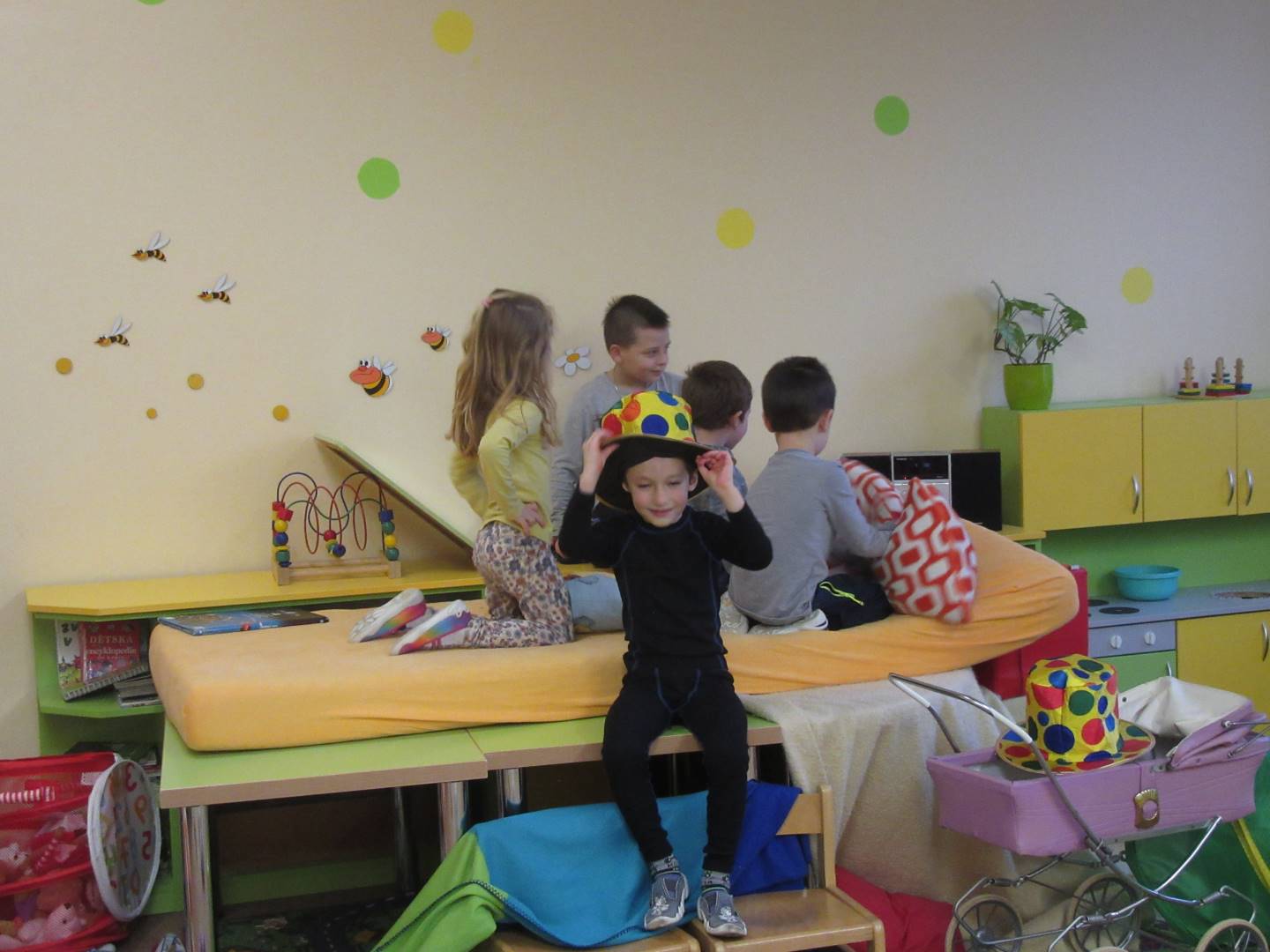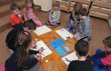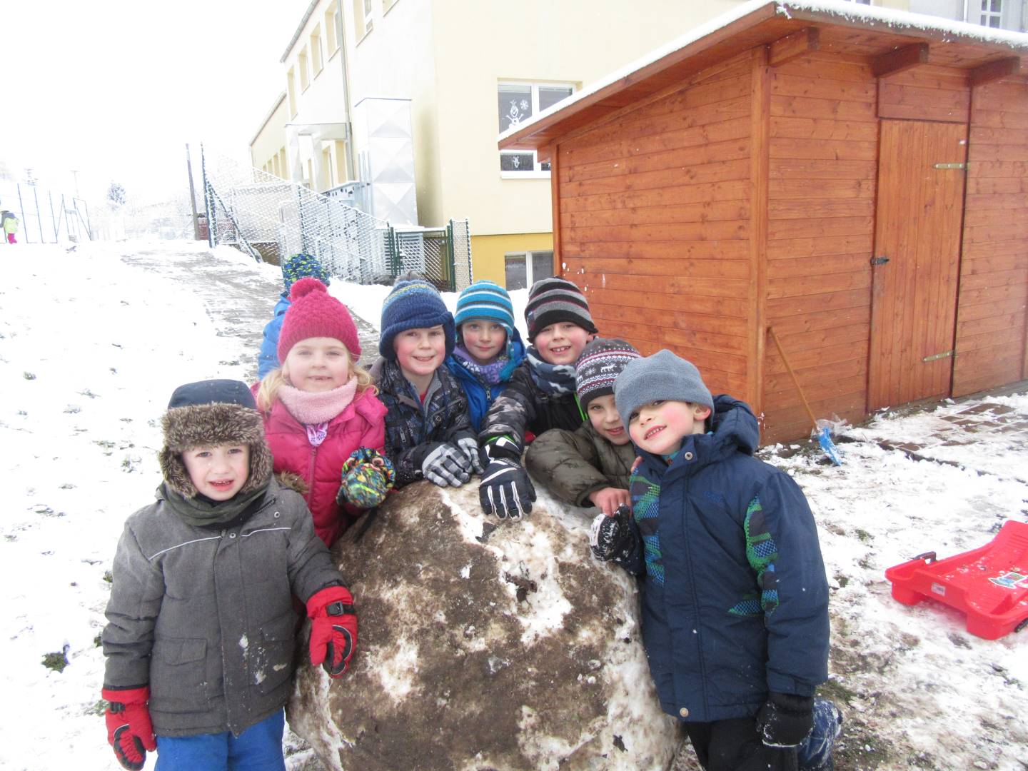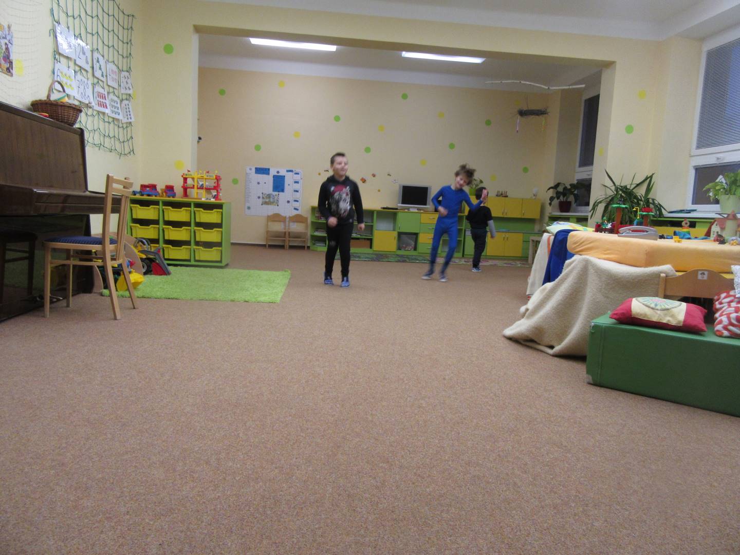 Po Vánocích děti přivítala nově vyzdobená třída. Zelená a žlutá kolečka zaplnily prázdnější zdi třídy. Snažili jsme se děti seznámit s proměnami zimní přírody a vytvářtet u nich kladný vztah k učení. Kromě básniček, písniček a pracovních listů si děti vyrobily první písmeno svého jména ze samotvrdnoucí hmoty. U dětí se nám podařila rozvinout jemná motorika a tím pádem i správné držení tužky. Procvičovali jsme barvy, tvary a pojmy vpravo a vlevo. Děti pracovaly s různými materiály - pastelkami, vodovkami, temperami, vlnou, vatou a dokonce si vyrobily barevný led. Nezapomněli jsme ani na ptáčky a děti vyrobily a rozvěsily po cestě do maringotky krmítka z ruliček do toaletního papíru za pomoci sádla a semínek.