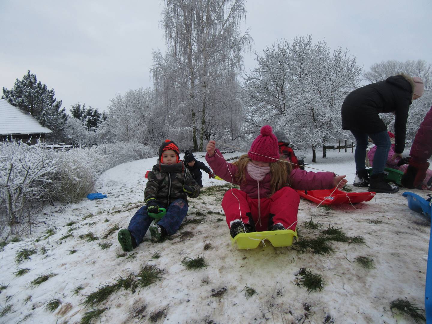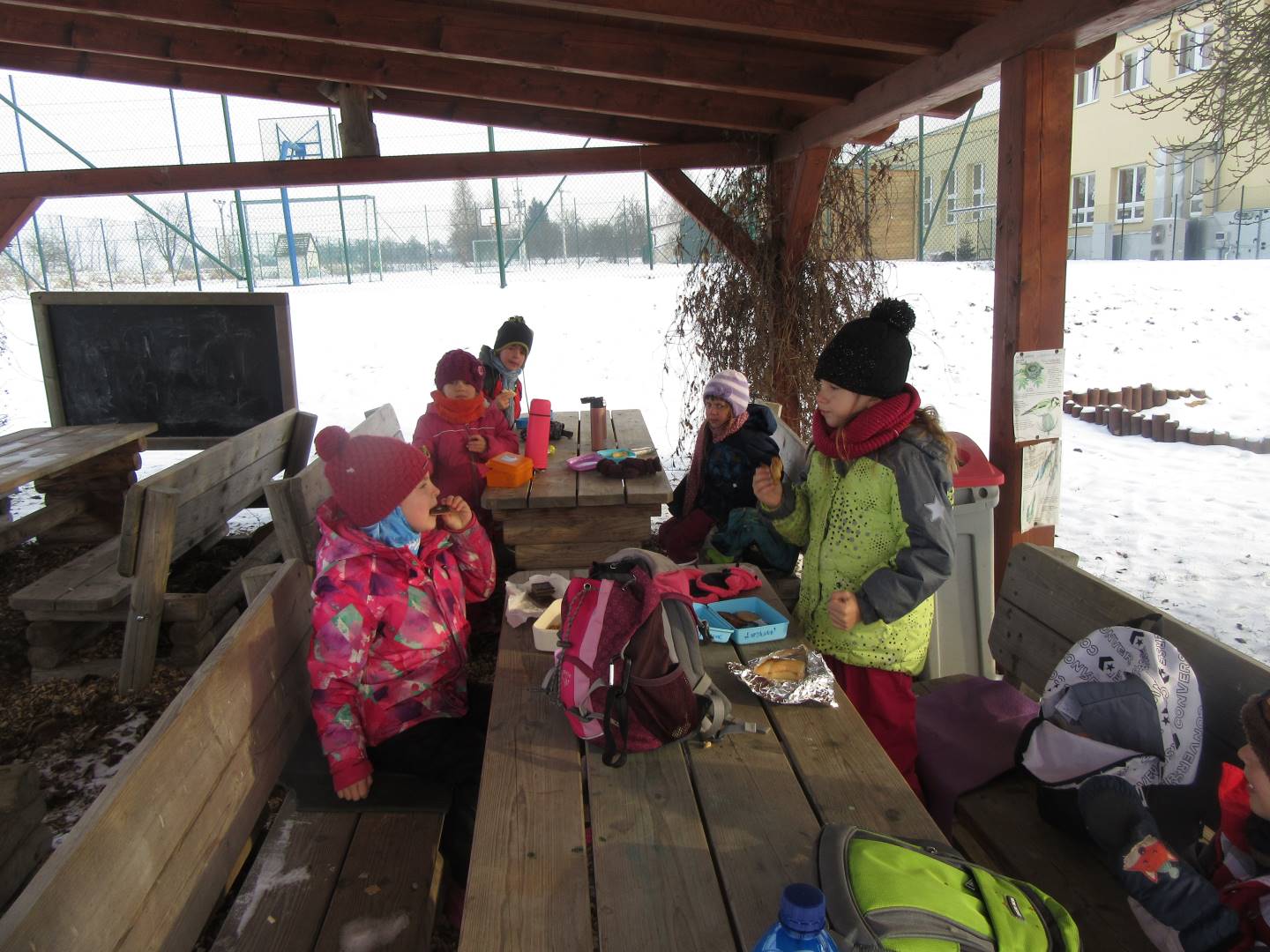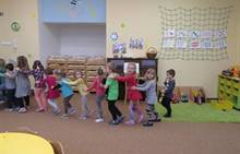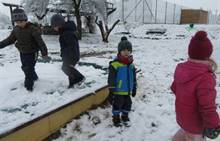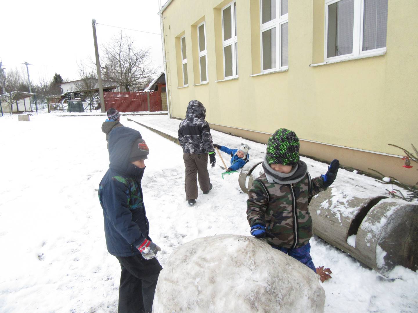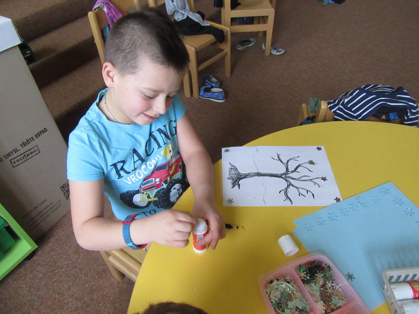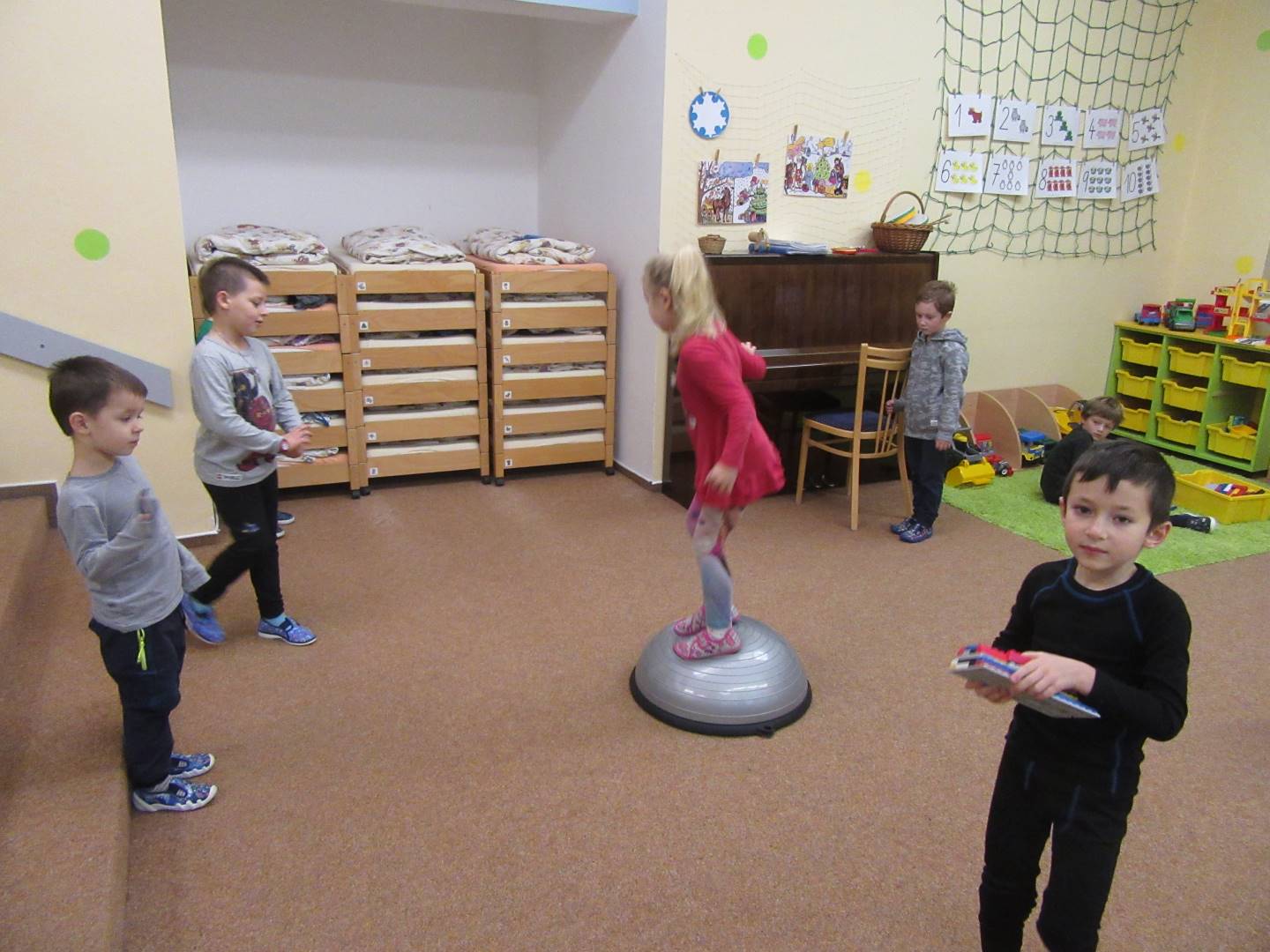 Po Vánocích děti přivítala nově vyzdobená třída. Zelená a žlutá kolečka zaplnily prázdnější zdi třídy. Snažili jsme se děti seznámit s proměnami zimní přírody a vytvářtet u nich kladný vztah k učení. Kromě básniček, písniček a pracovních listů si děti vyrobily první písmeno svého jména ze samotvrdnoucí hmoty. U dětí se nám podařila rozvinout jemná motorika a tím pádem i správné držení tužky. Procvičovali jsme barvy, tvary a pojmy vpravo a vlevo. Děti pracovaly s různými materiály - pastelkami, vodovkami, temperami, vlnou, vatou a dokonce si vyrobily barevný led. Nezapomněli jsme ani na ptáčky a děti vyrobily a rozvěsily po cestě do maringotky krmítka z ruliček do toaletního papíru za pomoci sádla a semínek.