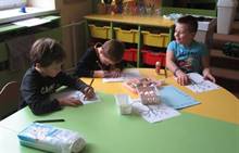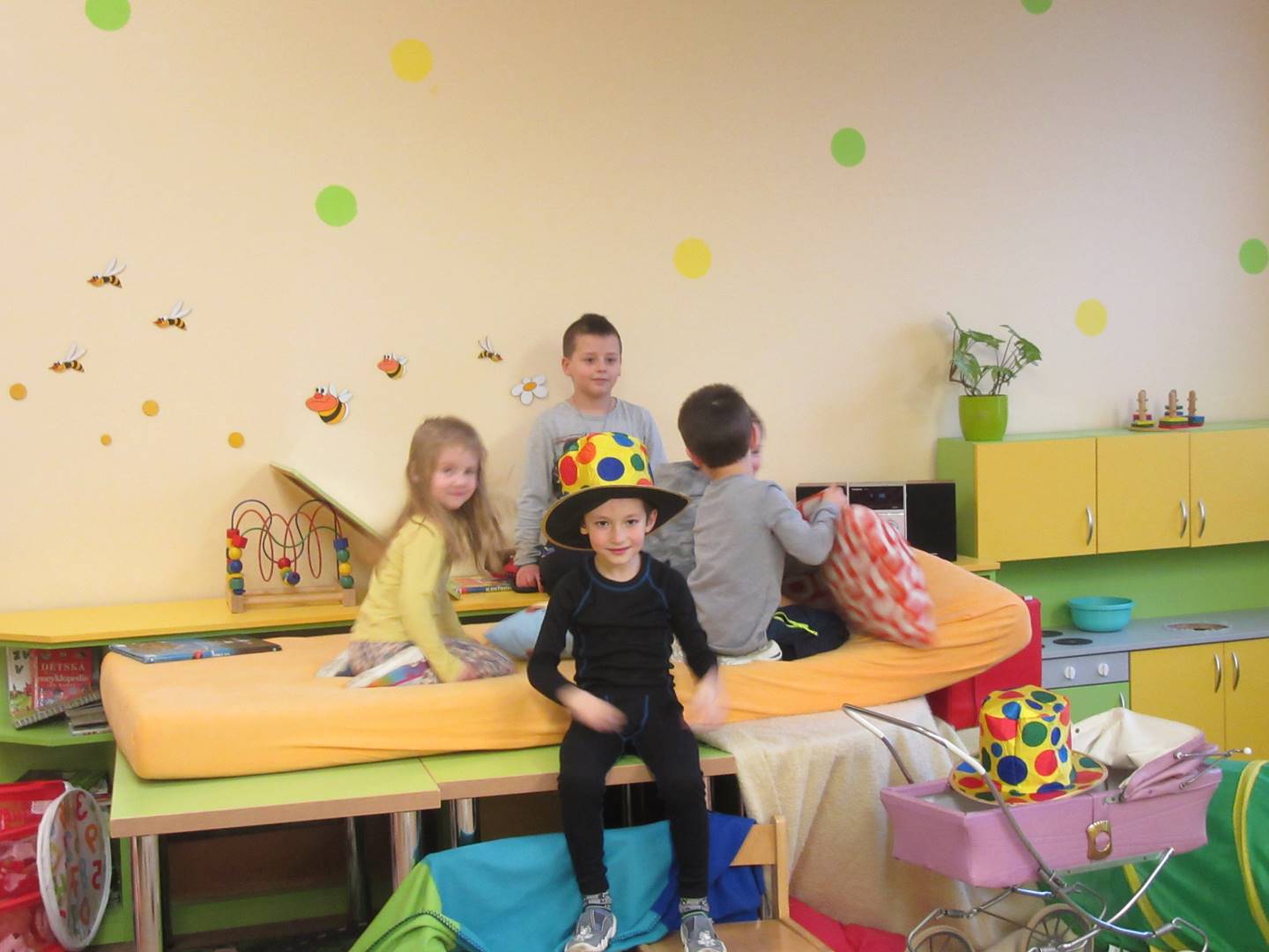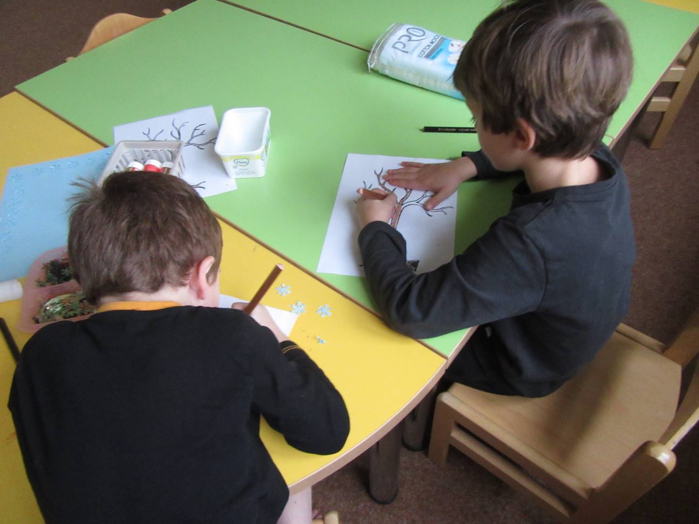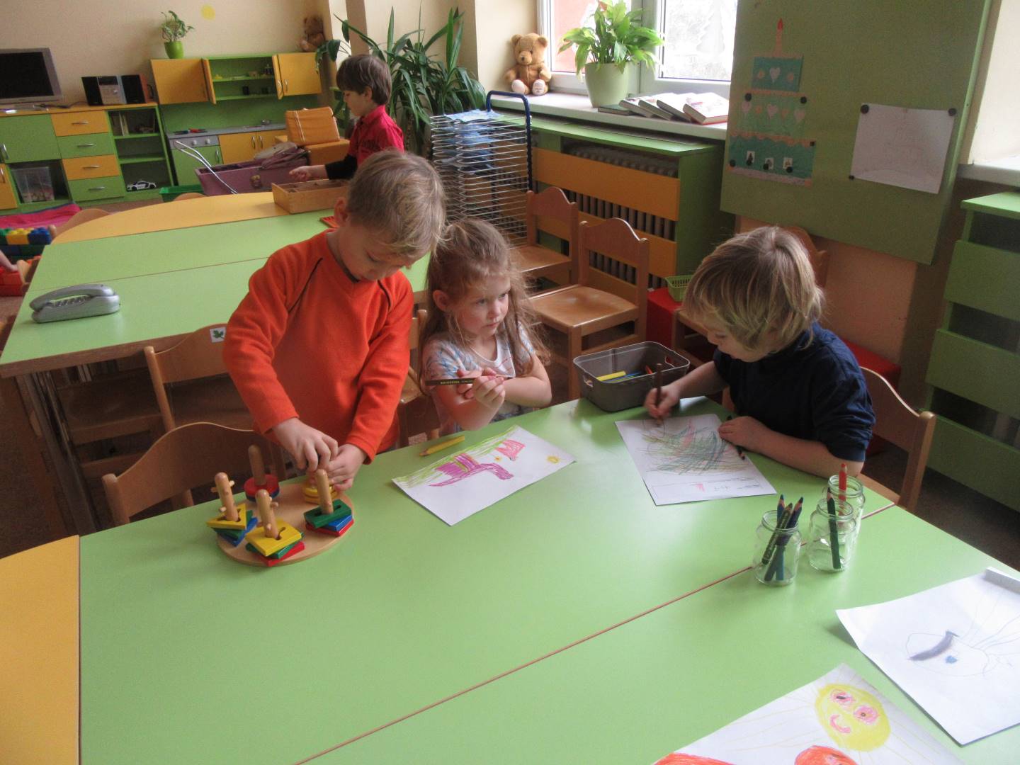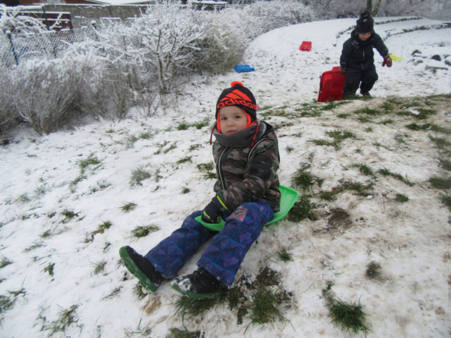 Po Vánocích děti přivítala nově vyzdobená třída. Zelená a žlutá kolečka zaplnily prázdnější zdi třídy. Snažili jsme se děti seznámit s proměnami zimní přírody a vytvářtet u nich kladný vztah k učení. Kromě básniček, písniček a pracovních listů si děti vyrobily první písmeno svého jména ze samotvrdnoucí hmoty. U dětí se nám podařila rozvinout jemná motorika a tím pádem i správné držení tužky. Procvičovali jsme barvy, tvary a pojmy vpravo a vlevo. Děti pracovaly s různými materiály - pastelkami, vodovkami, temperami, vlnou, vatou a dokonce si vyrobily barevný led. Nezapomněli jsme ani na ptáčky a děti vyrobily a rozvěsily po cestě do maringotky krmítka z ruliček do toaletního papíru za pomoci sádla a semínek.