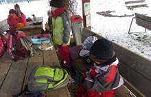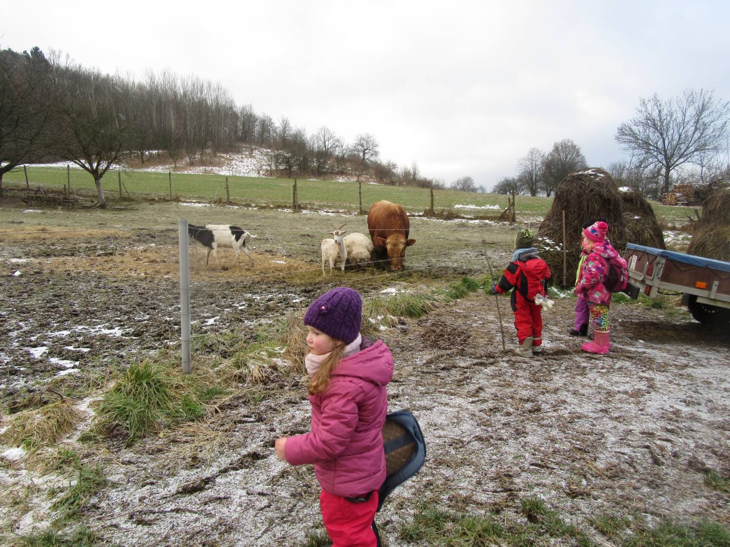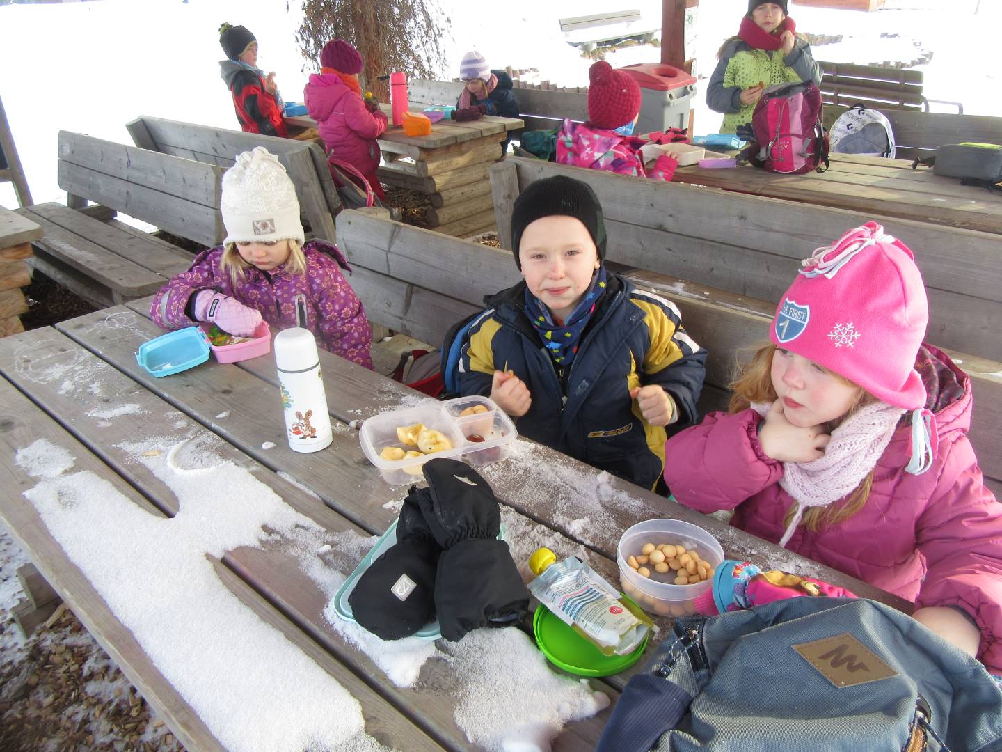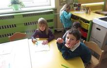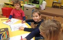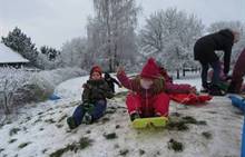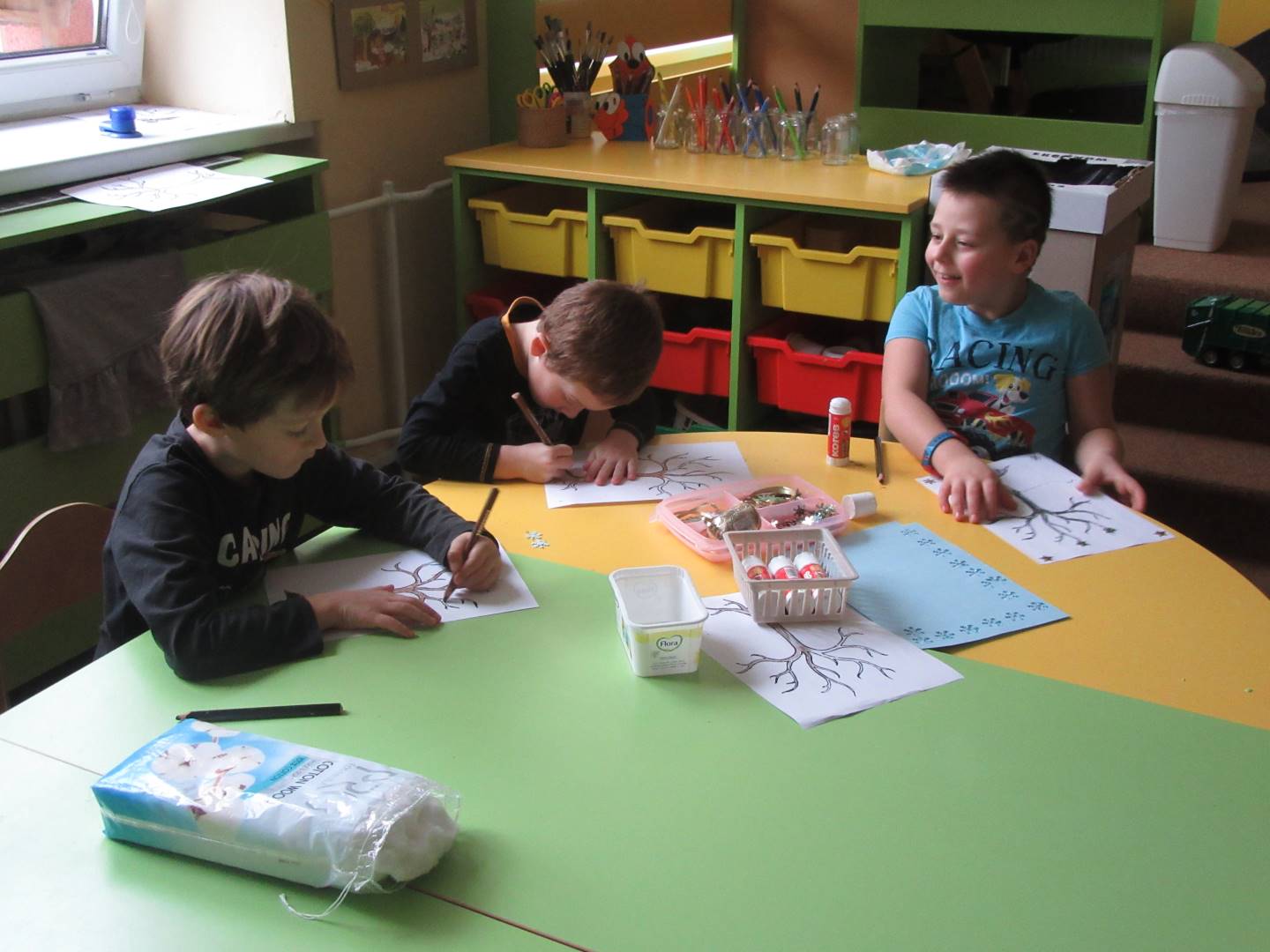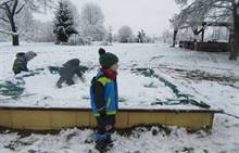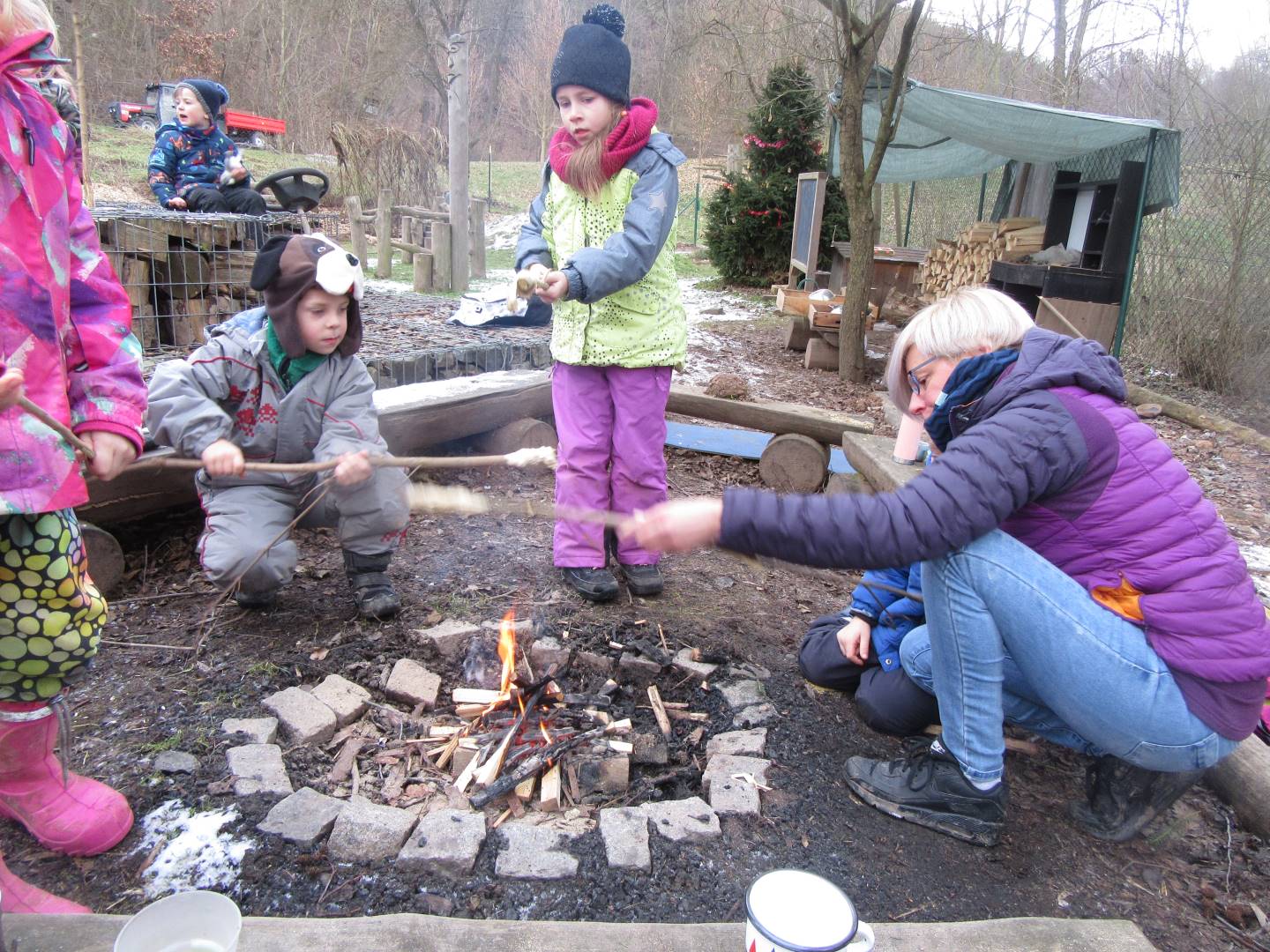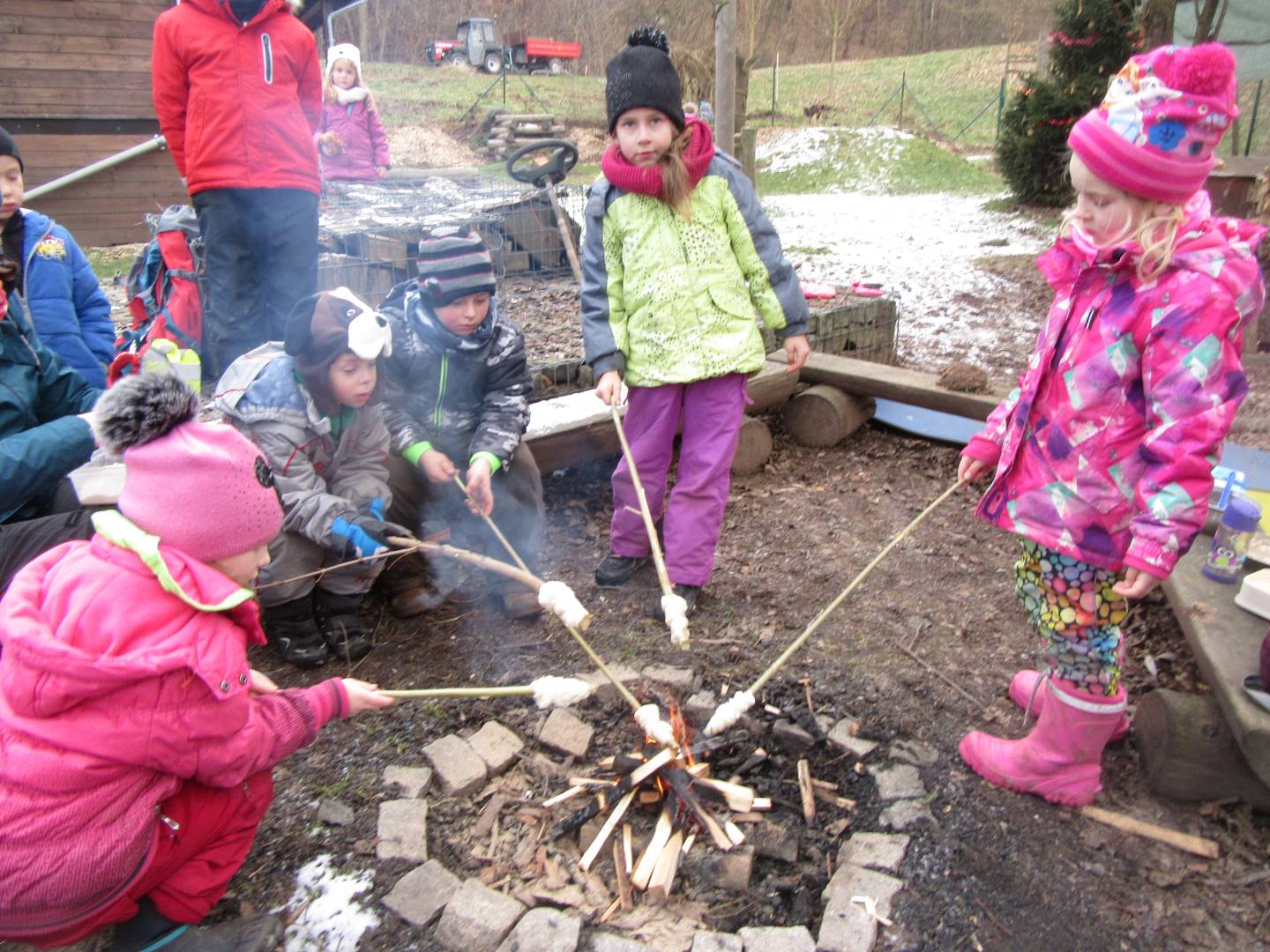 Po Vánocích děti přivítala nově vyzdobená třída. Zelená a žlutá kolečka zaplnily prázdnější zdi třídy. Snažili jsme se děti seznámit s proměnami zimní přírody a vytvářtet u nich kladný vztah k učení. Kromě básniček, písniček a pracovních listů si děti vyrobily první písmeno svého jména ze samotvrdnoucí hmoty. U dětí se nám podařila rozvinout jemná motorika a tím pádem i správné držení tužky. Procvičovali jsme barvy, tvary a pojmy vpravo a vlevo. Děti pracovaly s různými materiály - pastelkami, vodovkami, temperami, vlnou, vatou a dokonce si vyrobily barevný led. Nezapomněli jsme ani na ptáčky a děti vyrobily a rozvěsily po cestě do maringotky krmítka z ruliček do toaletního papíru za pomoci sádla a semínek.