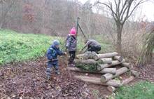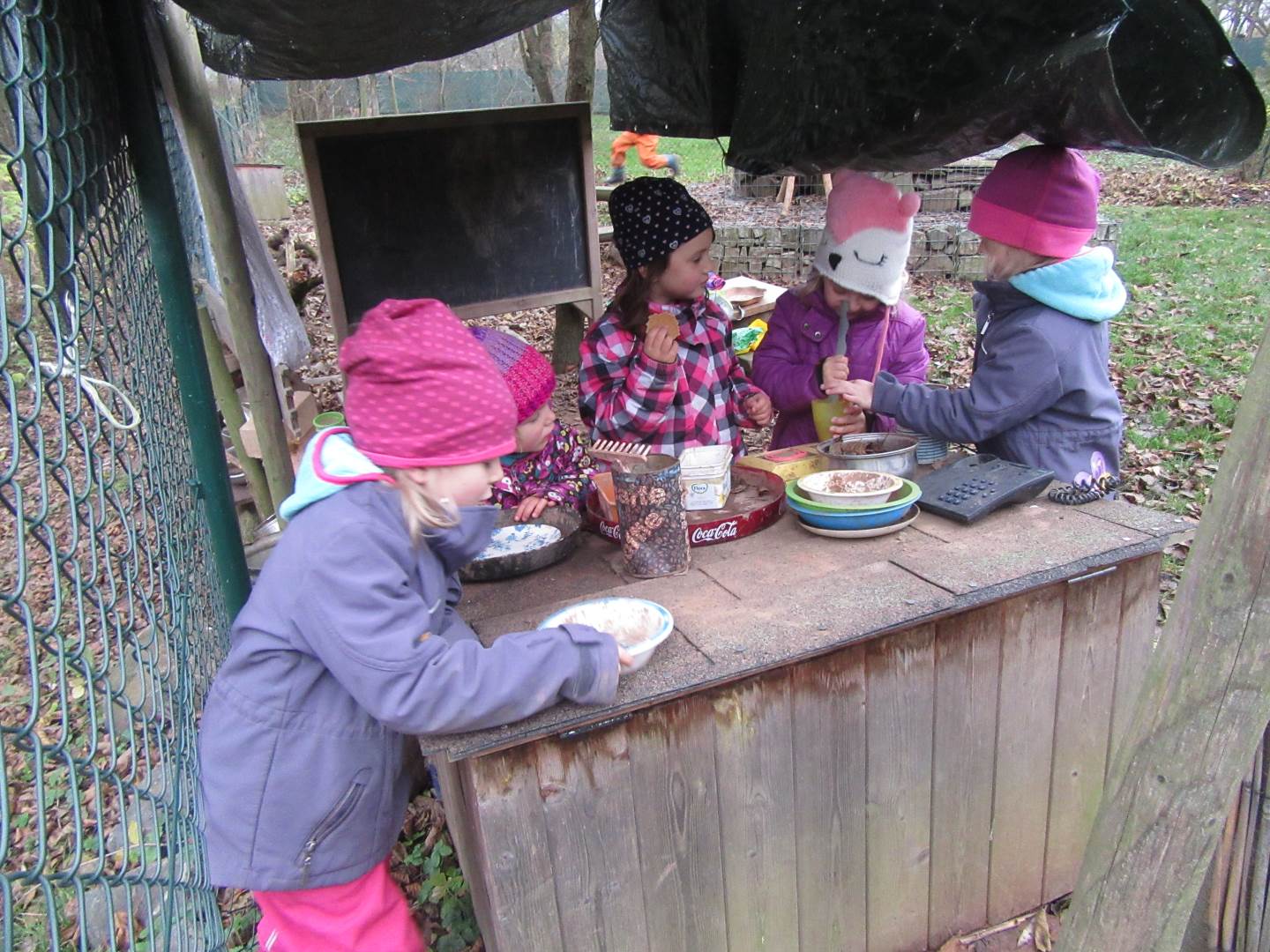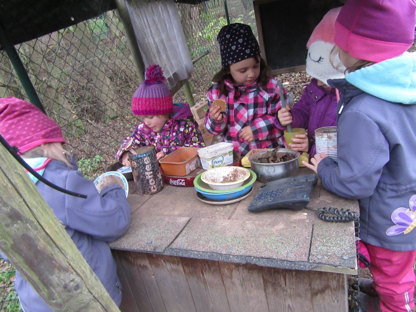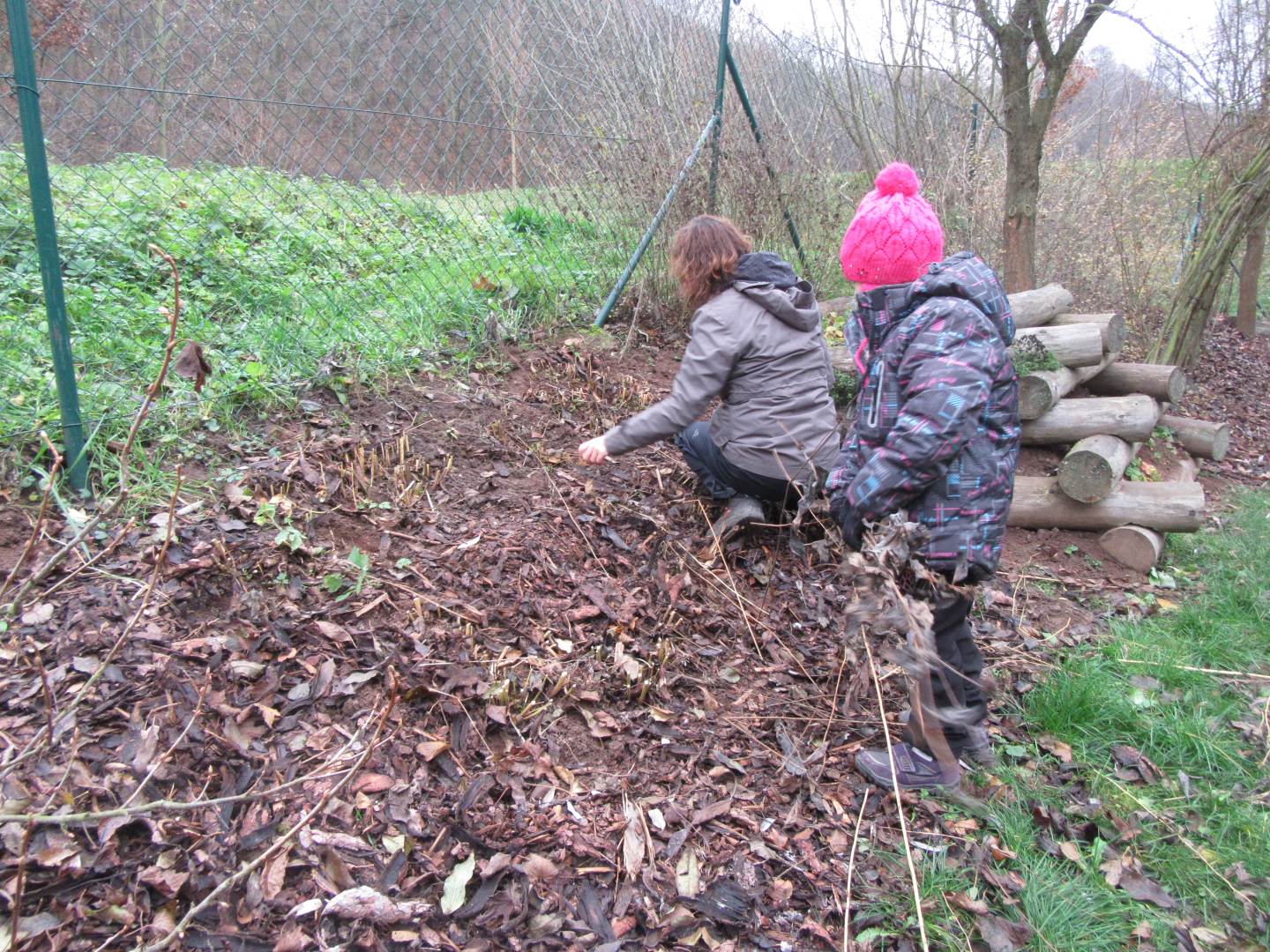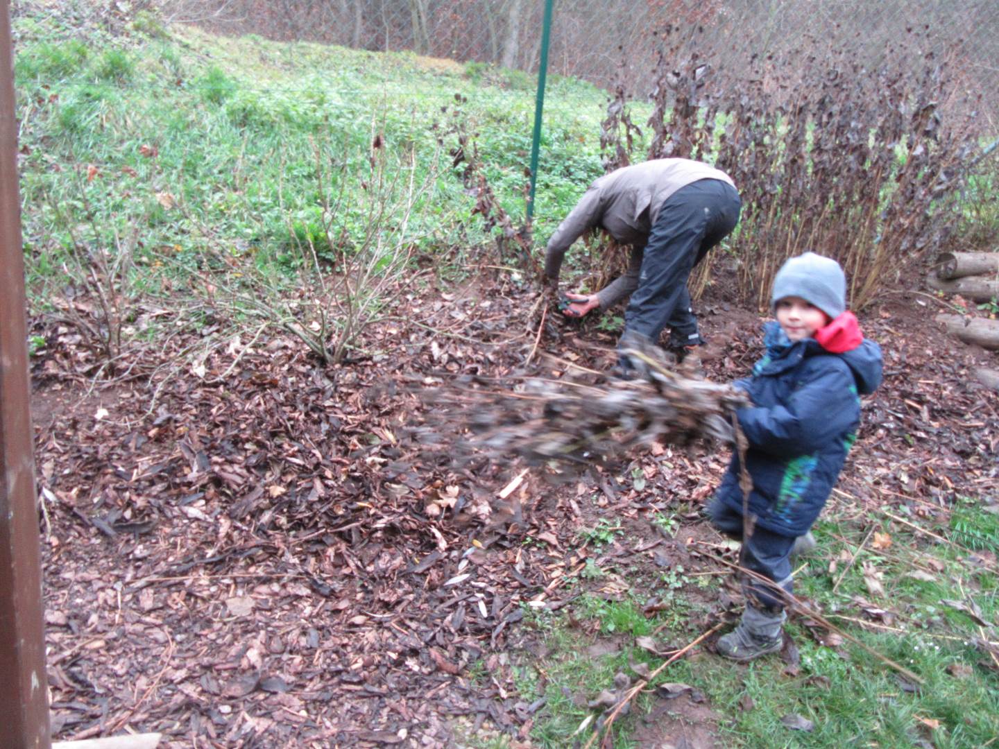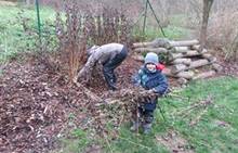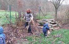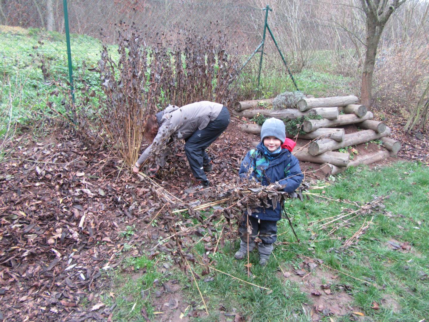 V úterý a ve středu jsme u maringotky udělali mnoho práce. Zryli jsme záhonek, ostříhali keře, shrabali listí. Za odměnu jsme si zahráli zvířecí pexeso. Cestou jsme si vyprávěli pohádky, dávali hádanky a zpívali si. Ve školce si děti vykreslily veverku a pod ni nalepily list.