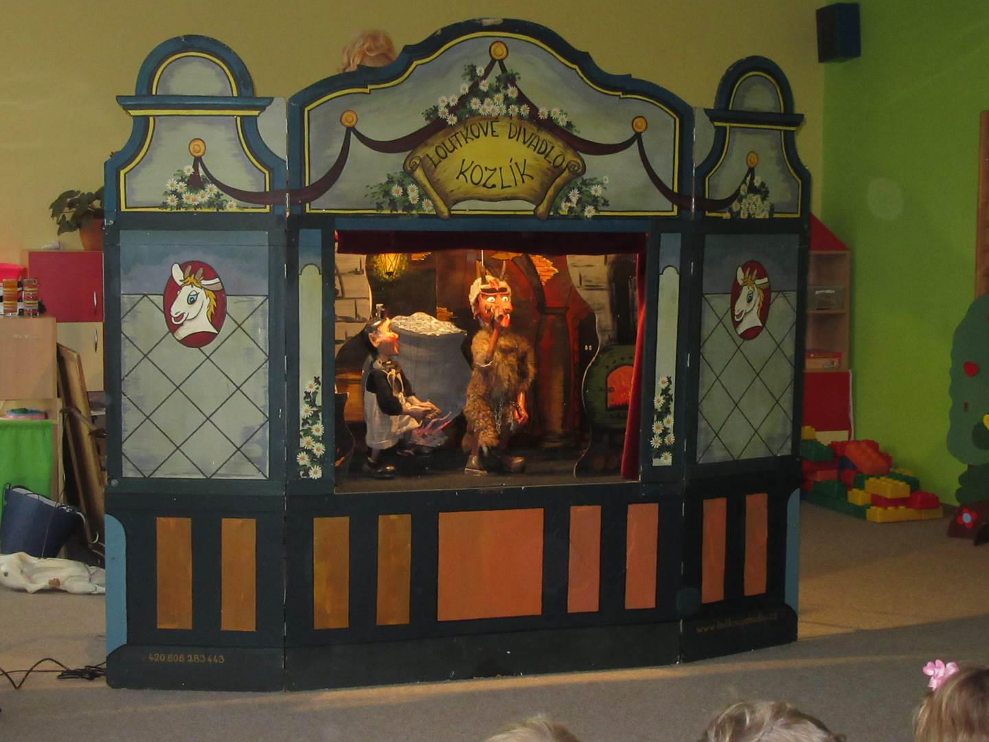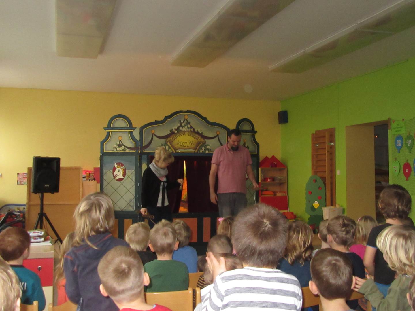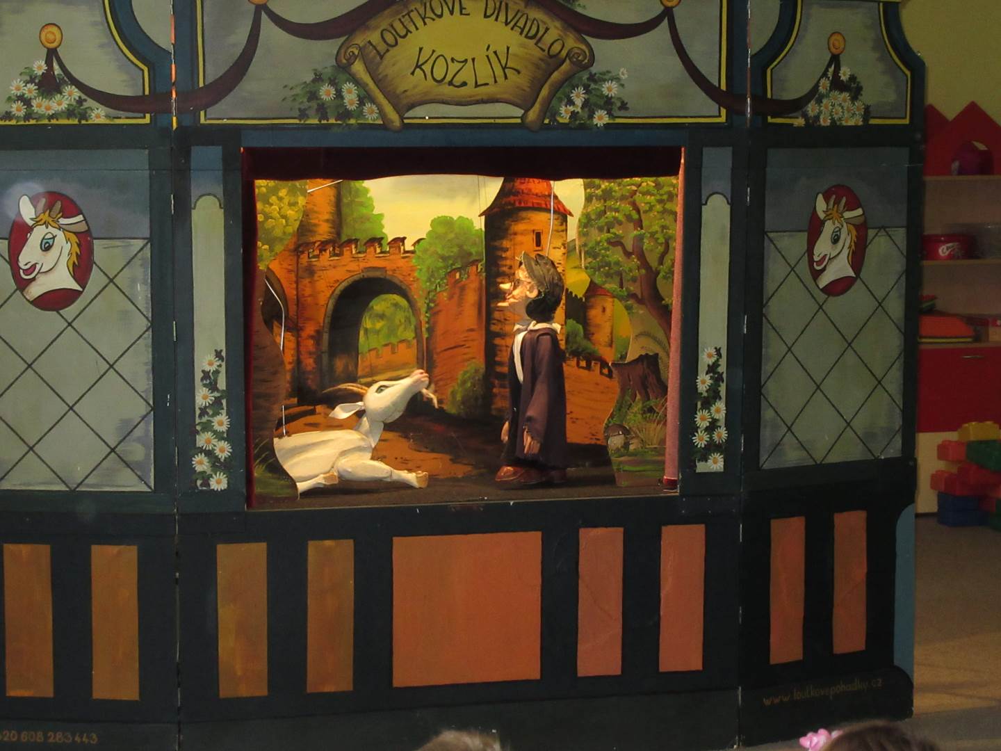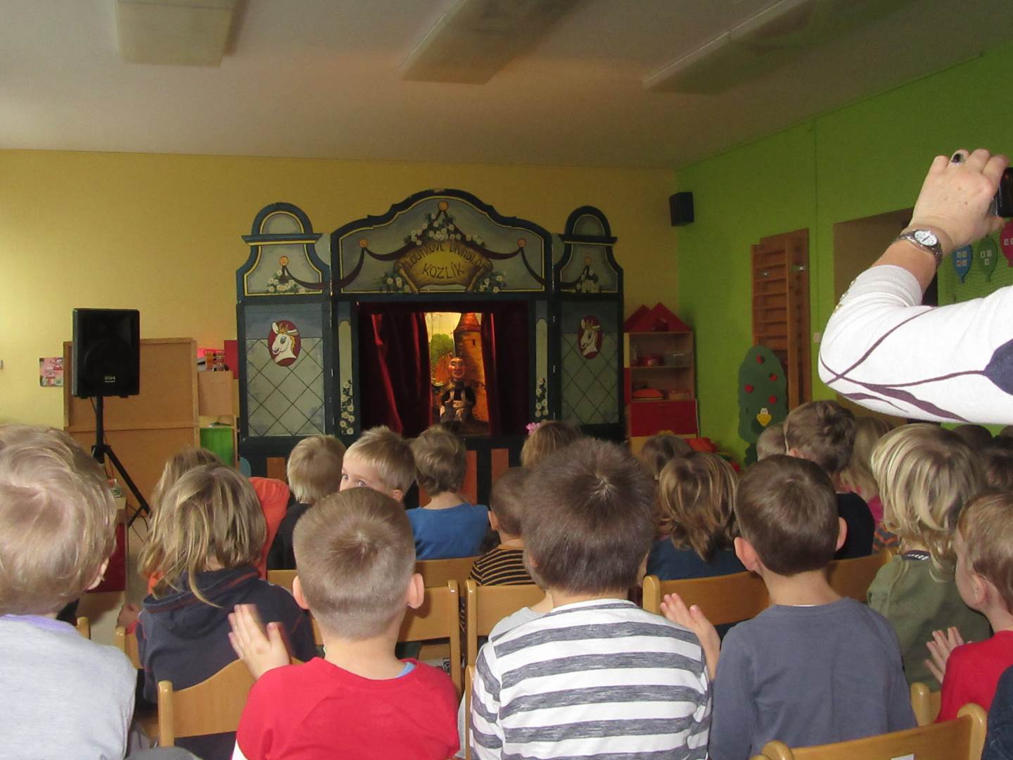 Pondělí jsme zahájili pohádkou o Luciáškovi, kterou nám přijelo zahrát divadlo Kozlík. Po představení si děti mohly pohladit dřevěné loutky - kozlíka, draha...