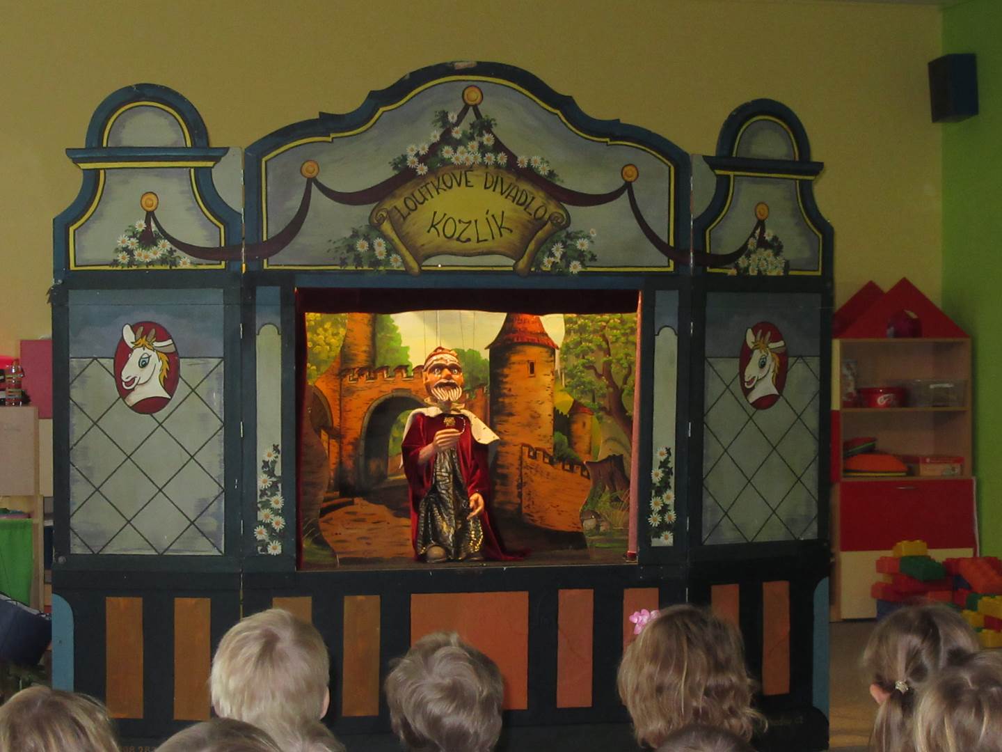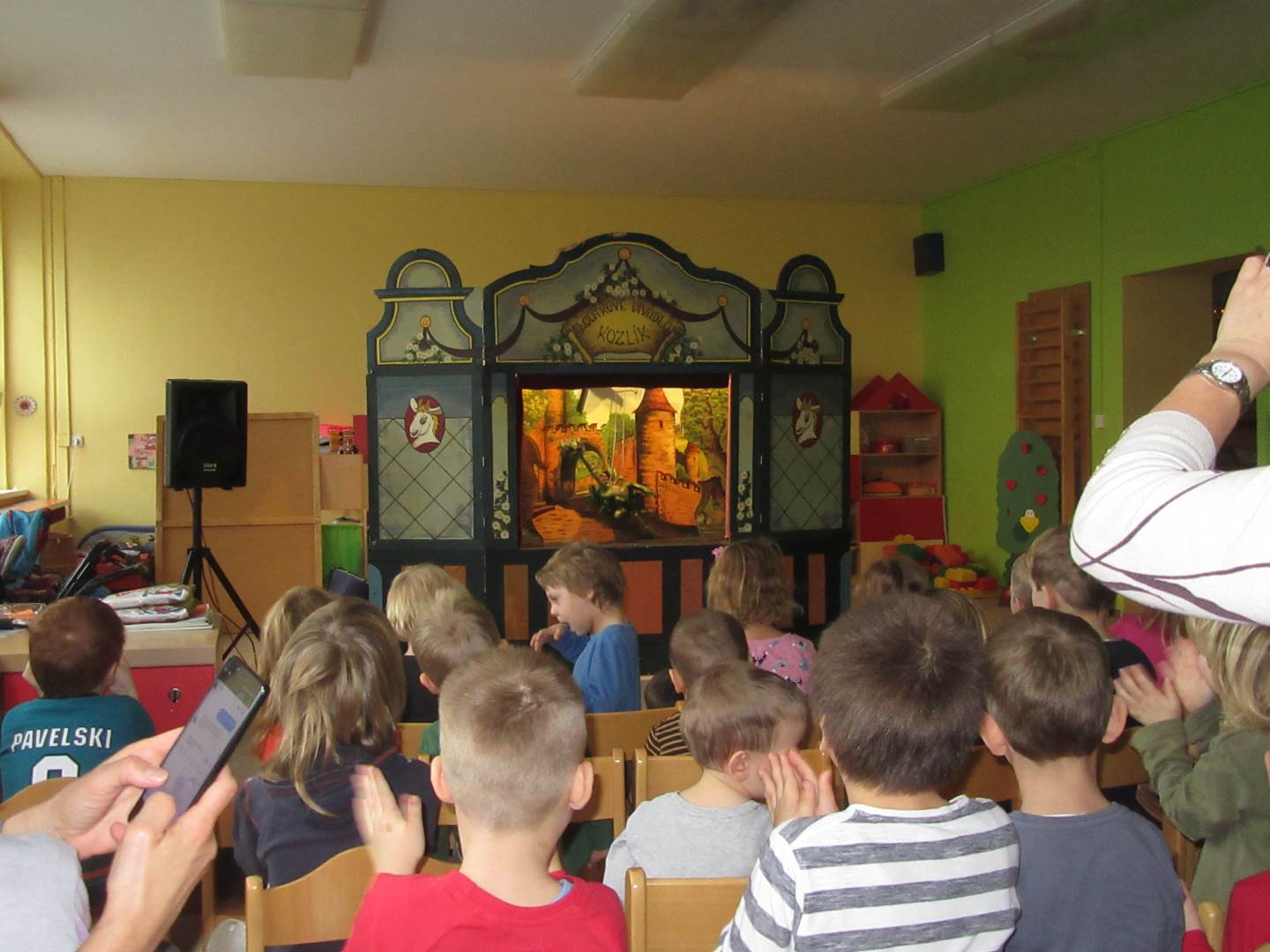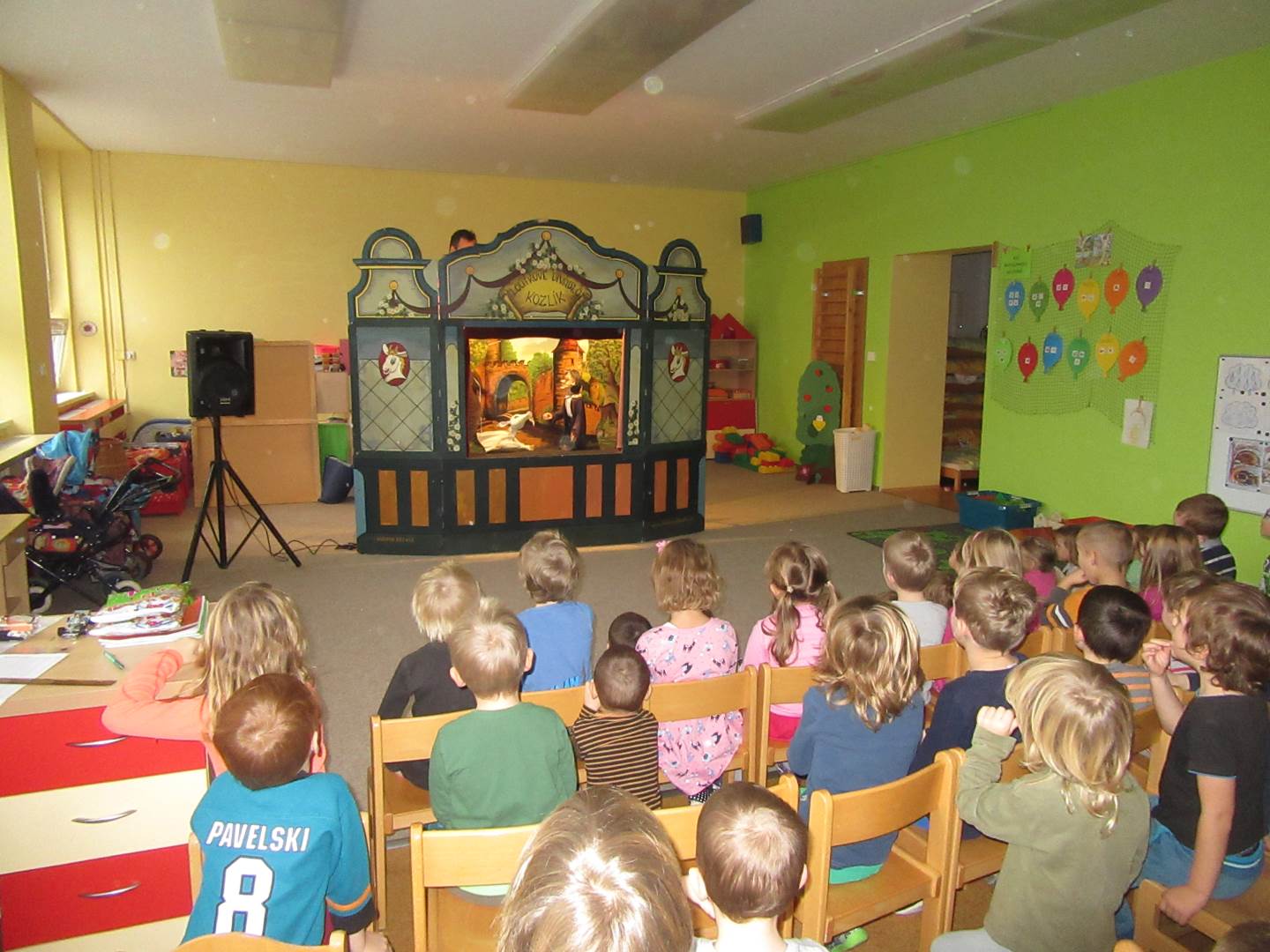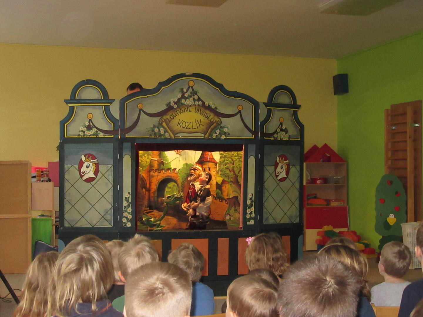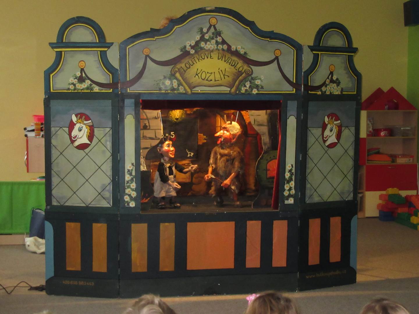 Pondělí jsme zahájili pohádkou o Luciáškovi, kterou nám přijelo zahrát divadlo Kozlík. Po představení si děti mohly pohladit dřevěné loutky - kozlíka, draha...