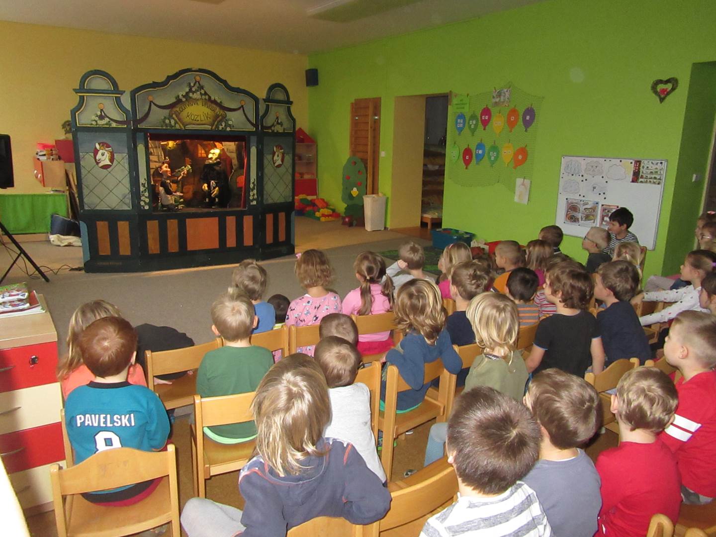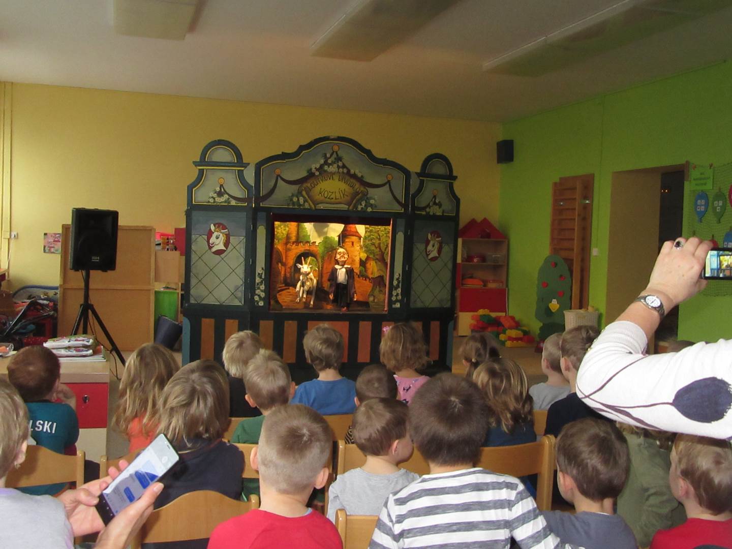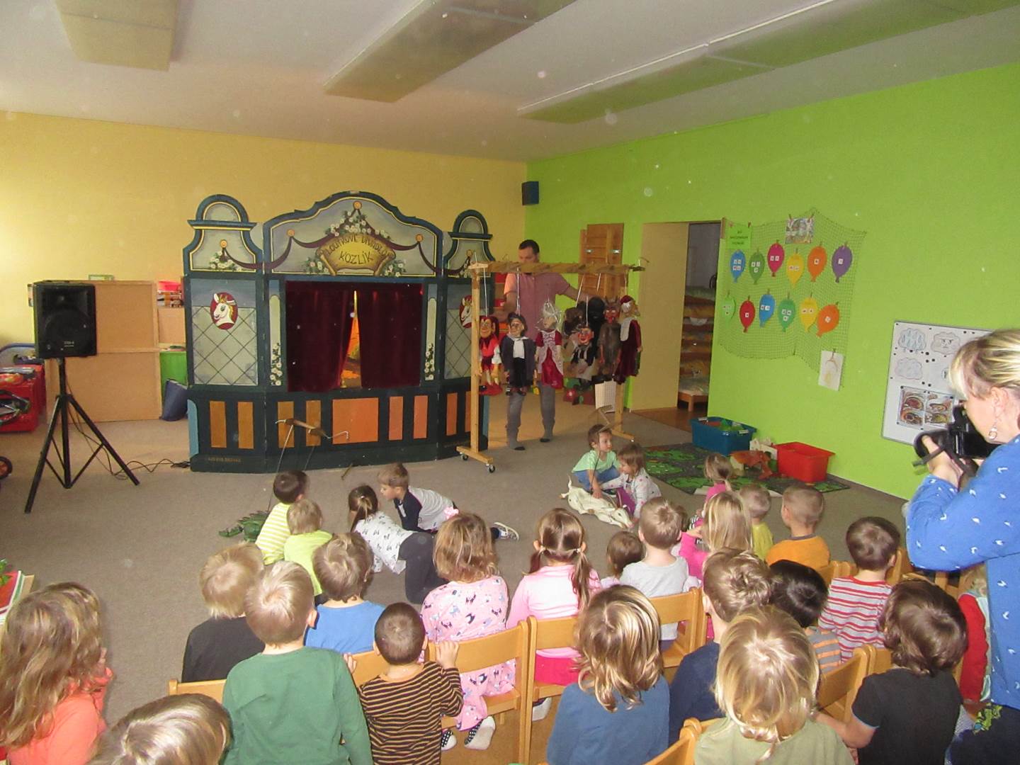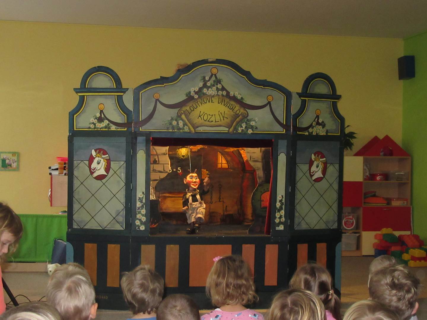 Pondělí jsme zahájili pohádkou o Luciáškovi, kterou nám přijelo zahrát divadlo Kozlík. Po představení si děti mohly pohladit dřevěné loutky - kozlíka, draha...
