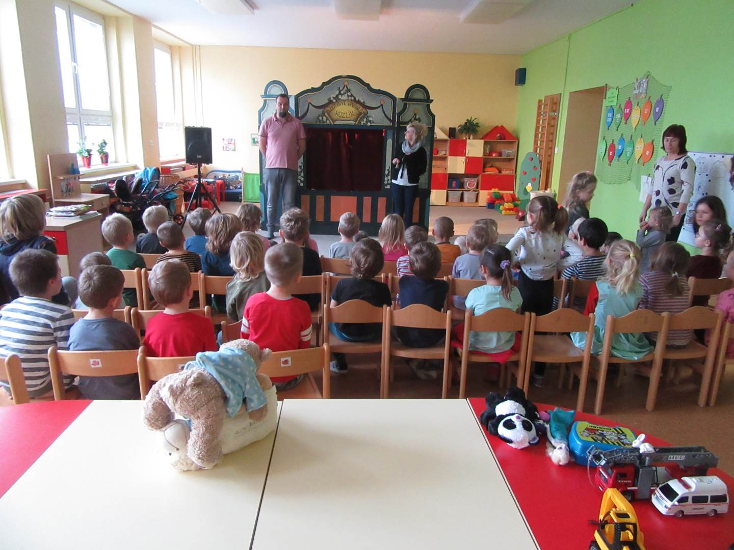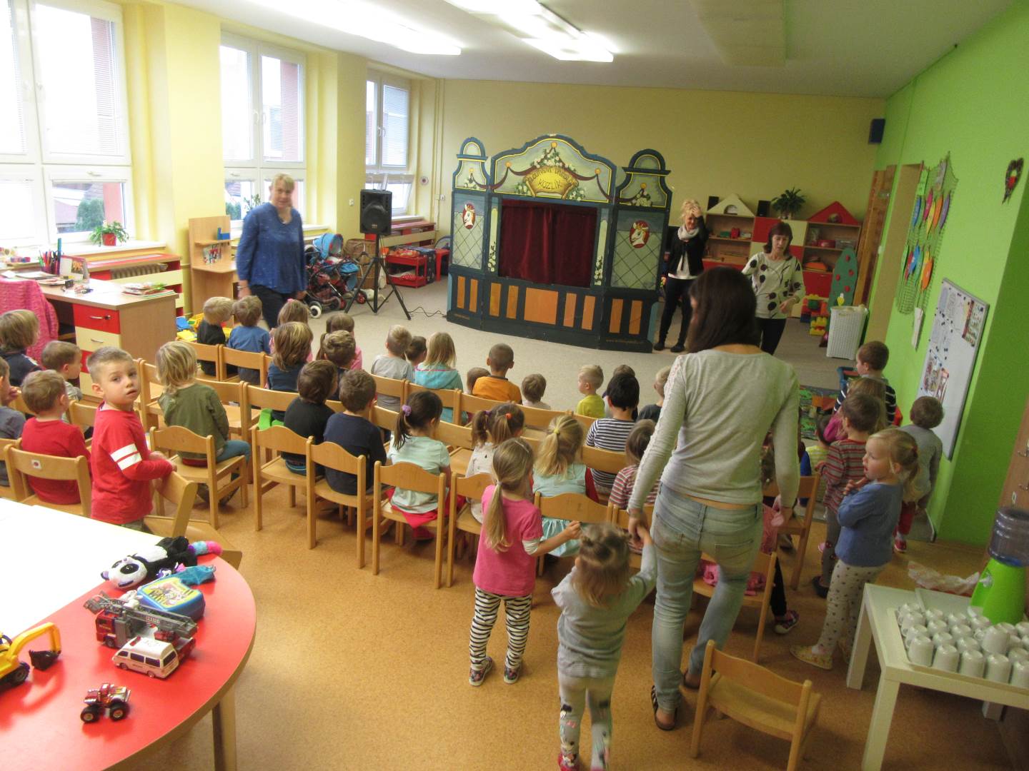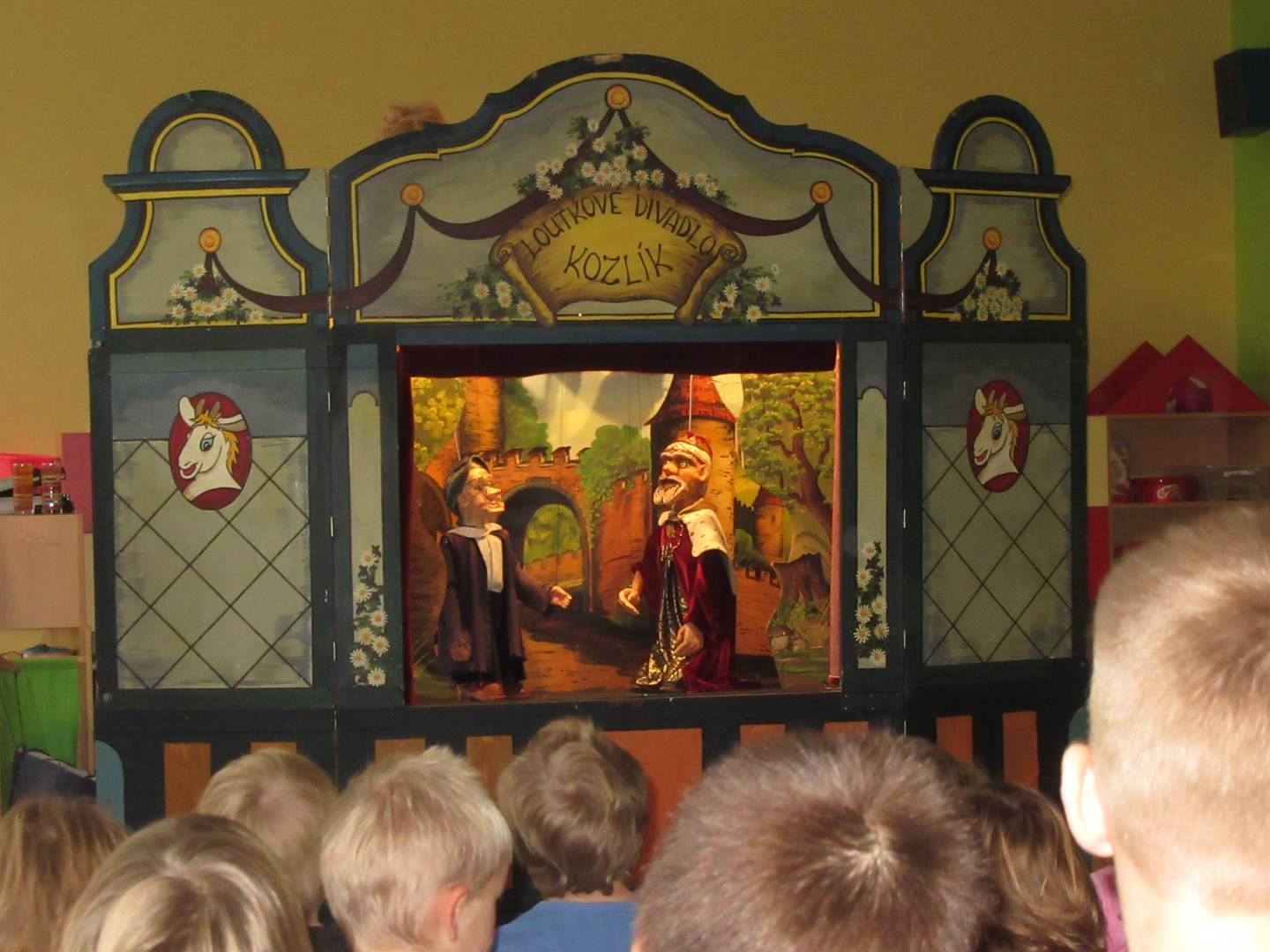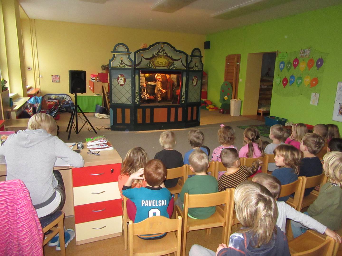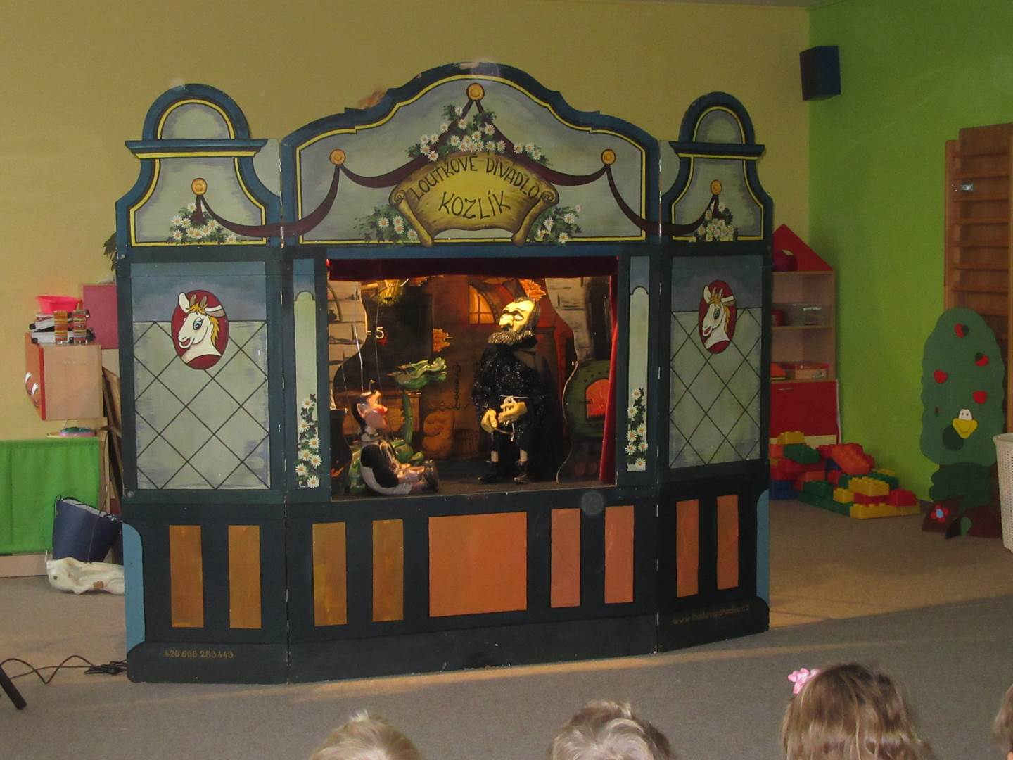 Pondělí jsme zahájili pohádkou o Luciáškovi, kterou nám přijelo zahrát divadlo Kozlík. Po představení si děti mohly pohladit dřevěné loutky - kozlíka, draha...