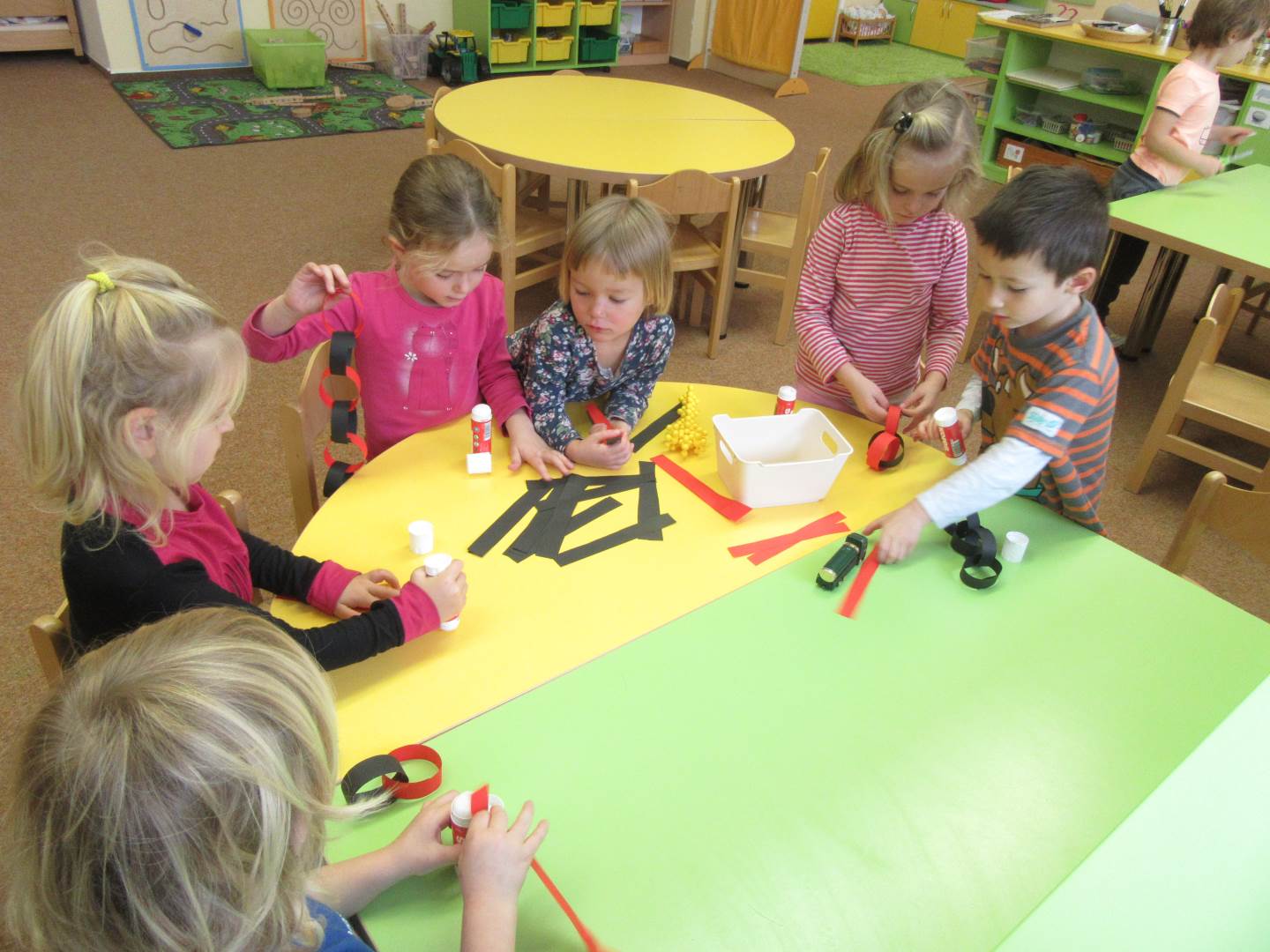 Jako každý čtvrtek někteří předškoláci jeli na bruslení do Boskovic a ostatní děti vyráběly čertíky, Mikuláše, andílky a řetěz z papíru. Také se byly proběhnout venku.