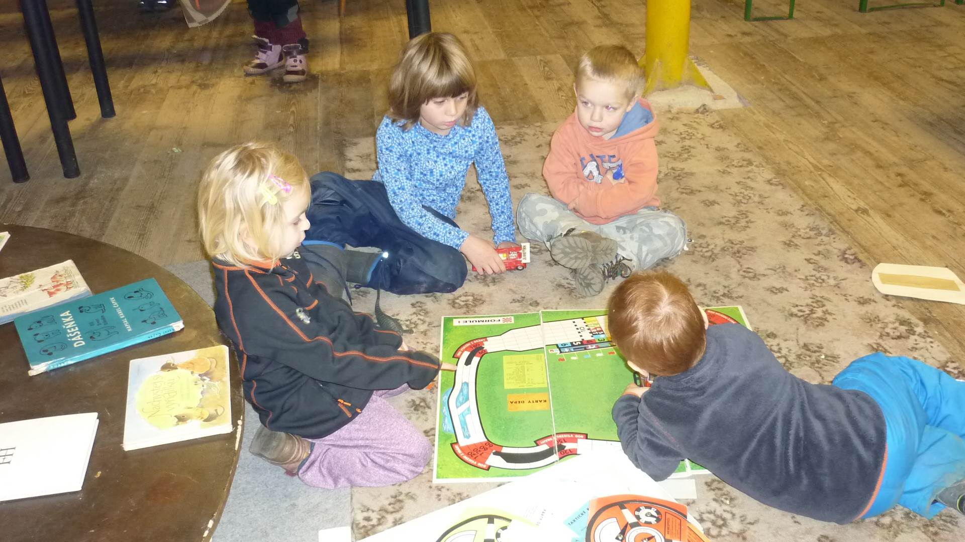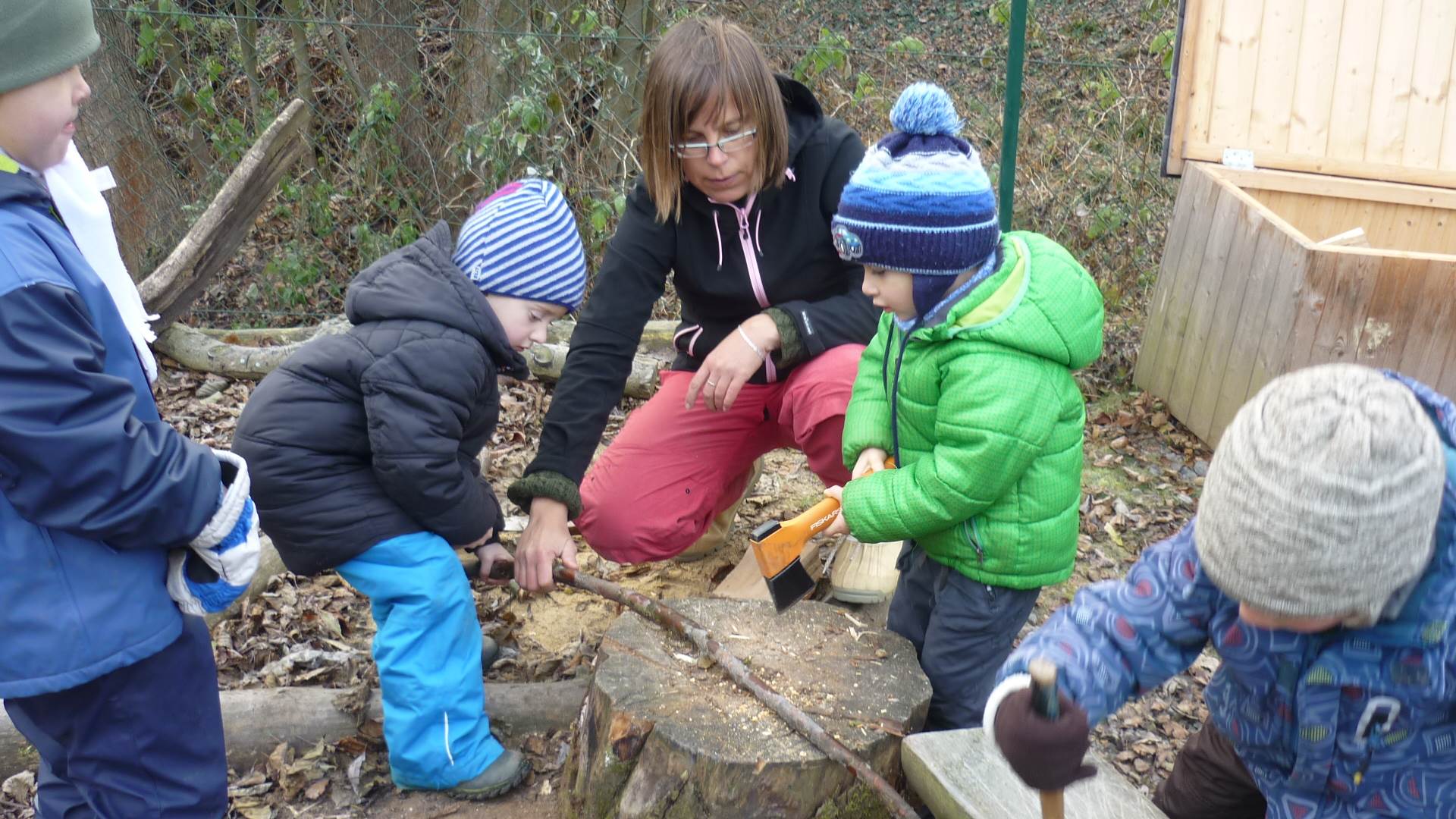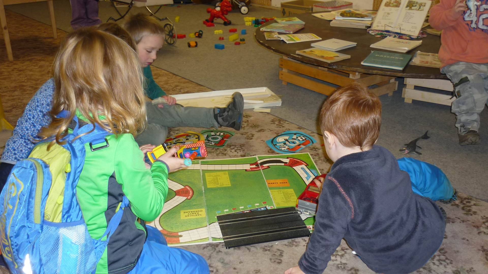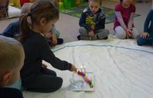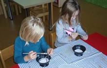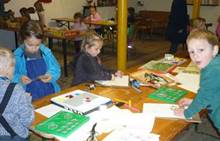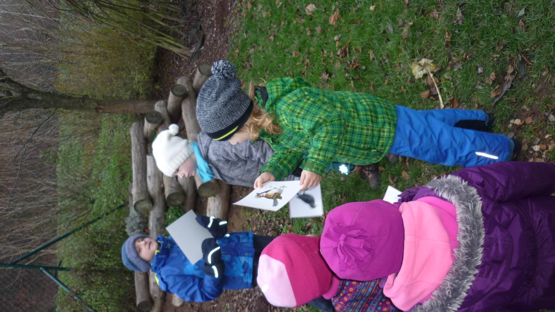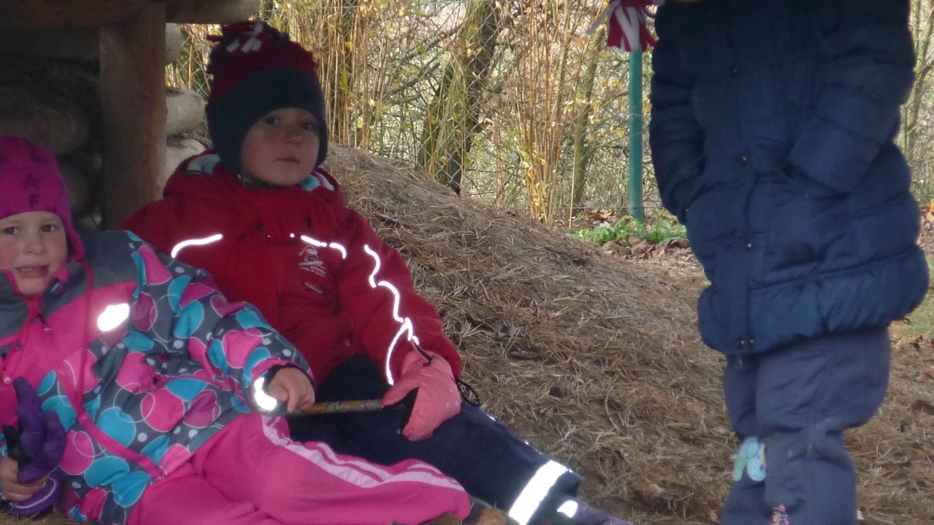 Poslední listopadový týden jsme pozvaní na farní "sýpku" na tzv. Retrovýstavu. Najdeme tu nejen historické hračky, ale třeba i celý obývací pokoj a spoustu věcí k běžnému užívání. V lesním zázemí si každý najde činnost, která je mu blízká. Pracujeme s pilou, sekerou, lopatou či rýči. Povídáme si o ptácích a zvířatech, jak se připravují na zimu, vytleskáváme slabiky ve slovech, hrajeme pexeso, dáváme si hádanky, pozorujeme námrazu a zkoumáme, jak tenký je led na rybníčku. Slavíme také Františkovi a Timonkovi narozeniny a jsme pozváni do Sluníček ke slavnostnímu pasování prvňáčků do řad čtenářů. Umí už všechna písmenka, a tak dostávají svůj první Slabikář. Už se těšíme, až nám budou číst před spaním pohádky!