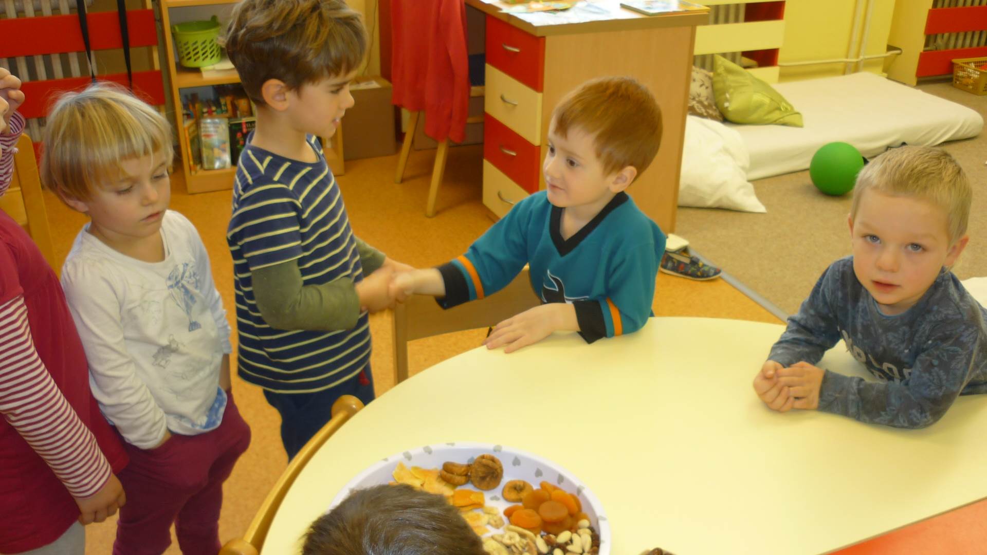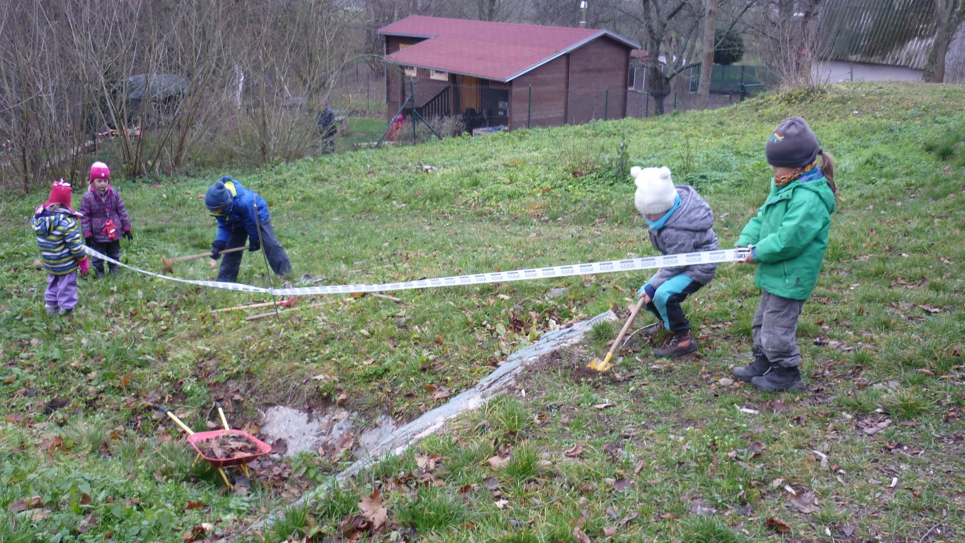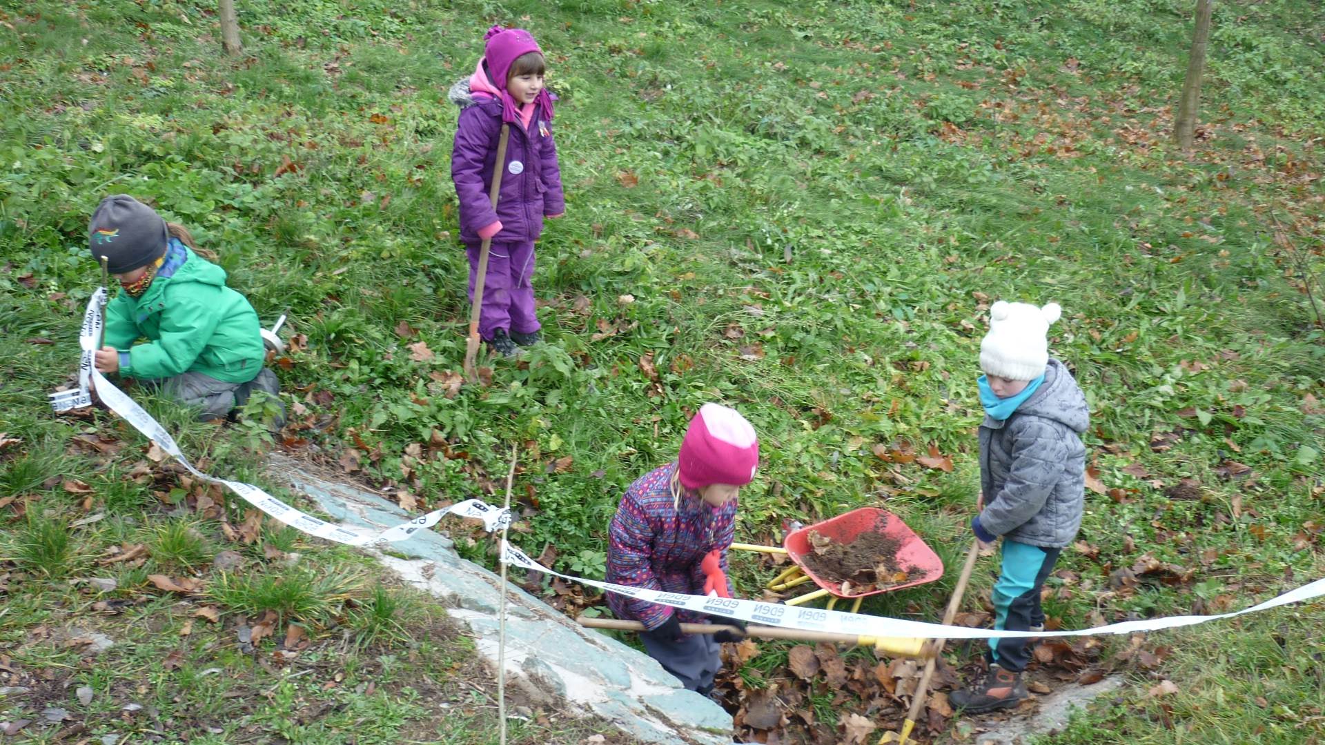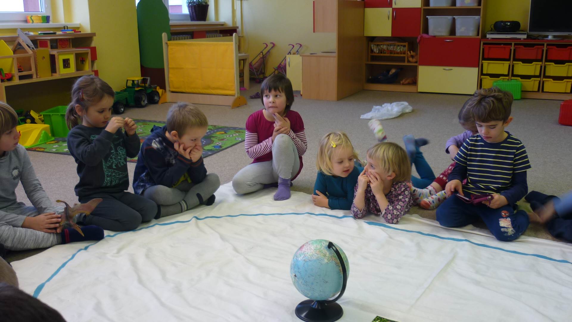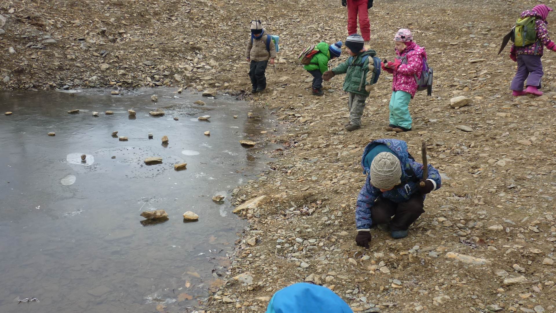 Poslední listopadový týden jsme pozvaní na farní "sýpku" na tzv. Retrovýstavu. Najdeme tu nejen historické hračky, ale třeba i celý obývací pokoj a spoustu věcí k běžnému užívání. V lesním zázemí si každý najde činnost, která je mu blízká. Pracujeme s pilou, sekerou, lopatou či rýči. Povídáme si o ptácích a zvířatech, jak se připravují na zimu, vytleskáváme slabiky ve slovech, hrajeme pexeso, dáváme si hádanky, pozorujeme námrazu a zkoumáme, jak tenký je led na rybníčku. Slavíme také Františkovi a Timonkovi narozeniny a jsme pozváni do Sluníček ke slavnostnímu pasování prvňáčků do řad čtenářů. Umí už všechna písmenka, a tak dostávají svůj první Slabikář. Už se těšíme, až nám budou číst před spaním pohádky!