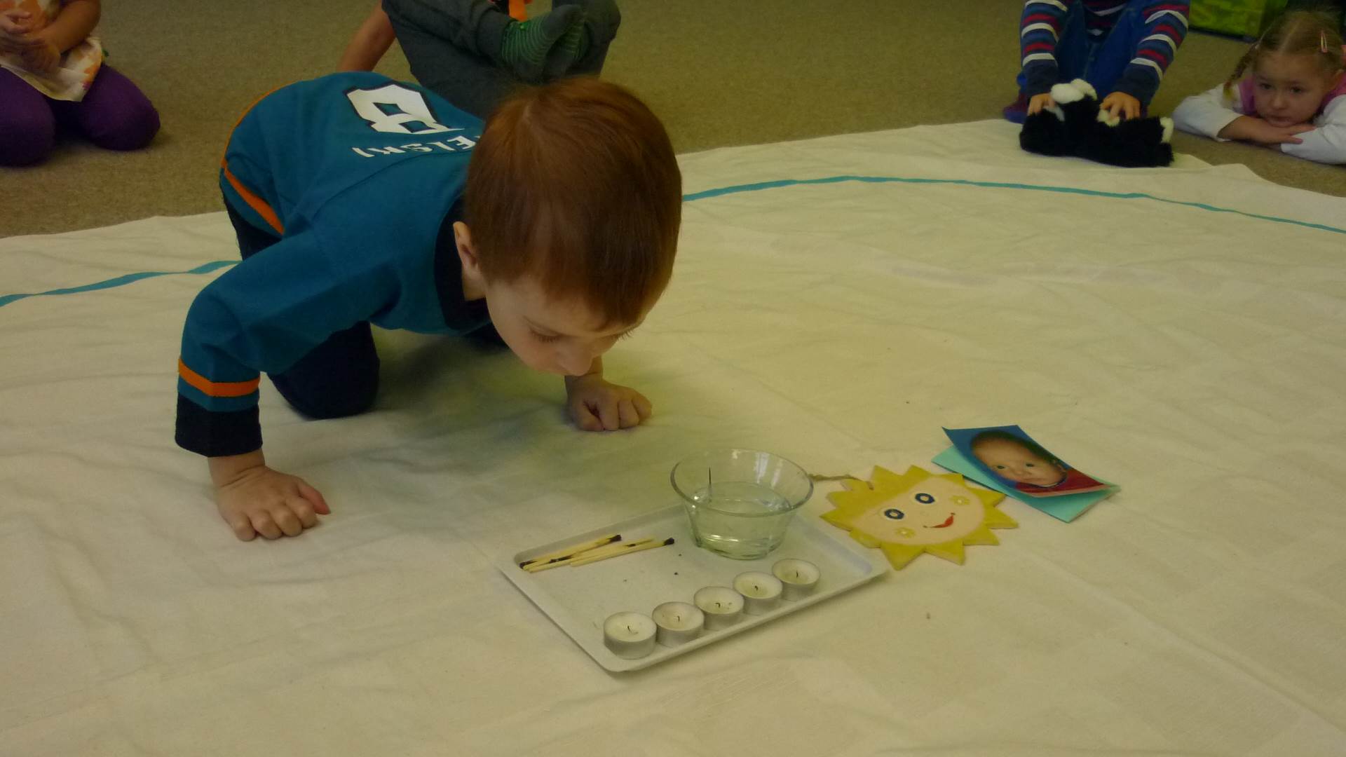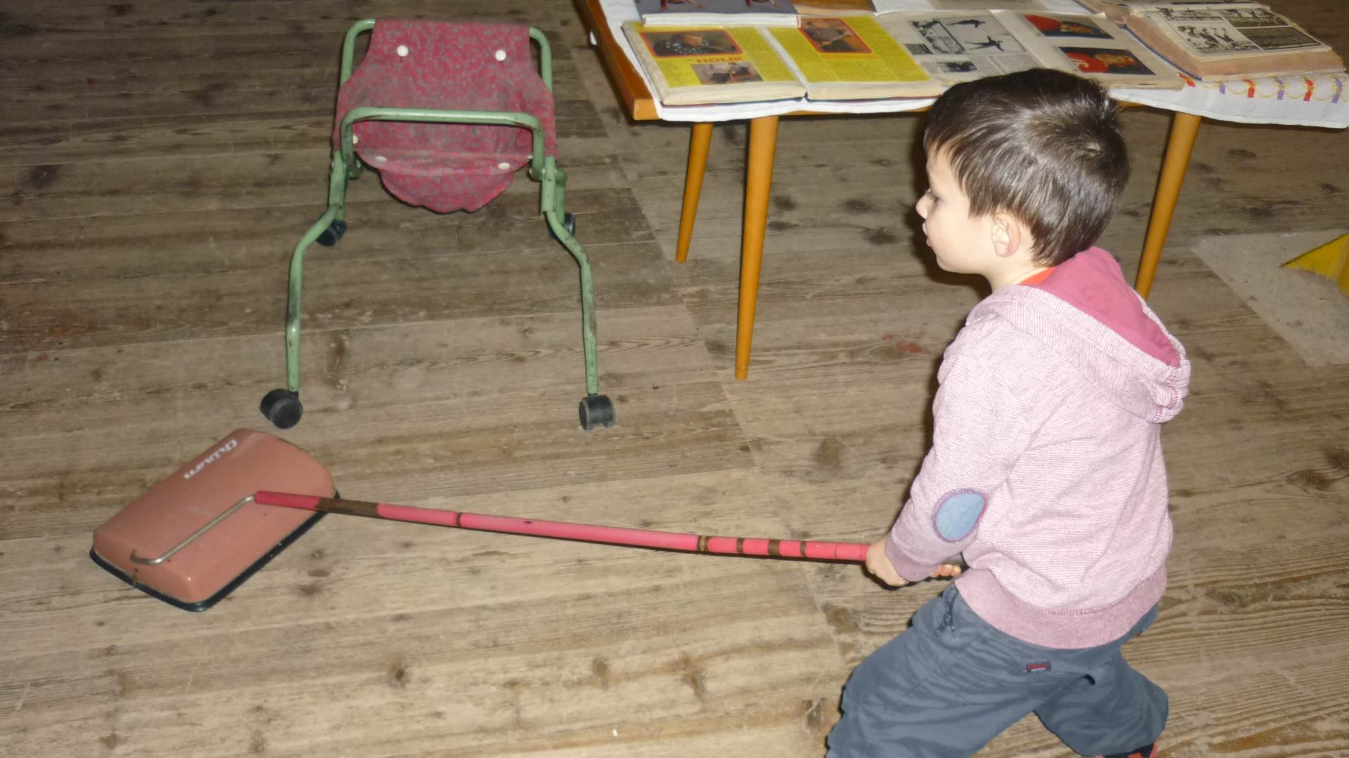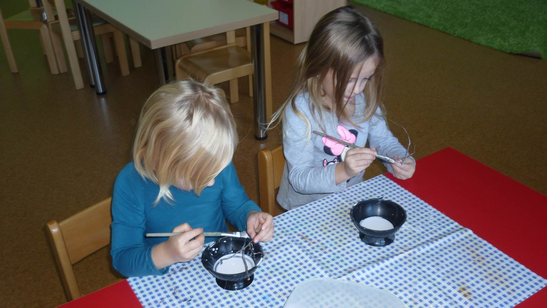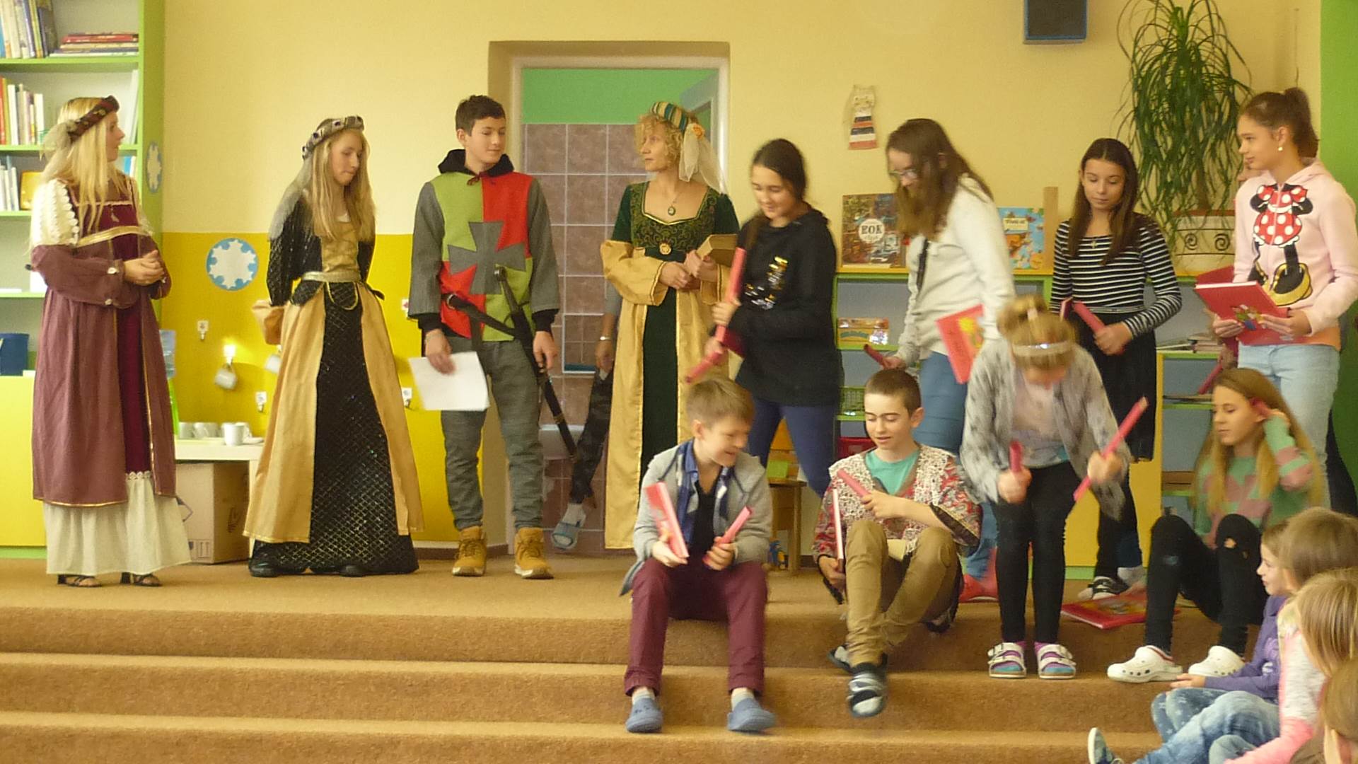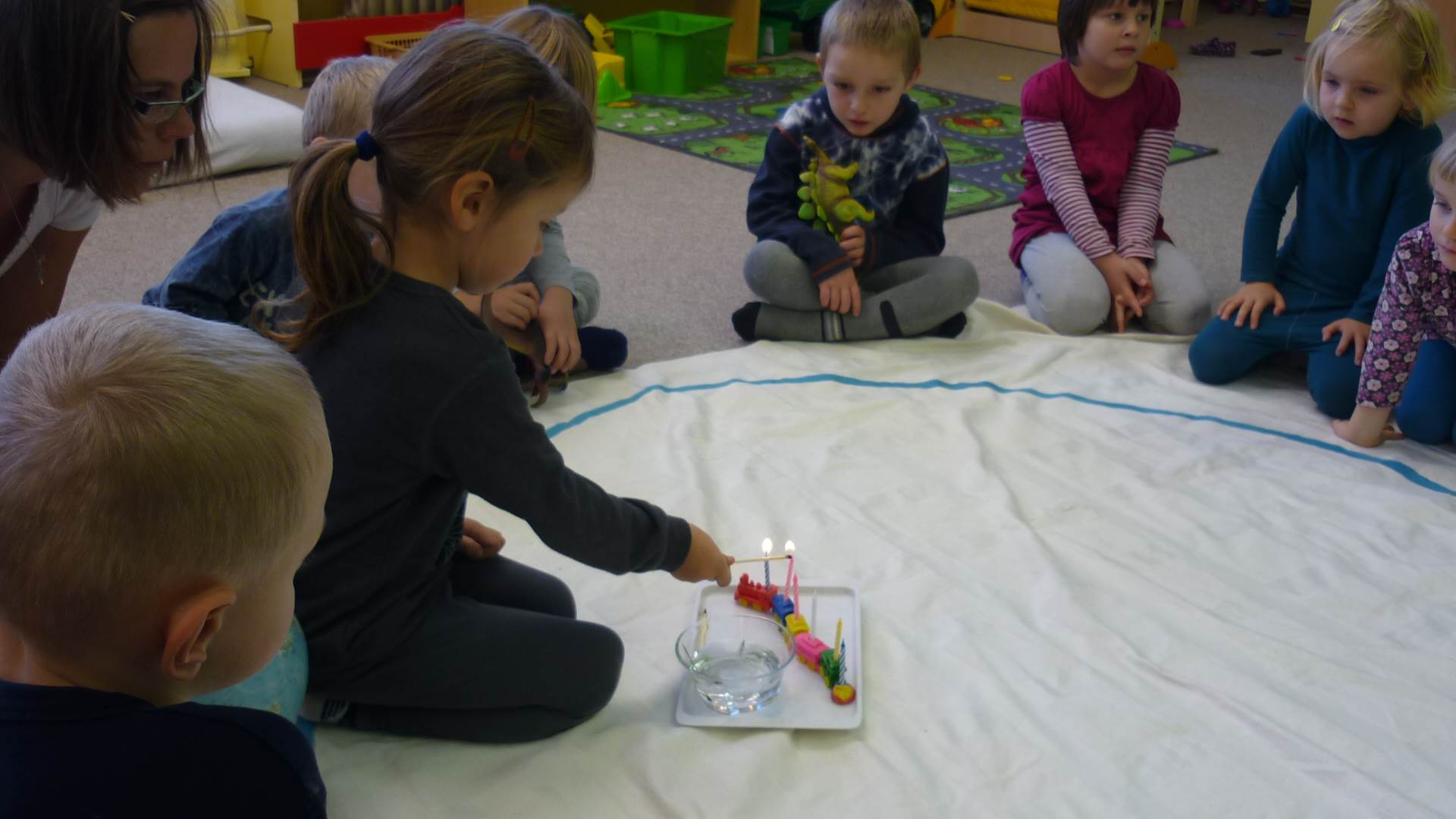 Poslední listopadový týden jsme pozvaní na farní "sýpku" na tzv. Retrovýstavu. Najdeme tu nejen historické hračky, ale třeba i celý obývací pokoj a spoustu věcí k běžnému užívání. V lesním zázemí si každý najde činnost, která je mu blízká. Pracujeme s pilou, sekerou, lopatou či rýči. Povídáme si o ptácích a zvířatech, jak se připravují na zimu, vytleskáváme slabiky ve slovech, hrajeme pexeso, dáváme si hádanky, pozorujeme námrazu a zkoumáme, jak tenký je led na rybníčku. Slavíme také Františkovi a Timonkovi narozeniny a jsme pozváni do Sluníček ke slavnostnímu pasování prvňáčků do řad čtenářů. Umí už všechna písmenka, a tak dostávají svůj první Slabikář. Už se těšíme, až nám budou číst před spaním pohádky!