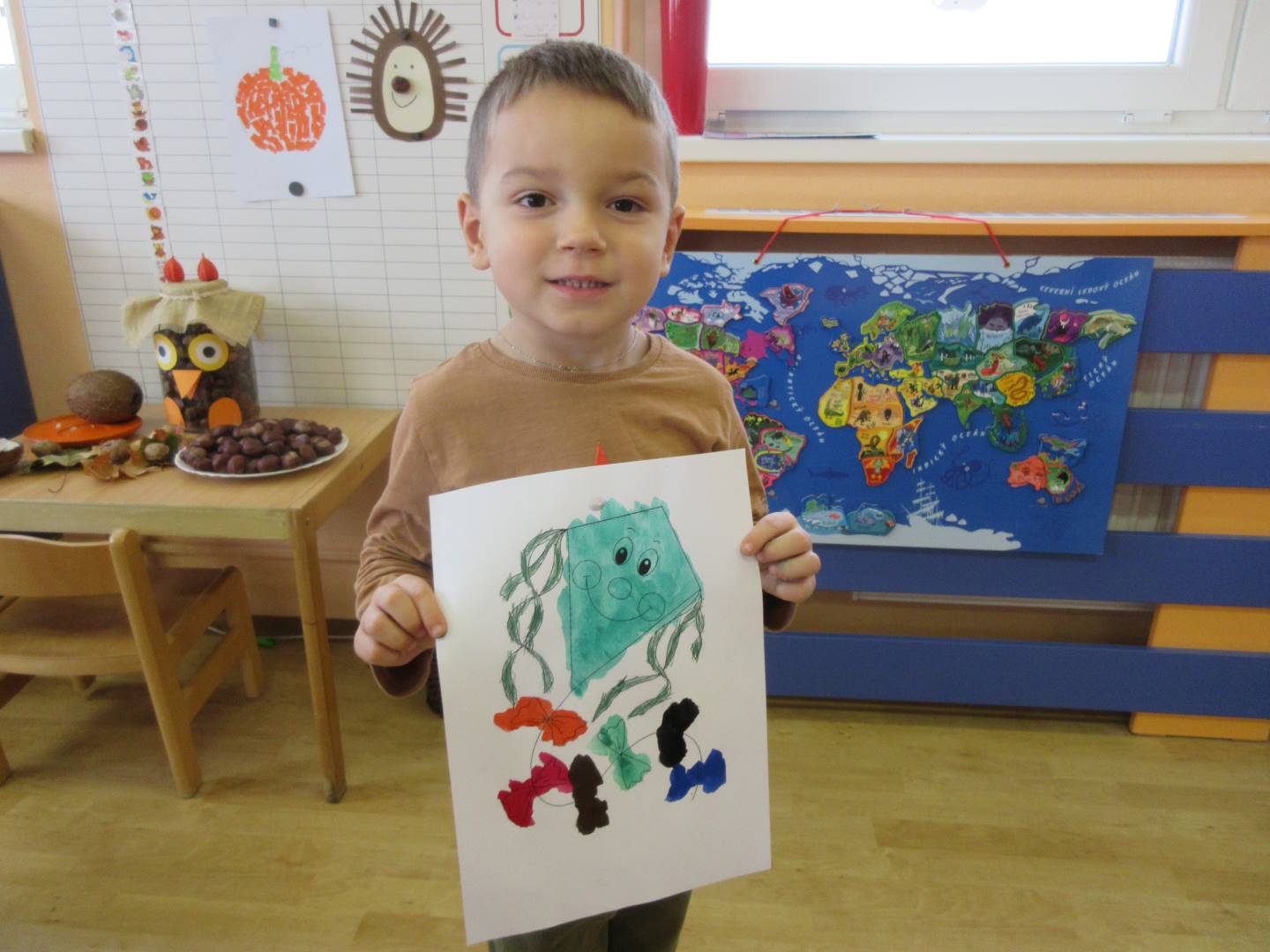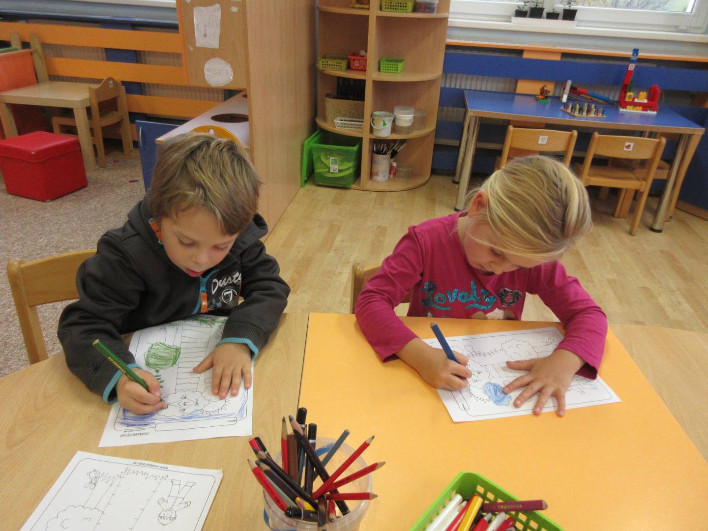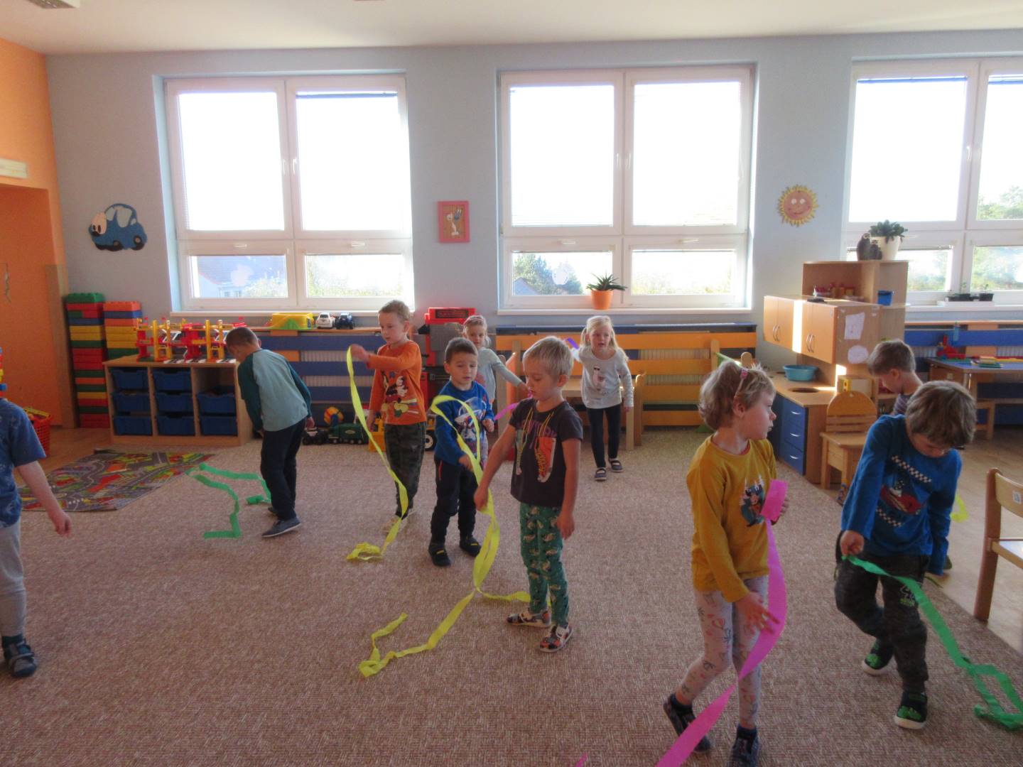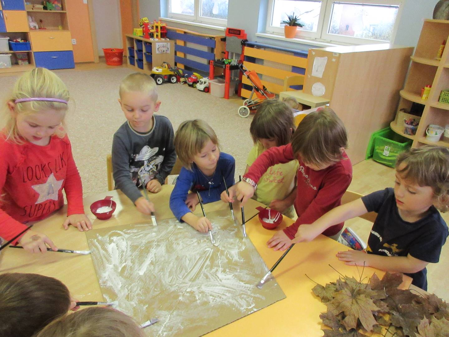 Povídali jsme si o Halloweenu a Dušičkách. Vydlabali jsme dýni, která nám venku krásně svítila. Vyráběli jsme draky, pracovali s listy, kaštany a šiškami. Děti se učily nové básničky a písničky. Vyprávěli jsme si o přírodě, která se chystá na zimu. Oslavili jsme svátek Svatého Martina a vyrobili bílé koníky, kteří nám zdobí vchod MŠ.