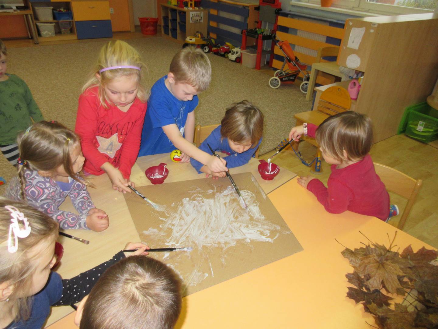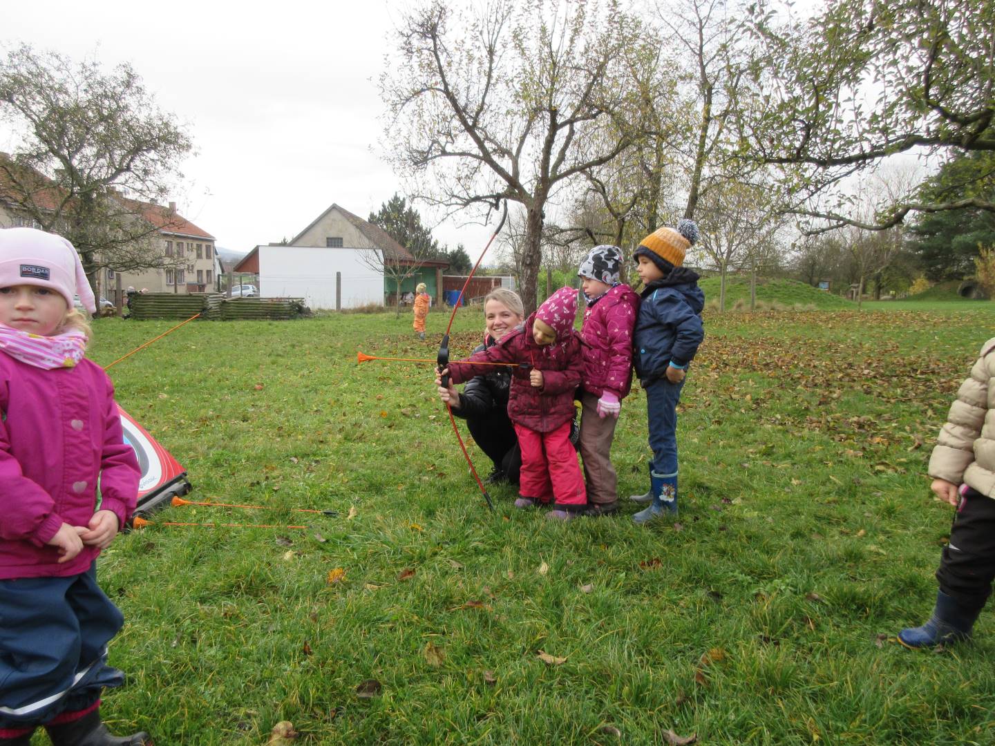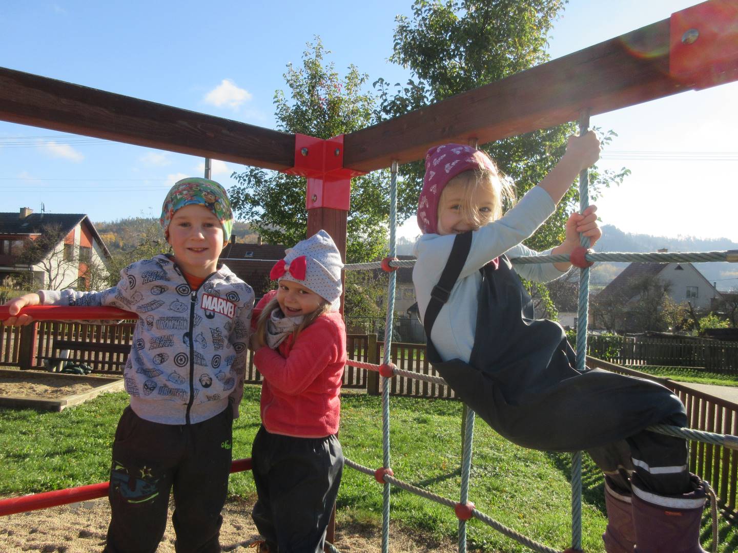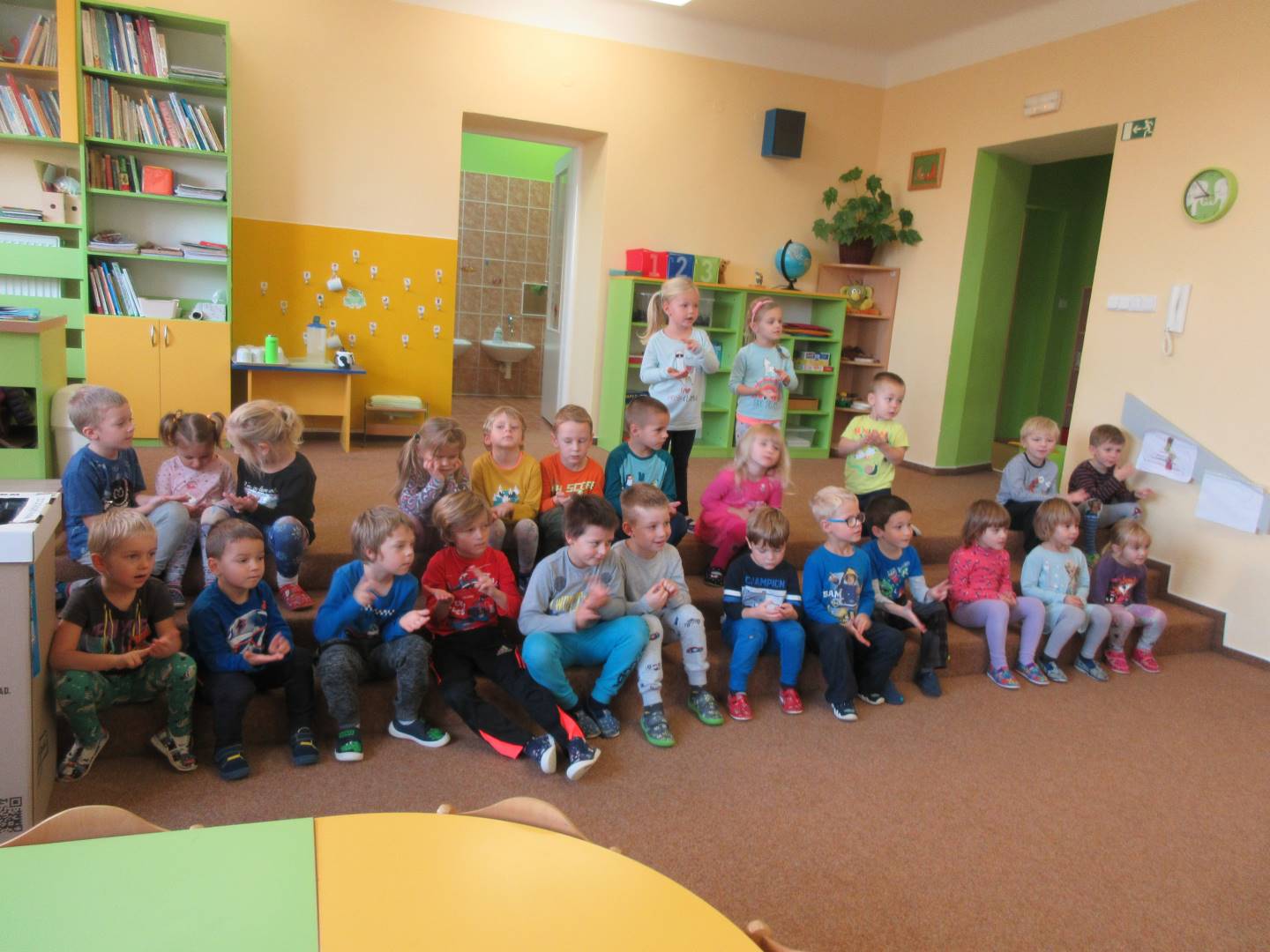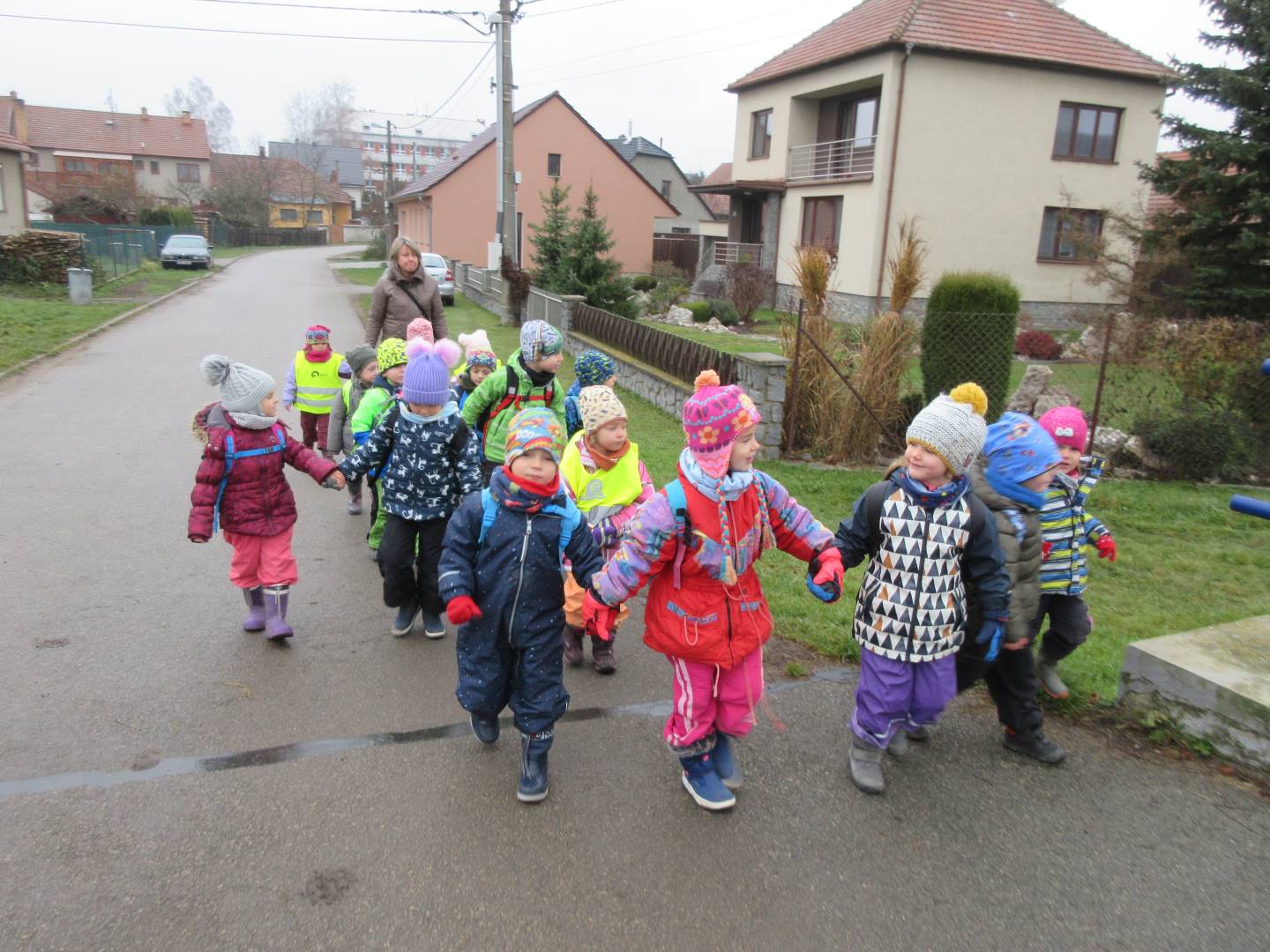 Povídali jsme si o Halloweenu a Dušičkách. Vydlabali jsme dýni, která nám venku krásně svítila. Vyráběli jsme draky, pracovali s listy, kaštany a šiškami. Děti se učily nové básničky a písničky. Vyprávěli jsme si o přírodě, která se chystá na zimu. Oslavili jsme svátek Svatého Martina a vyrobili bílé koníky, kteří nám zdobí vchod MŠ.