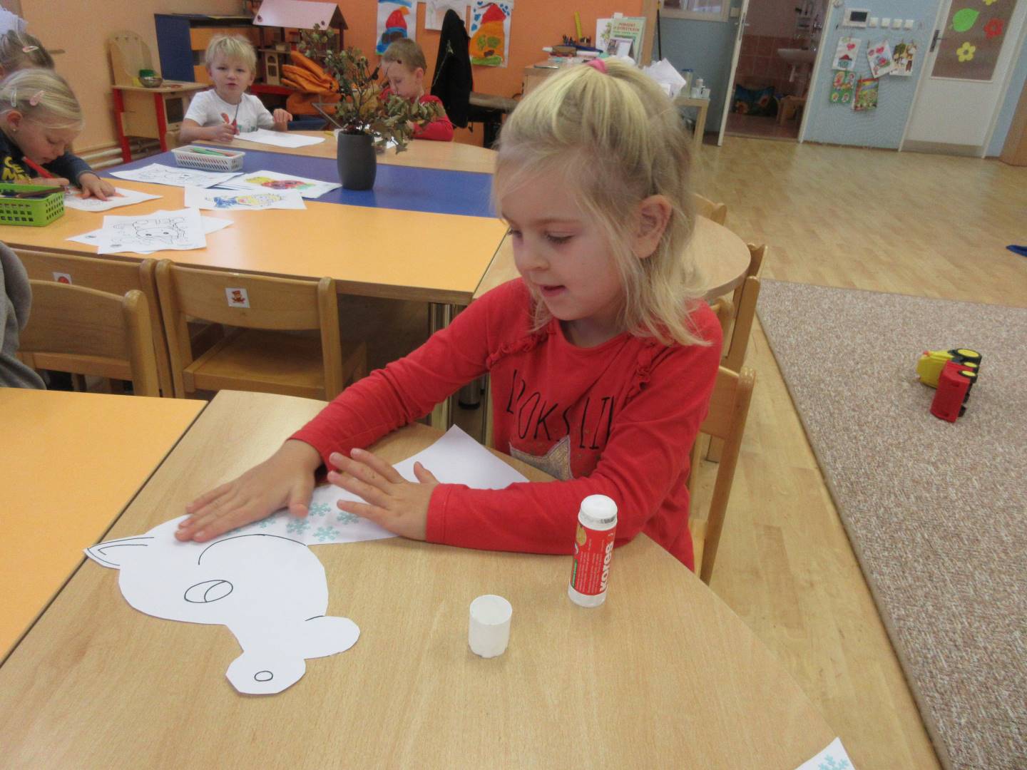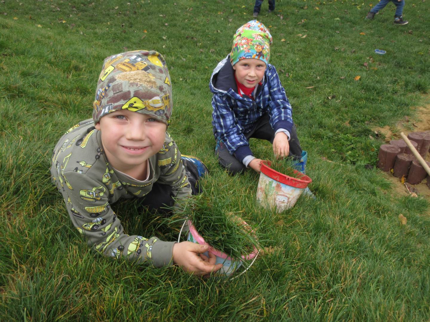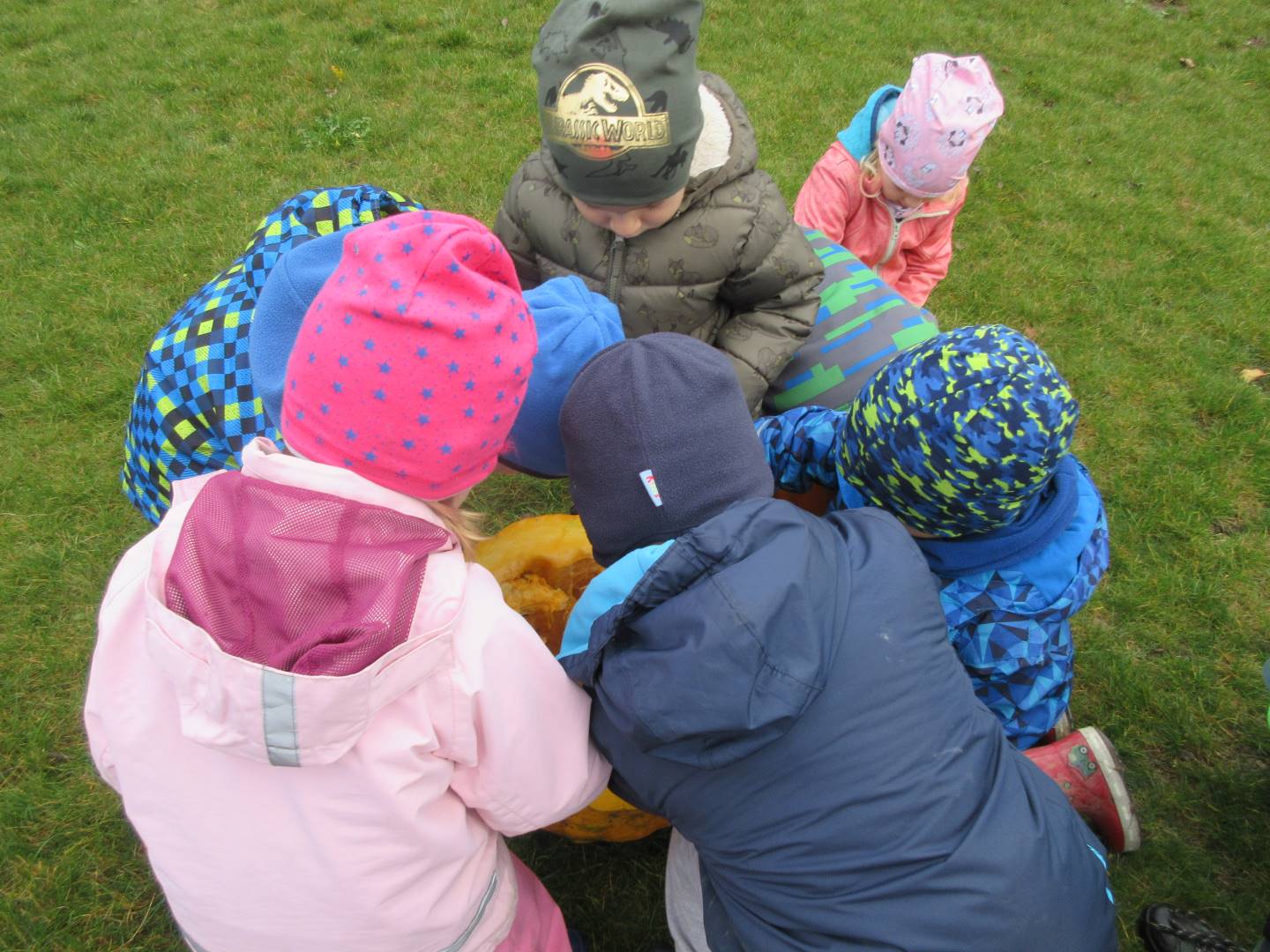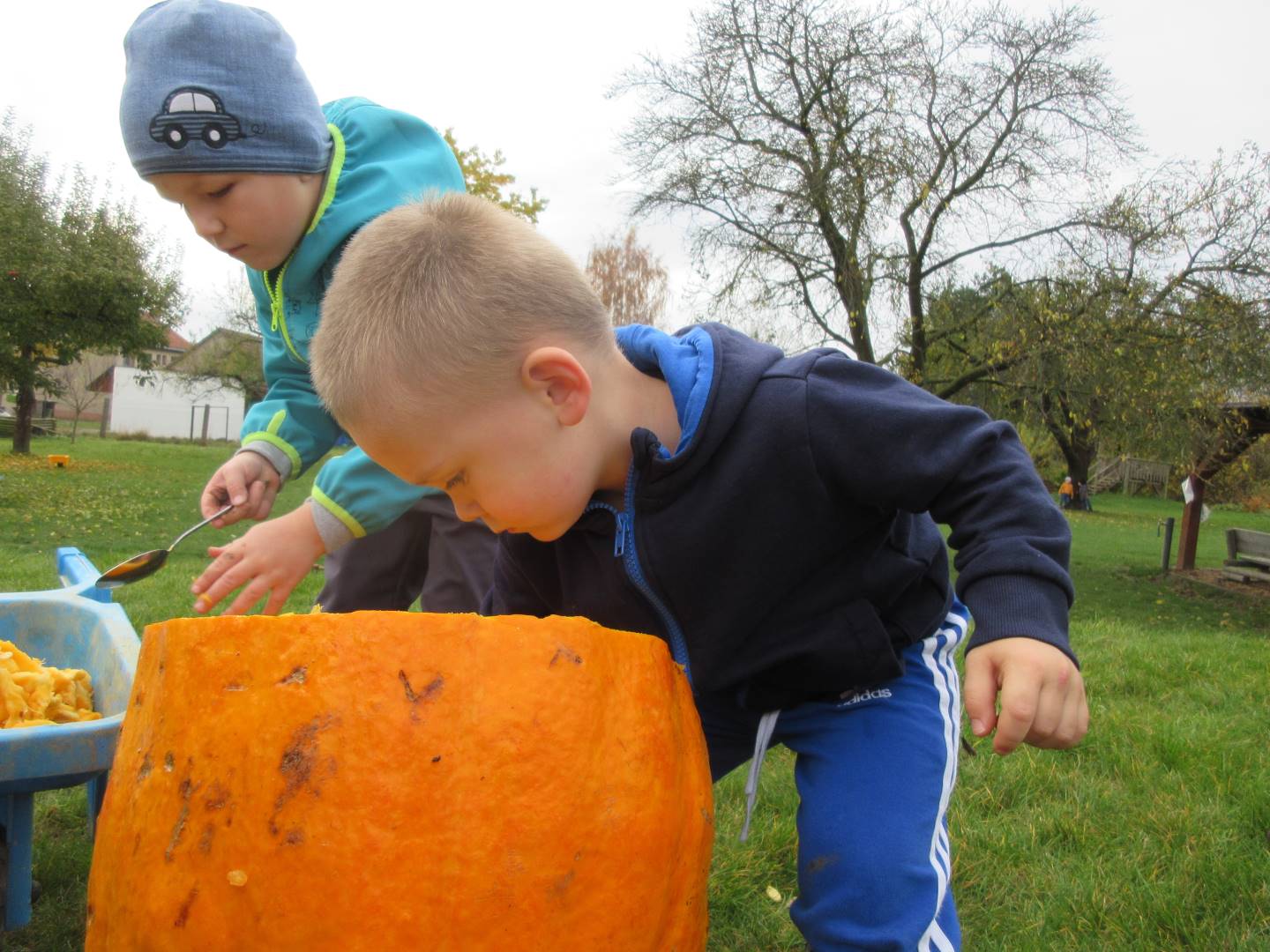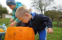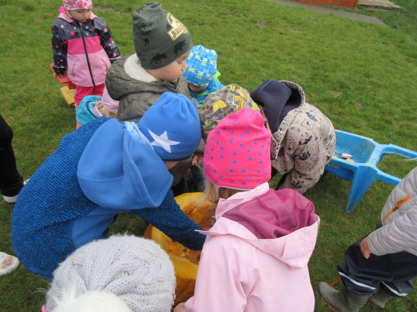 Povídali jsme si o Halloweenu a Dušičkách. Vydlabali jsme dýni, která nám venku krásně svítila. Vyráběli jsme draky, pracovali s listy, kaštany a šiškami. Děti se učily nové básničky a písničky. Vyprávěli jsme si o přírodě, která se chystá na zimu. Oslavili jsme svátek Svatého Martina a vyrobili bílé koníky, kteří nám zdobí vchod MŠ.