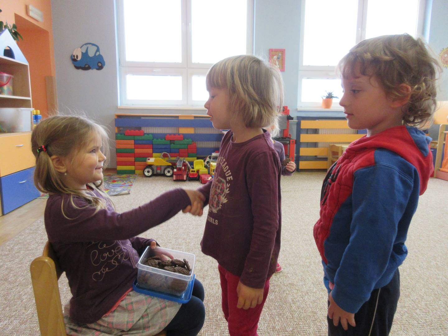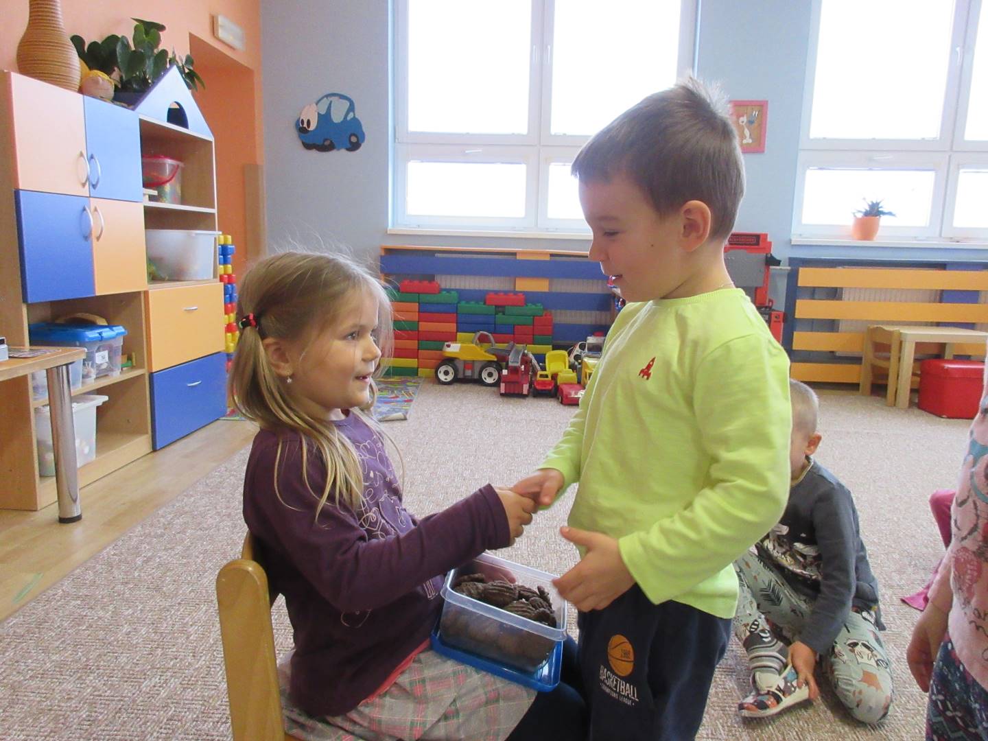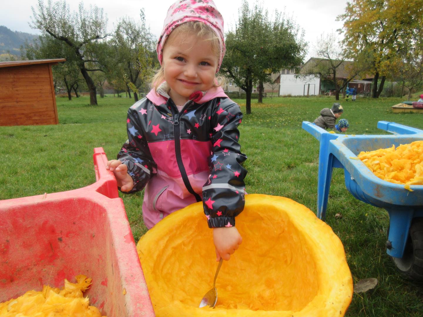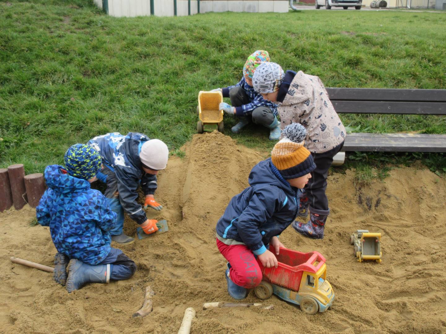 Povídali jsme si o Halloweenu a Dušičkách. Vydlabali jsme dýni, která nám venku krásně svítila. Vyráběli jsme draky, pracovali s listy, kaštany a šiškami. Děti se učily nové básničky a písničky. Vyprávěli jsme si o přírodě, která se chystá na zimu. Oslavili jsme svátek Svatého Martina a vyrobili bílé koníky, kteří nám zdobí vchod MŠ.