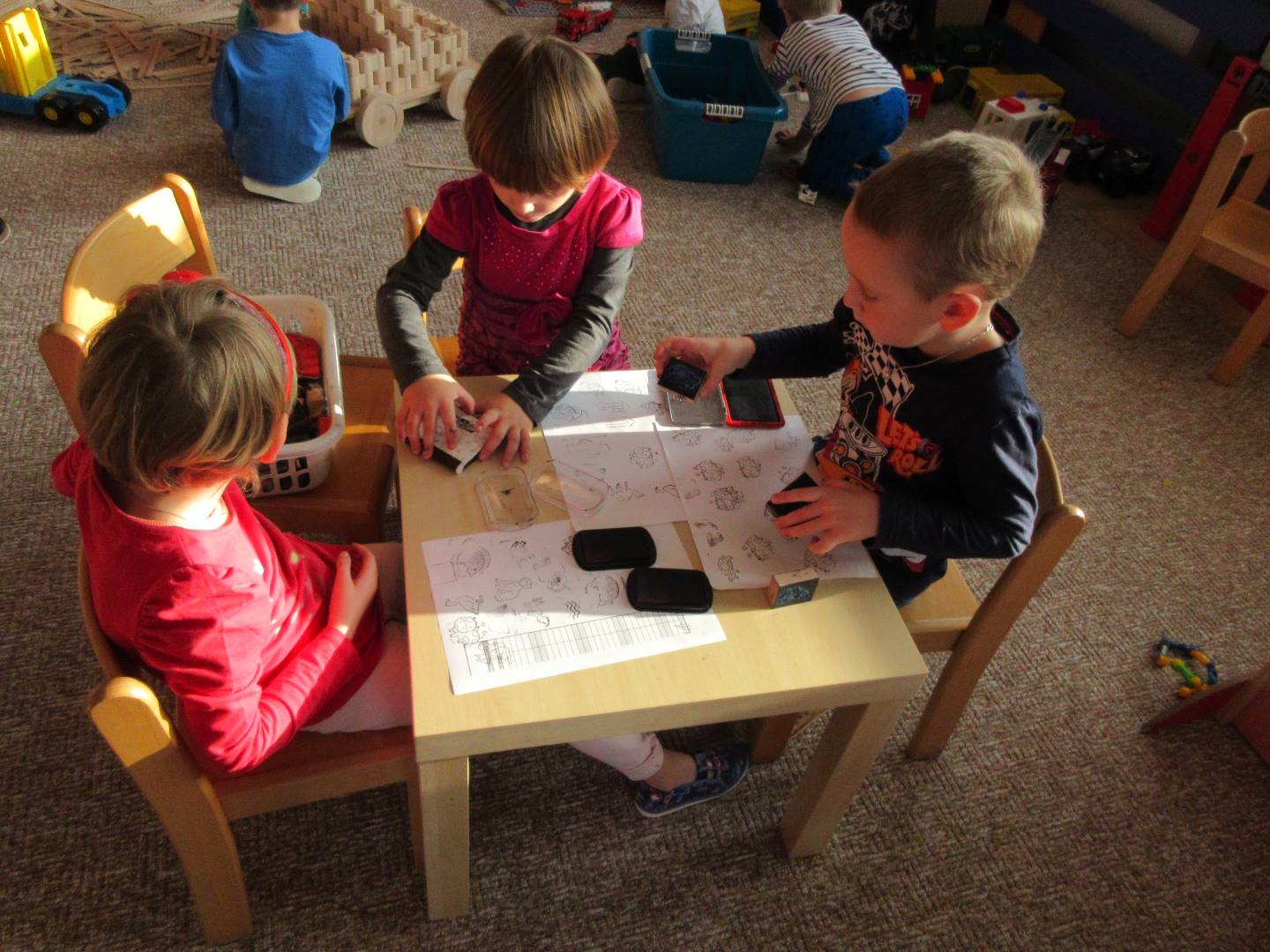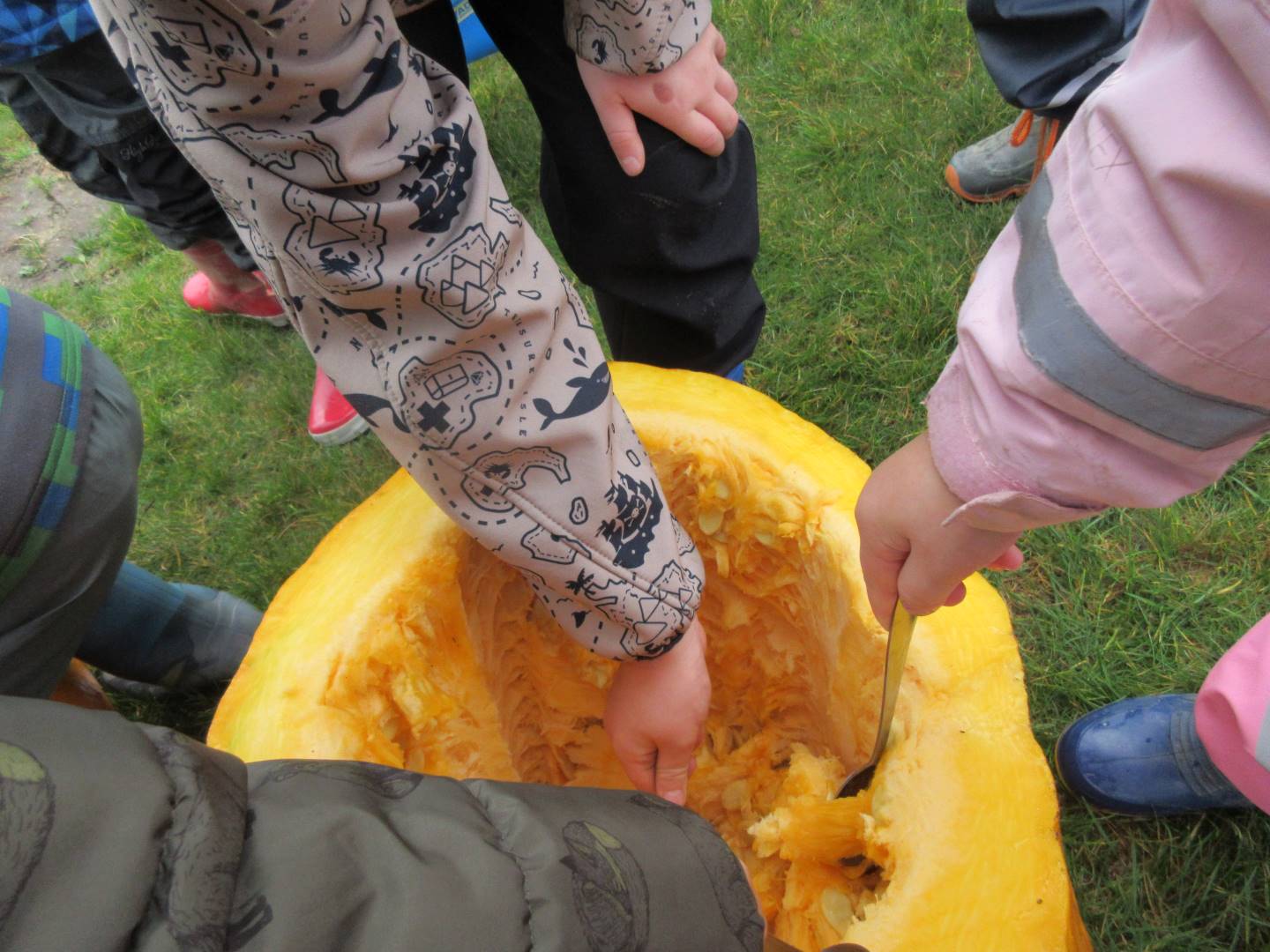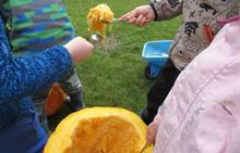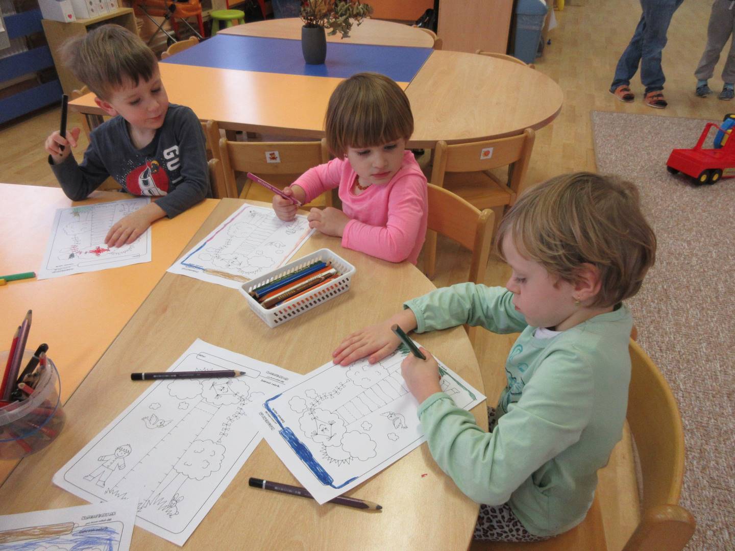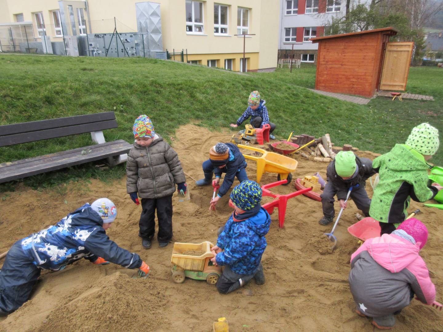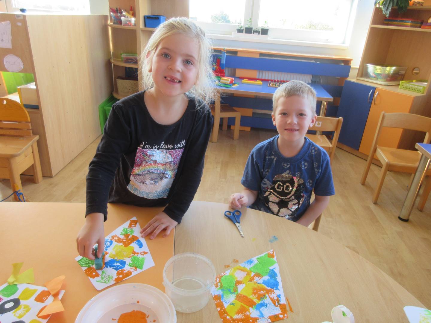 Povídali jsme si o Halloweenu a Dušičkách. Vydlabali jsme dýni, která nám venku krásně svítila. Vyráběli jsme draky, pracovali s listy, kaštany a šiškami. Děti se učily nové básničky a písničky. Vyprávěli jsme si o přírodě, která se chystá na zimu. Oslavili jsme svátek Svatého Martina a vyrobili bílé koníky, kteří nám zdobí vchod MŠ.