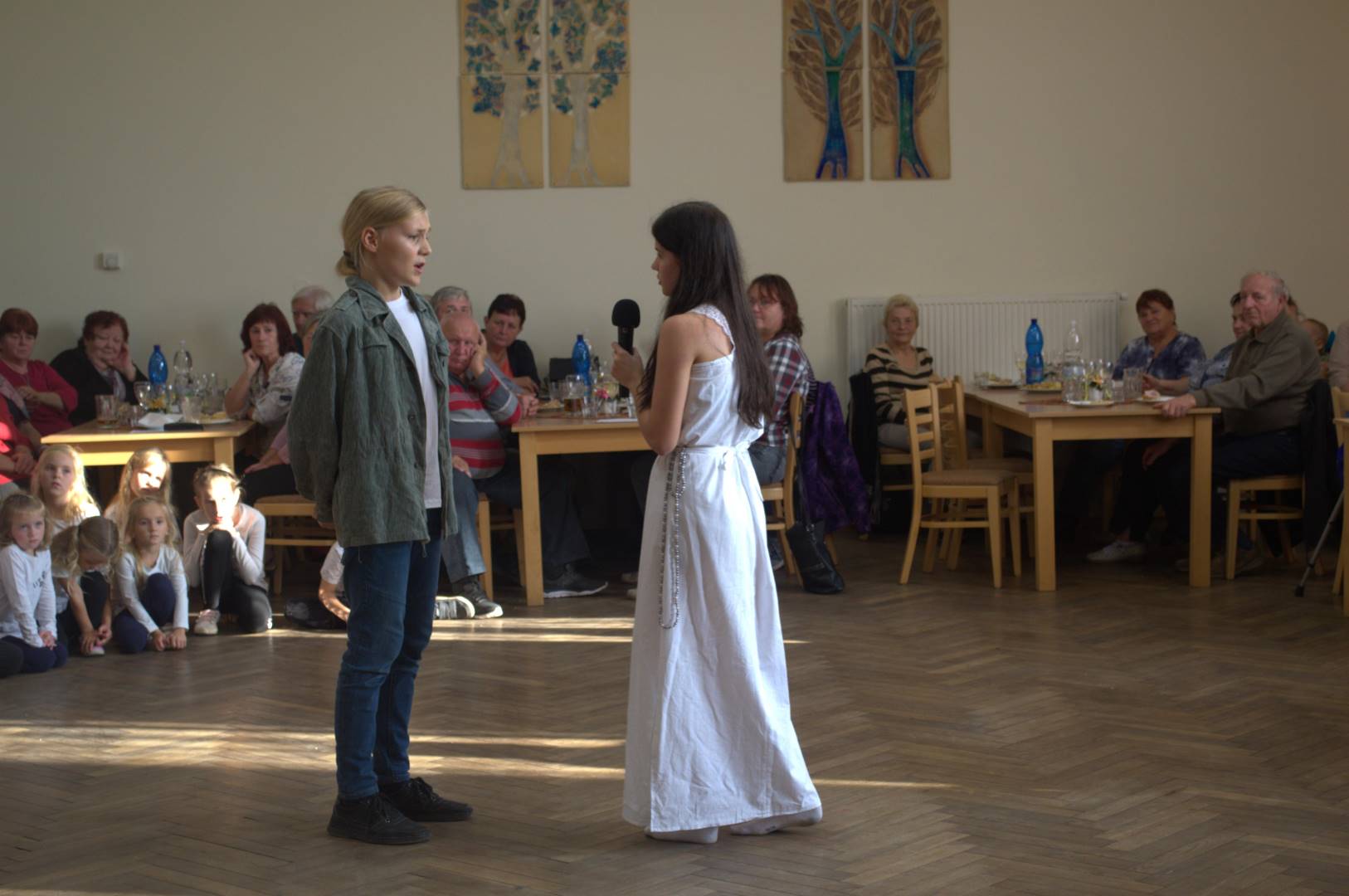V sobotu 8. 10. se v Kulturním domě v Knínicích konalo Odpoledne pro seniory. Do pestrého programu přispěli také žáci 6. třídy, kteří vystoupili s představením Svatební košile. Tuto klasickou baladu zahráli poprvé na zahradní slavnosti školy a doufali, že úspěch zopakují. Přes ztížené podmínky v podobě neznámého prostředí a pouze jedné společné „oprašovací“ zkoušky předvedli skvělý výkon a byli znovu odměněni zaslouženým potleskem.